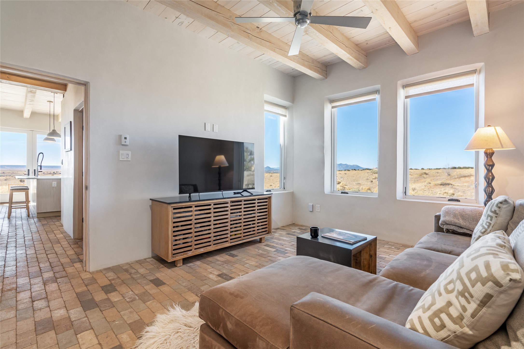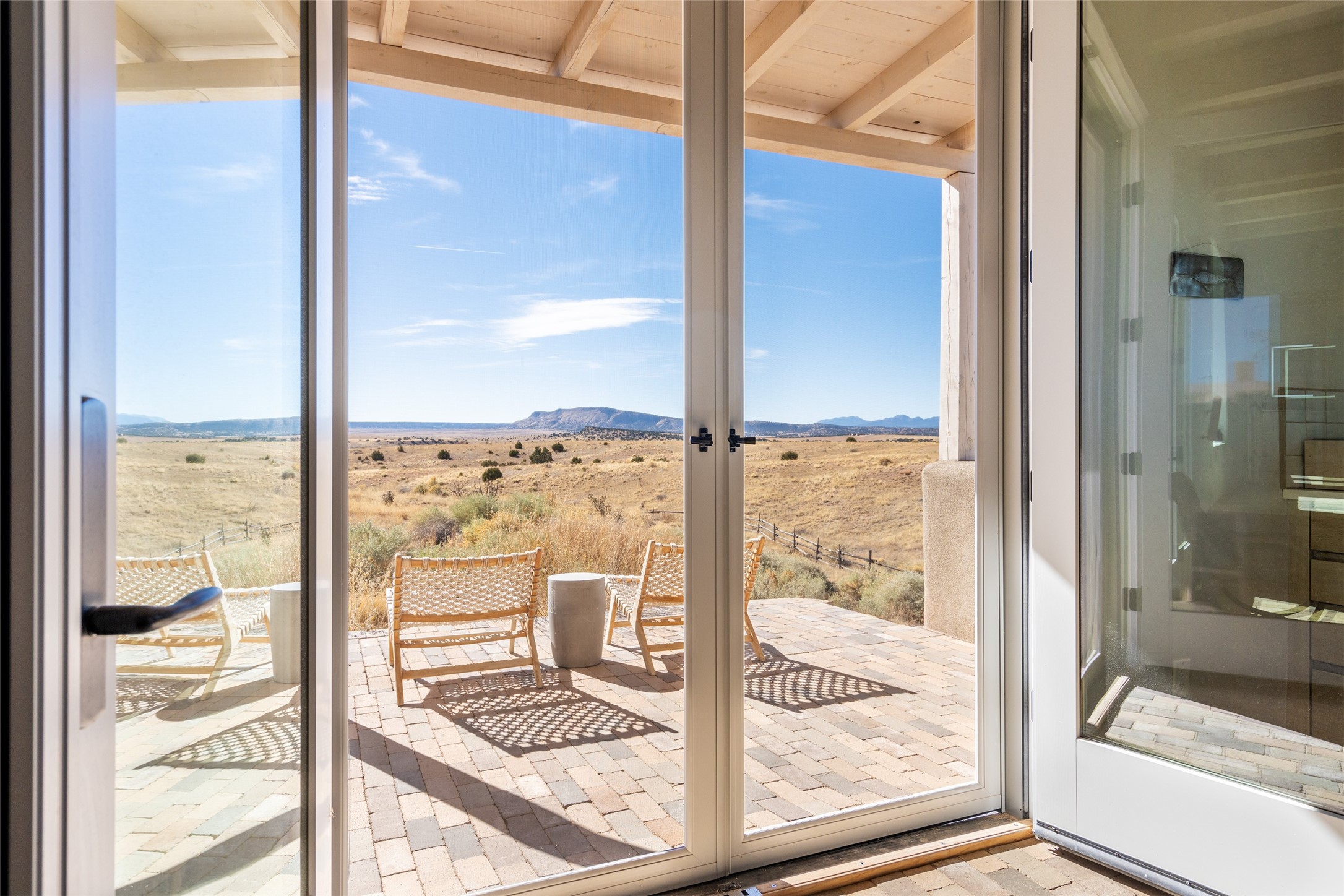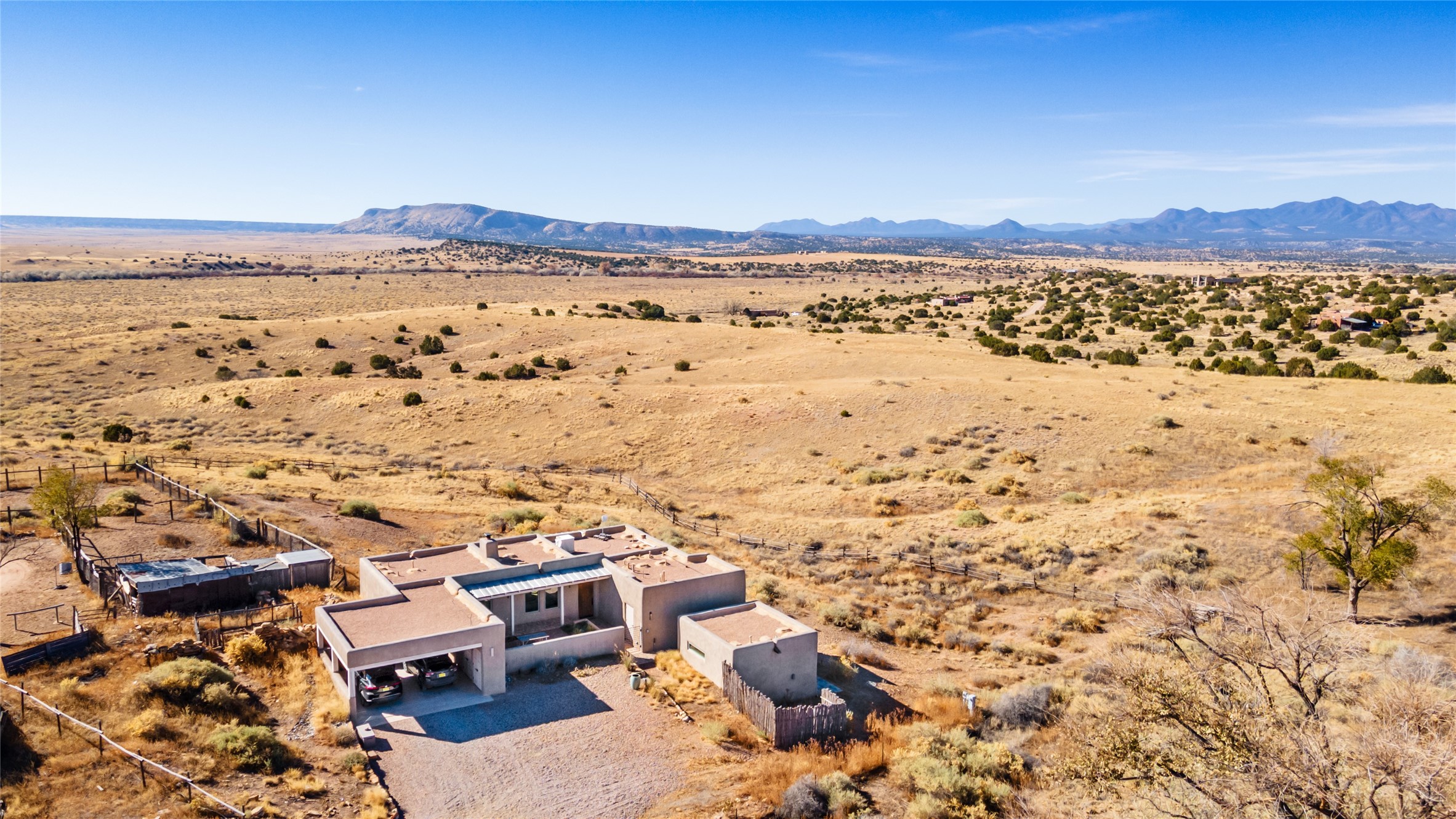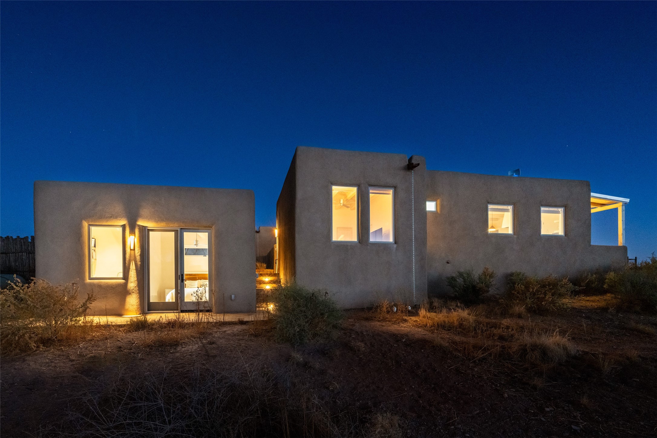 Spectacular adobe home and casita by custom builder Andrew Geer created from handmade adobe bricks in the historic village of Galisteo, offering luxurious living and majestic views overlooking the beautiful Cerro Pelon Ranch.Entertainers and chefs will adore the kitchen with Energy Star appliances, a Wolf dual fuel range oven, and incredible views for doing dishes. The home's large windows allow the outdoors in, creating a spacious feeling in the dining and main living areas in this open floor plan 2 bed, 2 bath main home. The contemporary design features modern amenities including an energy efficient HERS Index of 55, radiant heating, and satellite internet with whole house wi-fi, combined with old world accents such as brick floors and beam ceilings, with a sleek fireplace and intimate ambiance.Nature lovers will prize the abundant natural light from walls full of glass doors and picture windows, as well as a private courtyard and open back patio gazing across the epic landscape and dazzling skies. Artists, remote workers, and guests will love the adobe studio casita with office/flex nook and bath.This special property is a unique blend of past and present, an alluring oasis a world away yet within arms reach of the vibrance and culture of downtown Santa Fe.Experience its splendor today.