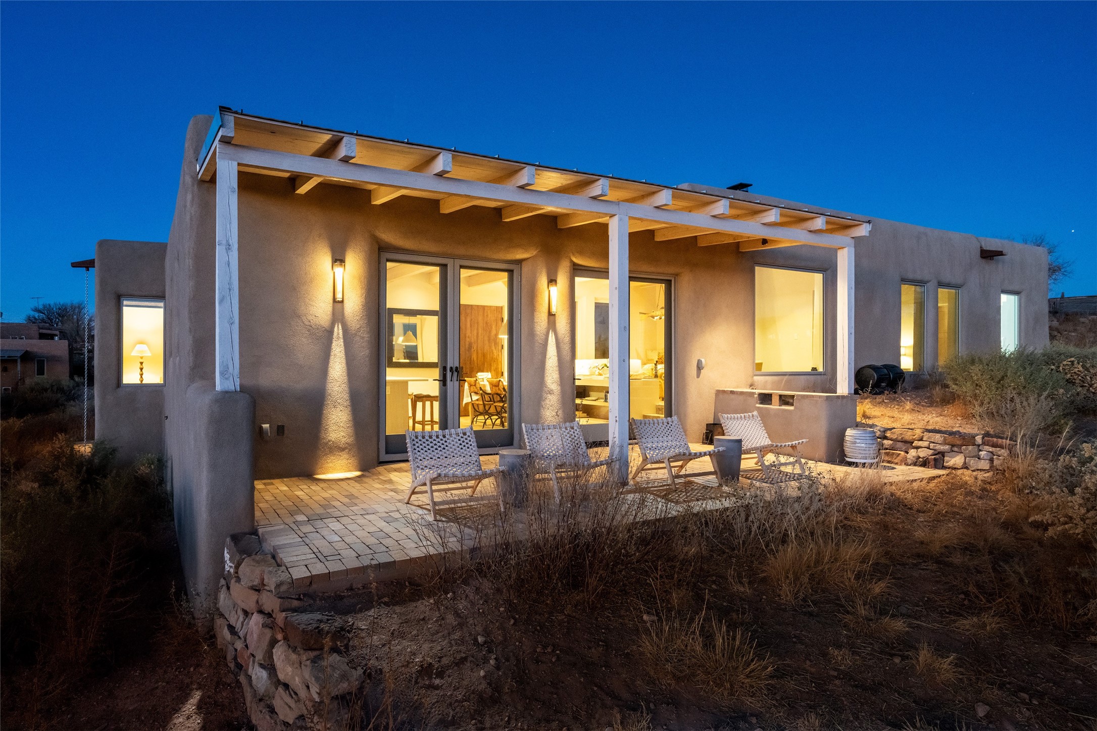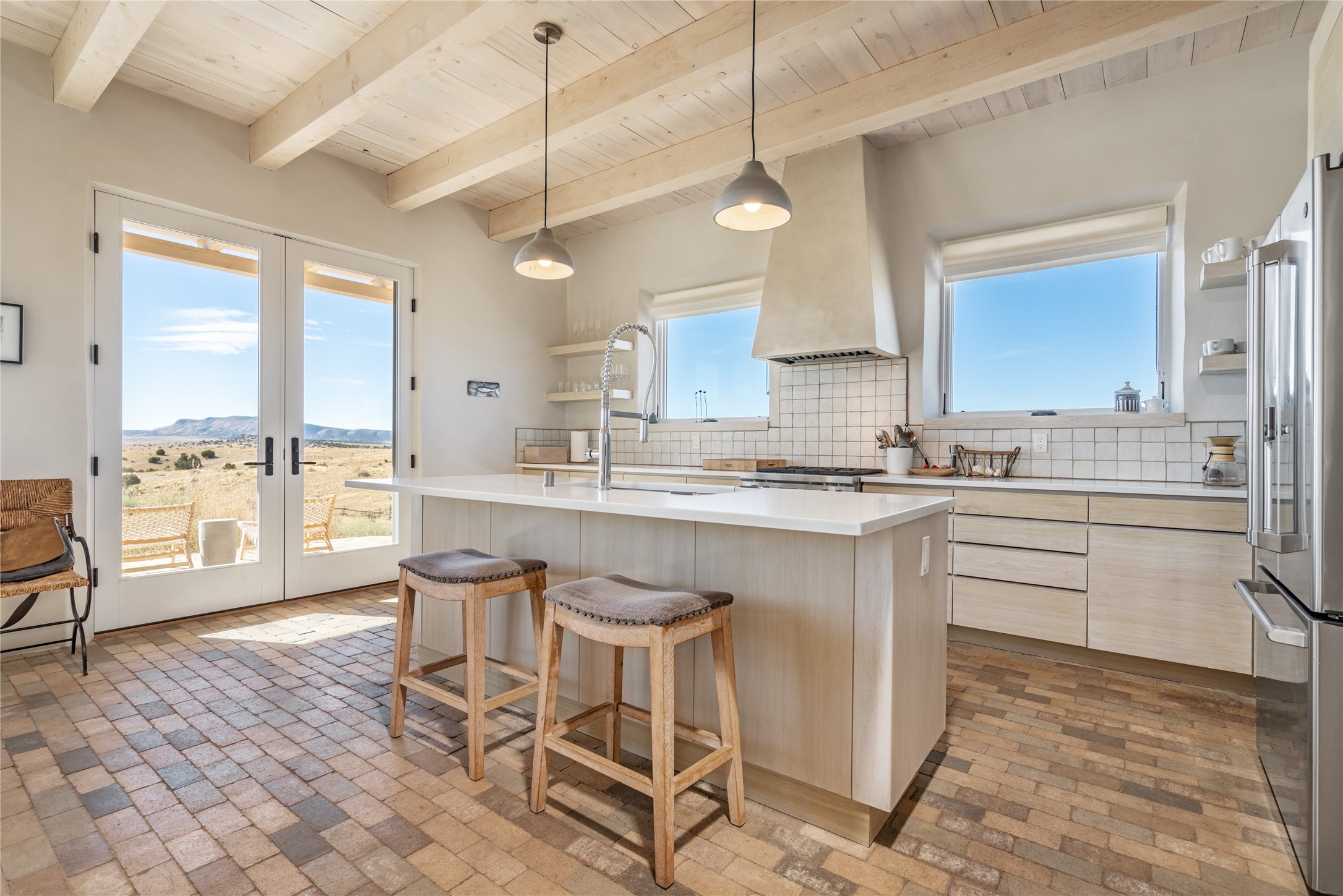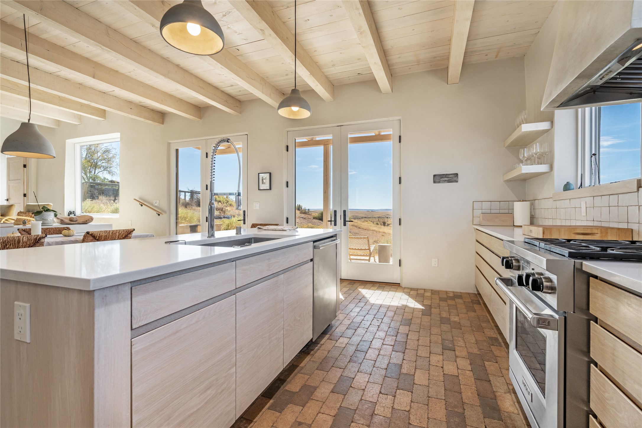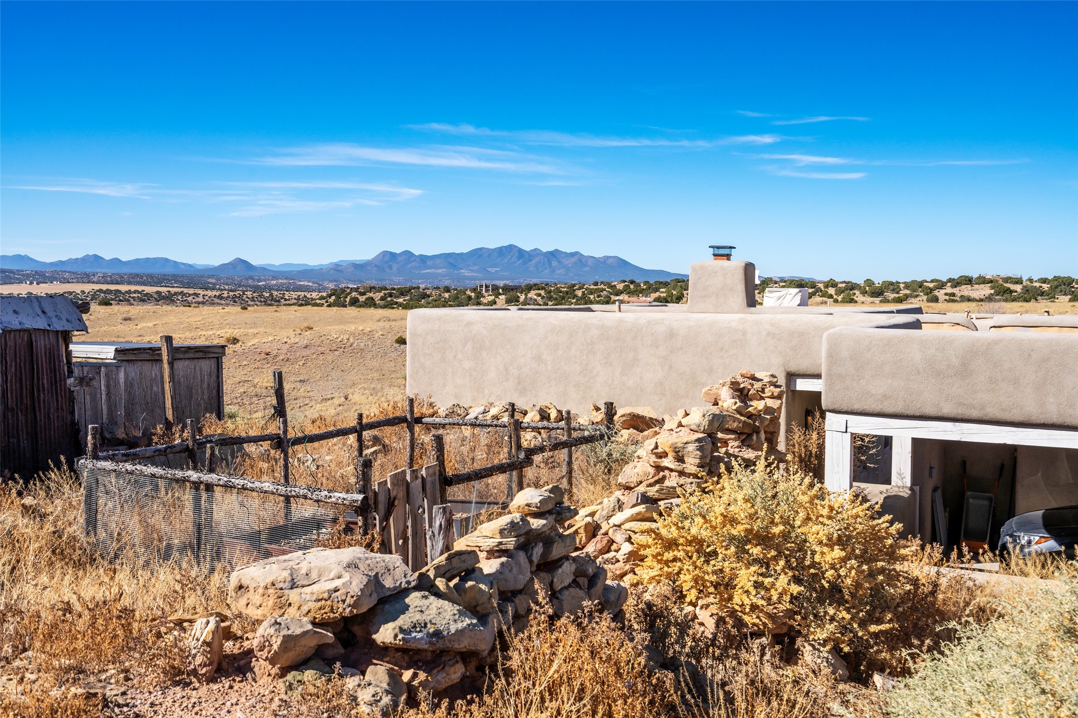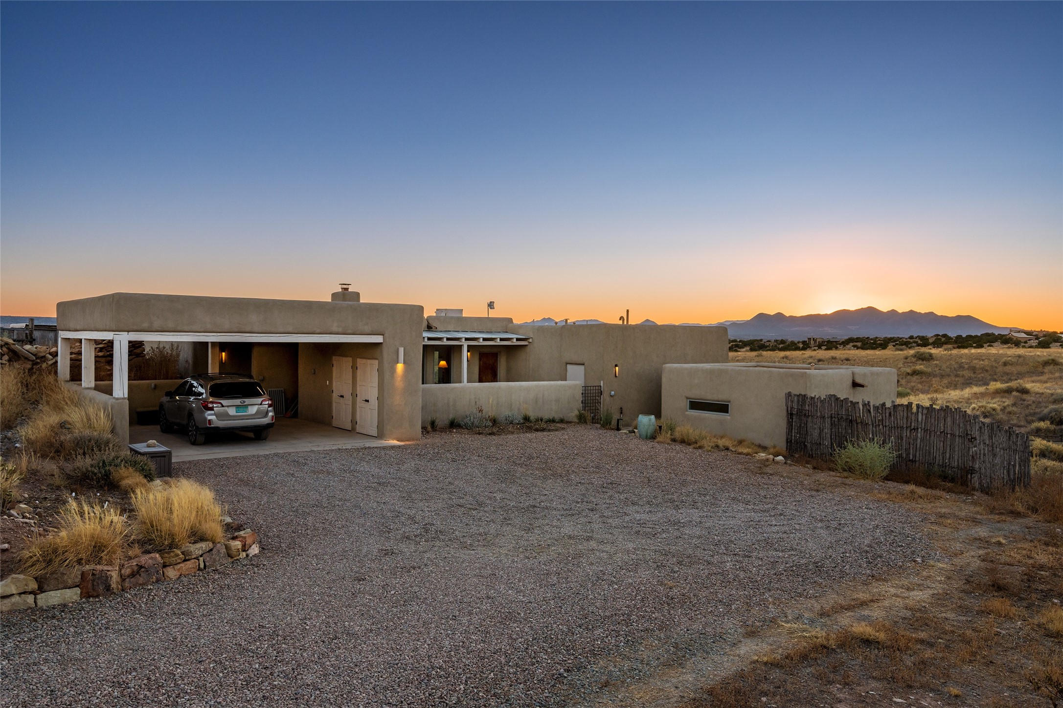 Spectacular adobe home and casita by custom builder Andrew Geer created from handmade adobe bricks in the historic village of Galisteo, offering luxurious living and majestic views overlooking the beautiful Cerro Pelon Ranch.Entertainers and chefs will adore the kitchen with Energy Star appliances, a Wolf dual fuel range oven, and incredible views for doing dishes. The home's large windows allow the outdoors in, creating a spacious feeling in the dining and main living areas in this open floor plan 2 bed, 2 bath main home. The contemporary design features modern amenities including an energy efficient HERS Index of 55, radiant heating, and satellite internet with whole house wi-fi, combined with old world accents such as brick floors and beam ceilings, with a sleek fireplace and intimate ambiance.Nature lovers will prize the abundant natural light from walls full of glass doors and picture windows, as well as a private courtyard and open back patio gazing across the epic landscape and dazzling skies. Artists, remote workers, and guests will love the adobe studio casita with office/flex nook and bath.This special property is a unique blend of past and present, an alluring oasis a world away yet within arms reach of the vibrance and culture of downtown Santa Fe.Experience its splendor today.