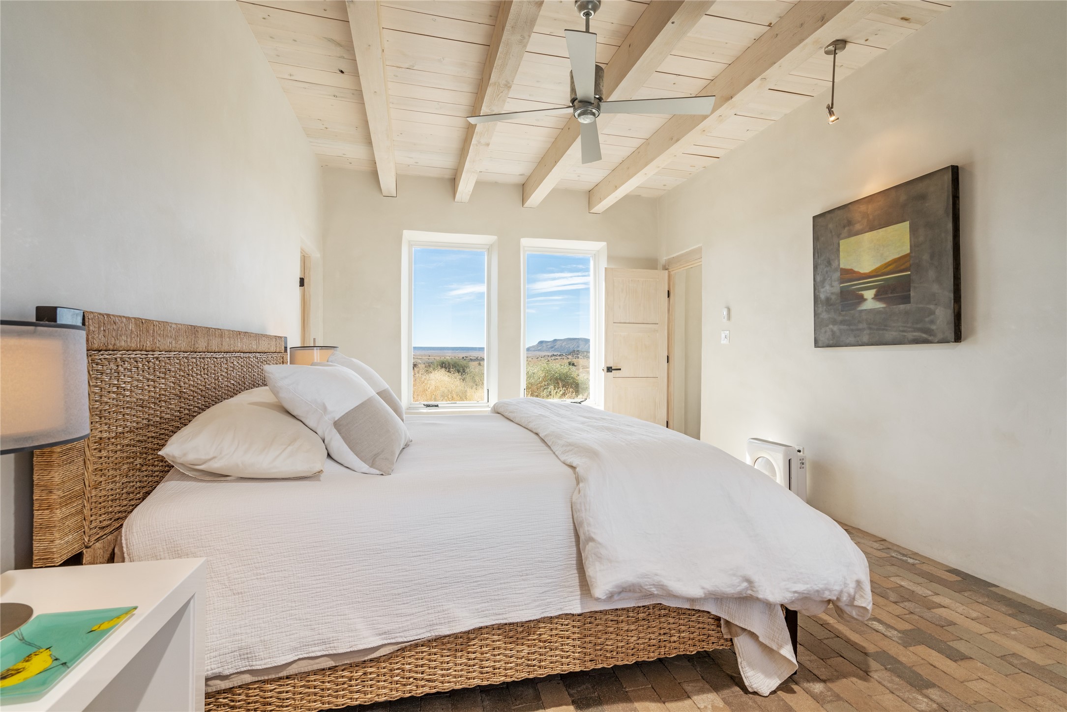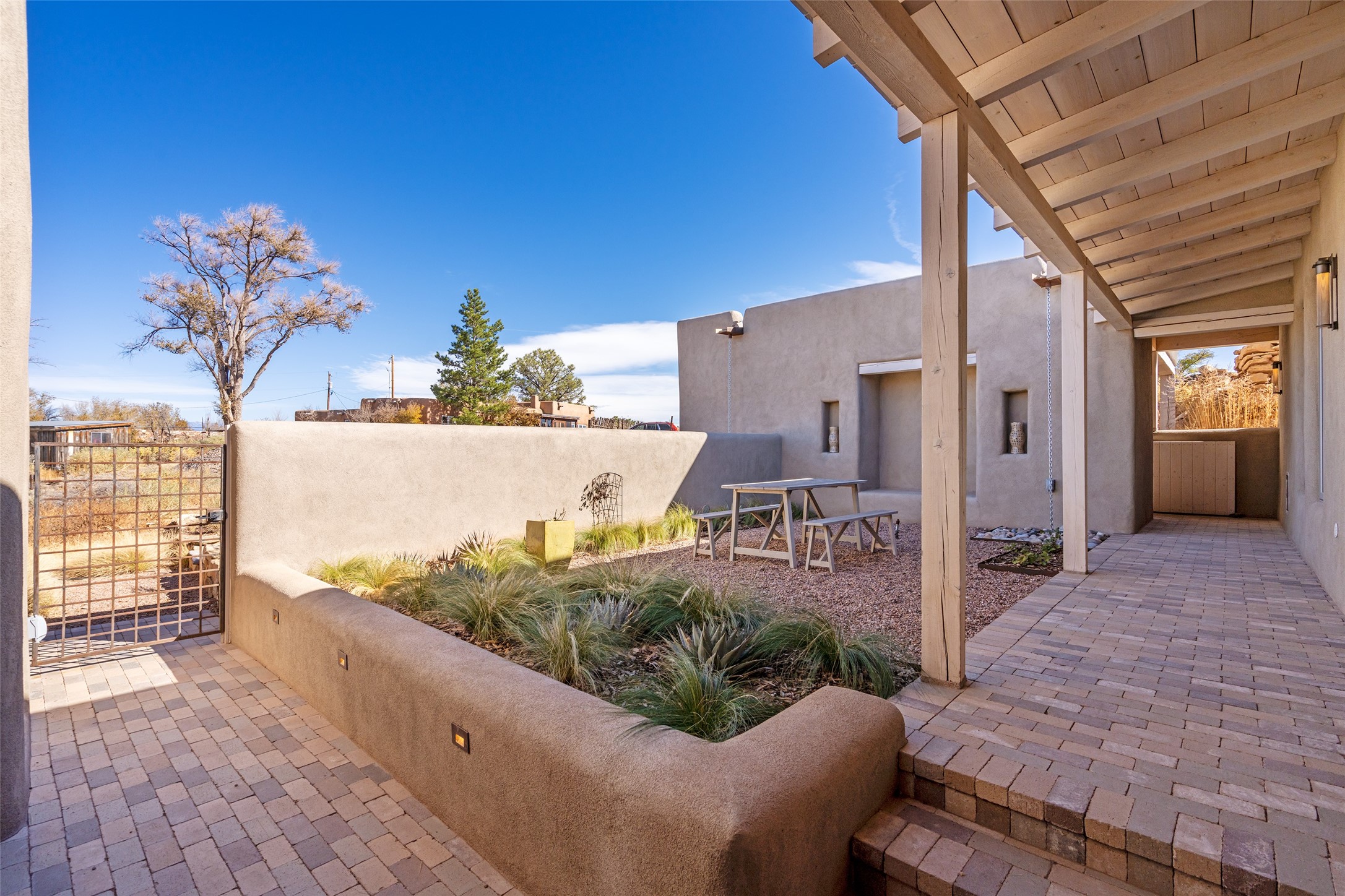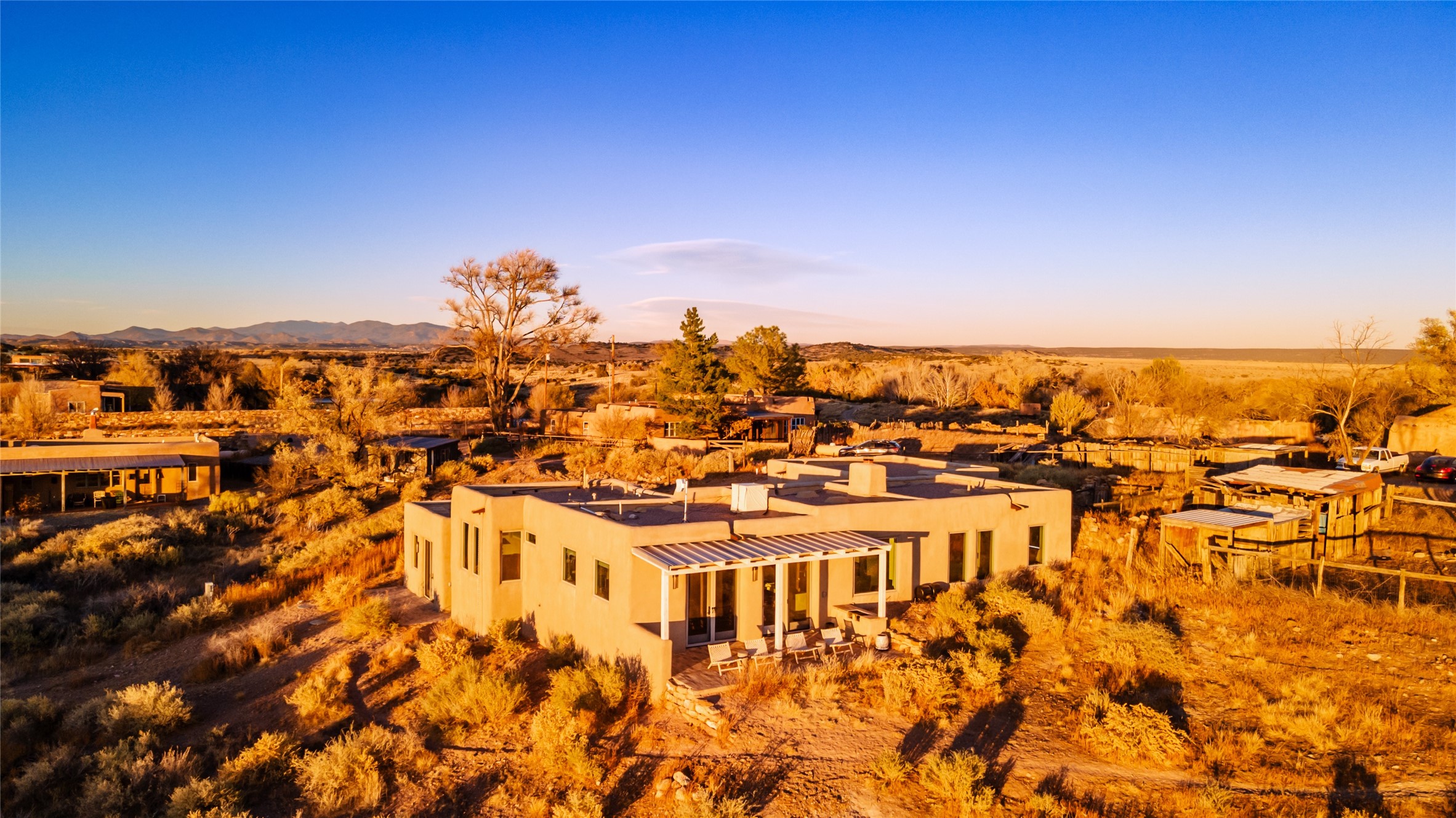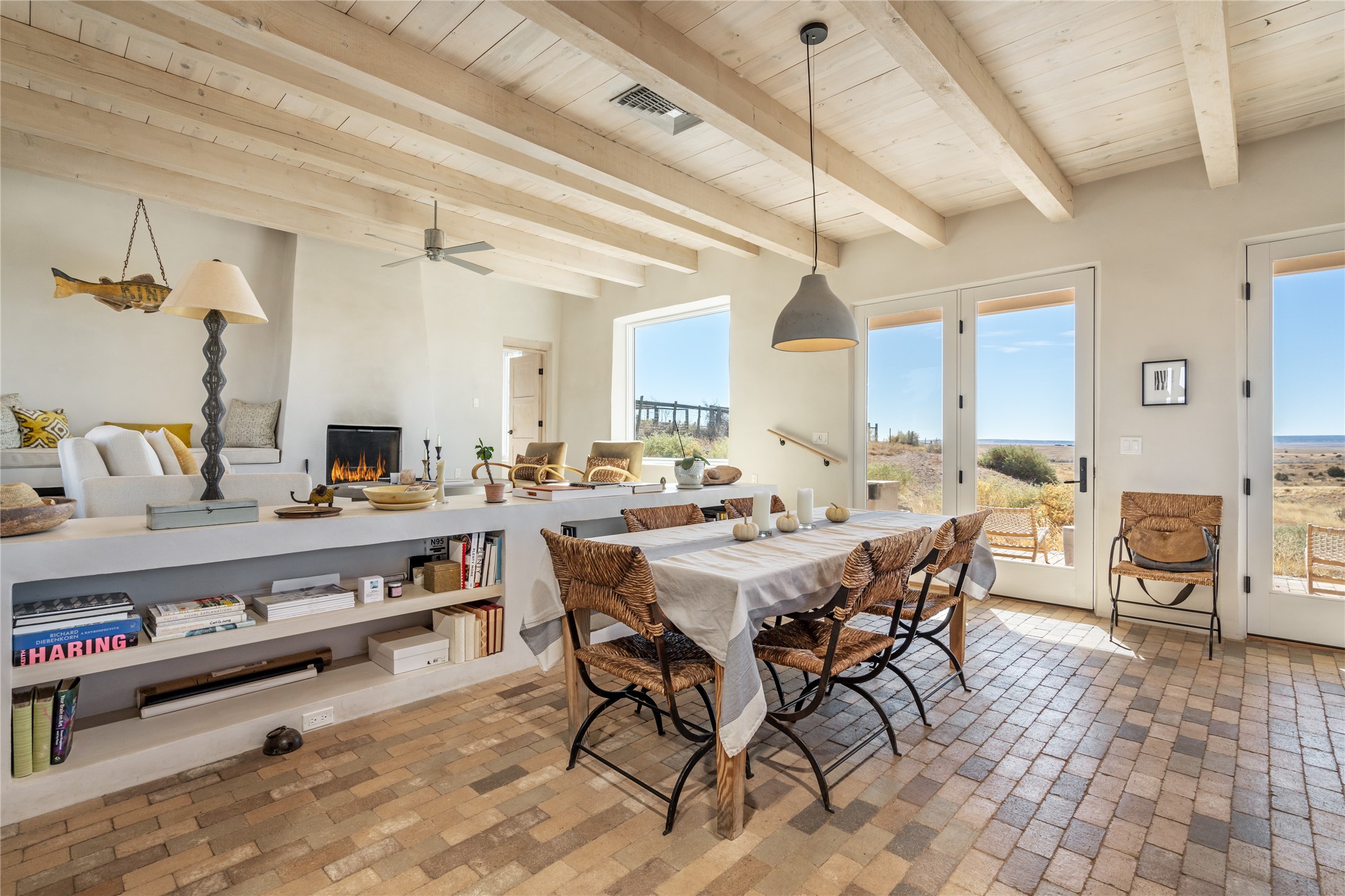 Spectacular adobe home and casita by custom builder Andrew Geer created from handmade adobe bricks in the historic village of Galisteo, offering luxurious living and majestic views overlooking the beautiful Cerro Pelon Ranch.Entertainers and chefs will adore the kitchen with Energy Star appliances, a Wolf dual fuel range oven, and incredible views for doing dishes. The home's large windows allow the outdoors in, creating a spacious feeling in the dining and main living areas in this open floor plan 2 bed, 2 bath main home. The contemporary design features modern amenities including an energy efficient HERS Index of 55, radiant heating, and satellite internet with whole house wi-fi, combined with old world accents such as brick floors and beam ceilings, with a sleek fireplace and intimate ambiance.Nature lovers will prize the abundant natural light from walls full of glass doors and picture windows, as well as a private courtyard and open back patio gazing across the epic landscape and dazzling skies. Artists, remote workers, and guests will love the adobe studio casita with office/flex nook and bath.This special property is a unique blend of past and present, an alluring oasis a world away yet within arms reach of the vibrance and culture of downtown Santa Fe.Experience its splendor today.