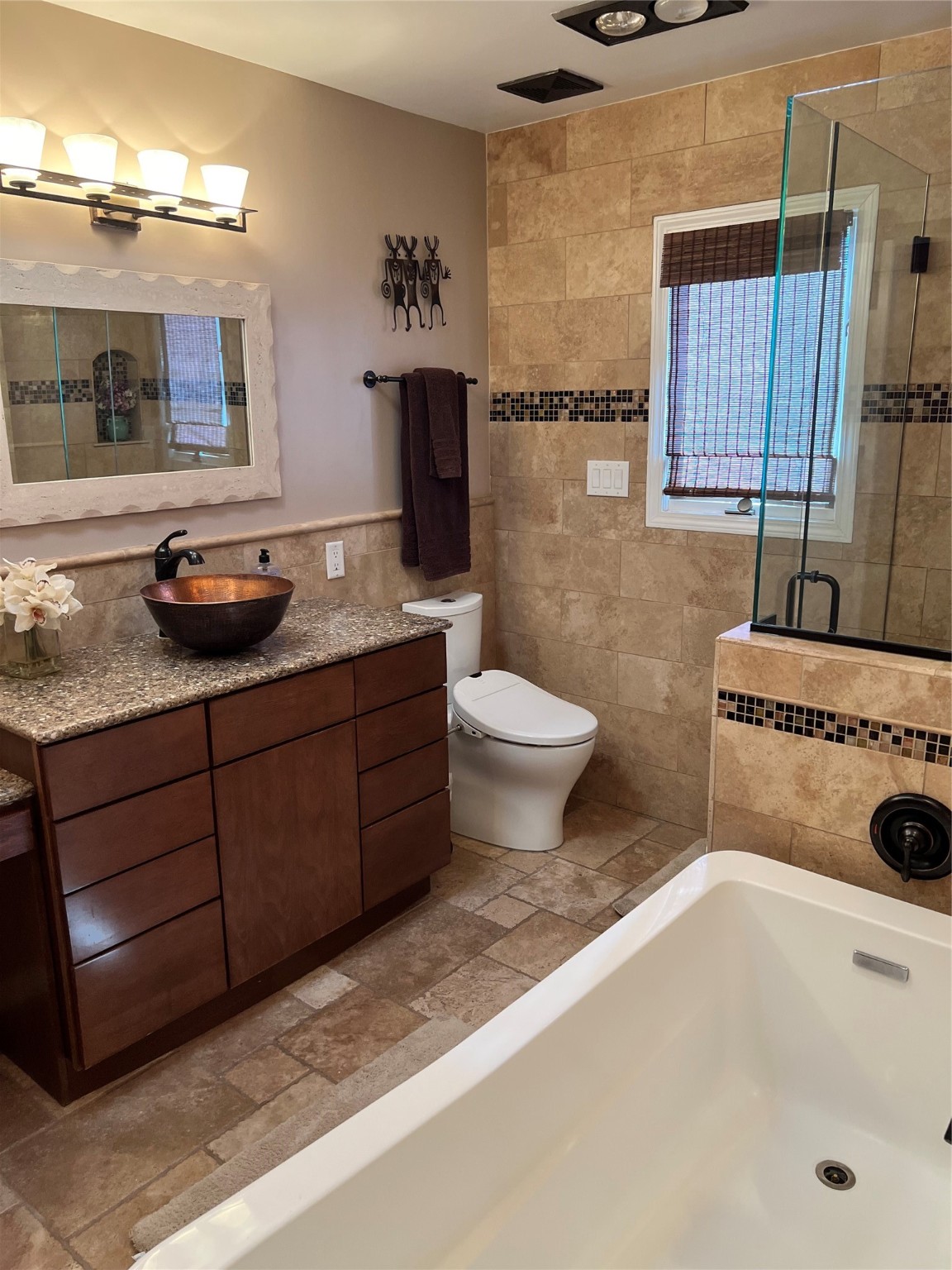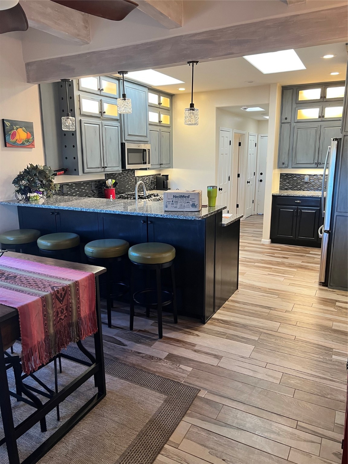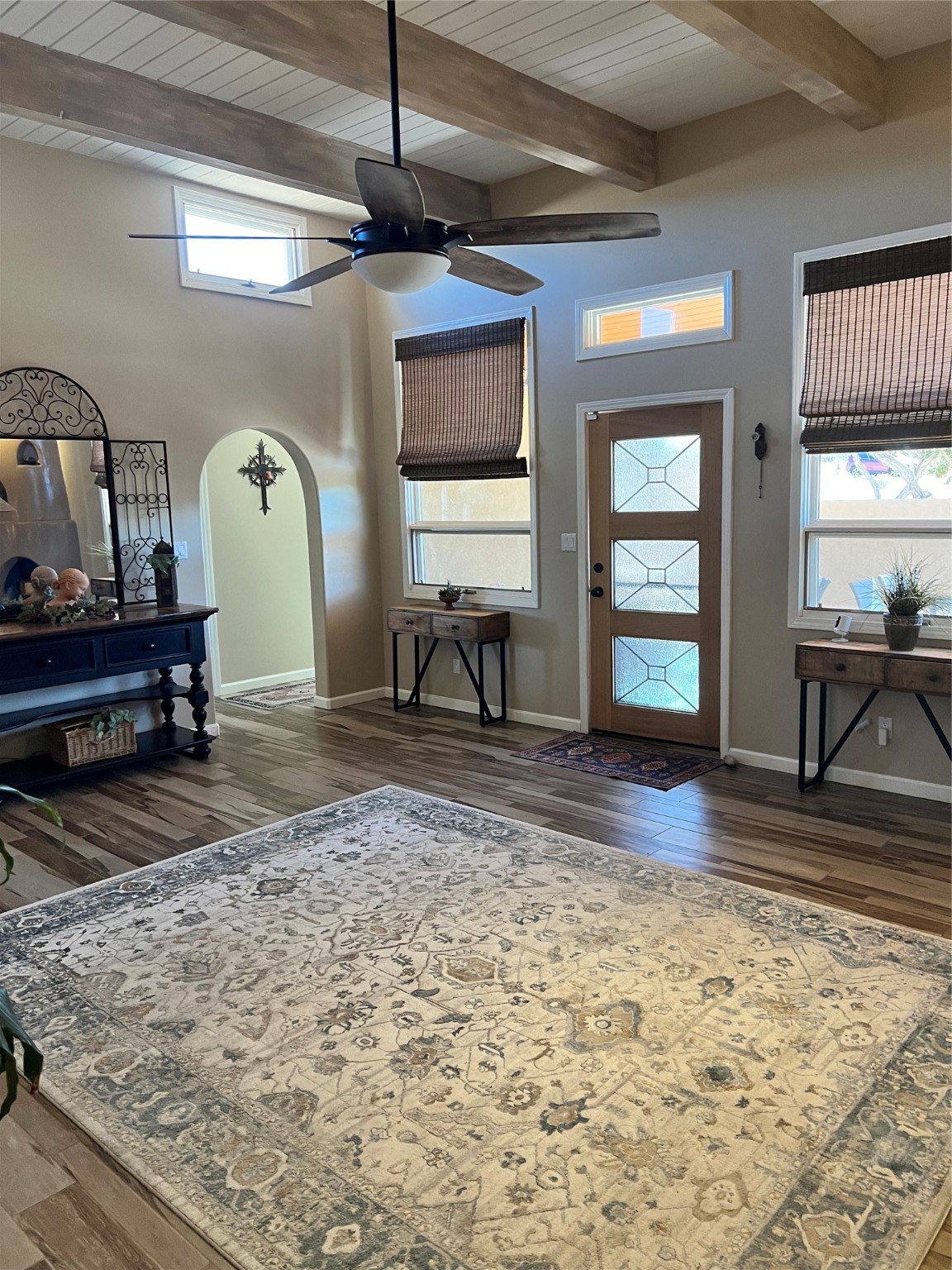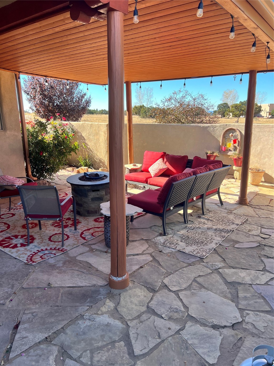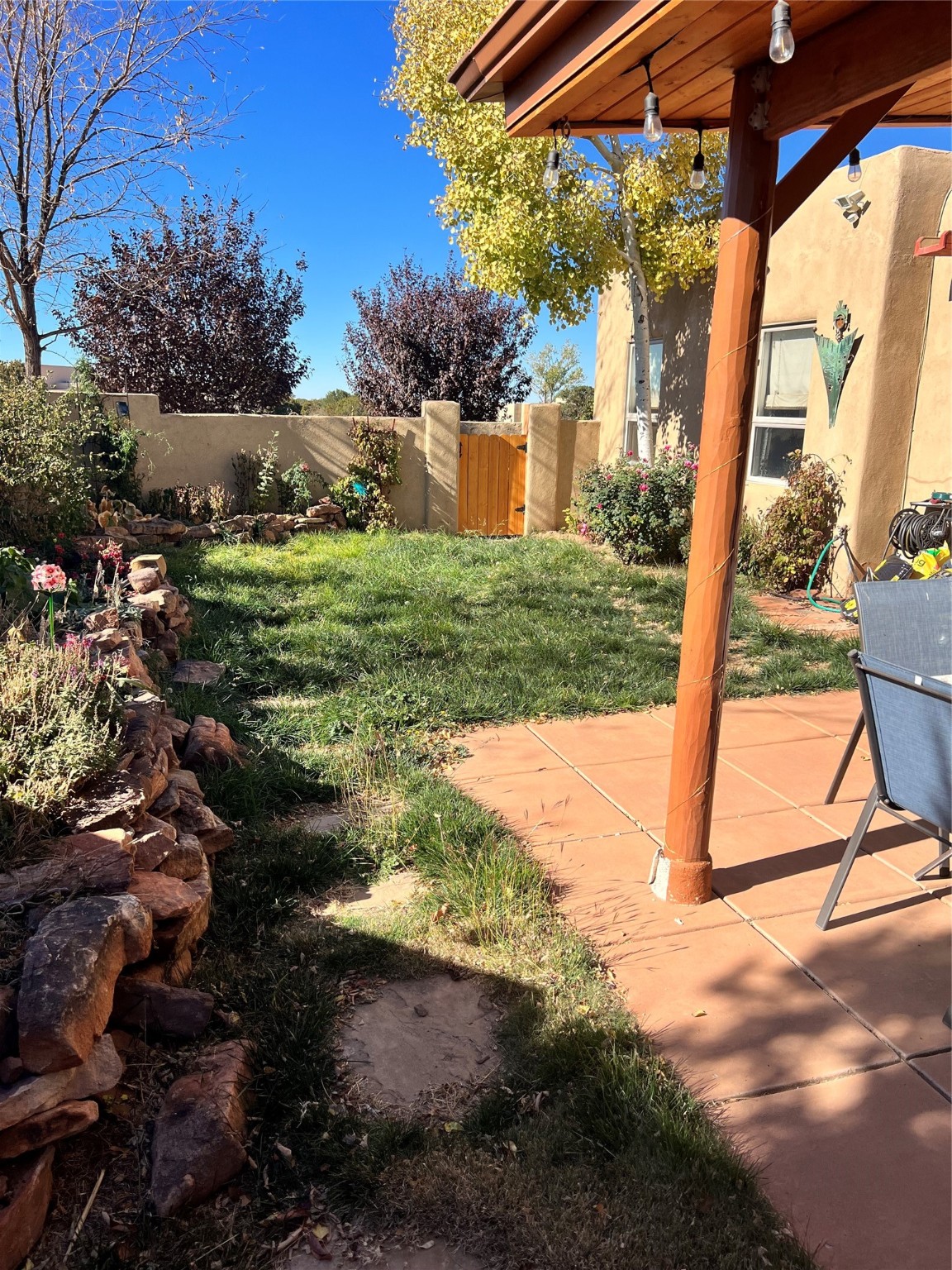 This is a pride of the owner. Well taken care of house that makes everyone feel at home once they walk in the house. Nice walled and gated side courtyard with aspens, flower gardens and rock work. This home has high ceilings, carpet, great bedroom separation, wood tile flooring, a kiva fireplace with beams and TandG, Sangre de Cristo and Jemez views.