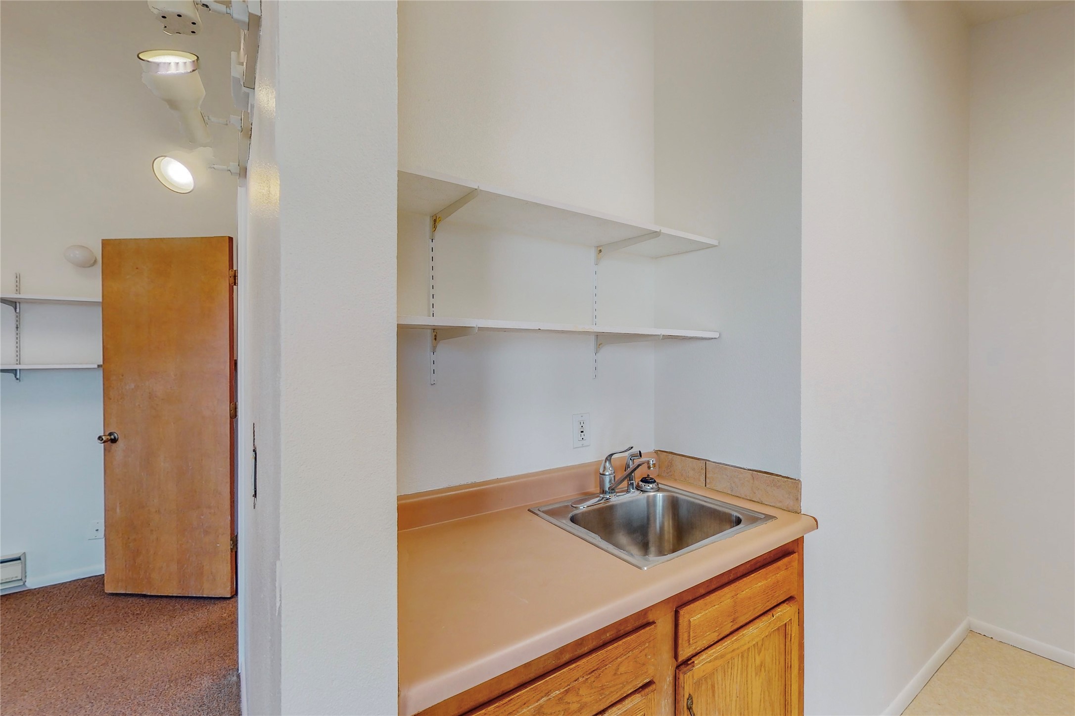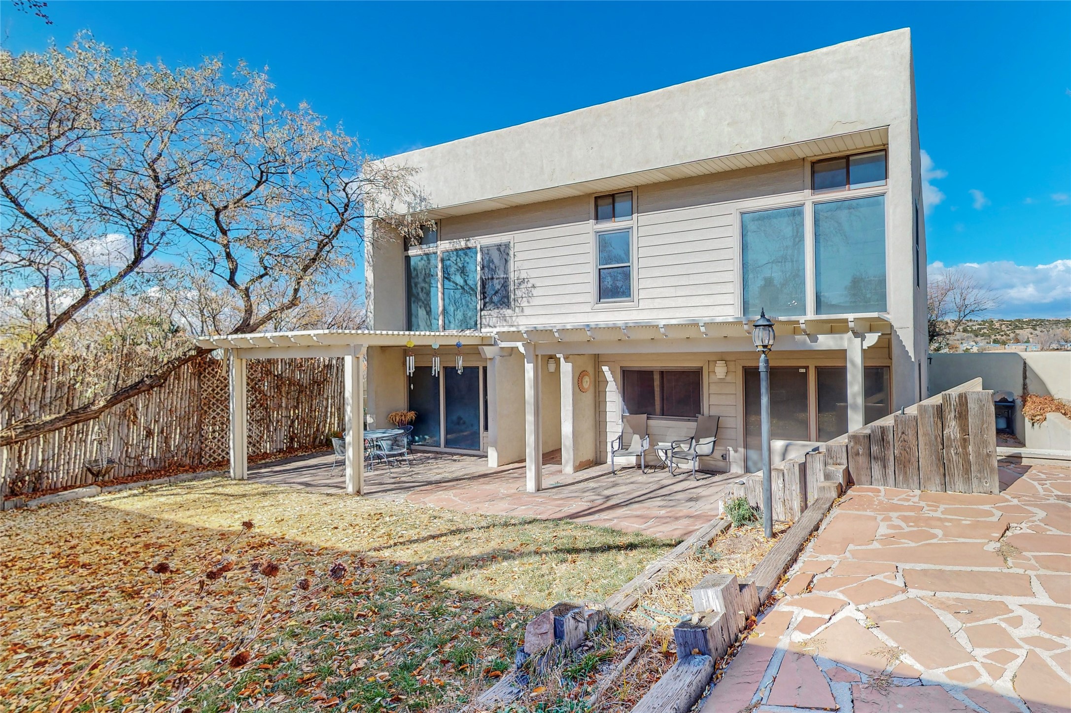 Located in Pueblo Alegre this one owner home is move in ready. It has been freshly painted and new carpet has been installed. There is one bedroom and bath on the lower level. The principal bedroom and bath is on the upper level next to a light filled loft that could be an office, den or even a nursery. There are large closets that provide ample storage. The wood burning kiva fireplace in the living room will bring warmth and comfort to cold winter nights. The private yard with mature trees and lawn is perfect for those summer gatherings. Last but not least, there is a CASITA!Think income producing, mother in law quarters, office, or man cave!! This delightful neighborhood with 2 private parks is across from Frenchy's Field and close to everything mid-town.