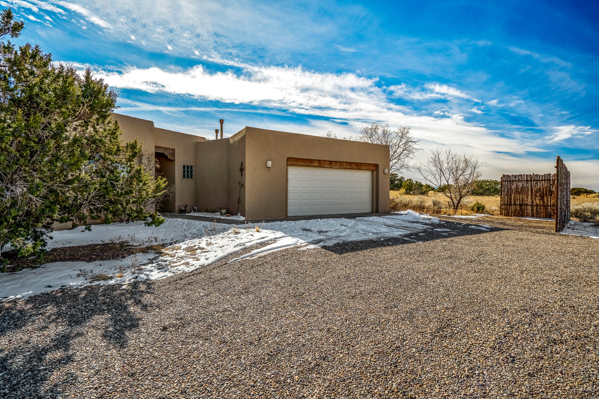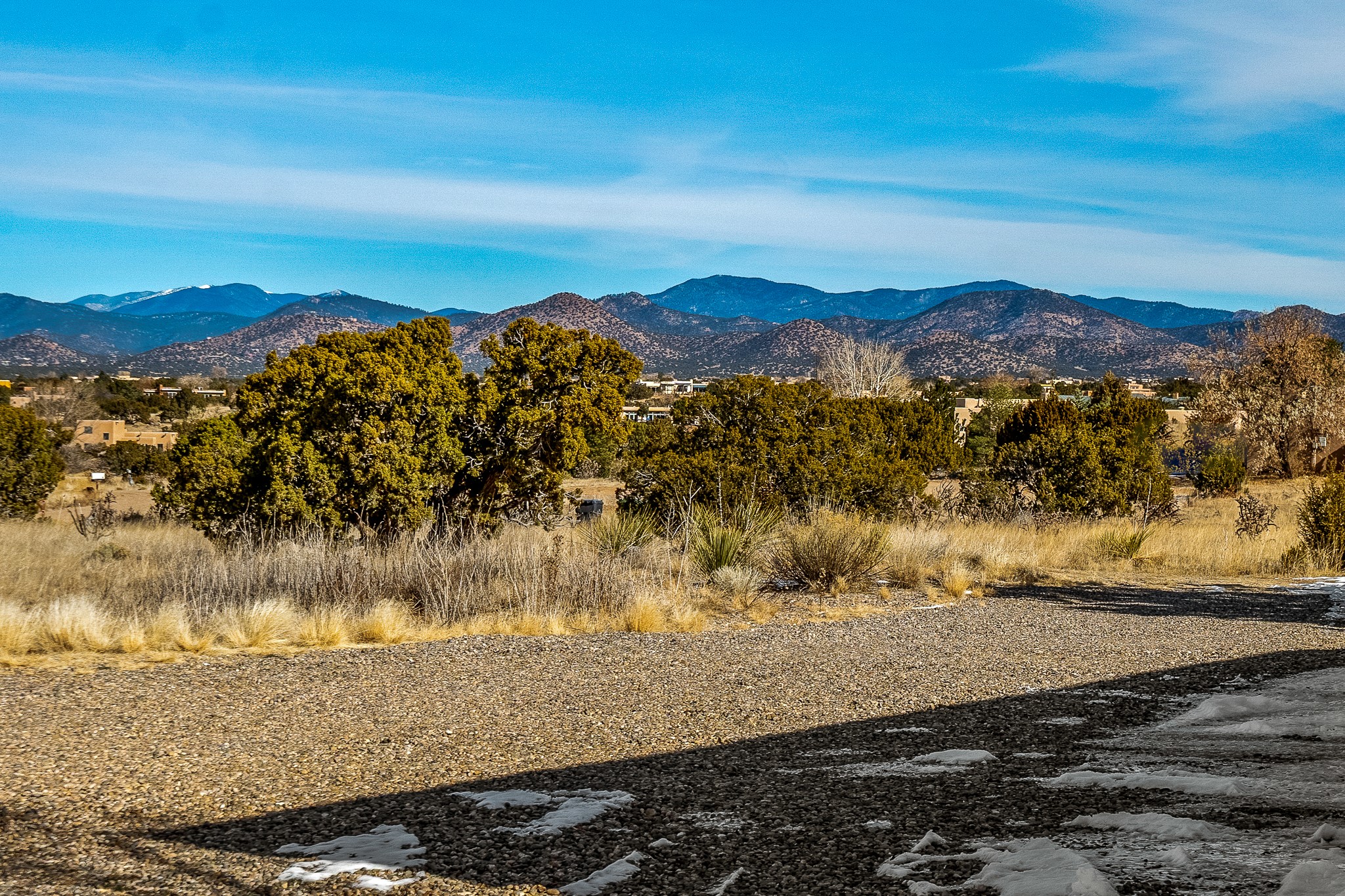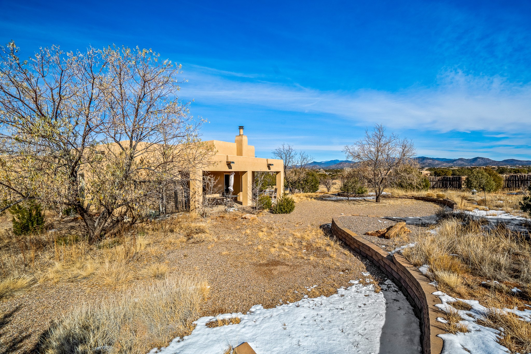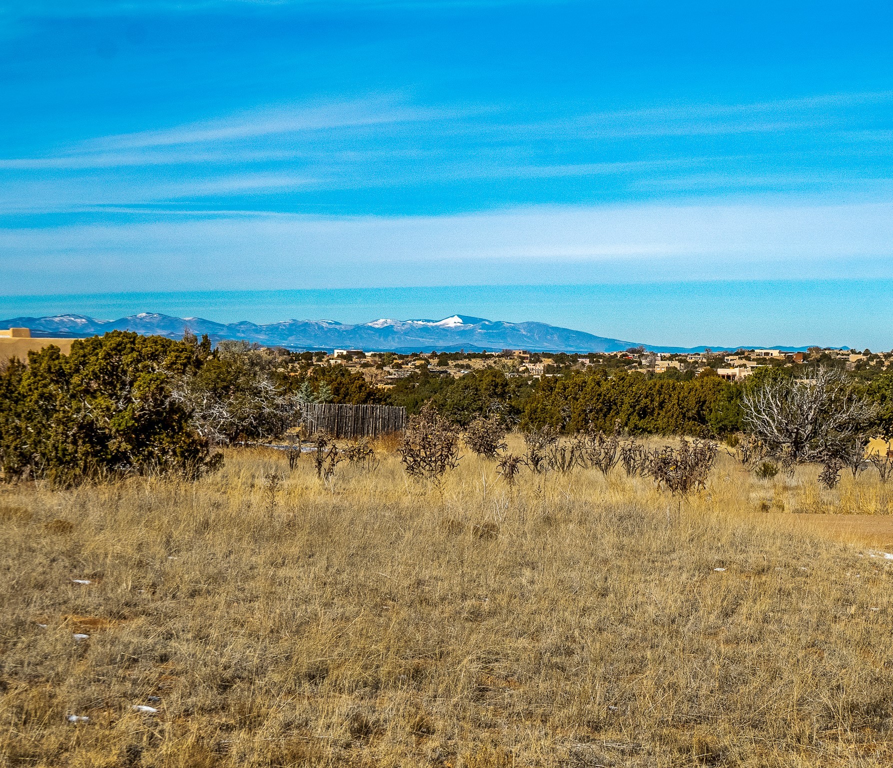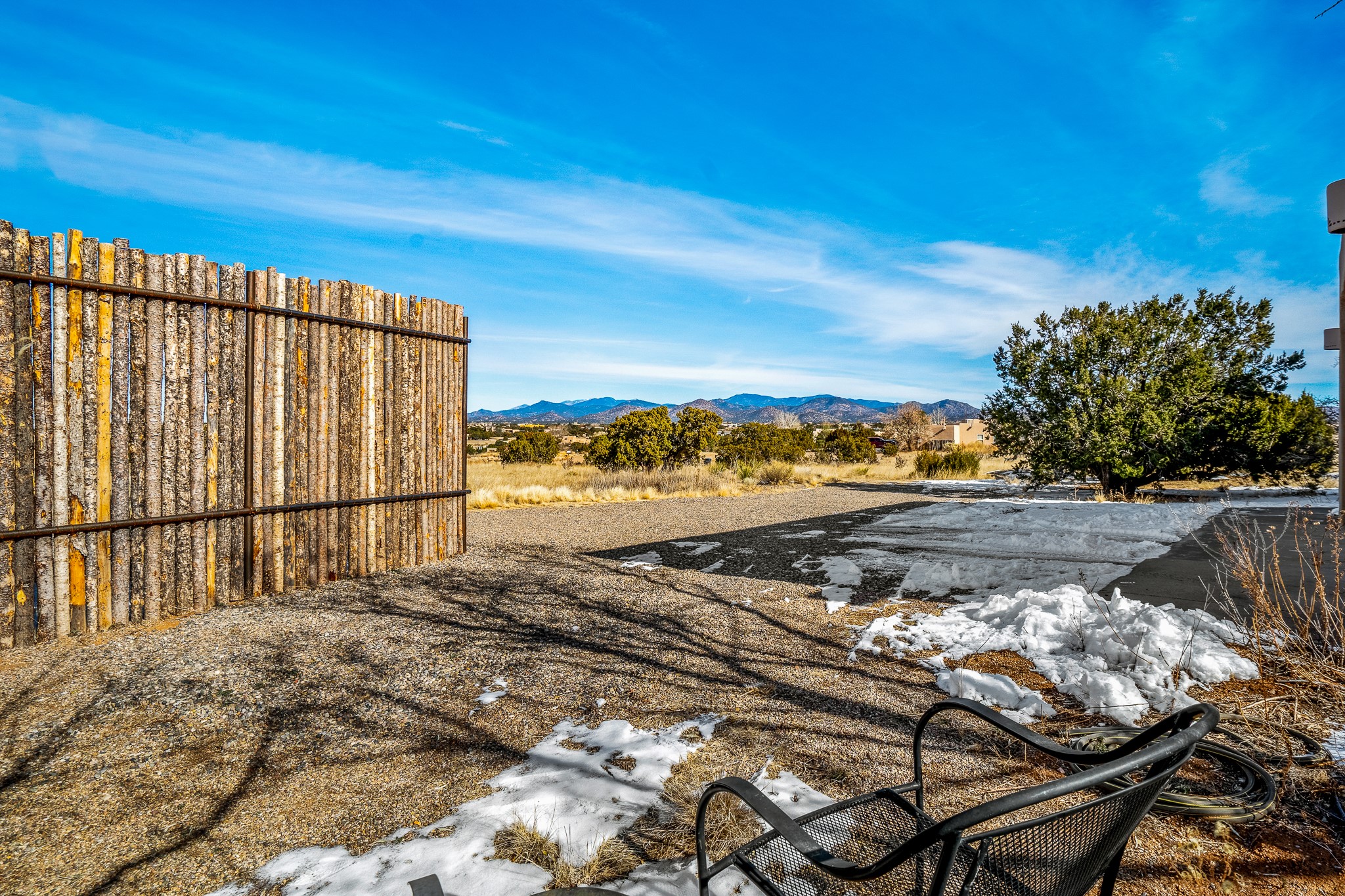 Lovely home on a view lot in desirable Eldorado. This 3 bedroom and 2 full bath home has been freshly painted and is ready for it's new owner. Features include: vigas in the living room, wood burning fire place with gas starter, open floor plan, stainless steel kitchen appliances, good sized pantry, nice separation of the bedrooms from the main living space, lots of natural light, wonderful back portal, designated laundry room, refrigerated whole house air-conditioning, HOA approved trailer or RV screen in place and a fantastic oversized two car garage. The Eldorado community offers many amenities which include tennis and pickle ball courts, hiking trails, a seasonal outdoor community pool and much more. Additionally Eldorado is home to a full purpose grocery store, hardware store, dining options, public library and a wonderful senior center.