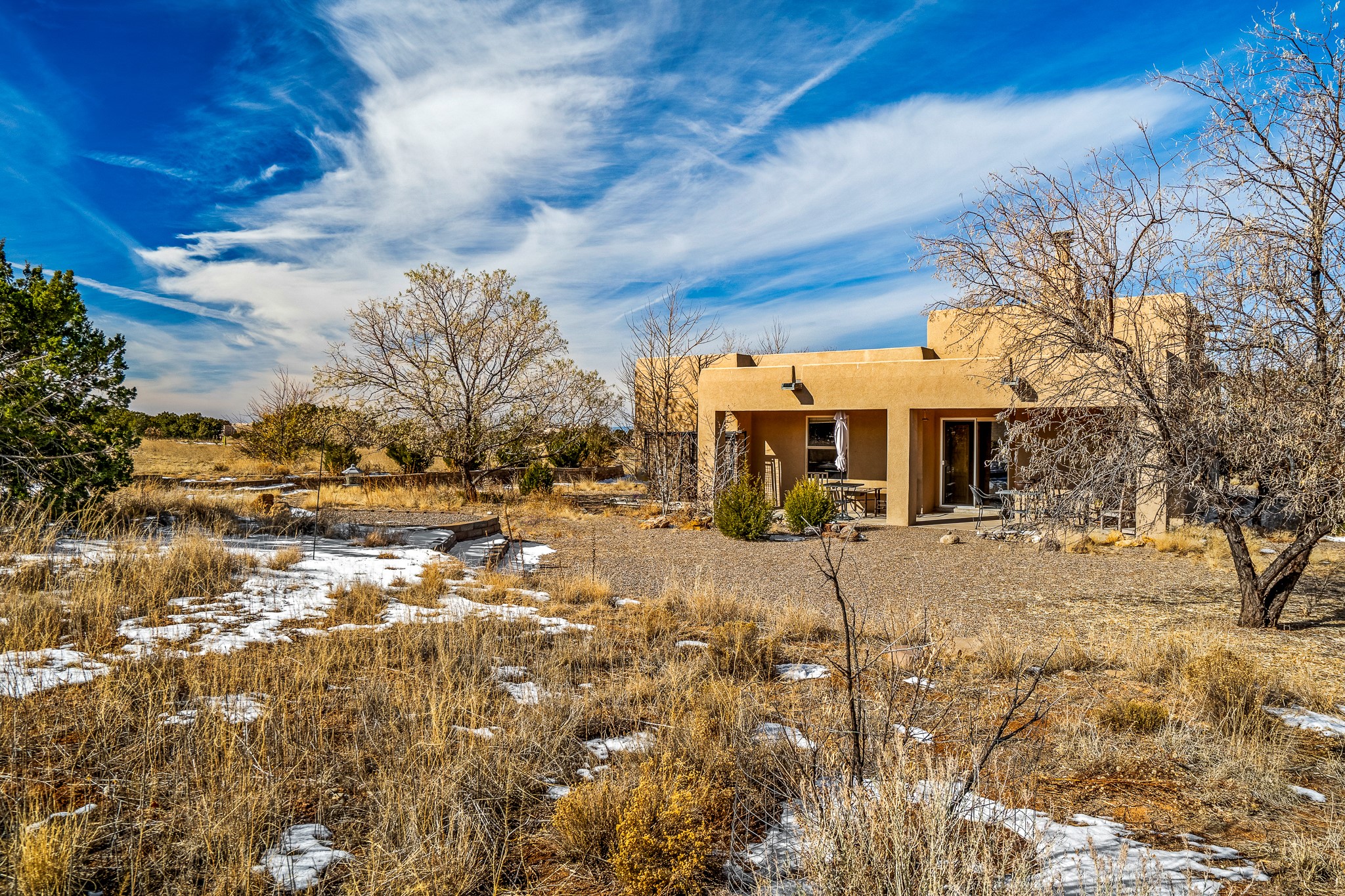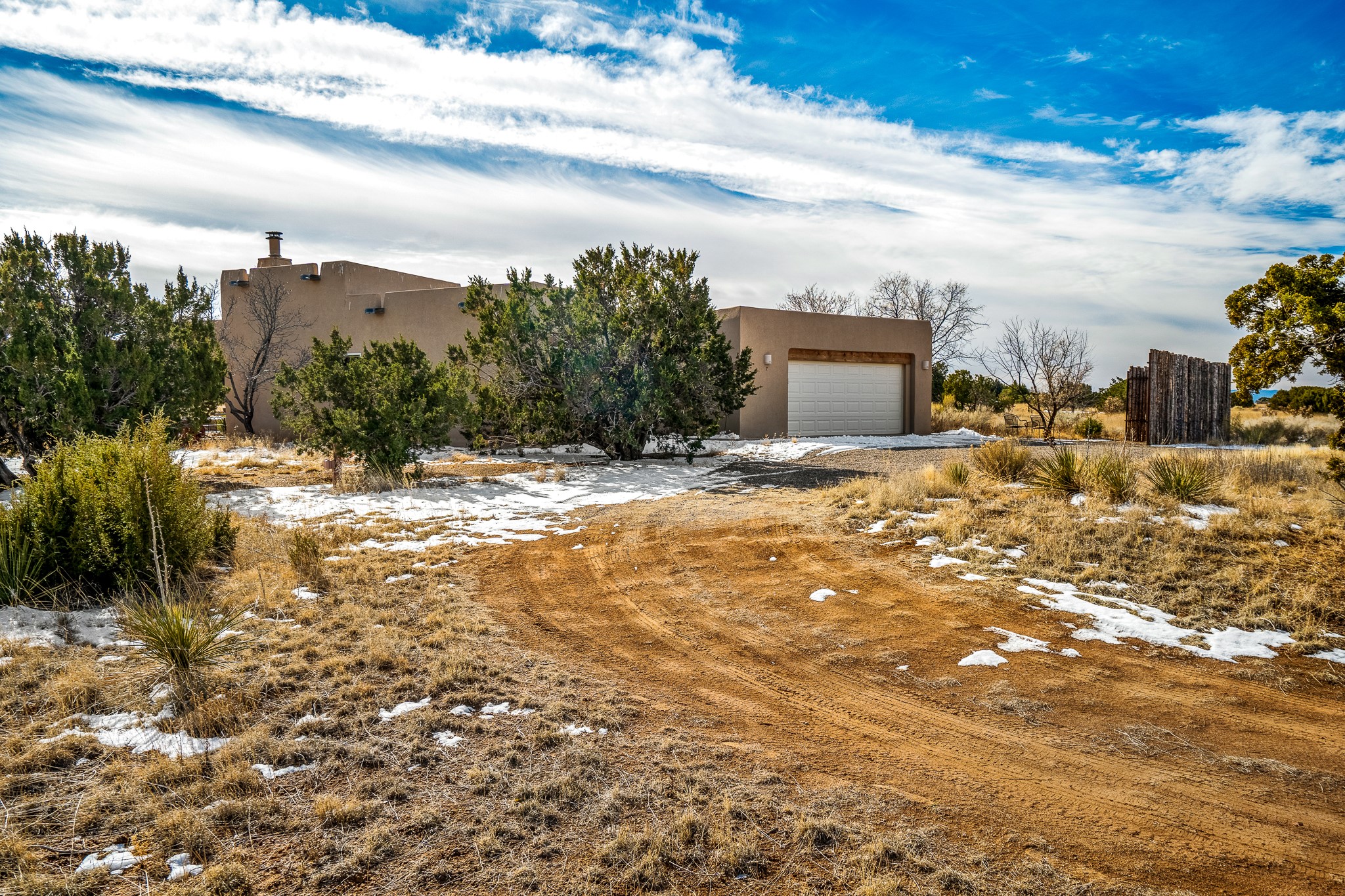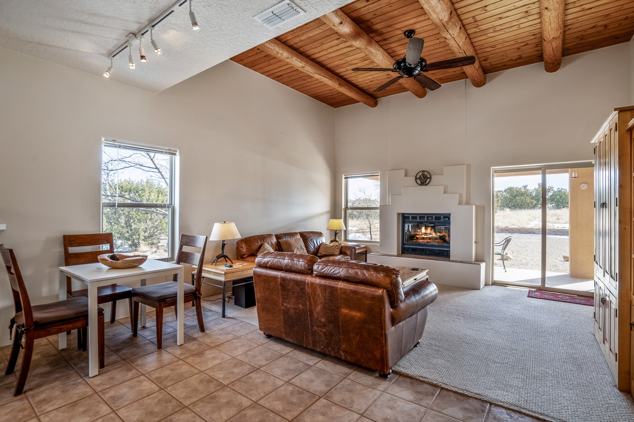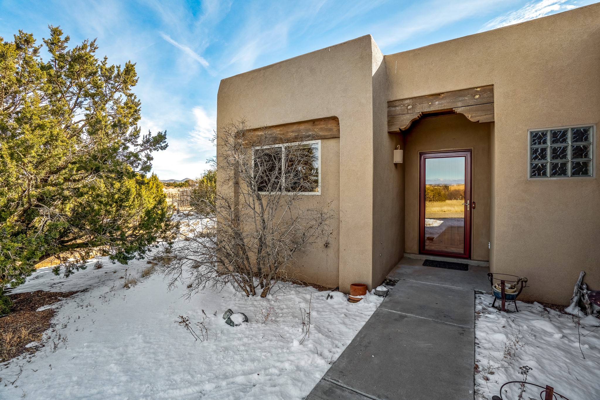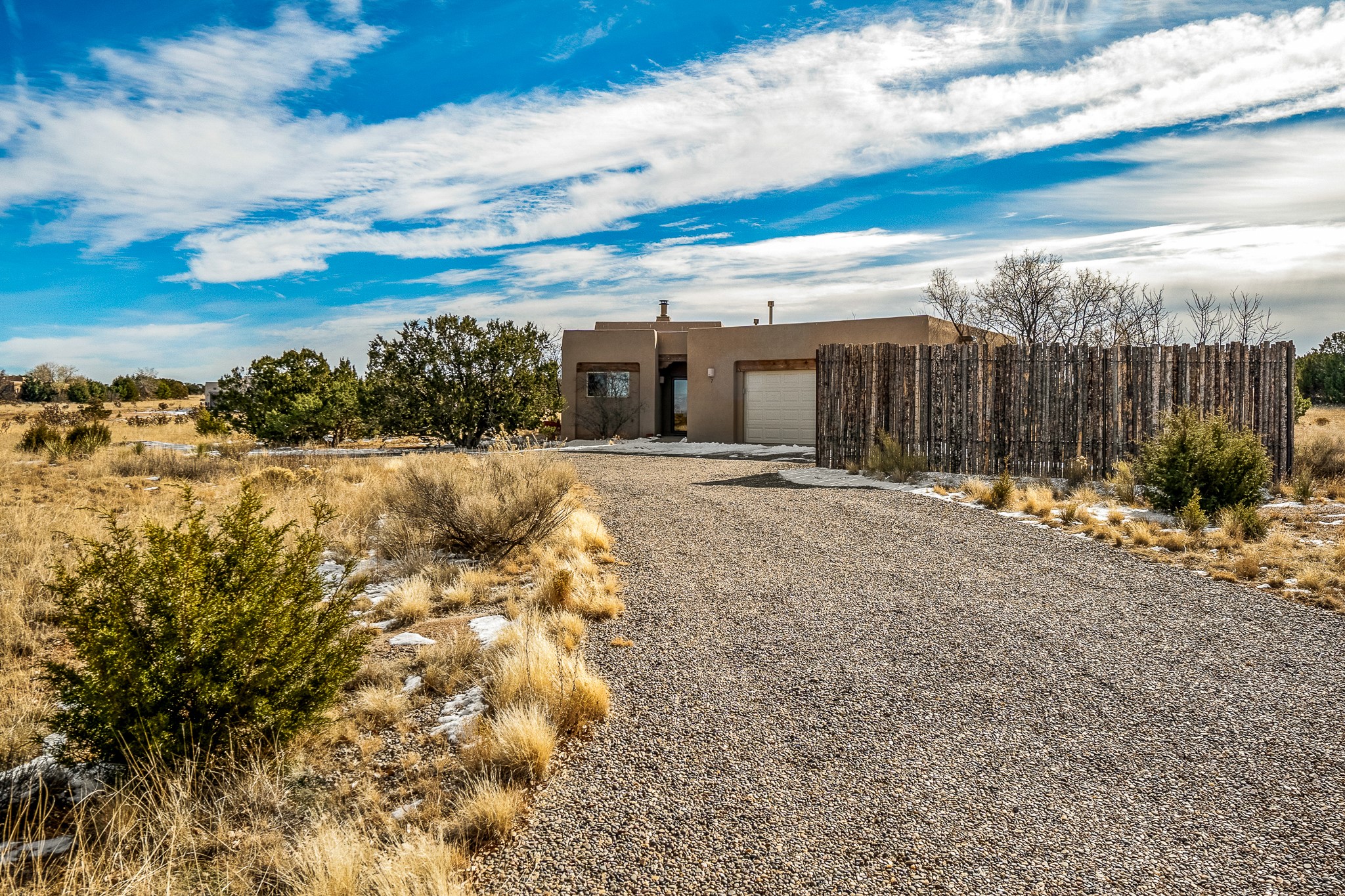Lovely home on a view lot in desirable Eldorado. This 3 bedroom and 2 full bath home has been freshly painted and is ready for it's new owner. Features include: vigas in the living room, wood burning fire place with gas starter, open floor plan, stainless steel kitchen appliances, good sized pantry, nice separation of the bedrooms from the main living space, lots of natural light, wonderful back portal, designated laundry room, refrigerated whole house air-conditioning, HOA approved trailer or RV screen in place and a fantastic oversized two car garage. The Eldorado community offers many amenities which include tennis and pickle ball courts, hiking trails, a seasonal outdoor community pool and much more. Additionally Eldorado is home to a full purpose grocery store, hardware store, dining options, public library and a wonderful senior center.