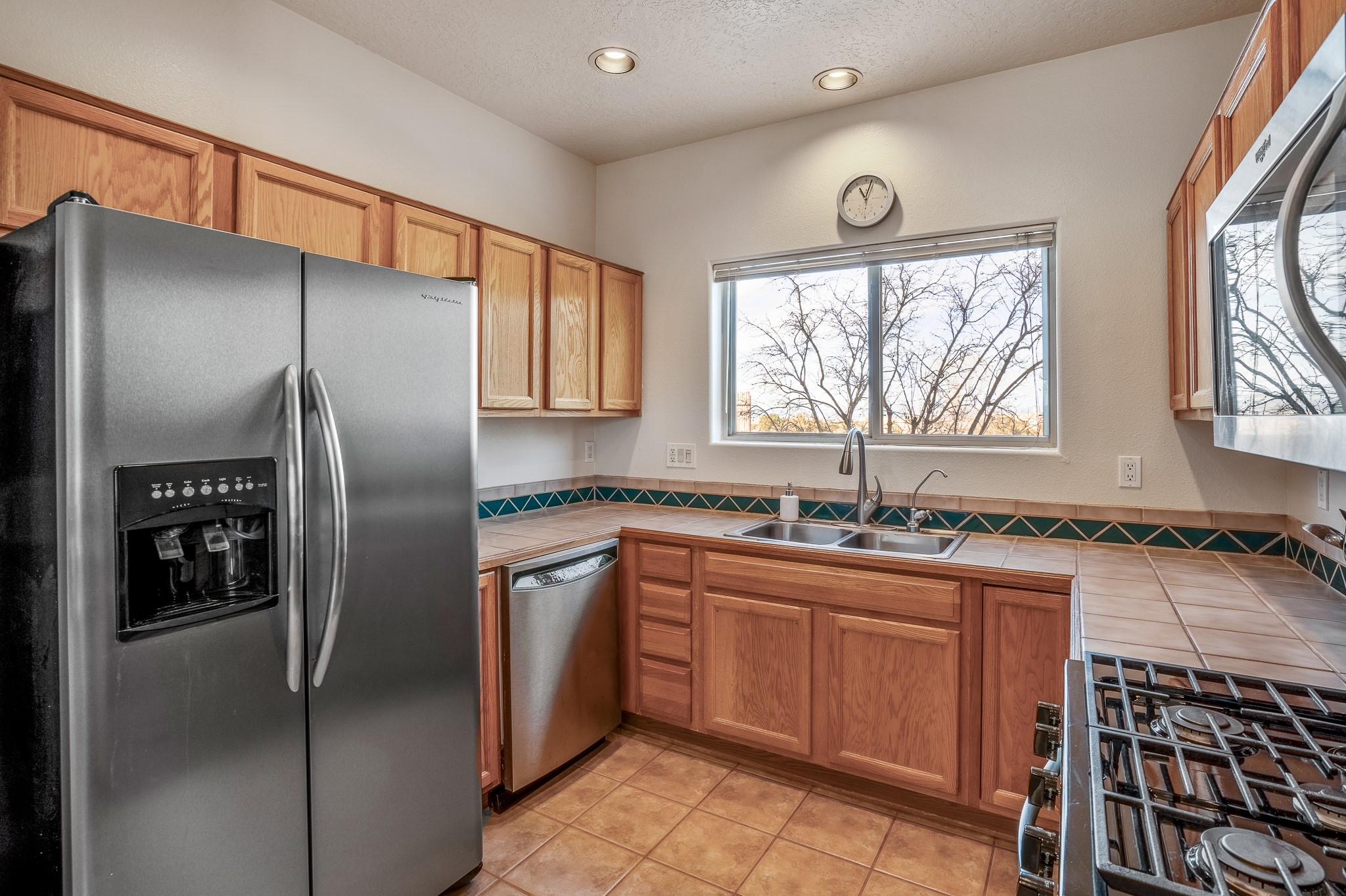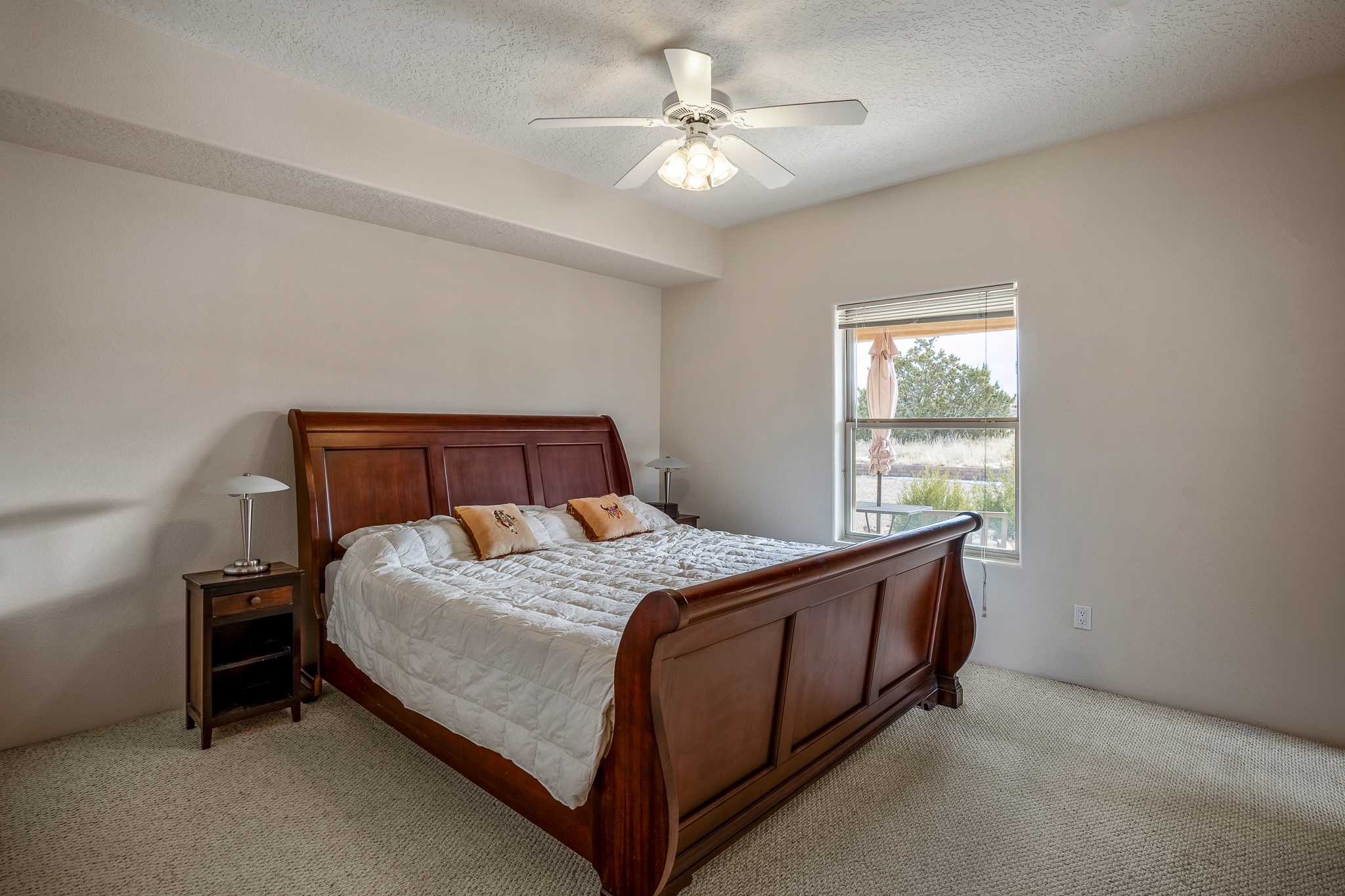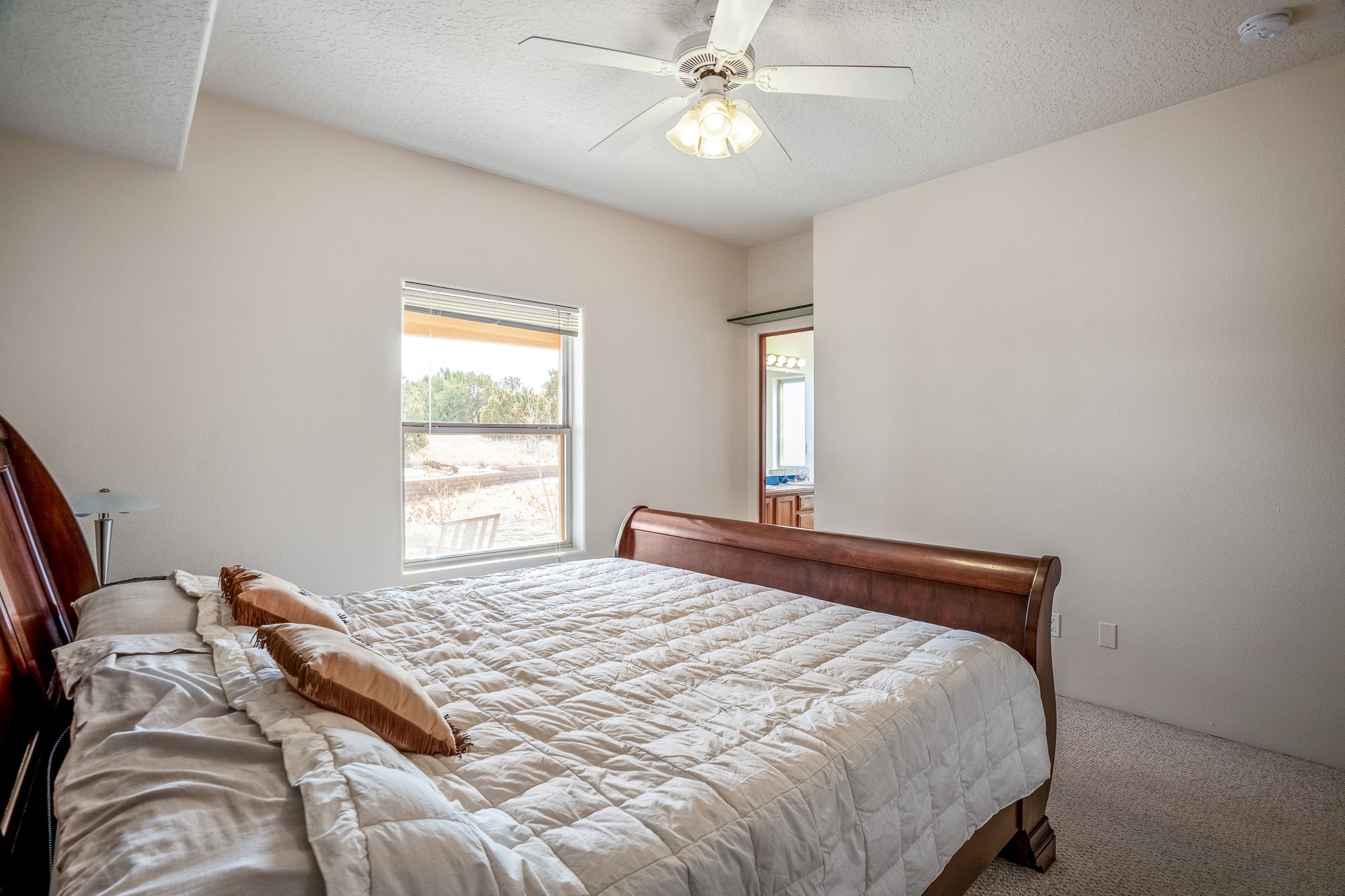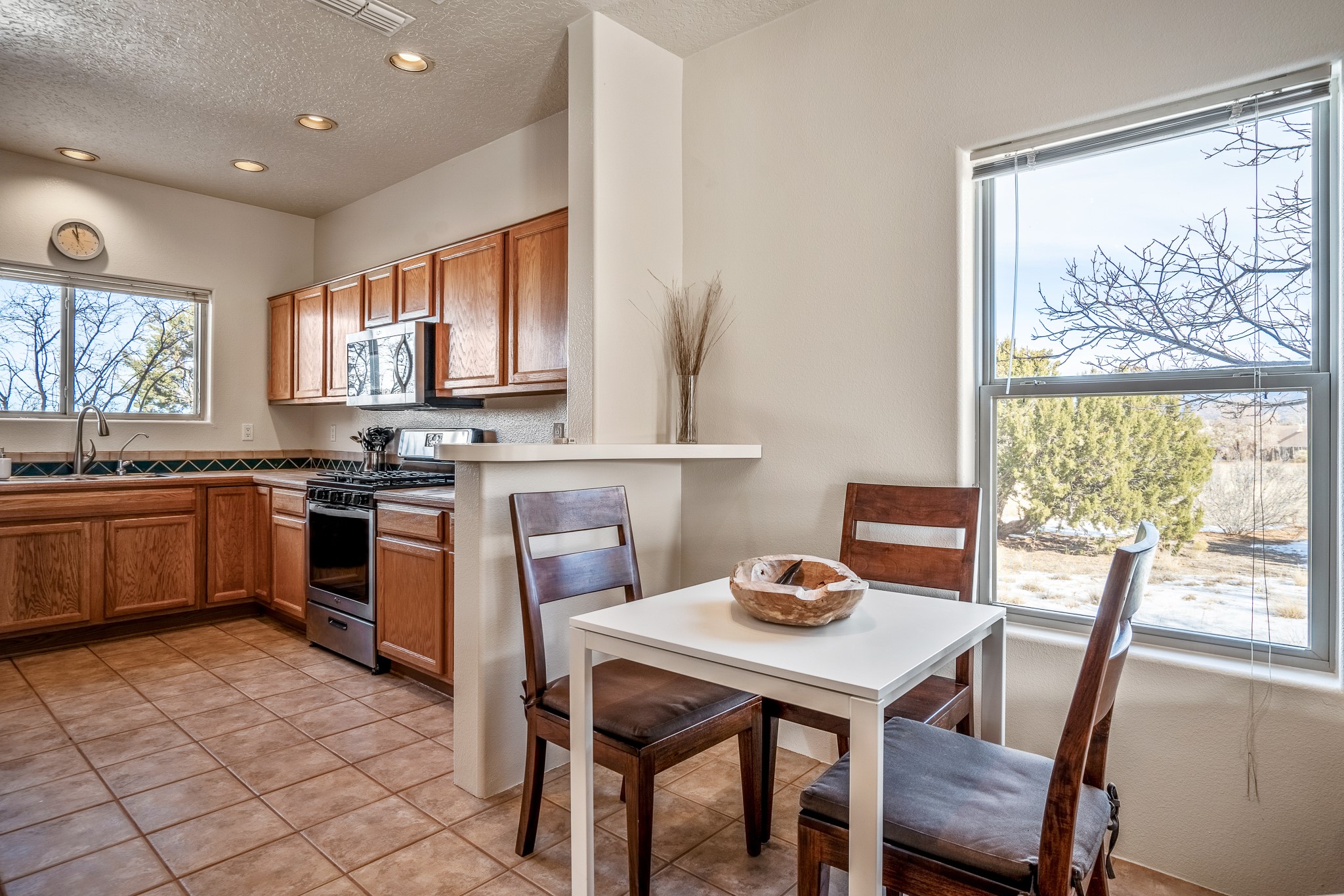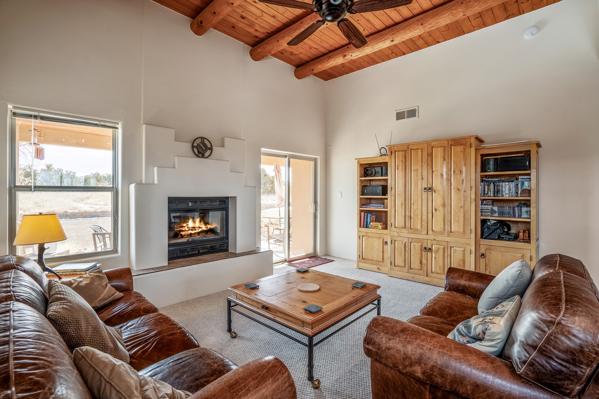 Lovely home on a view lot in desirable Eldorado. This 3 bedroom and 2 full bath home has been freshly painted and is ready for it's new owner. Features include: vigas in the living room, wood burning fire place with gas starter, open floor plan, stainless steel kitchen appliances, good sized pantry, nice separation of the bedrooms from the main living space, lots of natural light, wonderful back portal, designated laundry room, refrigerated whole house air-conditioning, HOA approved trailer or RV screen in place and a fantastic oversized two car garage. The Eldorado community offers many amenities which include tennis and pickle ball courts, hiking trails, a seasonal outdoor community pool and much more. Additionally Eldorado is home to a full purpose grocery store, hardware store, dining options, public library and a wonderful senior center.