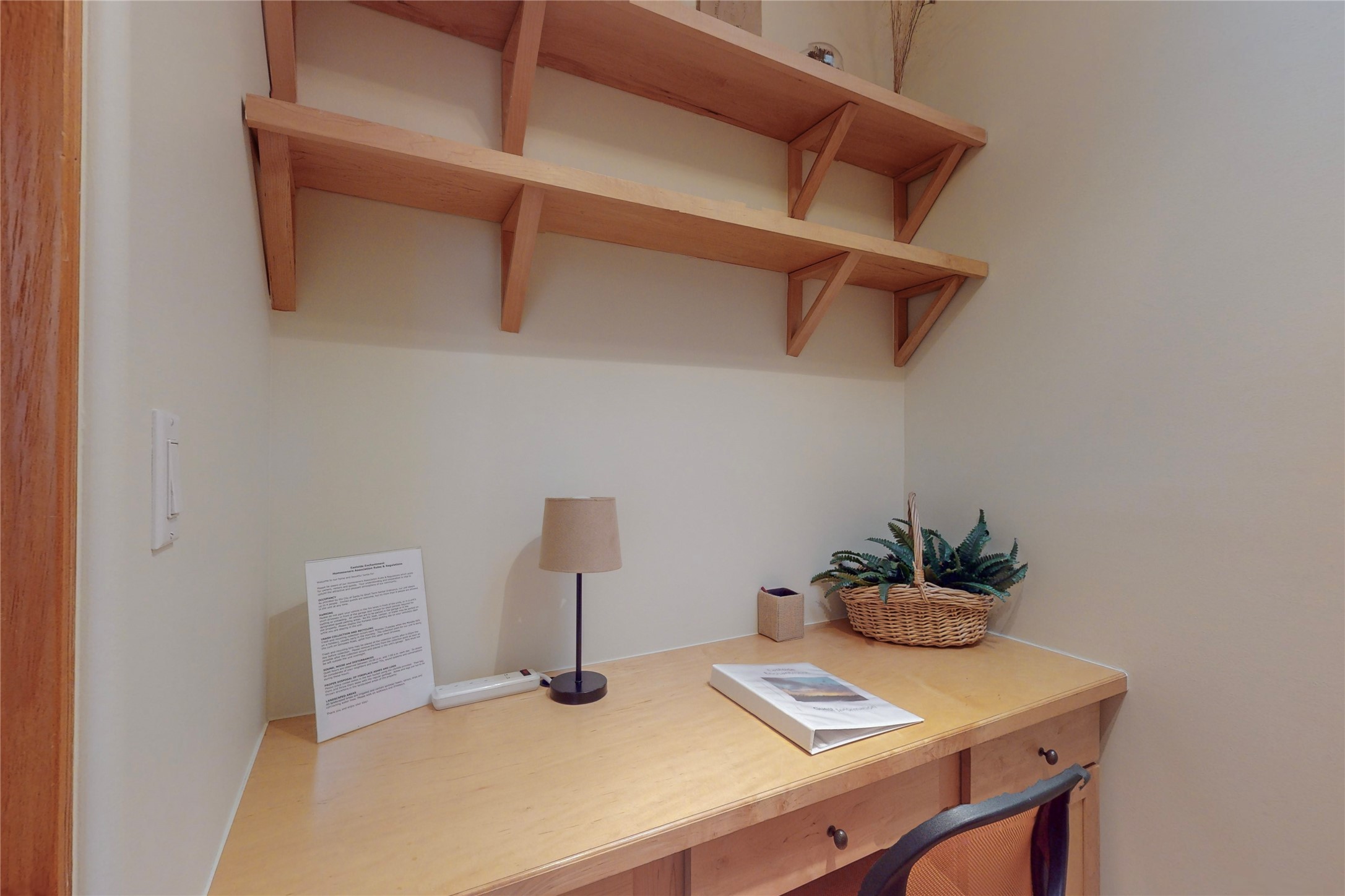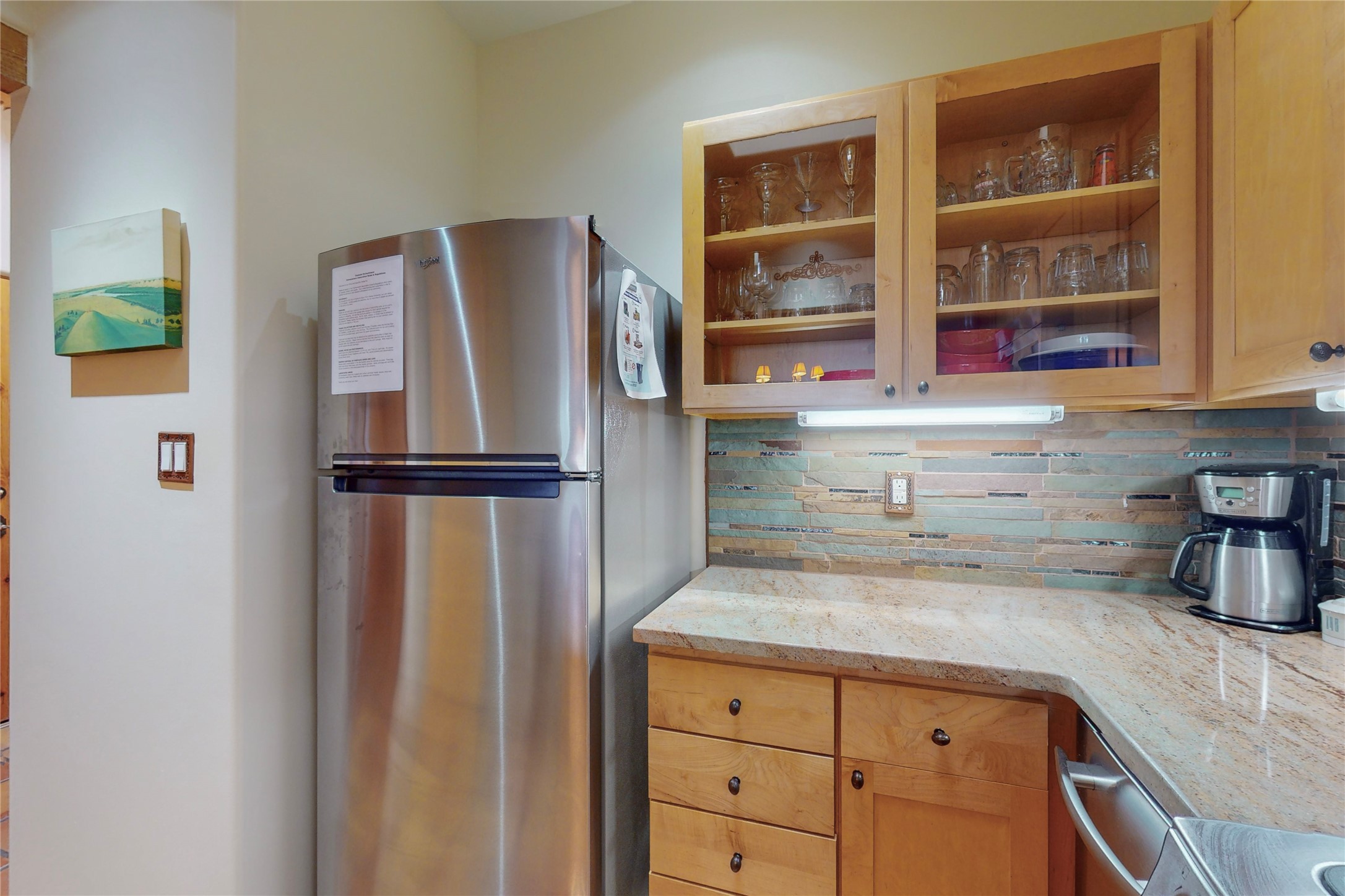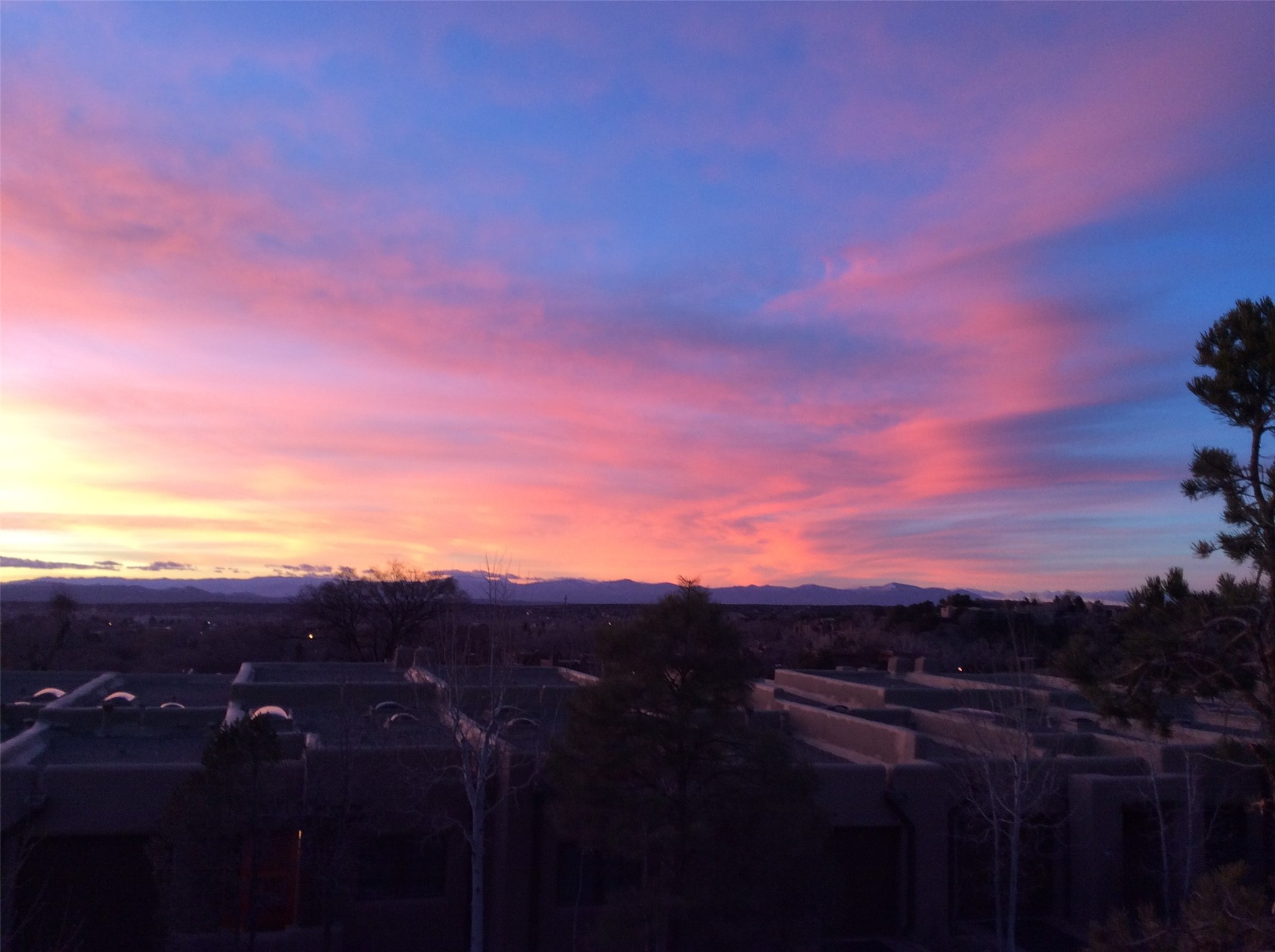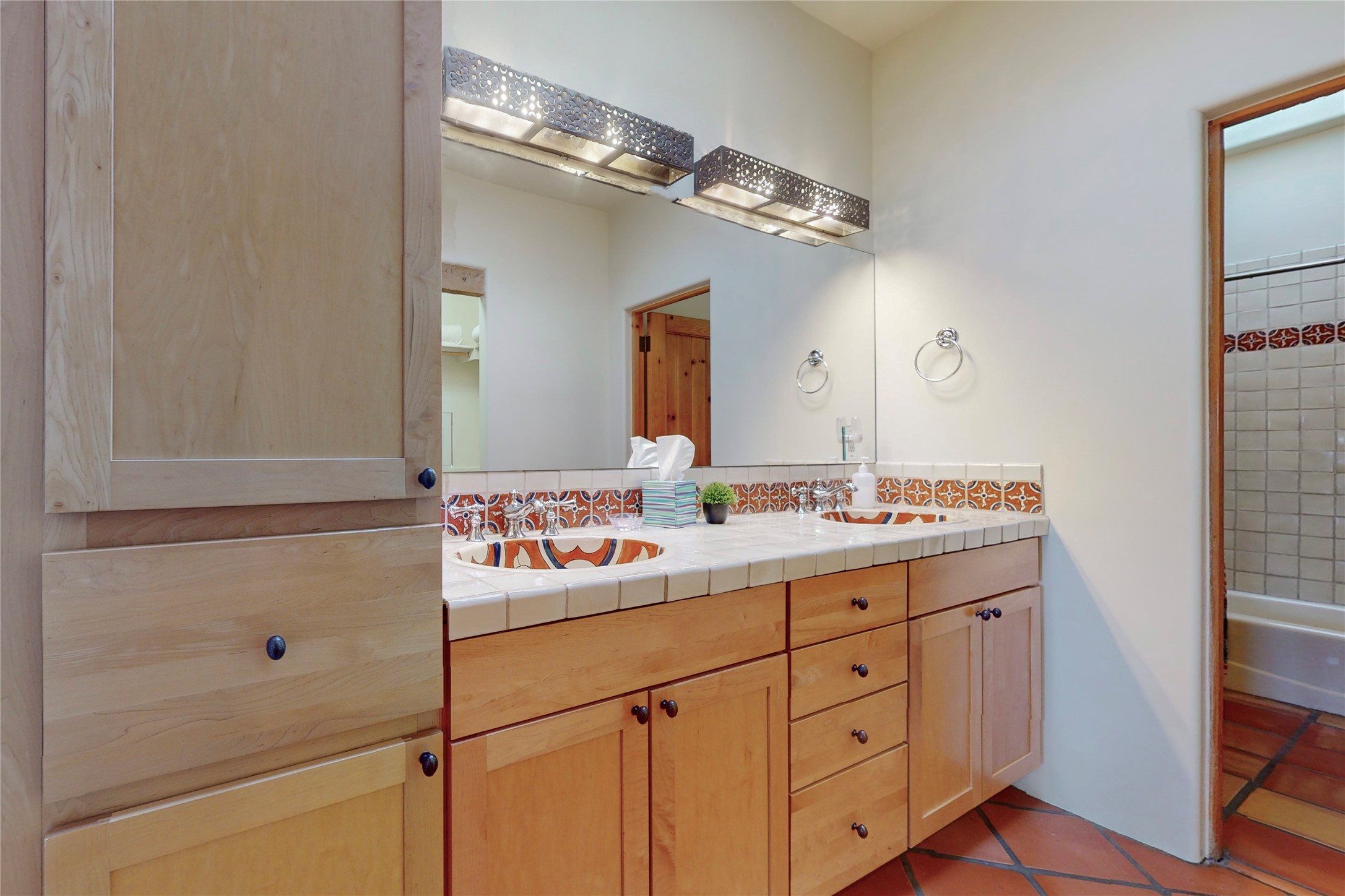 A very rare and exquisite Philip Combs design in the highly desirable Portales Vistas condominium compound. ONE LEVEL condominium floorplan that is just a few minutes to the Plaza and Canyon Road amenities. Easy drive to ski areas, opera and dining attractions. Dazzling sunset views of the Jemez Mountain Range by day and sparkling Santa Fe and Los Alamos city lights by night are absolutely incredible. 2 bedrooms, 2 baths plus a separate office with built-in desk and cabinets. 2 cozy charming Kiva fireplaces, beautiful Saltillo tile floors, high ceilings, gorgeous kitchen with granite counters and stainless appliances! The attached direct entry garage is a wonderful convenience-just drive in and park out of the weather. One additional outside parking space at the unit. Very well-maintained roof, stucco, and driveways. This condo is excellent for full or part time living. Short term rental history and professionally managed for current owner. Meticulously maintained. Seller offers all furnishing and provisions for separate purchase! This is as effortlessly turn-key as you could wish. Come see and you will want to move in!