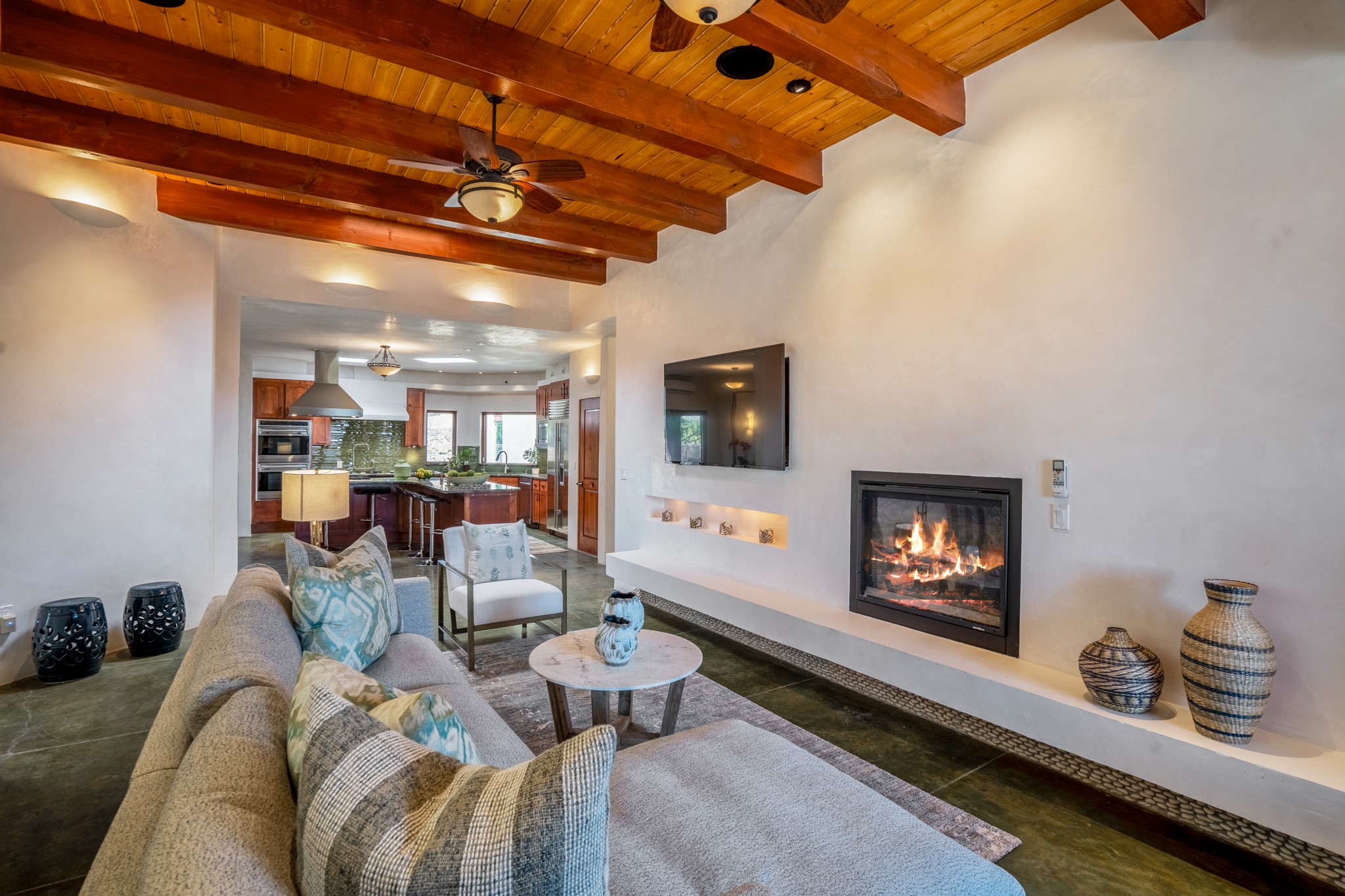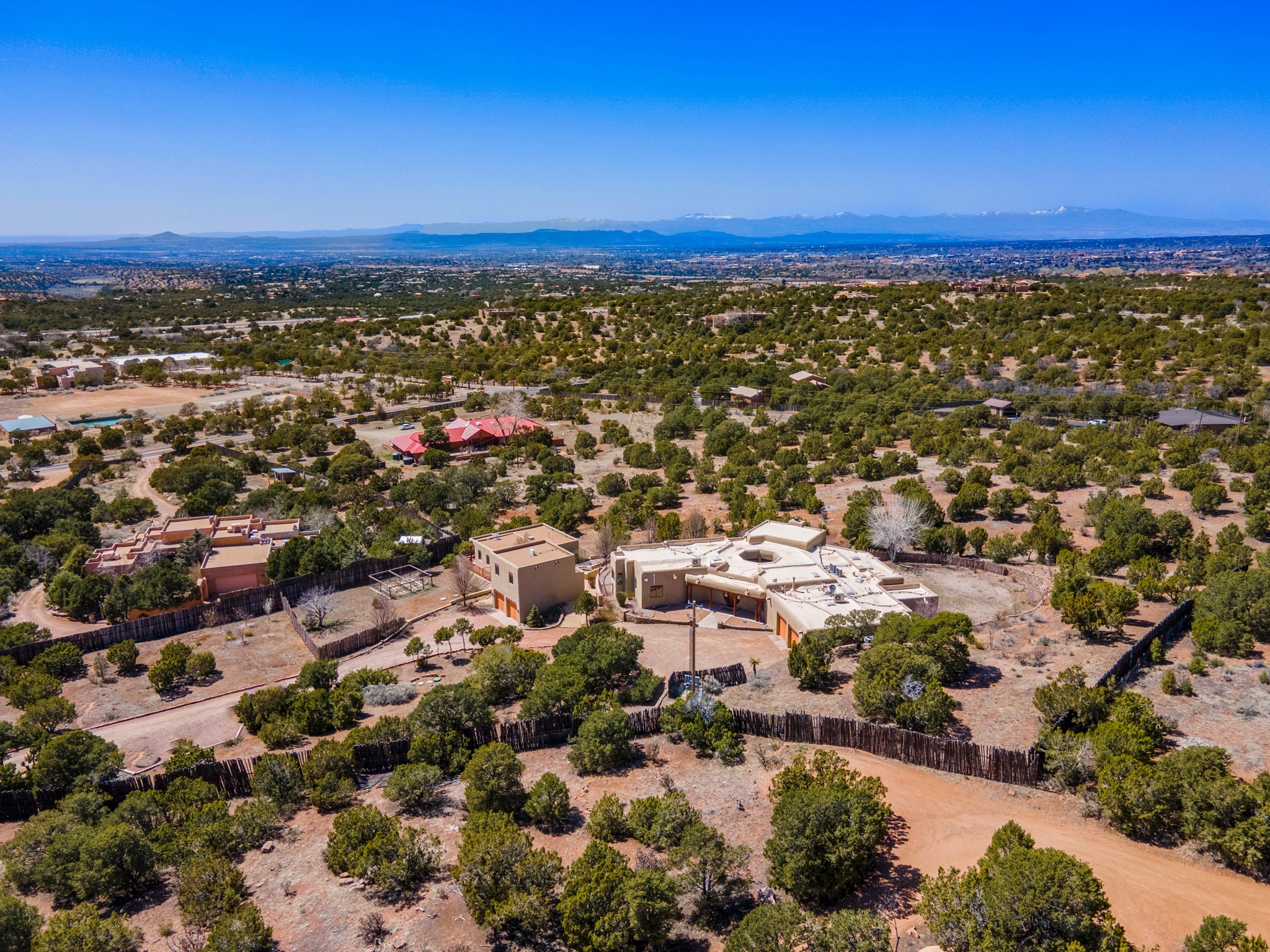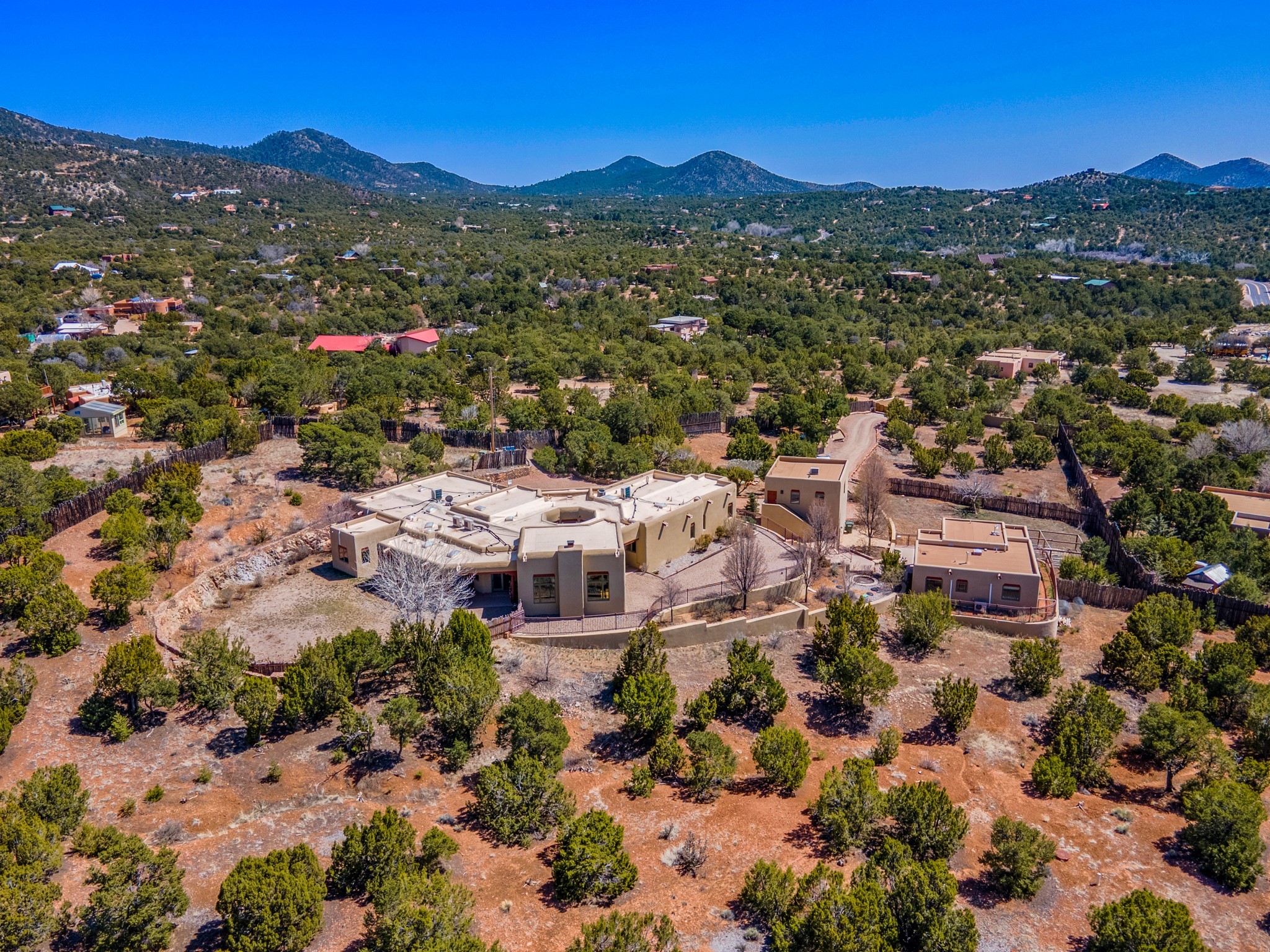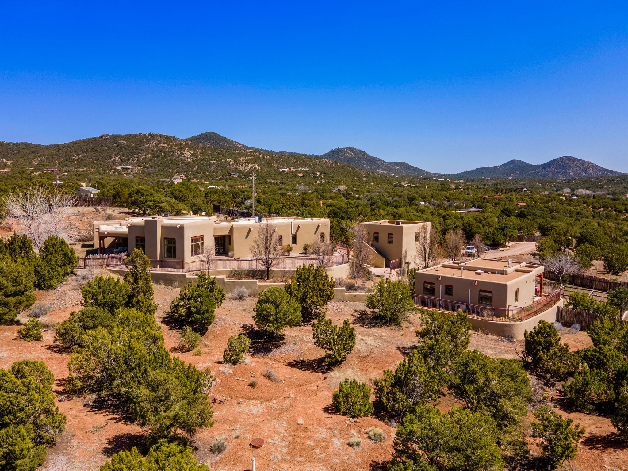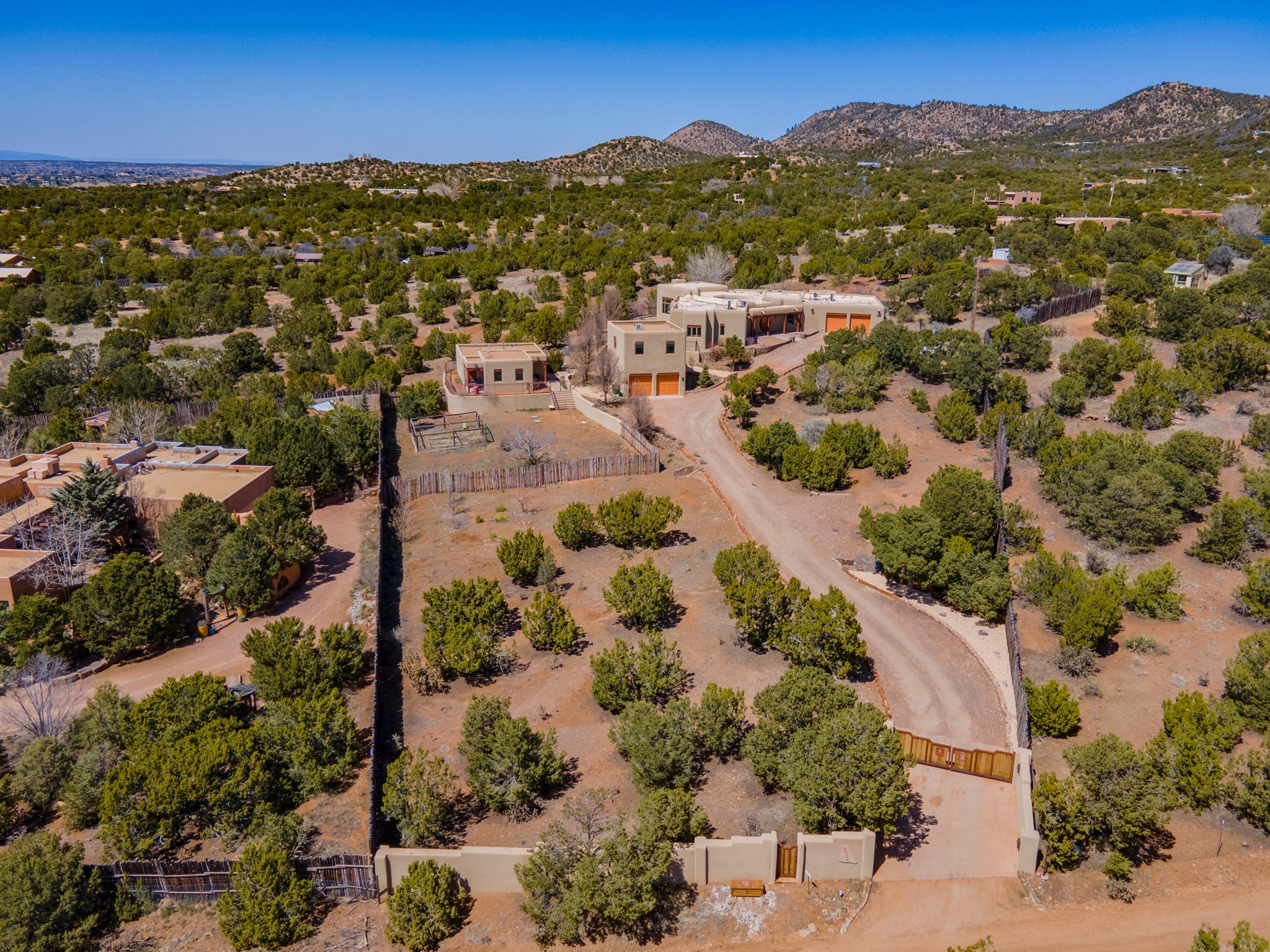 Introducing a truly unique property off Old Santa Fe Trail with distinct Asian design influences that boasts a dedicated 1,059 sf guest house, 576 sf separate studio plus an office and bonus room off the primary suite (think gym, study, nursery, or second office), 4-car garage and 2 living rooms! For those looking to work from home or pursue creative endeavors, the private detached studio provides the perfect space to do so. This sprawling home is situated on a generous lot with breathtaking Jemez sunset views. The chef's kitchen features top-of-the-line appliances, wet bar and ample counter space, making it the perfect space for preparing gourmet meals and entertaining guests. Minutes to the Plaza!