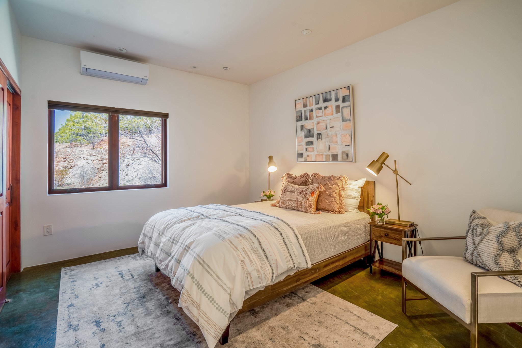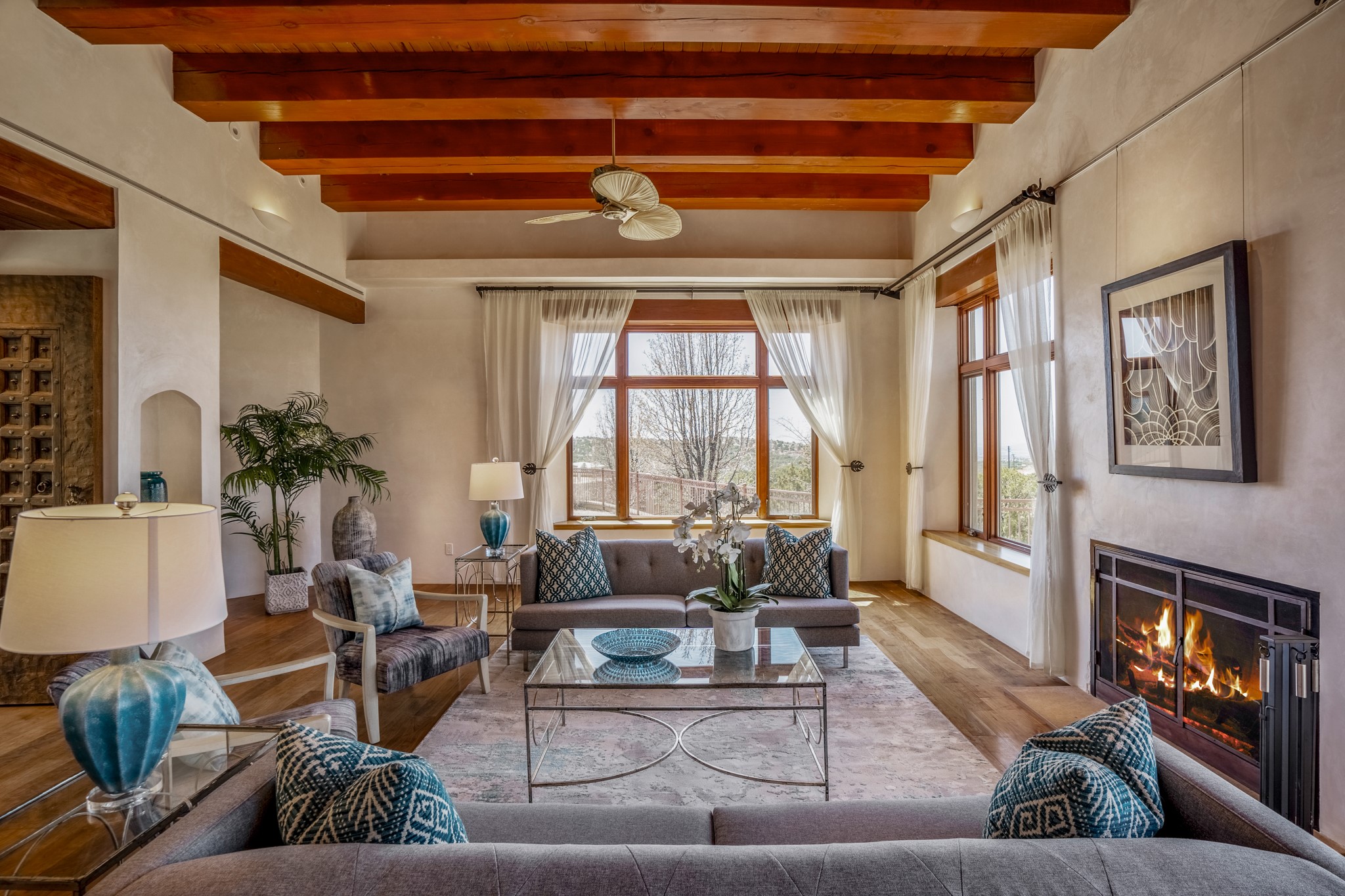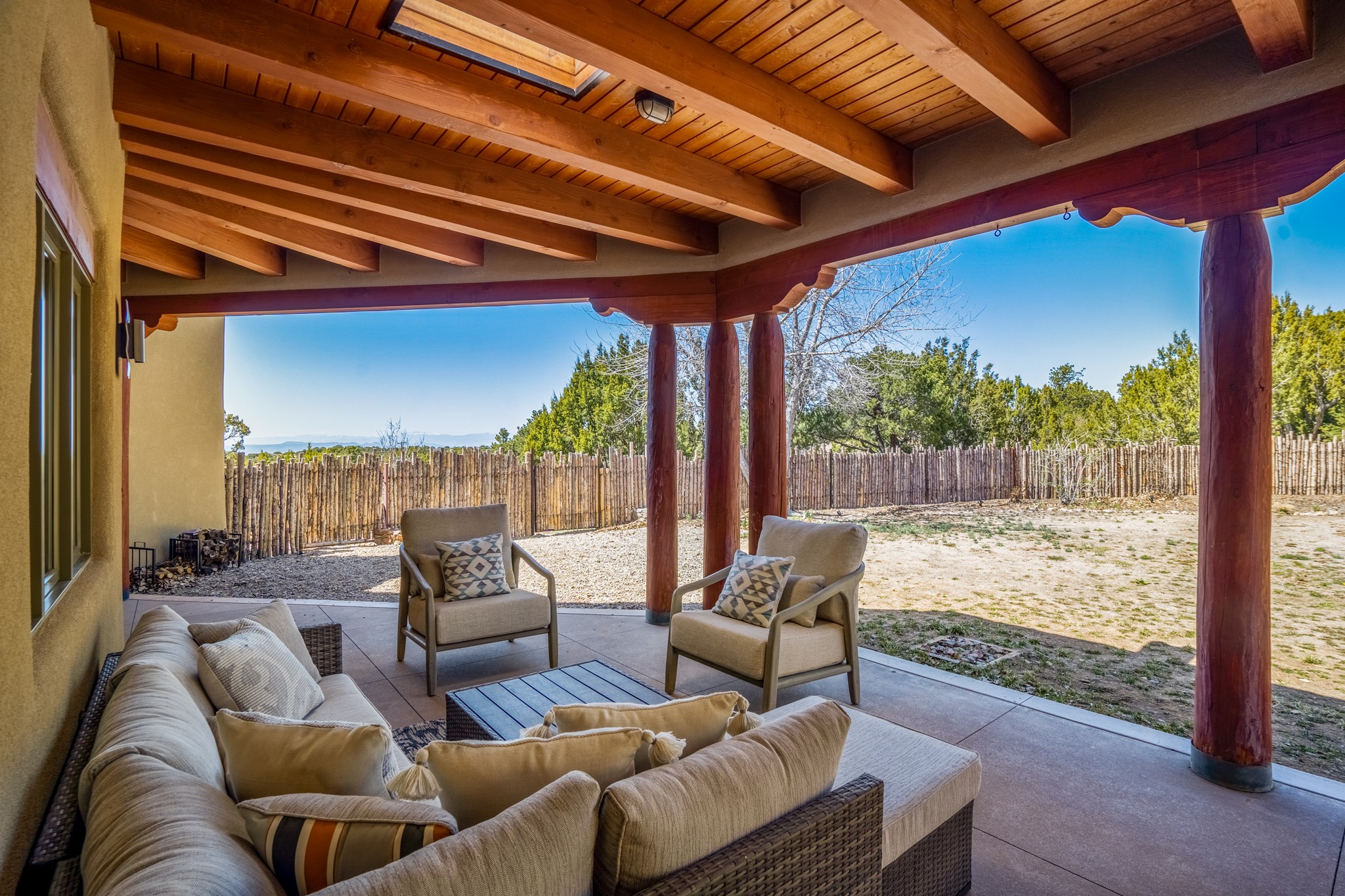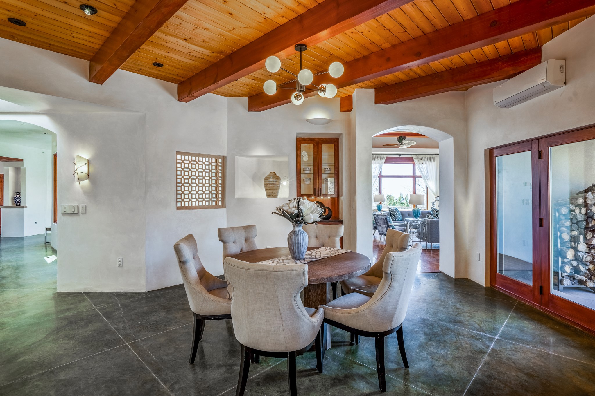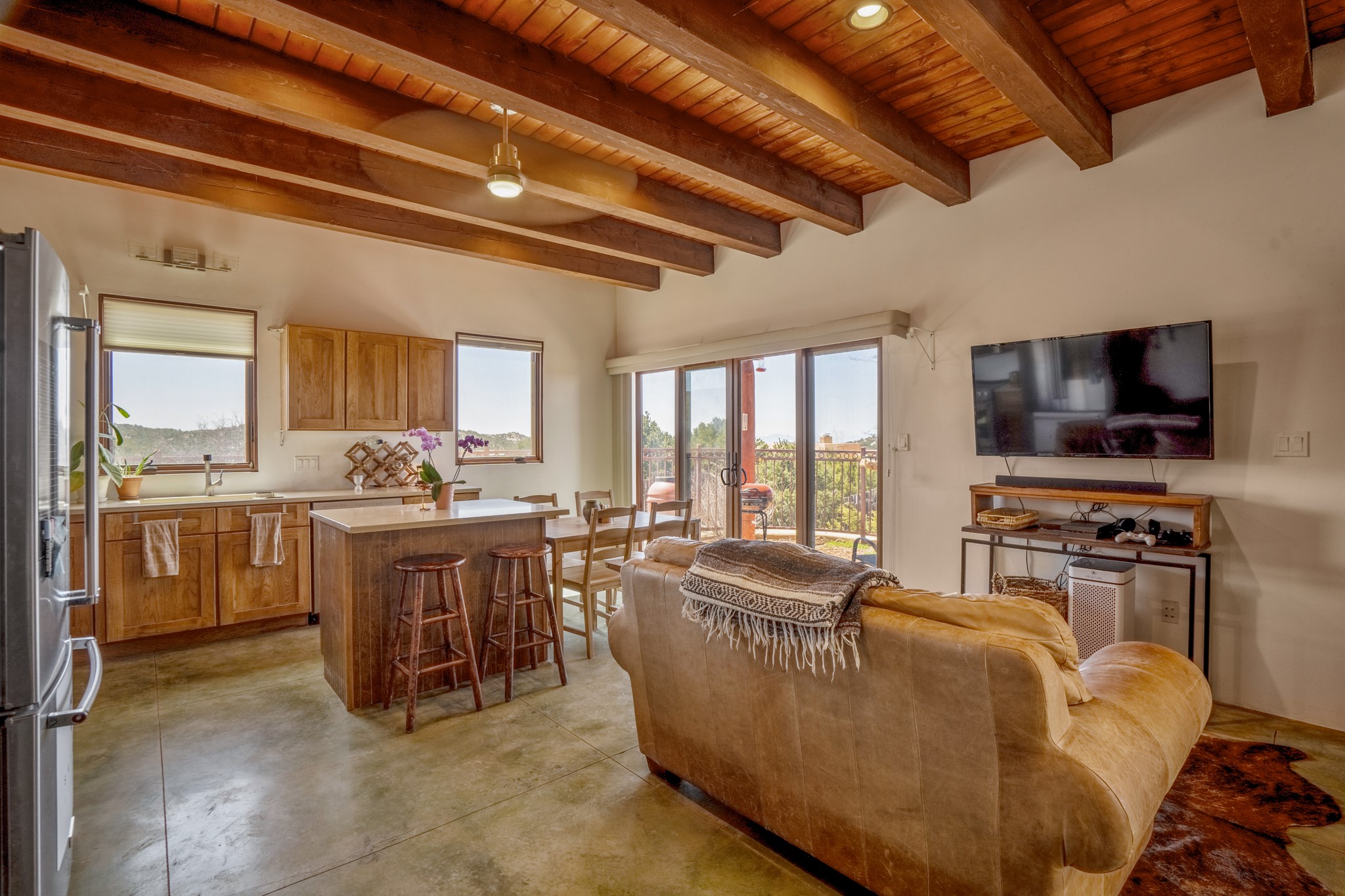 Introducing a truly unique property off Old Santa Fe Trail with distinct Asian design influences that boasts a dedicated 1,059 sf guest house, 576 sf separate studio plus an office and bonus room off the primary suite (think gym, study, nursery, or second office), 4-car garage and 2 living rooms! For those looking to work from home or pursue creative endeavors, the private detached studio provides the perfect space to do so. This sprawling home is situated on a generous lot with breathtaking Jemez sunset views. The chef's kitchen features top-of-the-line appliances, wet bar and ample counter space, making it the perfect space for preparing gourmet meals and entertaining guests. Minutes to the Plaza!