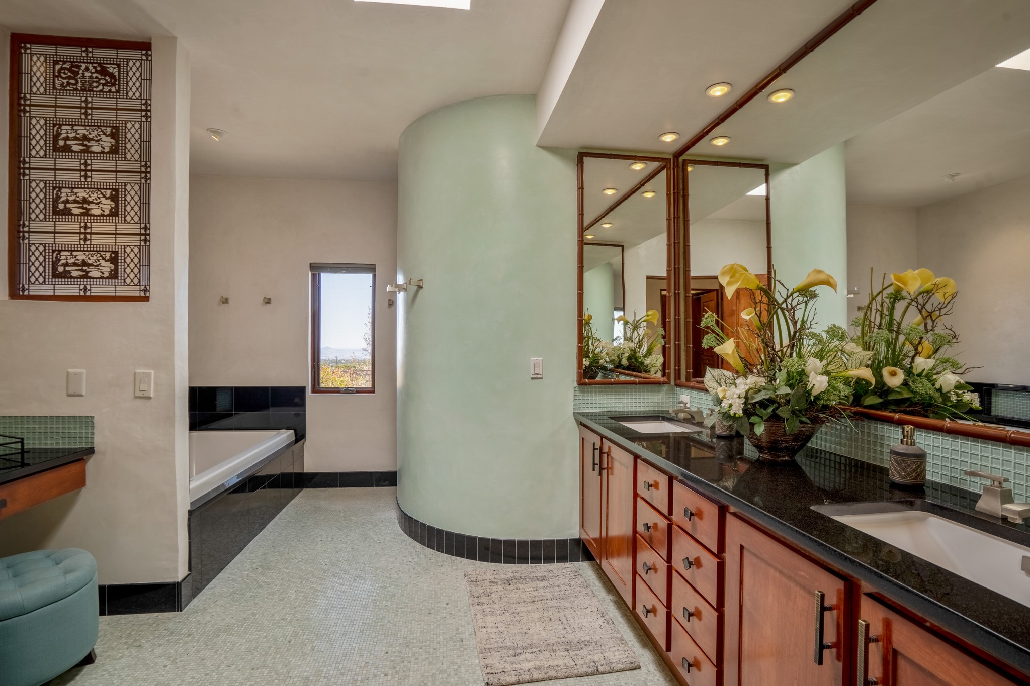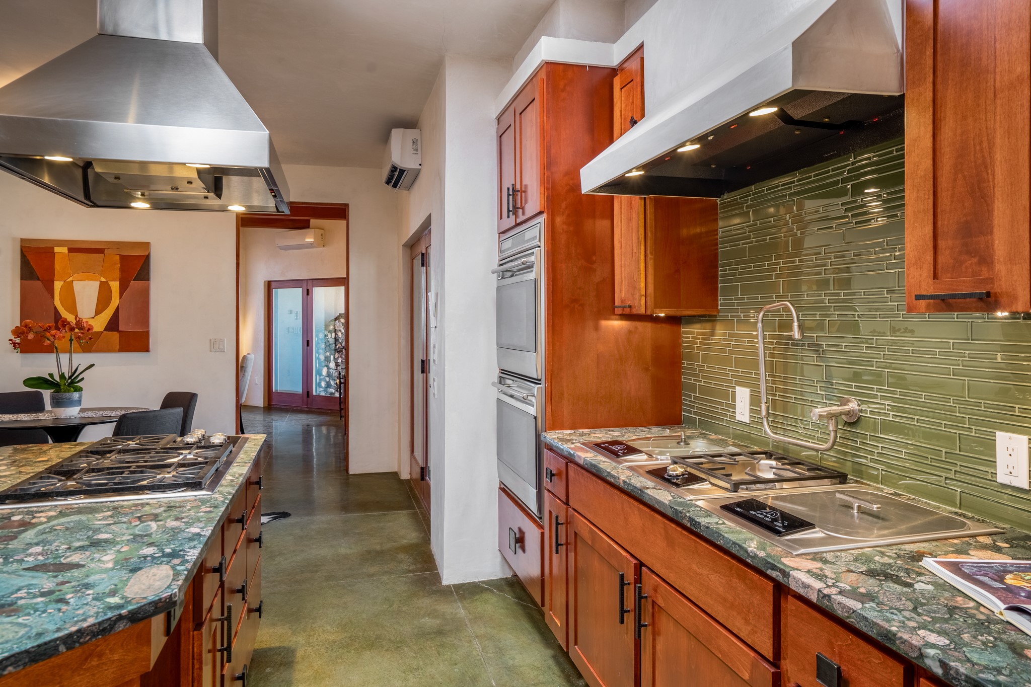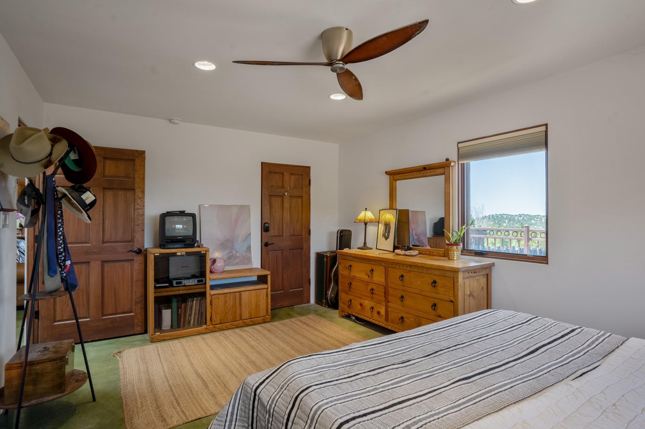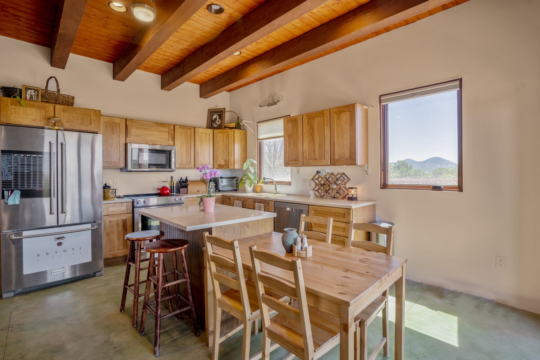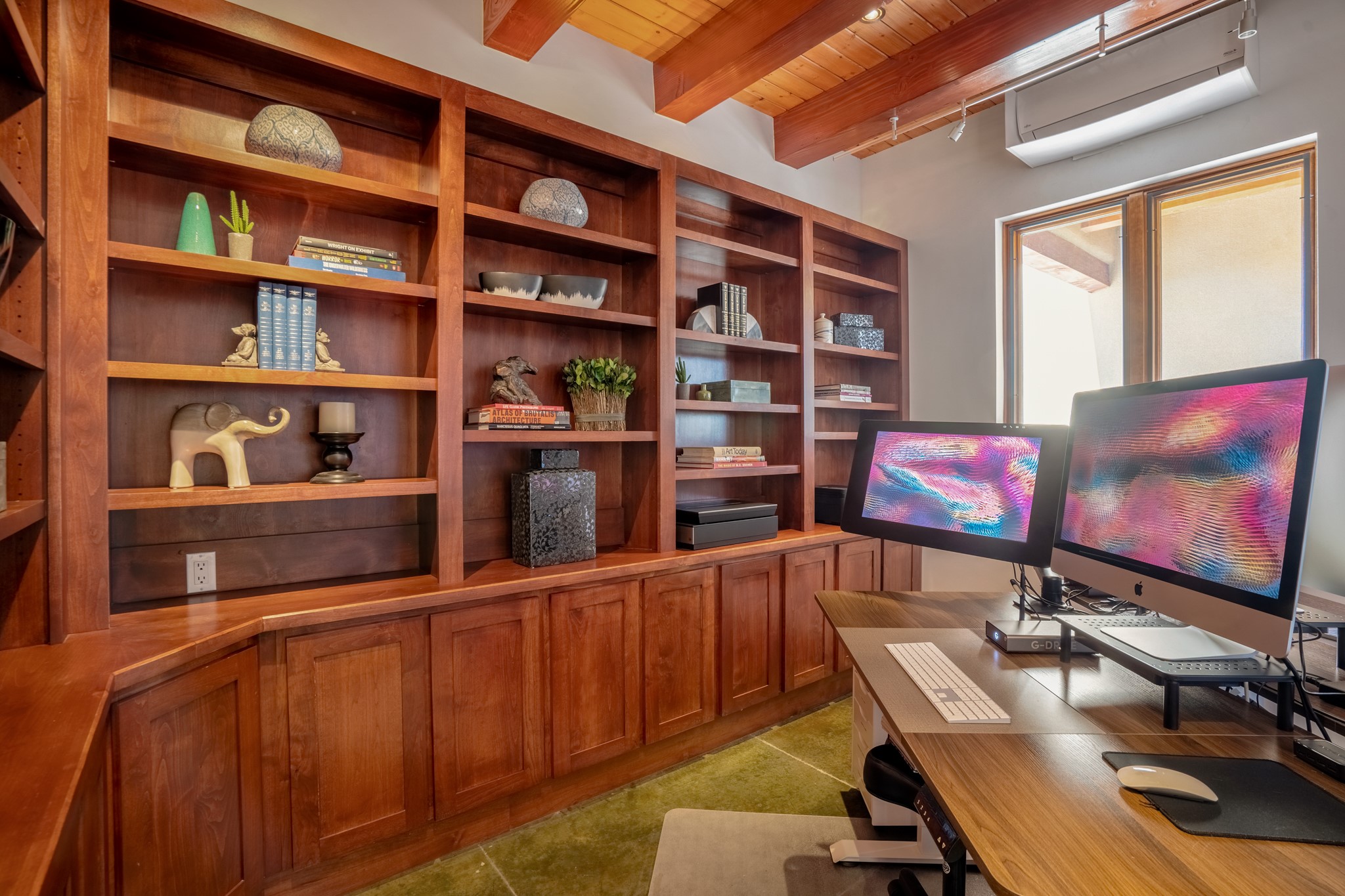 Introducing a truly unique property off Old Santa Fe Trail with distinct Asian design influences that boasts a dedicated 1,059 sf guest house, 576 sf separate studio plus an office and bonus room off the primary suite (think gym, study, nursery, or second office), 4-car garage and 2 living rooms! For those looking to work from home or pursue creative endeavors, the private detached studio provides the perfect space to do so. This sprawling home is situated on a generous lot with breathtaking Jemez sunset views. The chef's kitchen features top-of-the-line appliances, wet bar and ample counter space, making it the perfect space for preparing gourmet meals and entertaining guests. Minutes to the Plaza!