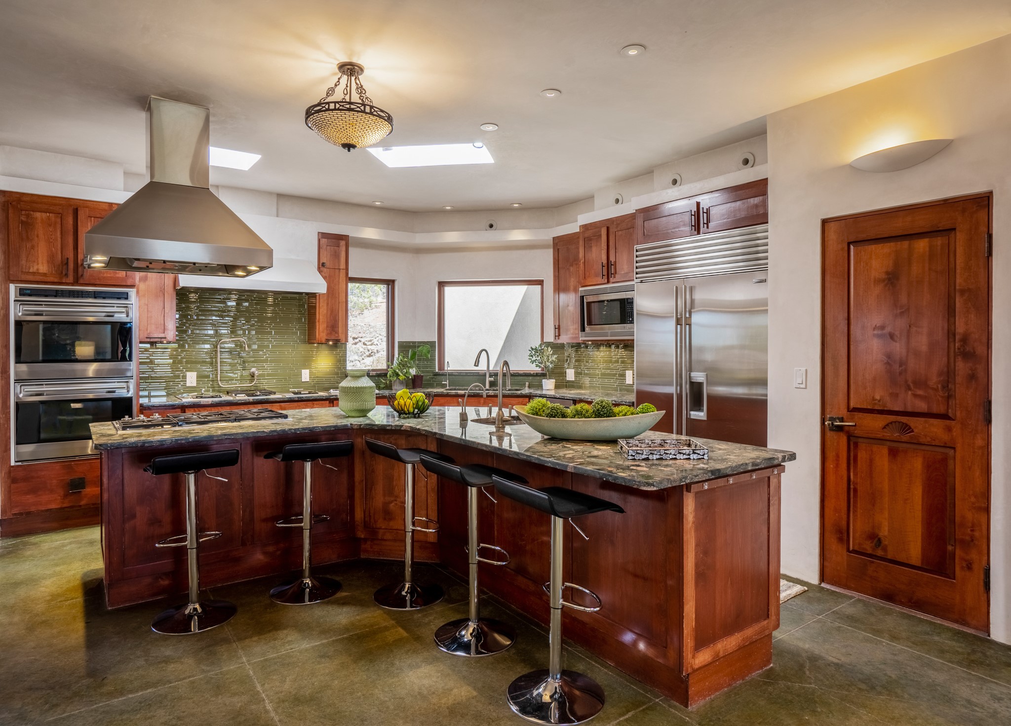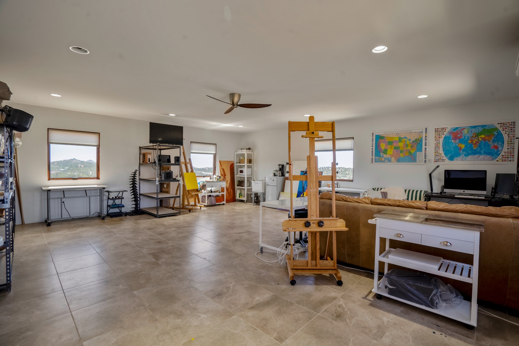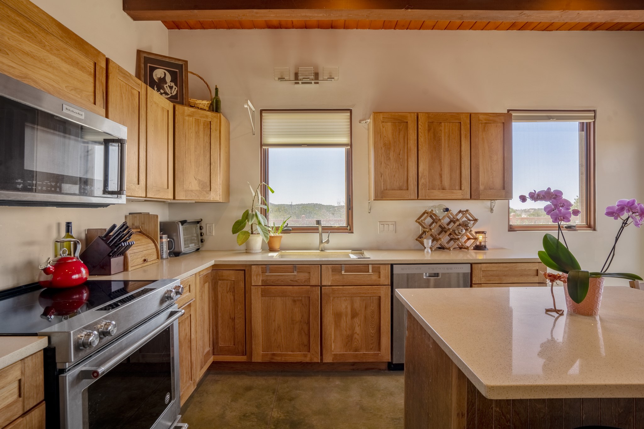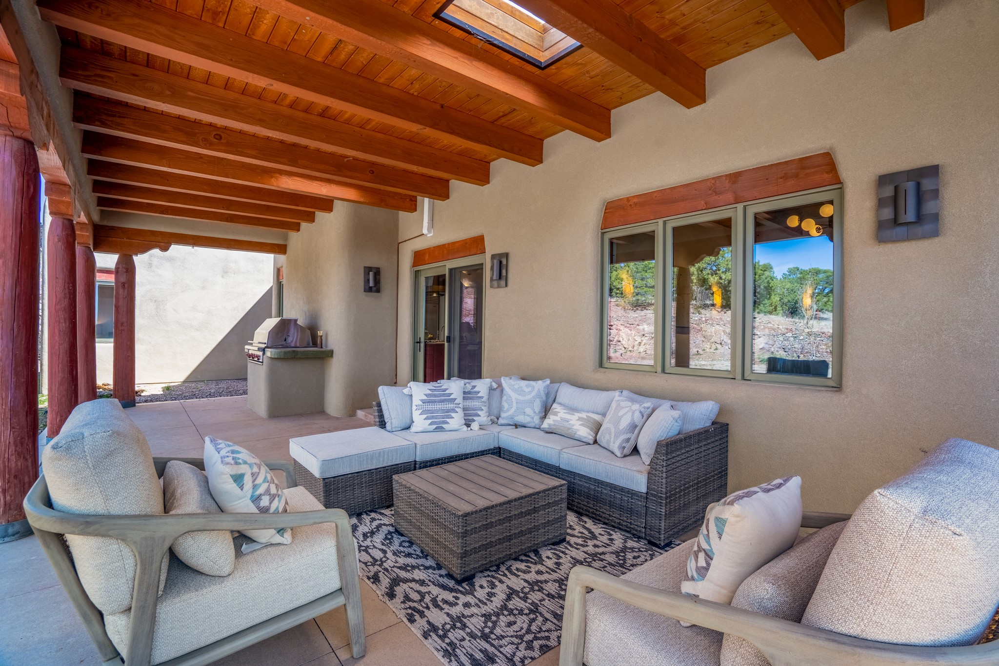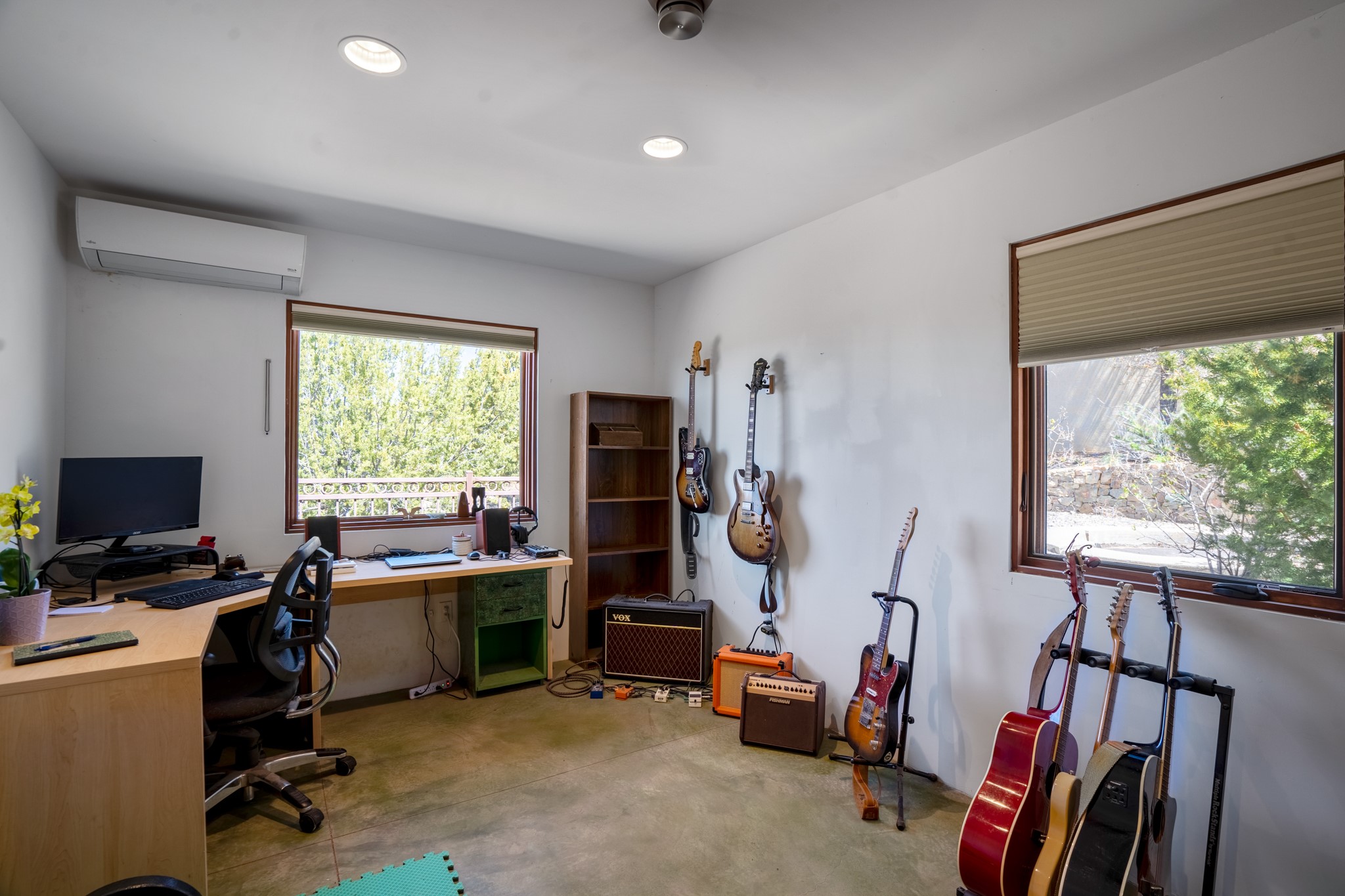 Introducing a truly unique property off Old Santa Fe Trail with distinct Asian design influences that boasts a dedicated 1,059 sf guest house, 576 sf separate studio plus an office and bonus room off the primary suite (think gym, study, nursery, or second office), 4-car garage and 2 living rooms! For those looking to work from home or pursue creative endeavors, the private detached studio provides the perfect space to do so. This sprawling home is situated on a generous lot with breathtaking Jemez sunset views. The chef's kitchen features top-of-the-line appliances, wet bar and ample counter space, making it the perfect space for preparing gourmet meals and entertaining guests. Minutes to the Plaza!