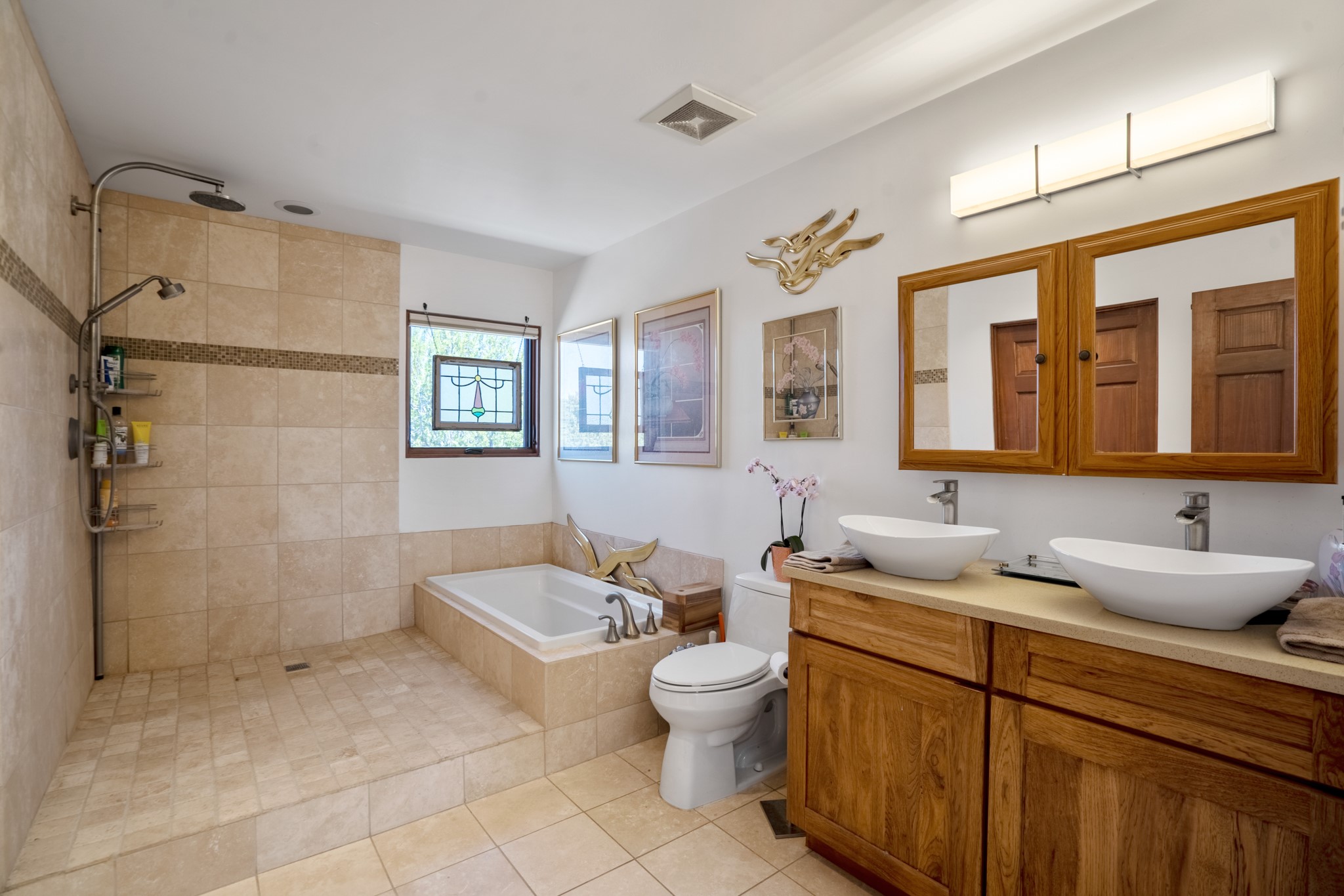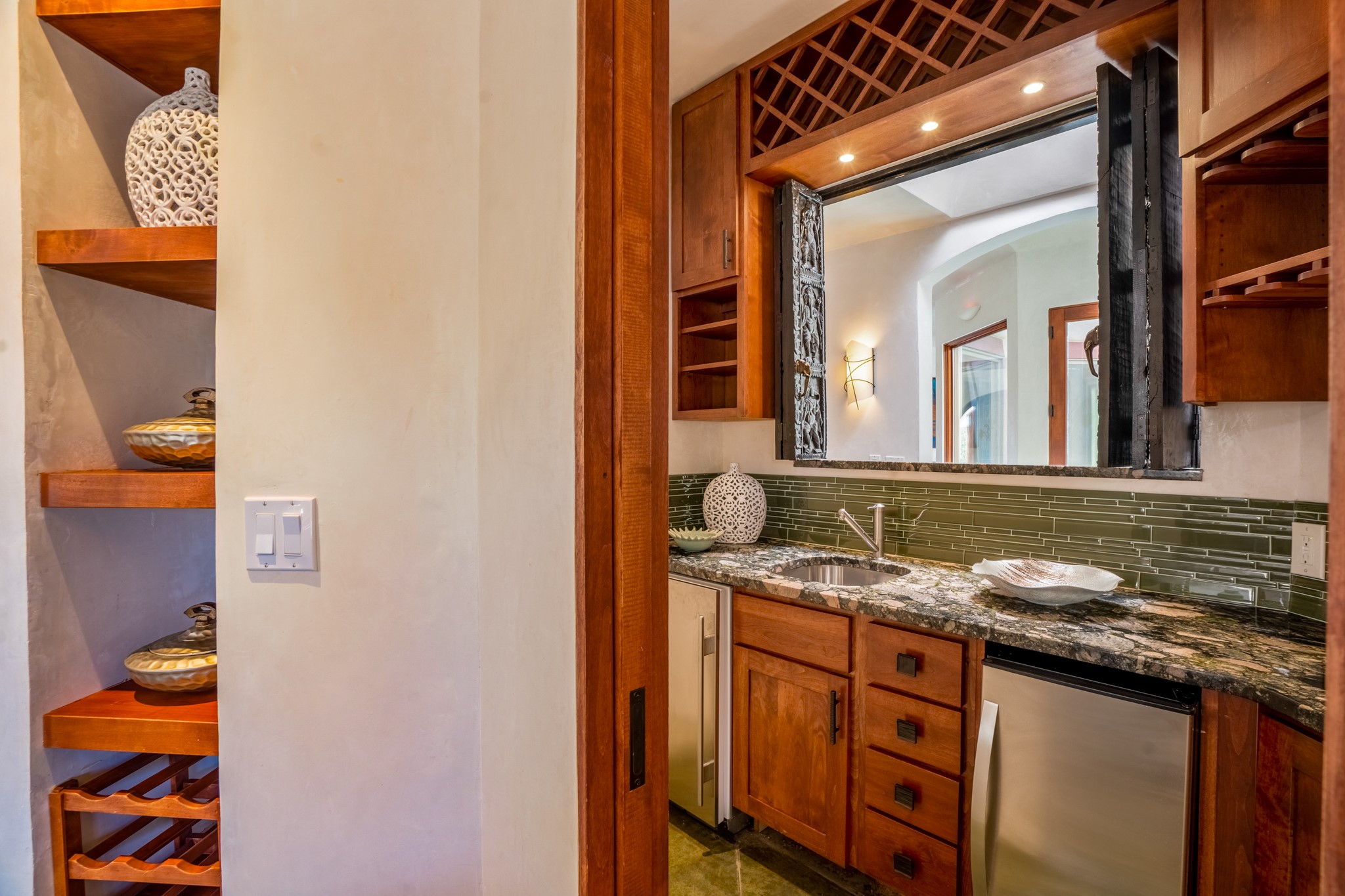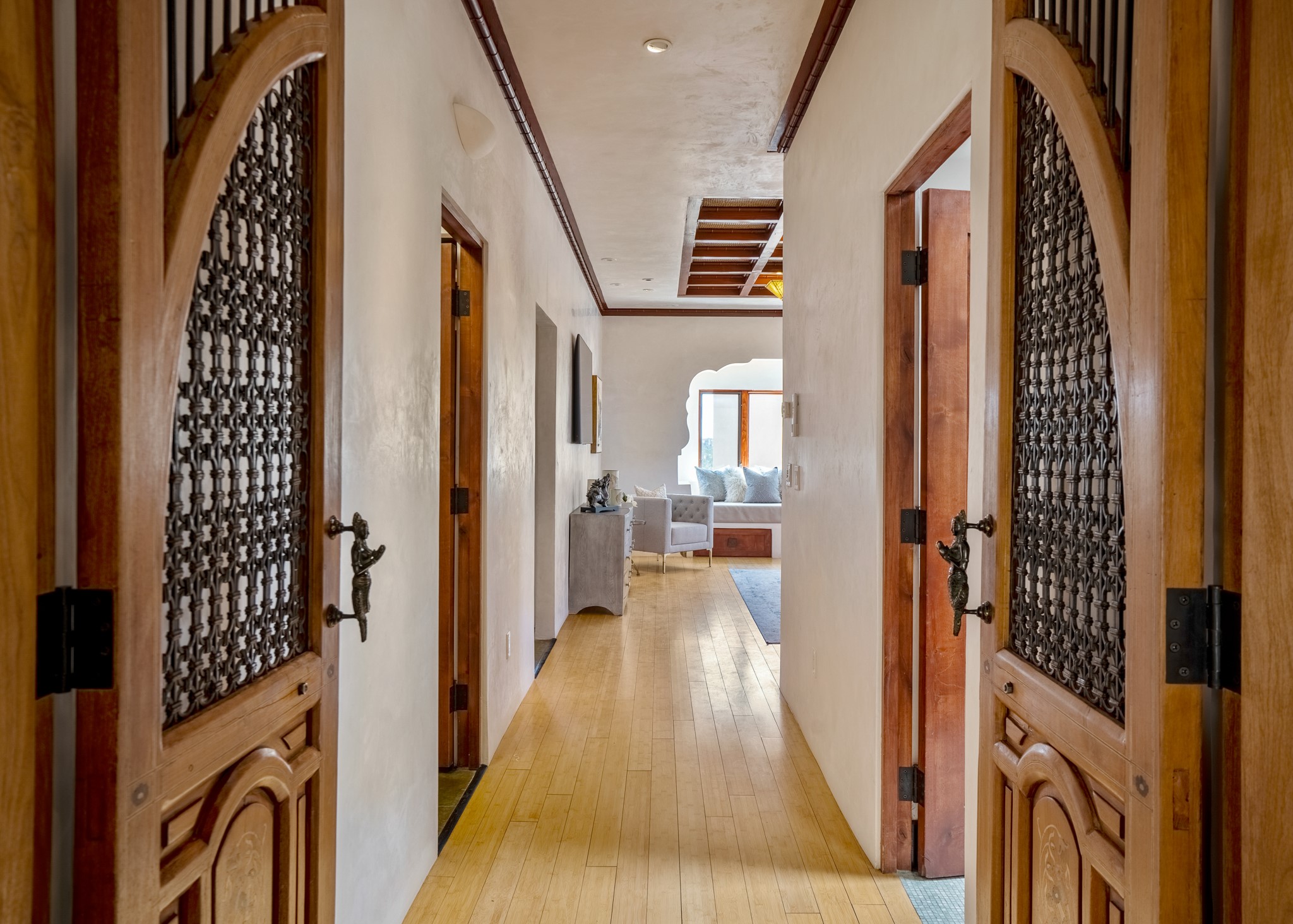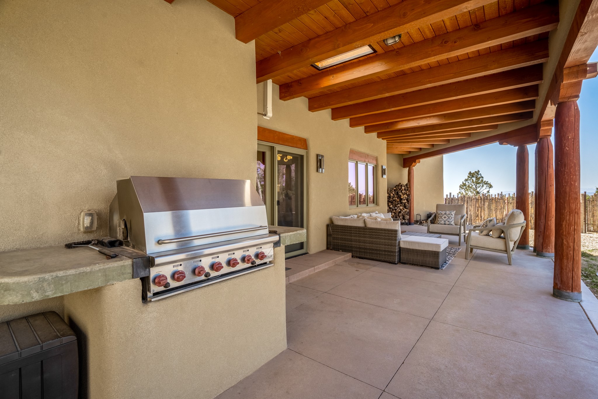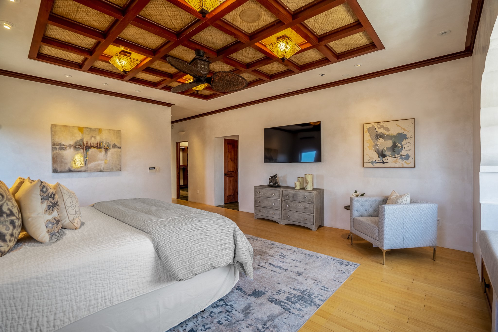 Introducing a truly unique property off Old Santa Fe Trail with distinct Asian design influences that boasts a dedicated 1,059 sf guest house, 576 sf separate studio plus an office and bonus room off the primary suite (think gym, study, nursery, or second office), 4-car garage and 2 living rooms! For those looking to work from home or pursue creative endeavors, the private detached studio provides the perfect space to do so. This sprawling home is situated on a generous lot with breathtaking Jemez sunset views. The chef's kitchen features top-of-the-line appliances, wet bar and ample counter space, making it the perfect space for preparing gourmet meals and entertaining guests. Minutes to the Plaza!