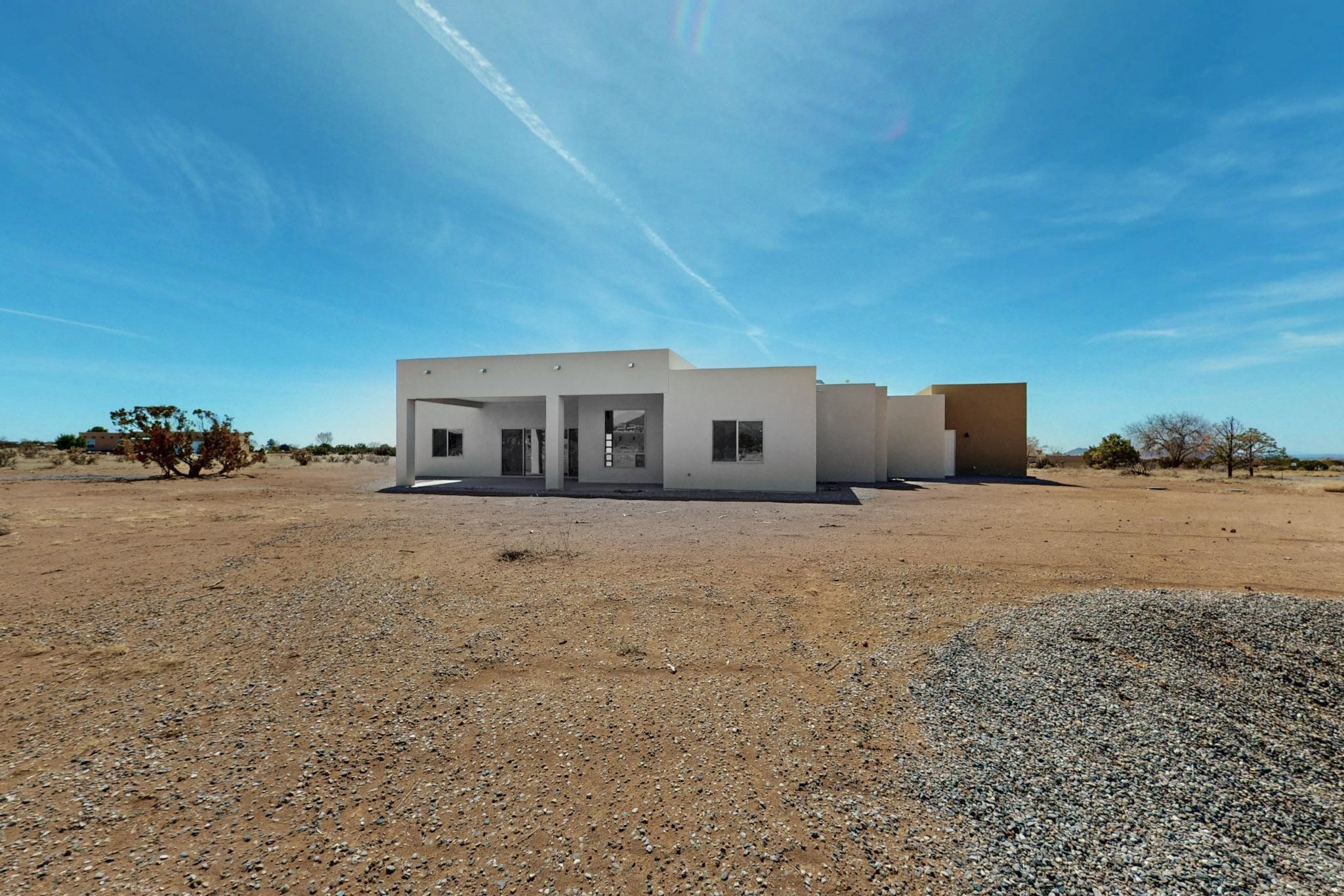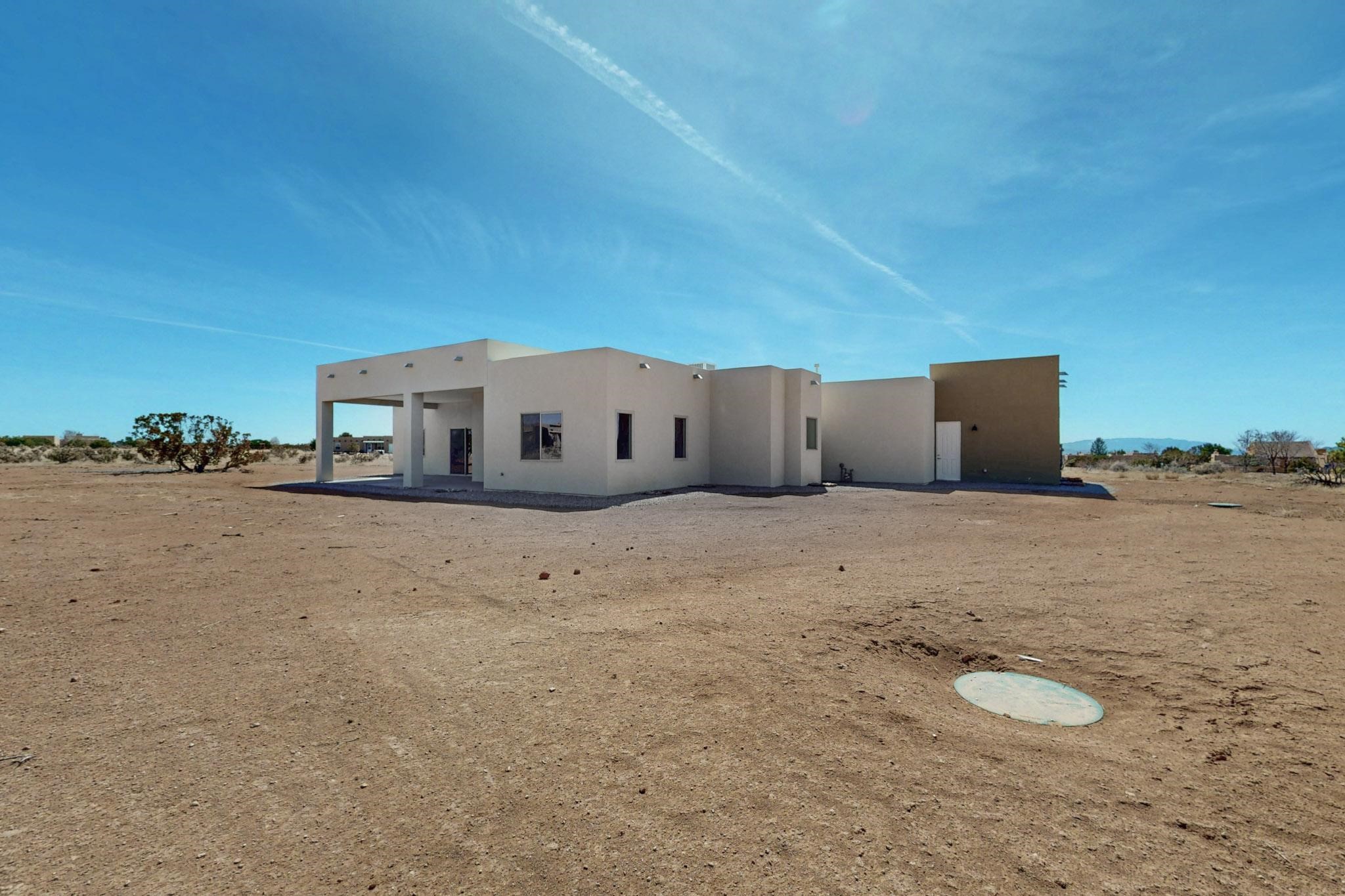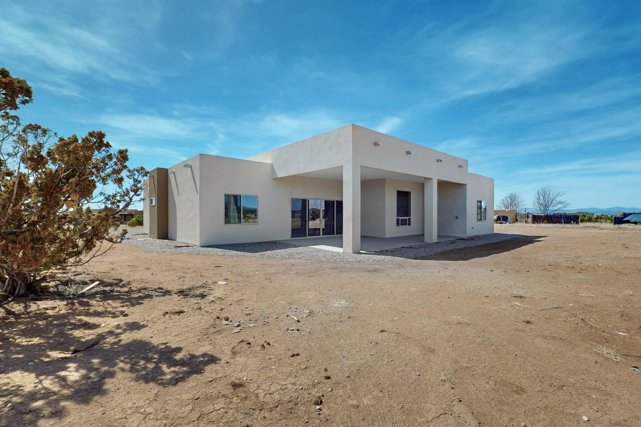 This New Construction home is located in the Eldorado subdivision- featuring an open modern floor plan with beautiful, warm, modern finishes on a 1.83 acre lot. This home features amazing panoramic 360 mountain views, 4 bedrooms, 3 full bathrooms, high ceilings, custom cabinets and walk-in closets, an oversized insulated garage with windows, and RV space. Quartz countertops, spacious master bathroom, two large master closets, new well, a water harvesting cistern to water landscape or your future garden. Enjoy evenings and views on the huge backyard-covered patio. The home includes a large sliding patio door, a free-standing tub in the master bathroom, refrigerated air, 2x6 construction throughout, and a cozy fireplace in the main living area. Come check out this home in person, and schedule your showing today!