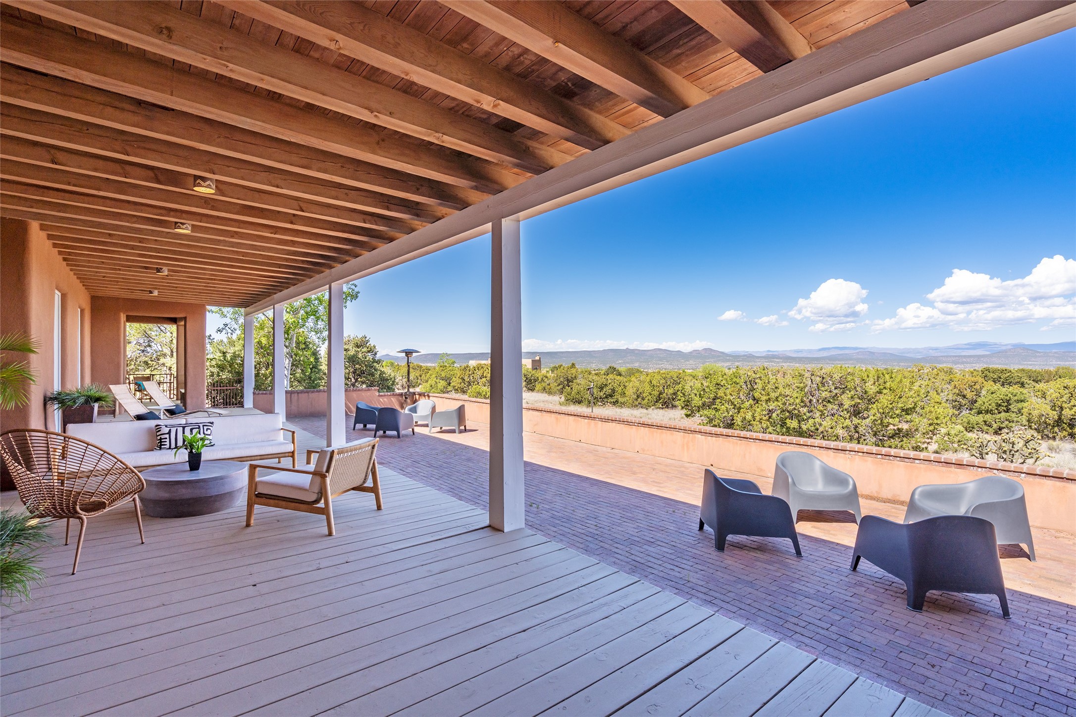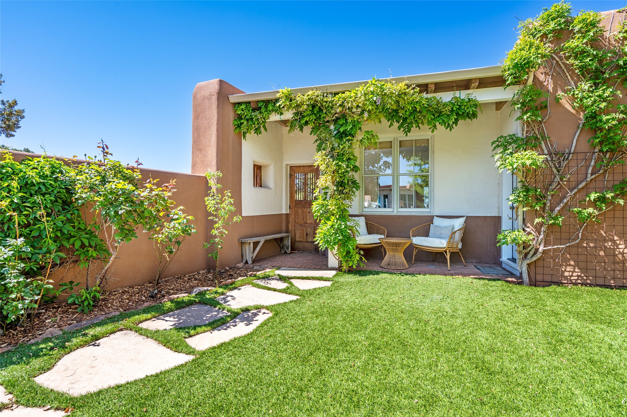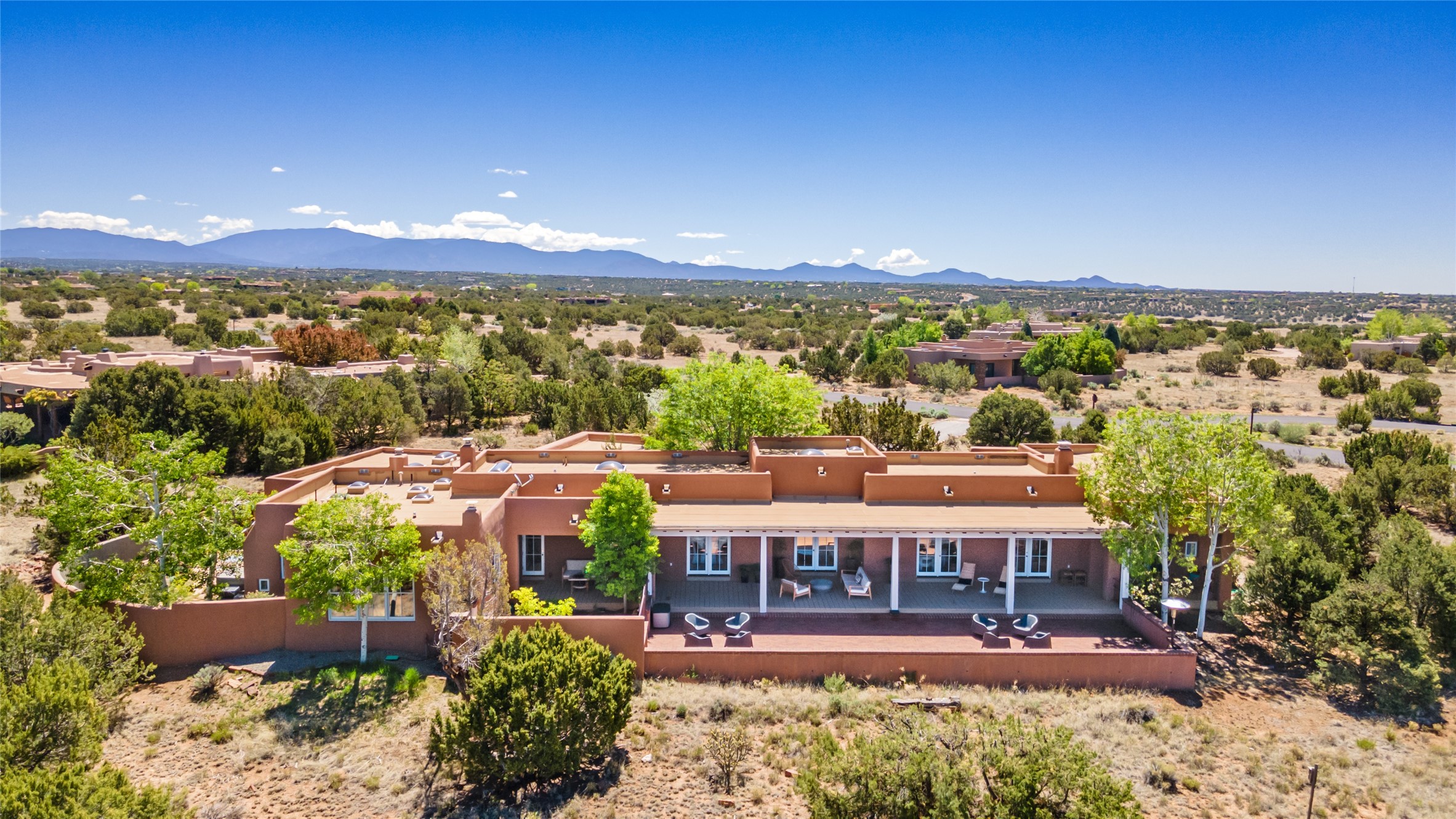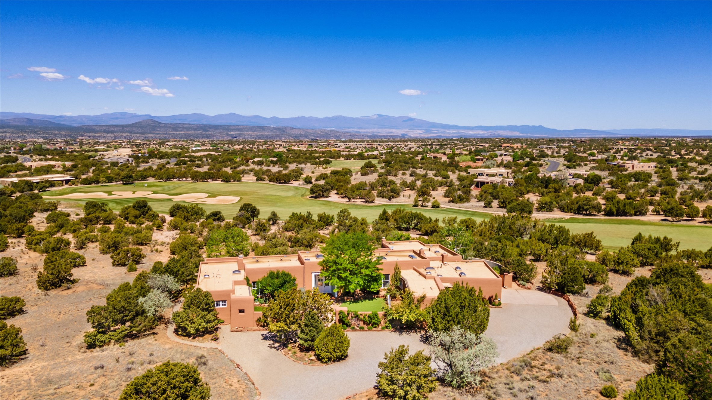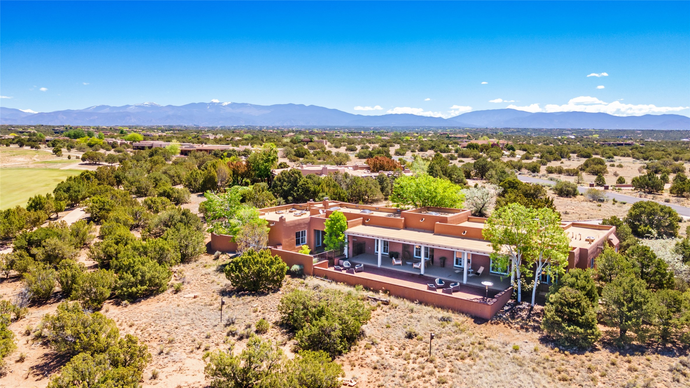 EXPERIENCE THE EPITOME OF LUXURY LIVING IN THIS RARE SPANISH TERRITORIAL-STYLE HOME WITH ASTONISHING VIEWS, NESTLED BY THE 6TH HOLE OF THE SUNRISE GOLF COURSE WITHIN THE PRESTIGIOUS GATED COMMUNITY OF LAS CAMPANAS. This exquisite single-level residence was designed by Trey Jordan and built by Will Prull. The home is washed with natural light and offers 3 bedrooms, 3 bathrooms, 2 powder rooms, and a 2-car garage with storage, all meticulously designed for comfort and elegance. Gated and walled, this property is set back on the lot offering security and privacy. The impressive entry consists of large gates with a mature garden and tall doors that open to and through the house leading to huge views and the expansive covered portal ideal for entertaining or simply savoring sunsets to the West. Mountain and garden views are maximized throughout the home with dazzling effect. The residence is thoughtfully divided into two wings, providing both privacy and a seamless flow. The south wing boasts spacious guest bedrooms and a large living room, perfect for relaxation or entertaining. The north wing features a gourmet kitchen, dining area, informal living space, and the luxurious primary suite. The conservatory with banks of windows that face the enclosed front garden is heated for year-round enjoyment, and makes for an ideal garden room, crafts room, or large office. The owner's suite has been impeccably remodeled, featuring a spa-like bathroom with a soaking tub, a separate walk-in shower, two oversized walk-in closets, and a private "secret garden" patio. Conveniently located near the clubhouse and perched above the golf course, this home provides the perfect balance of luxury and privacy. A tree-lined buffer ensures tranquility, making this property a true sanctuary. With its enchanting gardens, seamless indoor/outdoor living, and unmatched views, this home is a rare gem in Las Campanas, offering a lifestyle of unparalleled elegance and comfort.