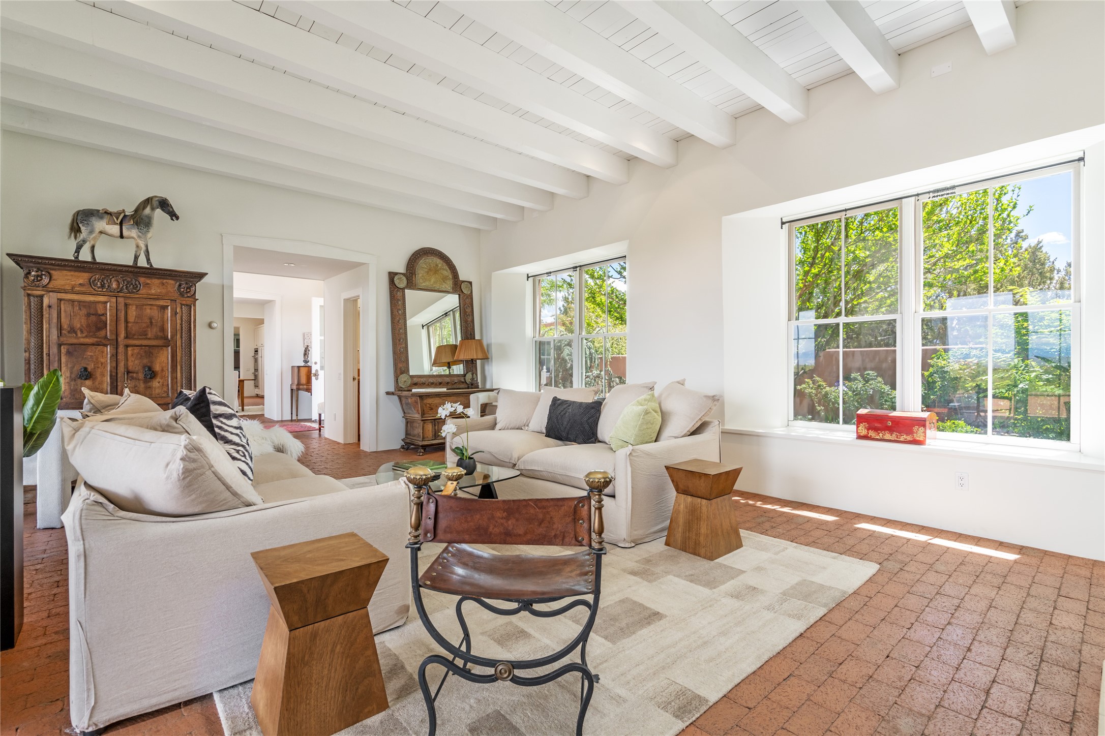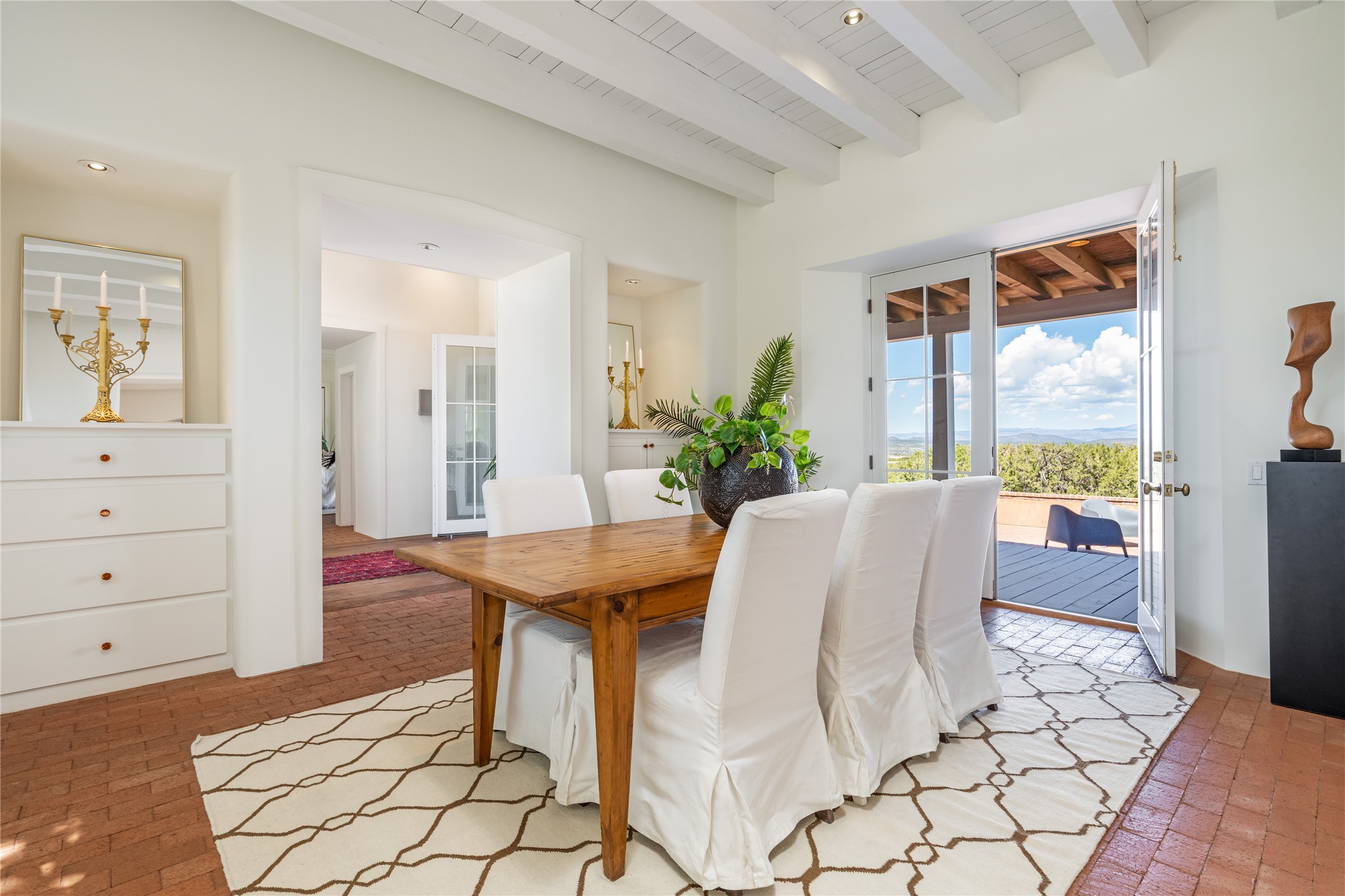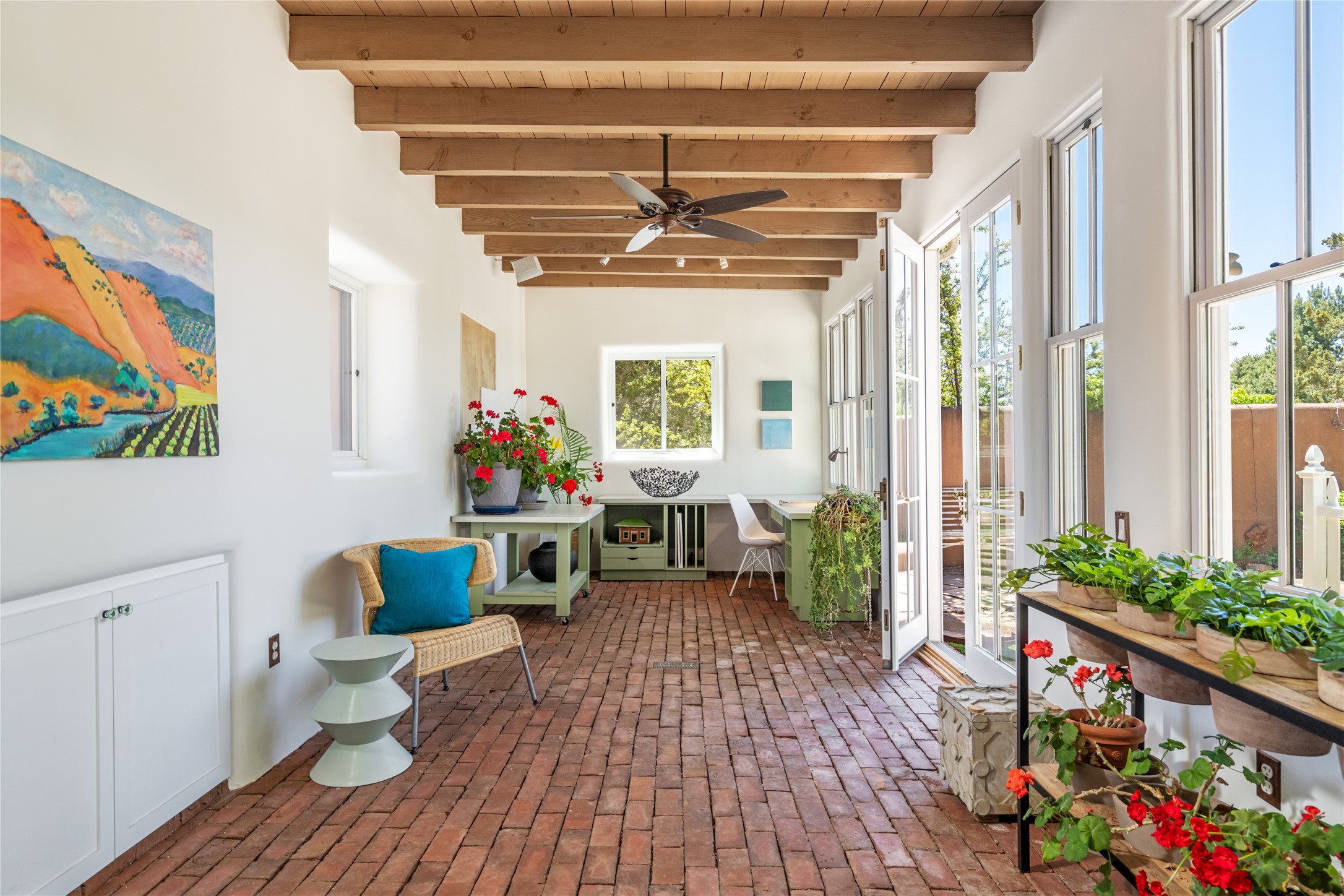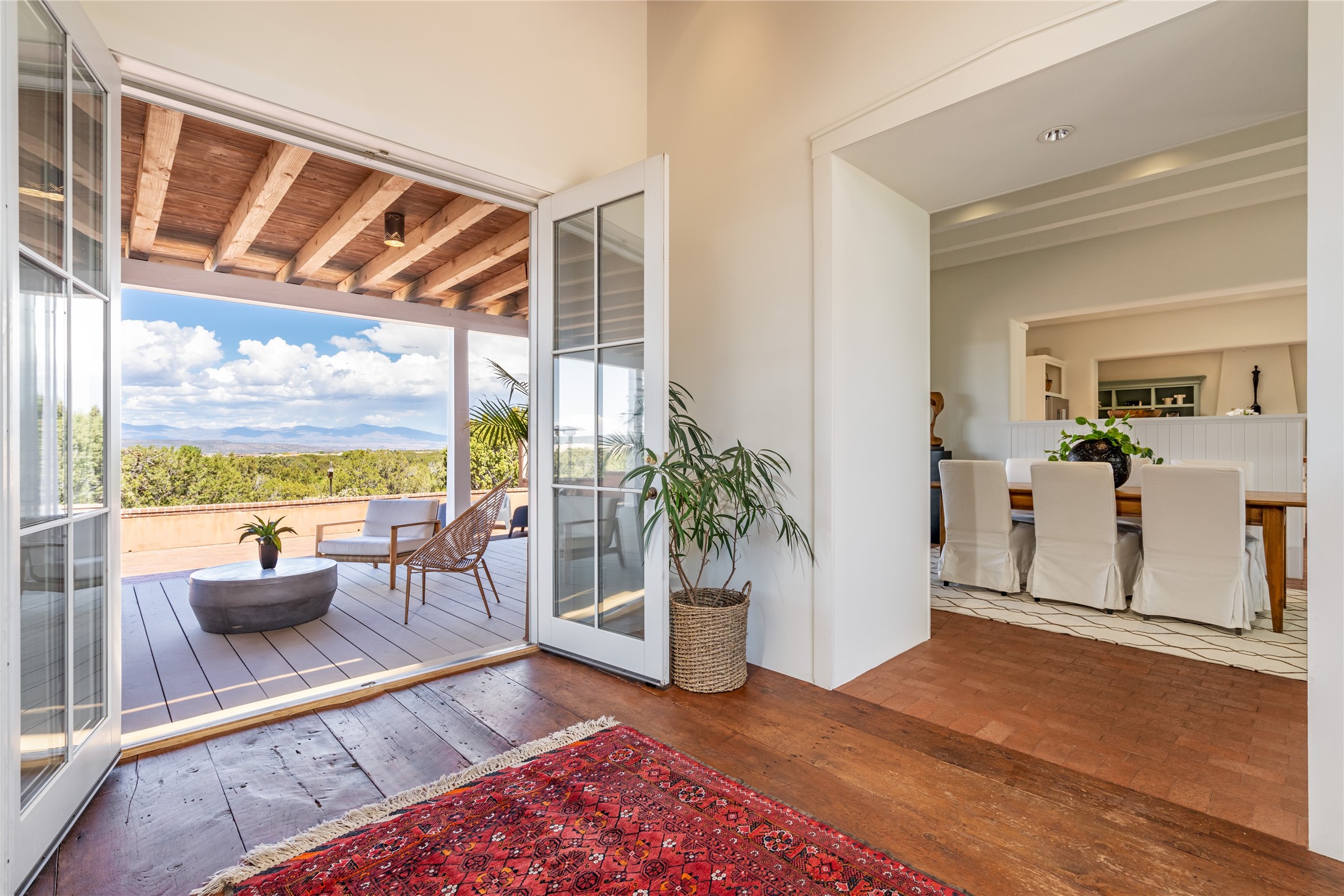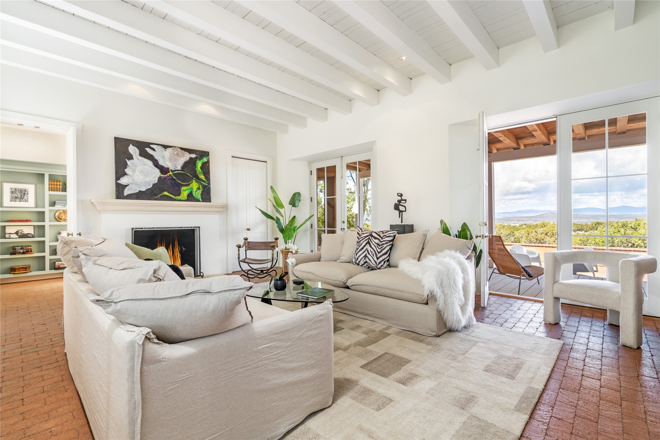 EXPERIENCE THE EPITOME OF LUXURY LIVING IN THIS RARE SPANISH TERRITORIAL-STYLE HOME WITH ASTONISHING VIEWS, NESTLED BY THE 6TH HOLE OF THE SUNRISE GOLF COURSE WITHIN THE PRESTIGIOUS GATED COMMUNITY OF LAS CAMPANAS. This exquisite single-level residence was designed by Trey Jordan and built by Will Prull. The home is washed with natural light and offers 3 bedrooms, 3 bathrooms, 2 powder rooms, and a 2-car garage with storage, all meticulously designed for comfort and elegance. Gated and walled, this property is set back on the lot offering security and privacy. The impressive entry consists of large gates with a mature garden and tall doors that open to and through the house leading to huge views and the expansive covered portal ideal for entertaining or simply savoring sunsets to the West. Mountain and garden views are maximized throughout the home with dazzling effect. The residence is thoughtfully divided into two wings, providing both privacy and a seamless flow. The south wing boasts spacious guest bedrooms and a large living room, perfect for relaxation or entertaining. The north wing features a gourmet kitchen, dining area, informal living space, and the luxurious primary suite. The conservatory with banks of windows that face the enclosed front garden is heated for year-round enjoyment, and makes for an ideal garden room, crafts room, or large office. The owner's suite has been impeccably remodeled, featuring a spa-like bathroom with a soaking tub, a separate walk-in shower, two oversized walk-in closets, and a private "secret garden" patio. Conveniently located near the clubhouse and perched above the golf course, this home provides the perfect balance of luxury and privacy. A tree-lined buffer ensures tranquility, making this property a true sanctuary. With its enchanting gardens, seamless indoor/outdoor living, and unmatched views, this home is a rare gem in Las Campanas, offering a lifestyle of unparalleled elegance and comfort.