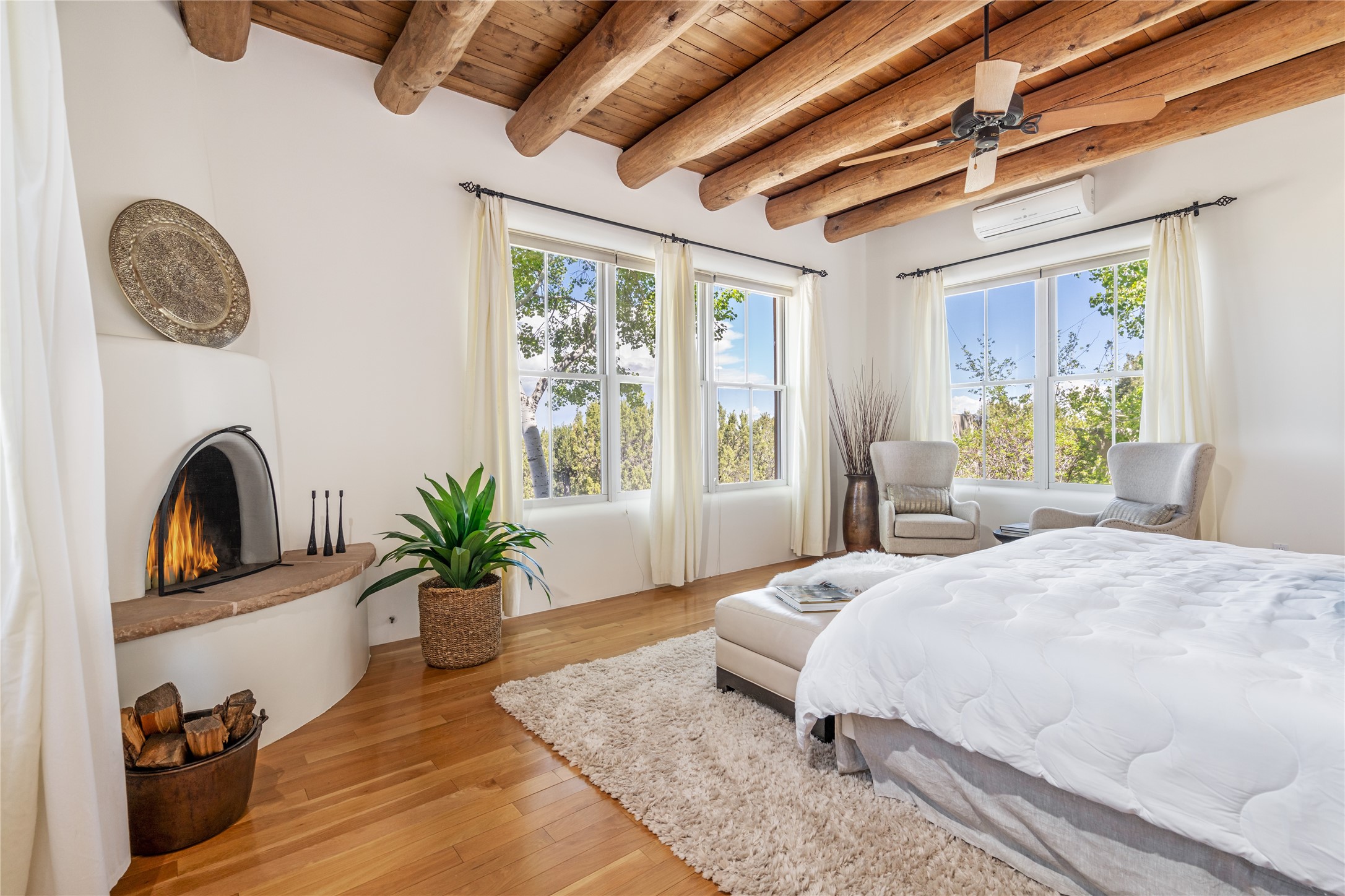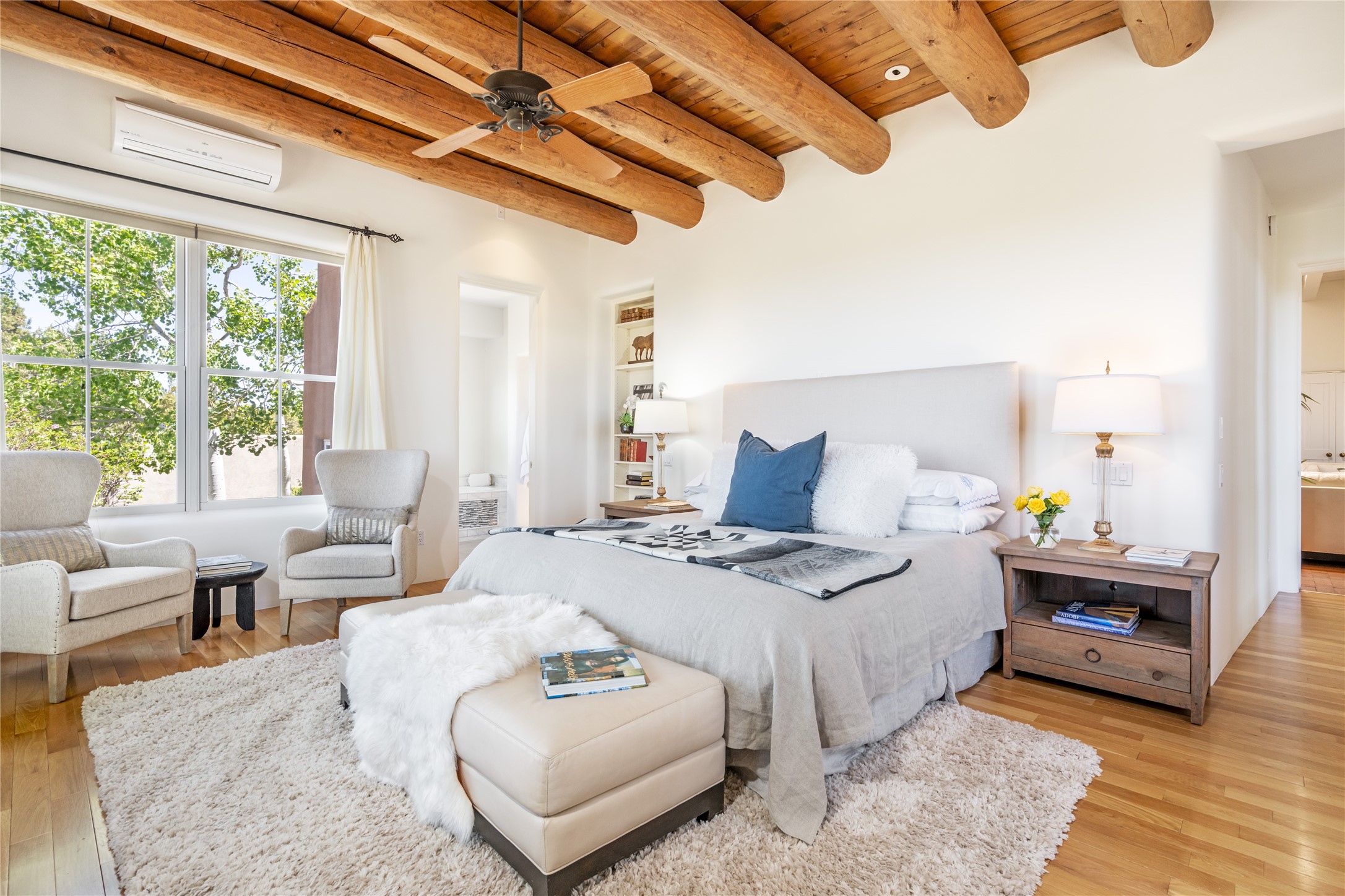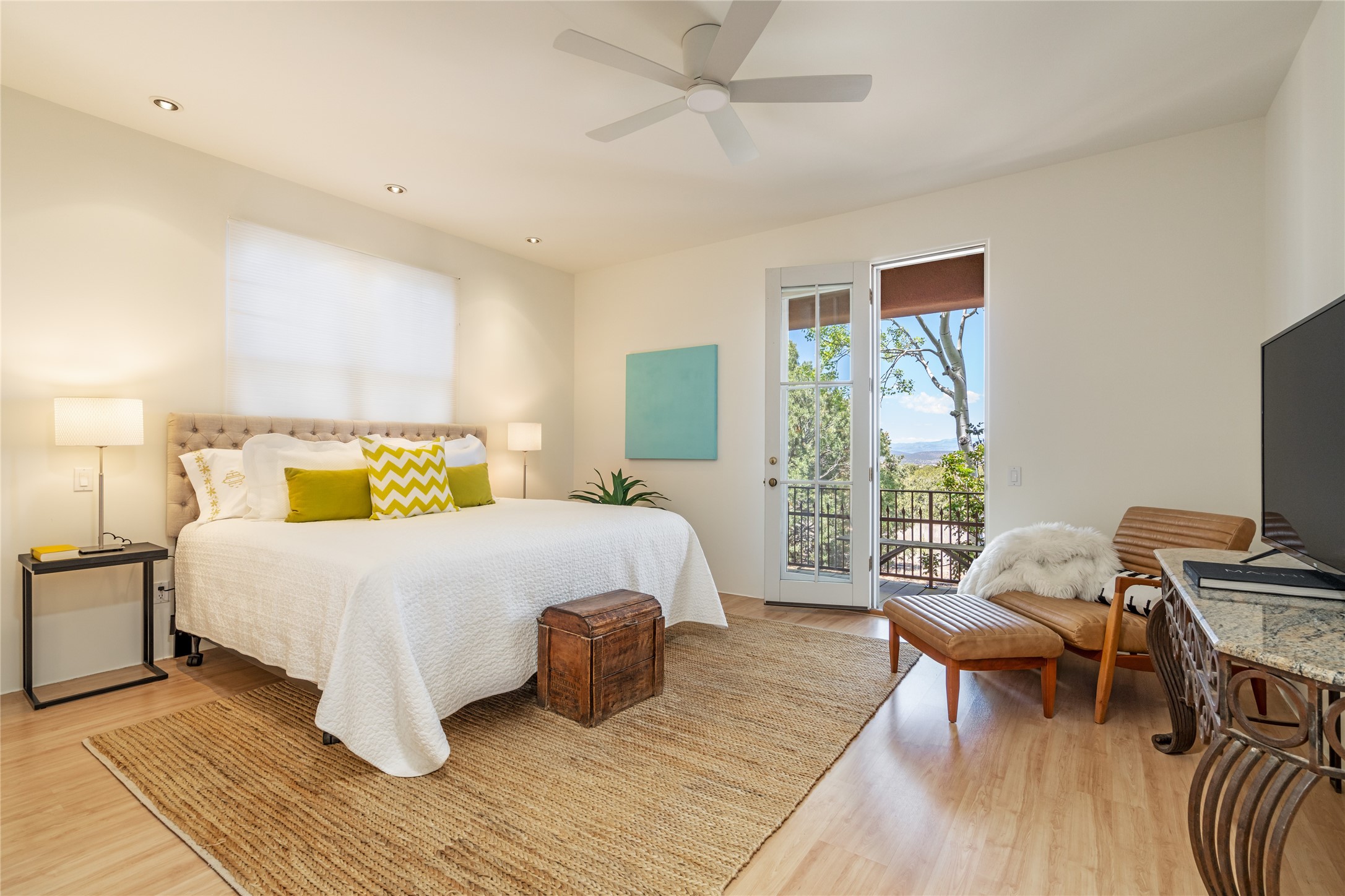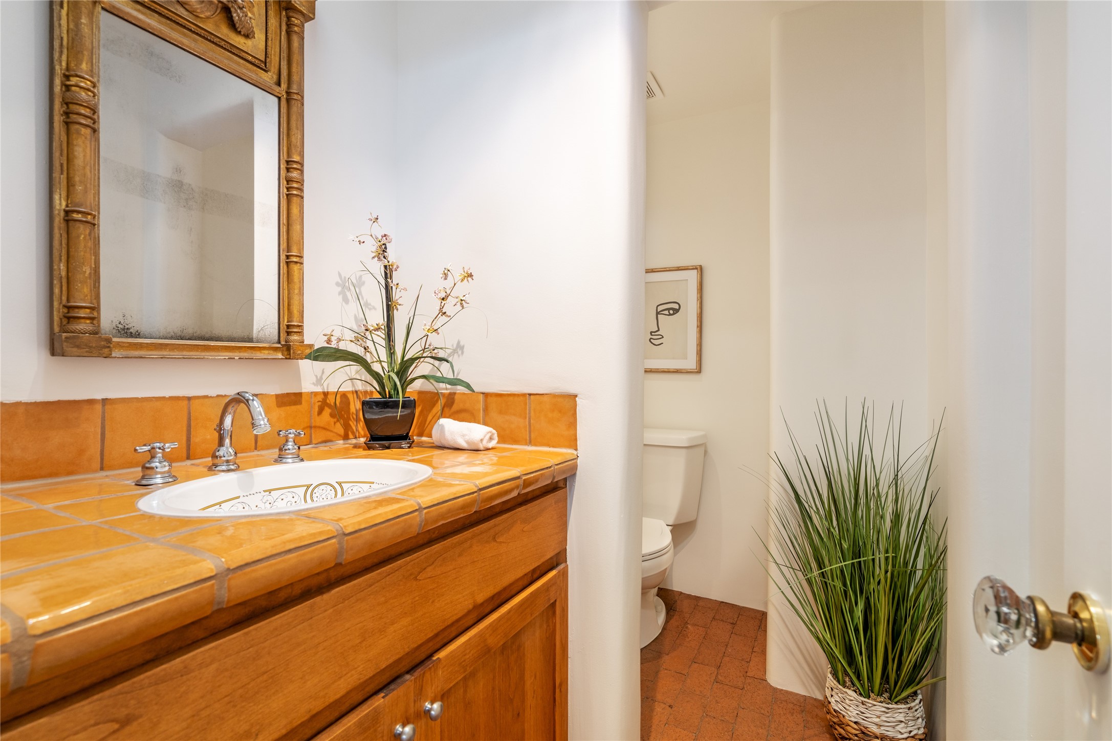 EXPERIENCE THE EPITOME OF LUXURY LIVING IN THIS RARE SPANISH TERRITORIAL-STYLE HOME WITH ASTONISHING VIEWS, NESTLED BY THE 6TH HOLE OF THE SUNRISE GOLF COURSE WITHIN THE PRESTIGIOUS GATED COMMUNITY OF LAS CAMPANAS. This exquisite single-level residence was designed by Trey Jordan and built by Will Prull. The home is washed with natural light and offers 3 bedrooms, 3 bathrooms, 2 powder rooms, and a 2-car garage with storage, all meticulously designed for comfort and elegance. Gated and walled, this property is set back on the lot offering security and privacy. The impressive entry consists of large gates with a mature garden and tall doors that open to and through the house leading to huge views and the expansive covered portal ideal for entertaining or simply savoring sunsets to the West. Mountain and garden views are maximized throughout the home with dazzling effect. The residence is thoughtfully divided into two wings, providing both privacy and a seamless flow. The south wing boasts spacious guest bedrooms and a large living room, perfect for relaxation or entertaining. The north wing features a gourmet kitchen, dining area, informal living space, and the luxurious primary suite. The conservatory with banks of windows that face the enclosed front garden is heated for year-round enjoyment, and makes for an ideal garden room, crafts room, or large office. The owner's suite has been impeccably remodeled, featuring a spa-like bathroom with a soaking tub, a separate walk-in shower, two oversized walk-in closets, and a private "secret garden" patio. Conveniently located near the clubhouse and perched above the golf course, this home provides the perfect balance of luxury and privacy. A tree-lined buffer ensures tranquility, making this property a true sanctuary. With its enchanting gardens, seamless indoor/outdoor living, and unmatched views, this home is a rare gem in Las Campanas, offering a lifestyle of unparalleled elegance and comfort.
