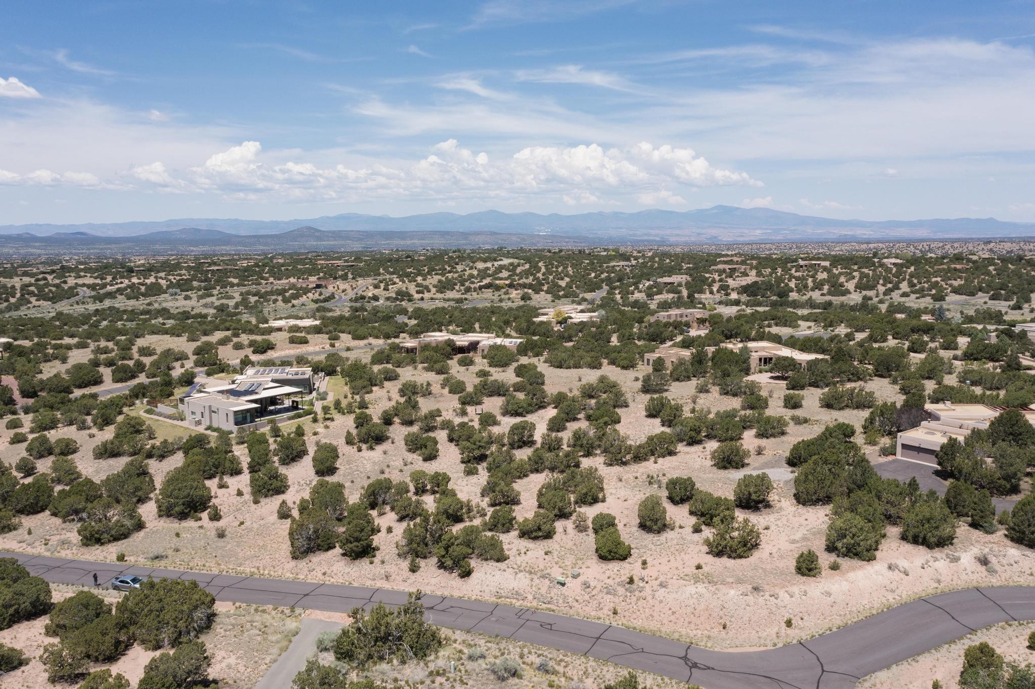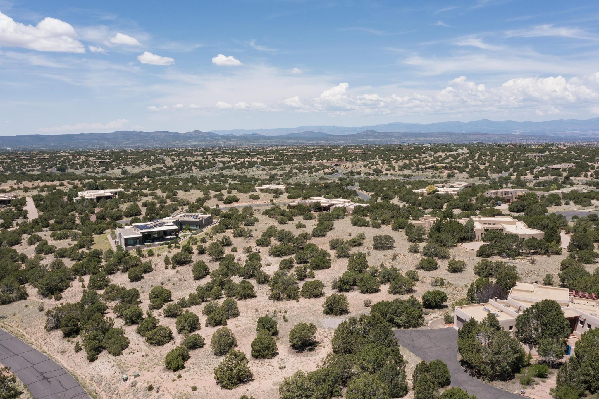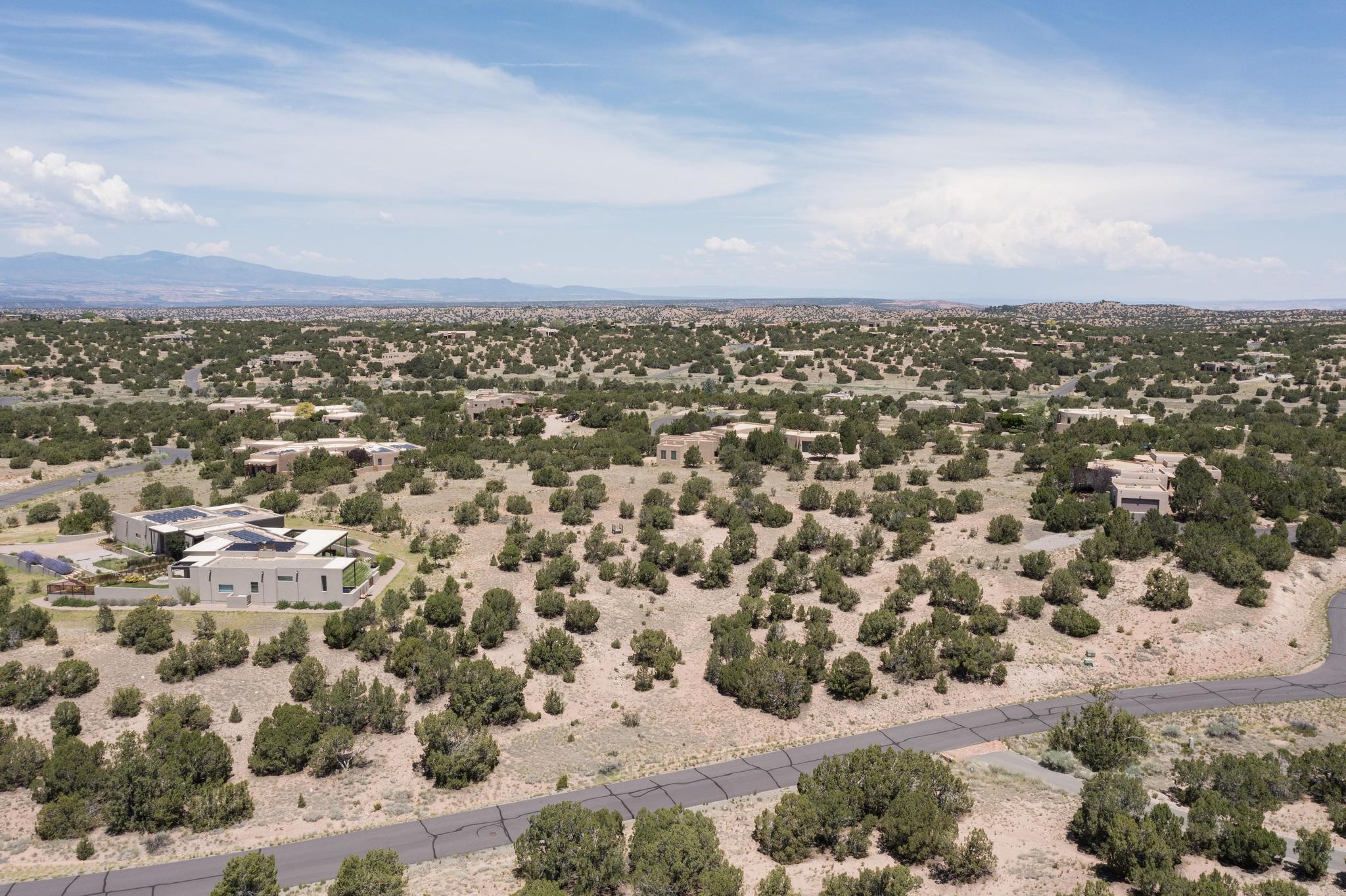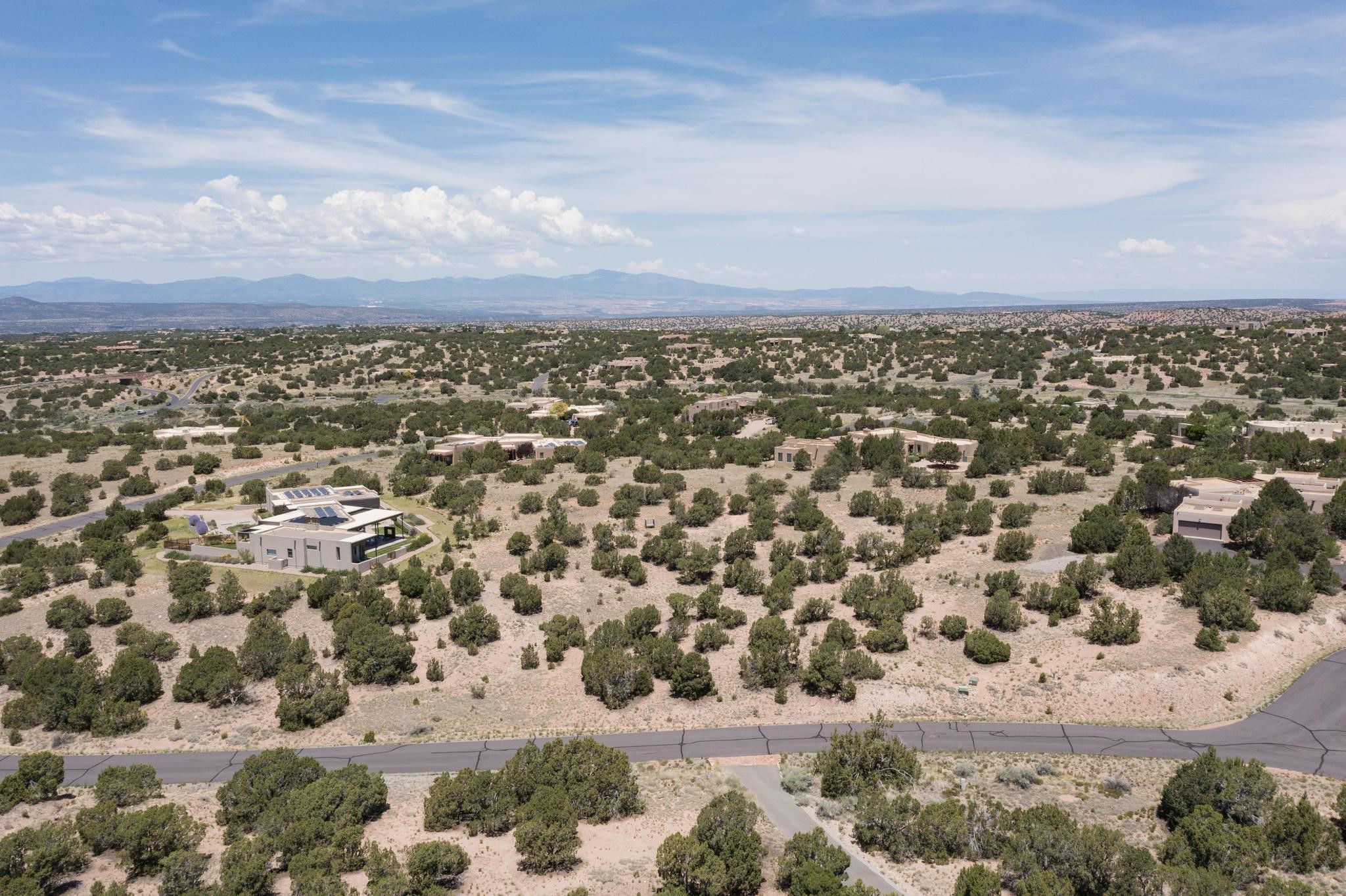 Beautiful view lot located on a private cul-de-sac in Las Campanas Estates I. Sangre de Cristo, Sandia, Jemez Mountains, and sunset views are yours from this elevated lot. A viewing platform provides an opportunity to consider several options for a superb home site. The lot will support a substantial residence or part-time home with ample space for house and guesthouse. There is an optional membership to The Club at Las Campanas. The Club offers indoor and outdoor pools, tennis courts, fitness center, dining, premier equestrian center and two Jack Nicklaus Signature Golf Courses. Gated community with paved roads, 24-hour roaming security, common area maintenance and 24-hour EMT's on site.