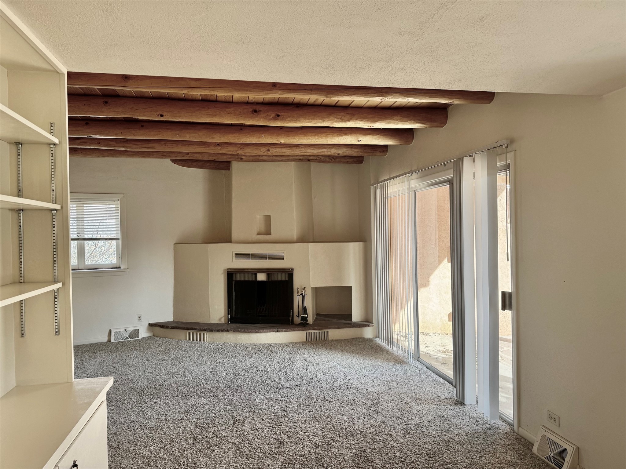"Last of the Best" Nestled along the border of the Old Taos Highway, this home offers a rare chance to transform it into a stunning in-town retreat. The mid-century modern fireplace serves as the centerpiece of the main living area, radiating warmth and character throughout the space. Expansive sliding doors open to outdoor patios, seamlessly blending indoor and outdoor living while enhancing the home's spacious feel. Plaza Del Monte gated subdivision is a rare lifestyle opportunity for someone with an eye towards the future and the ability to undertake a fixer-upper.