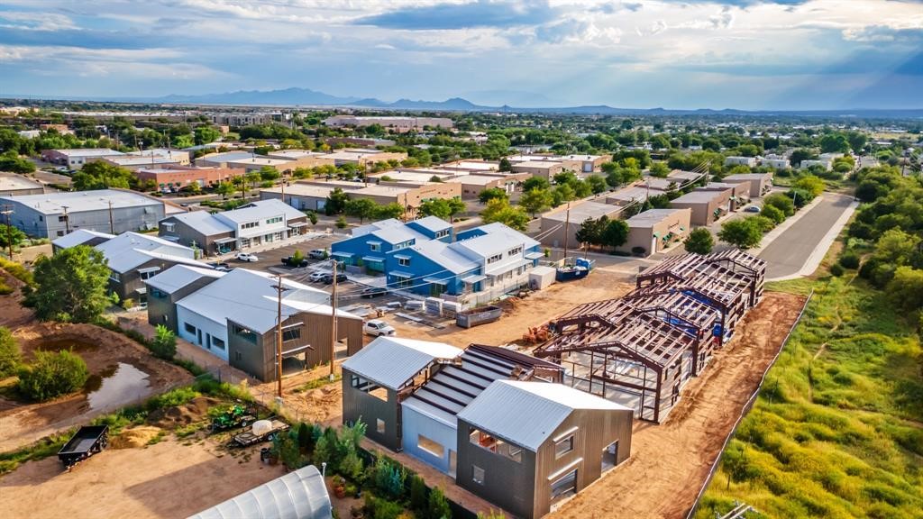 The Studios at Parkway Phase 2, currently under construction, is Santa Fe's newest commercial, industrial, and flex-use condominium development in the thriving Siler/Rufina Warehouse, Art & Innovation District.Designed with an industrial aesthetic, The Studios offer open, light-filled spaces with contemporary touches that create an inspiring environment for business. Each unit spans nearly 1,677 square feet, including 1,587 square feet of interior space ("walls in"), and features tall ceilings, large aluminum glass roll-up garage doors, expansive storefront windows, and finished concrete floors. Inside, you'll find LED lighting, handcrafted steel staircases with wood treads, and smooth drywall finishes. The ground floor encompasses 1,092 square feet, while the second story adds 584 square feet.These units are designed with flexibility in mind, with an option for Live-Work as an accessory to commercial use. Each unit has separately metered utilities, kitchen-ready hookups, a designated area for a shower, and thoughtfully landscaped grounds tailored for shipping and receiving. Zoned I-1, these state-of-the-art condominiums are suitable for a range of uses, from offices, galleries, and artist studios to warehouses, wellness businesses, and light industry. Additionally, the roof is prepared for solar PV installation, and the property is located in a Federal Opportunity Zone.