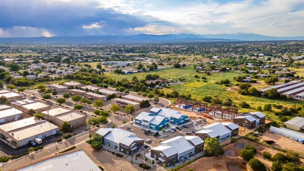 The Studios at Parkway Phase 2, currently under construction, is Santa Fe's newest commercial, industrial, and flex-use condominium development in the thriving Siler/Rufina Warehouse, Art & Innovation District.Designed with an industrial aesthetic, The Studios offer open, light-filled spaces with contemporary touches that create an inspiring environment for business. Each unit spans nearly 1,677 square feet, including 1,587 square feet of interior space ("walls in"), and features tall ceilings, large aluminum glass roll-up garage doors, expansive storefront windows, and finished concrete floors. Inside, you'll find LED lighting, handcrafted steel staircases with wood treads, and smooth drywall finishes. The ground floor encompasses 1,092 square feet, while the second story adds 584 square feet.These units are designed with flexibility in mind, with an option for Live-Work as an accessory to commercial use. Each unit has separately metered utilities, kitchen-ready hookups, a designated area for a shower, and thoughtfully landscaped grounds tailored for shipping and receiving. Zoned I-1, these state-of-the-art condominiums are suitable for a range of uses, from offices, galleries, and artist studios to warehouses, wellness businesses, and light industry. Additionally, the roof is prepared for solar PV installation, and the property is located in a Federal Opportunity Zone.