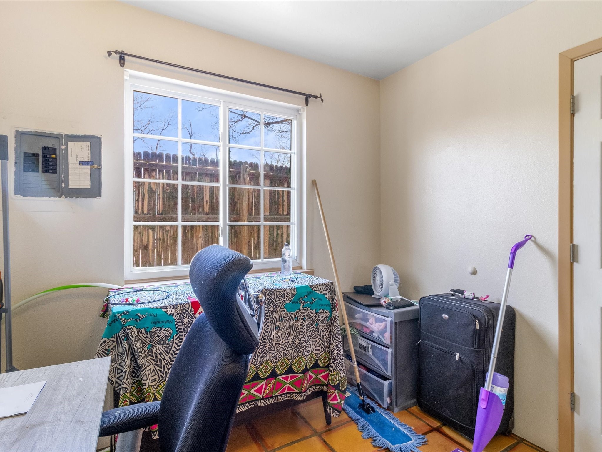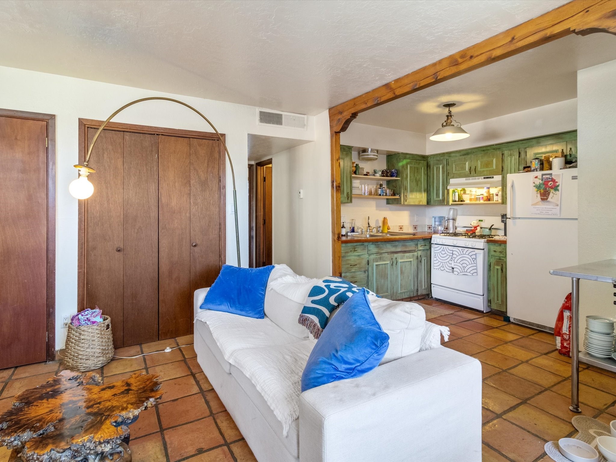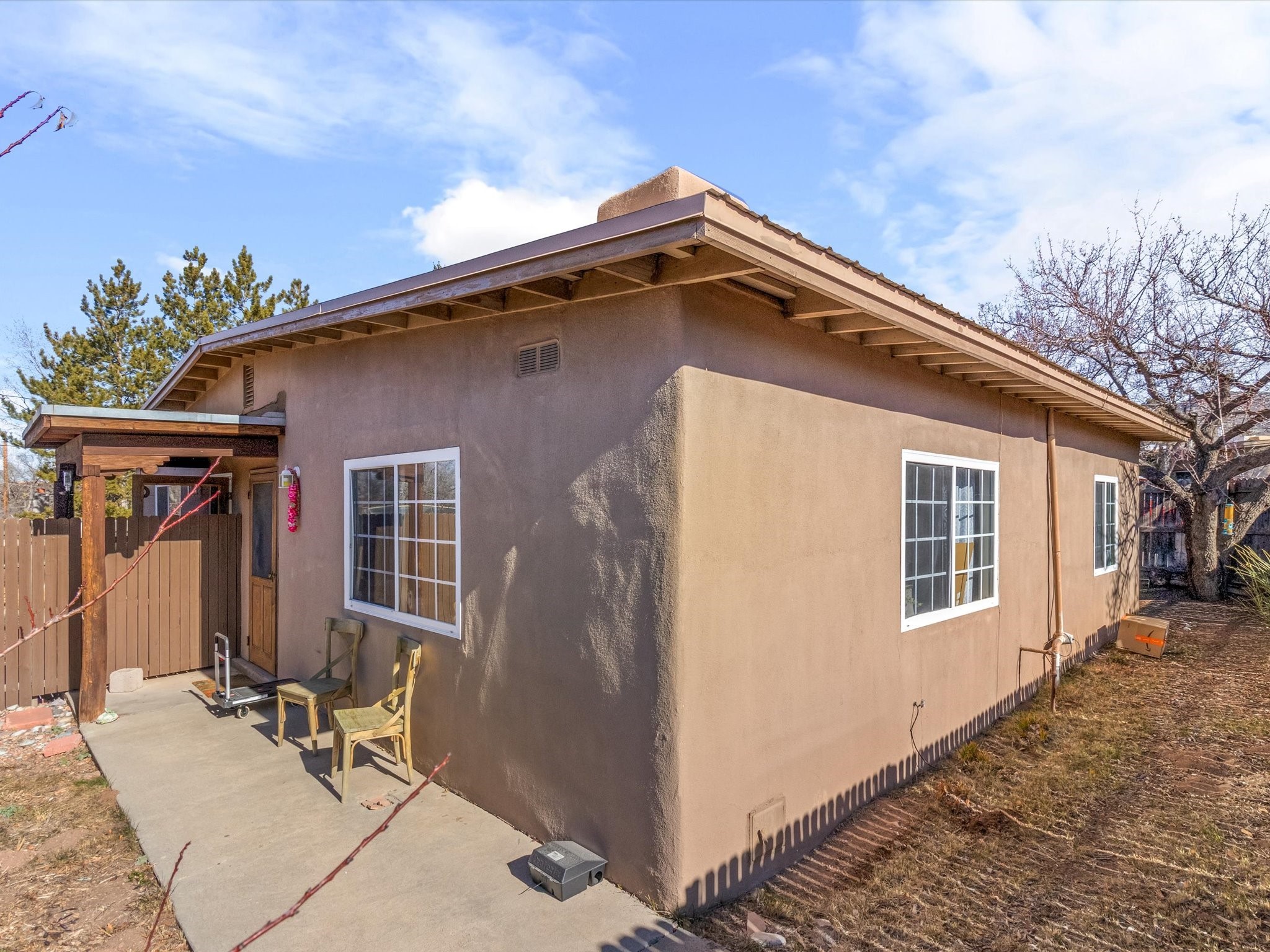 A unique duplex offering a fantastic opportunity for both homeowners and investors. This property features two mirroring apartments, each thoughtfully designed with 2 bedrooms, 1 bath, a laundry closet with hookups, and an open-concept living, dining, and kitchen area. The cozy kiva fireplaces add a touch of Southwestern charm, while the front portals and enclosed yards provide inviting outdoor spaces for relaxation or entertainment.Each kitchen is equipped with essential appliances, making the units move-in ready or perfect for rental opportunities. Live in one unit and rent out the other to generate income while enjoying the convenience of having tenants close by.Adding to the property's value is an oversized garage with stunning vigas, offering ample room for storage, workspace, or potential expansion. The expansive lot provides parking for over a dozen vehicles, making it ideal for those who need extra space or have plans for future development.Located in the heart of Santa Fe, this duplex combines comfort, functionality, and investment potential in one incredible package. Don't miss out on this rare opportunity--schedule your private showing today!