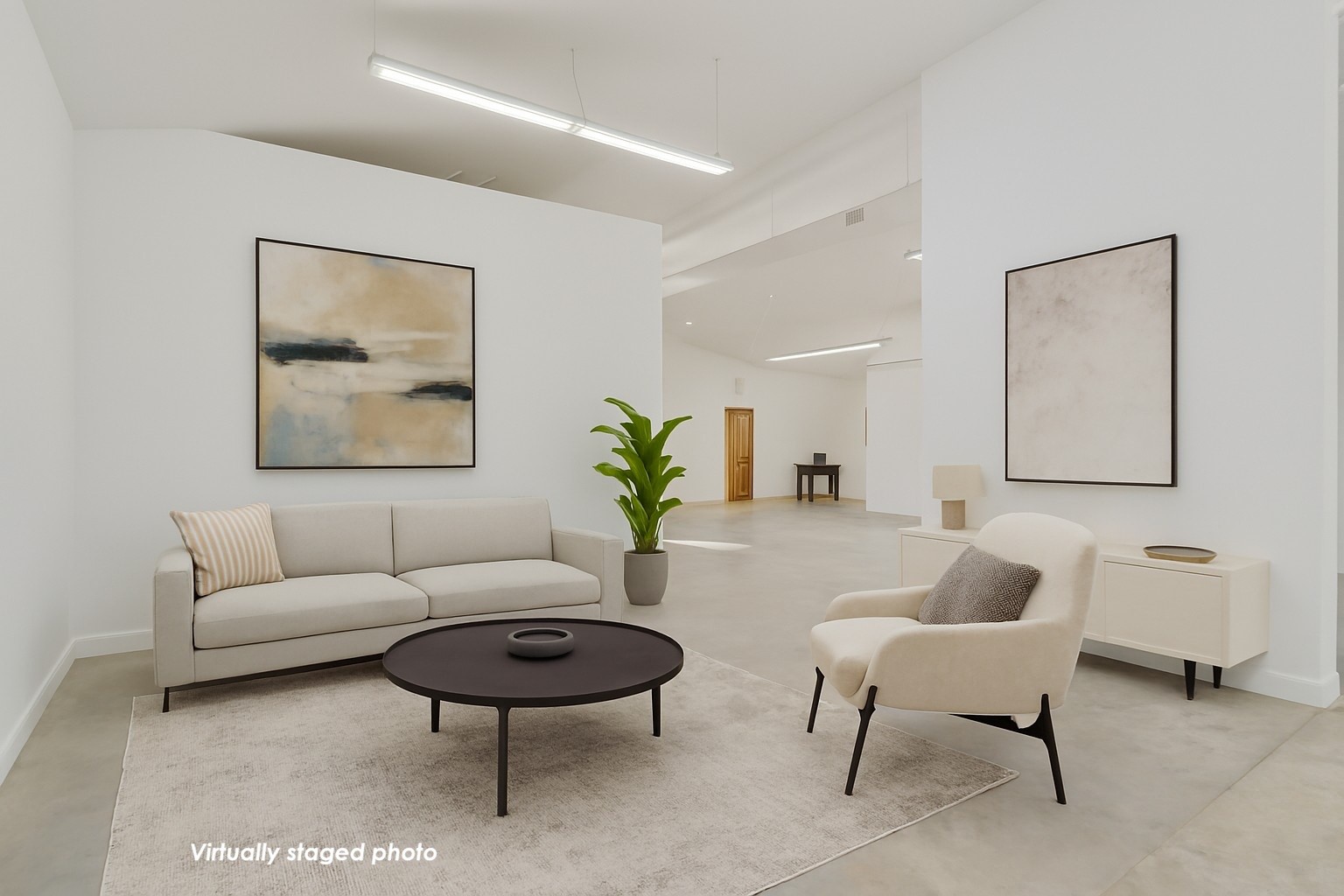 Santa Fe Style Barndominium.....A unique and thoughtfully designed property offering flexibility for living and working in a tranquil country setting just 20 minutes from downtown. Set on 2.24 acres, this inspiring space combines comfort, creativity, and convenience. The property has a 2400-square-foot studio/workshop/possible additional live space featuring 16-foot pitched ceilings, 11-foot side walls, and two oversized 10x10 garage doors. With abundant natural light, excellent ventilation, and easy access, the possibilities are endless for artisans, makers, and entrepreneurs alike--ideal for woodworking, sculpting, dance studios, photography, car restoration, pottery, and more. Complementing the studio/workshop/Garage space is a 440-square-foot Attached with its own private entrance. Inside, you'll find a cozy yet functional layout including a bedroom/office, full bath, kitchen, utility room, and living area--perfect for a residence, guest suite, or additional office space. Additional highlights: - Private water association with county water source - On-grid utilities and year-round easy access - room for expansion and finish out if one chose to Don't miss this one-of-a-kind opportunity to create, innovate, and thrive close to town yet surrounded by nature. Schedule your private showing today!