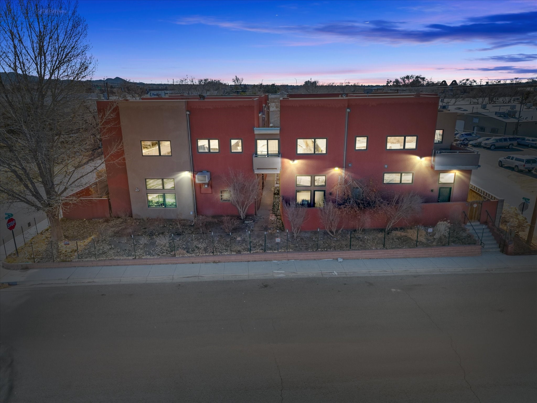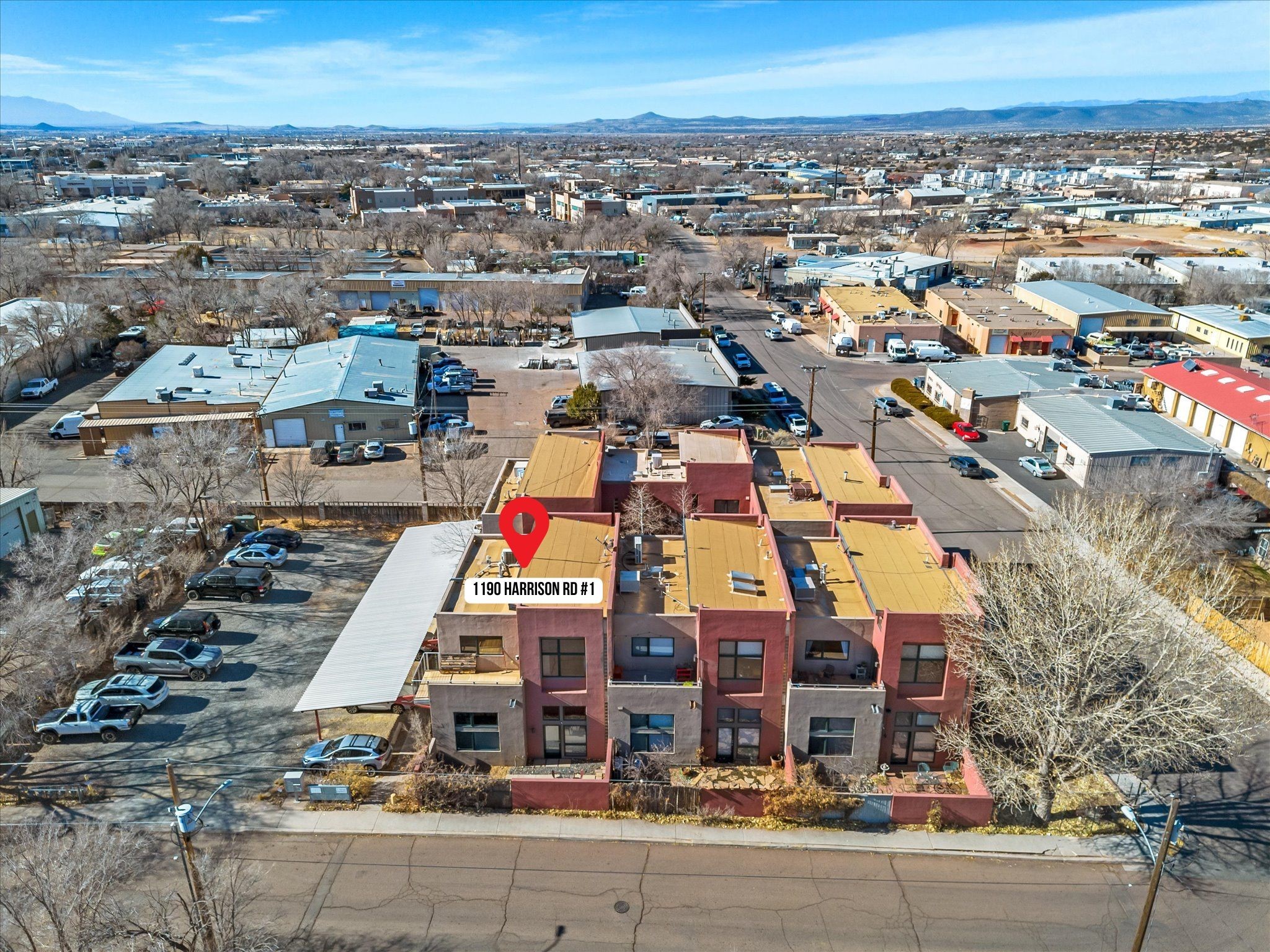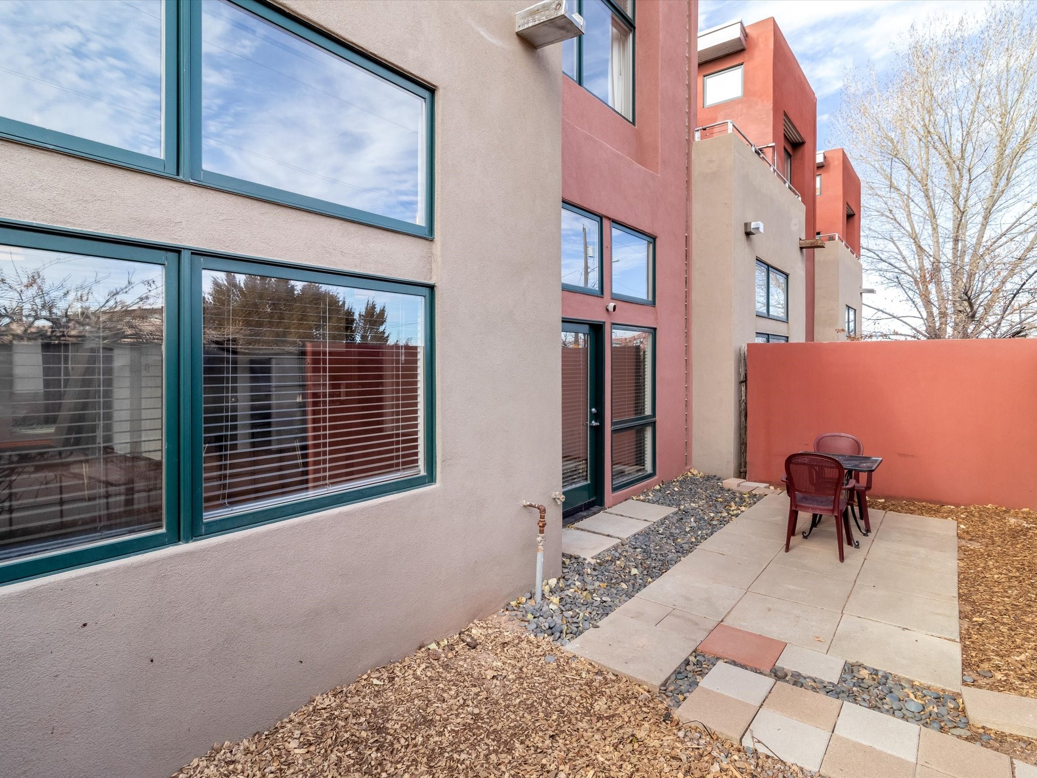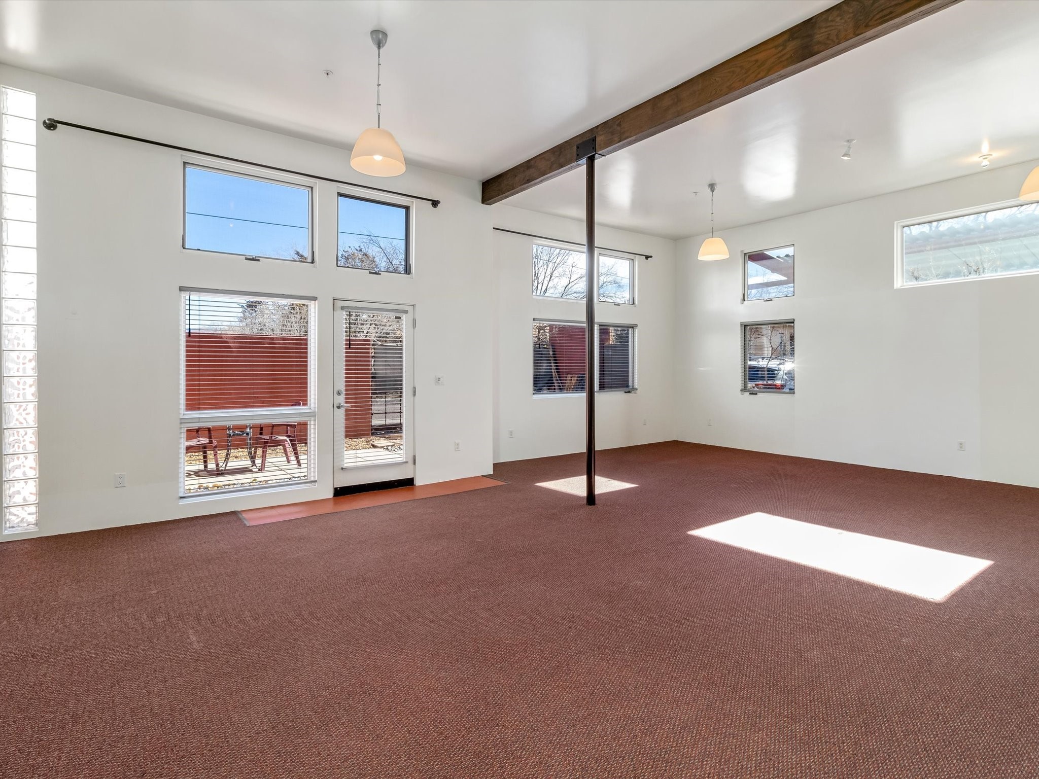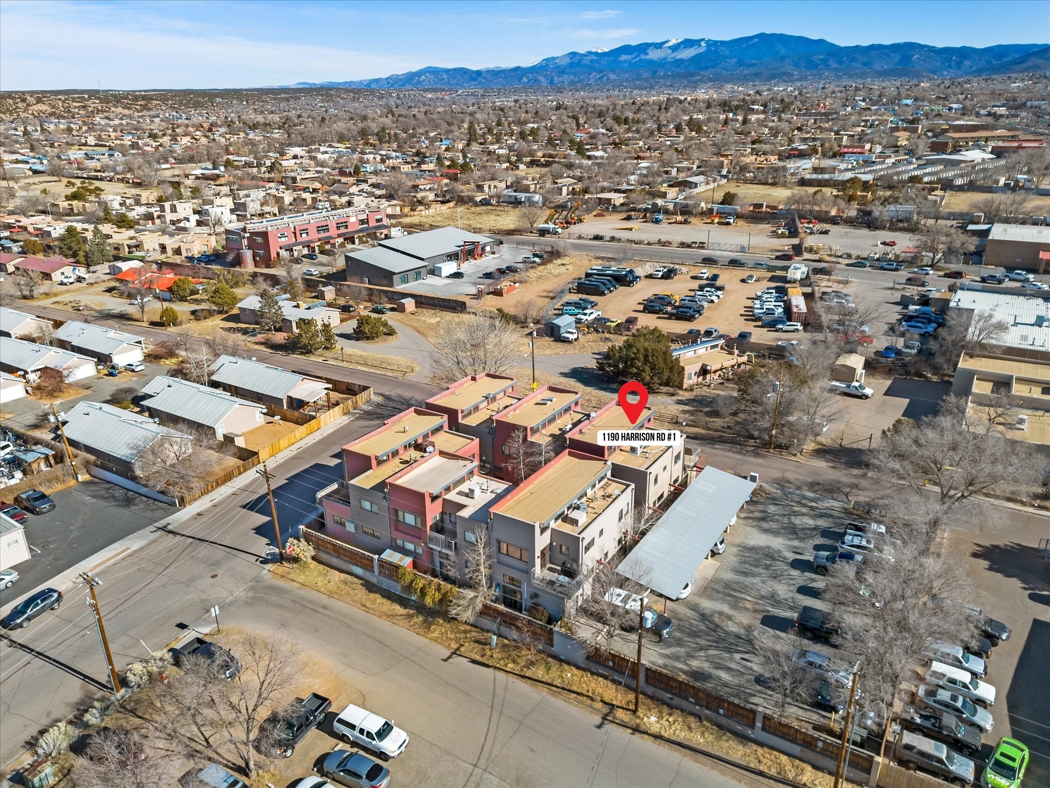 A perfect opportunity to take for this stunning, light-filled two-level studio condo in Santa Fe's vibrant Siler Rufina District, designed by award-winning architects Dent/Nordhaus. Zoned C-2 for live/work flexibility, this 2,241 sq. ft. space allows for residential, office, or commercial use, featuring separate public and private entrances to accommodate various lifestyle and business needs. The first level (1,092 sq. ft.) has a showroom-quality entrance, 12-foot ceilings, and access to a private, walled/gated yard, while the second level (1,149 sq. ft.) offers breathtaking Sangre de Cristo Mountain views, 12-16 foot vaulted ceilings, a full kitchen, Two bedrooms, a full bath + laundry, and a private deck. Part of Harrison Road Studios, a boutique community of six studio condos centered around a landscaped courtyard, this unit includes one reserved covered parking space, one reserved uncovered space, and ample guest parking. Whether you choose to live above and work below, use both levels as a residence, operate a full office or commercial space, or rent for investment income, this meticulously maintained condo is a rare find that won't last long--schedule your private showing today!