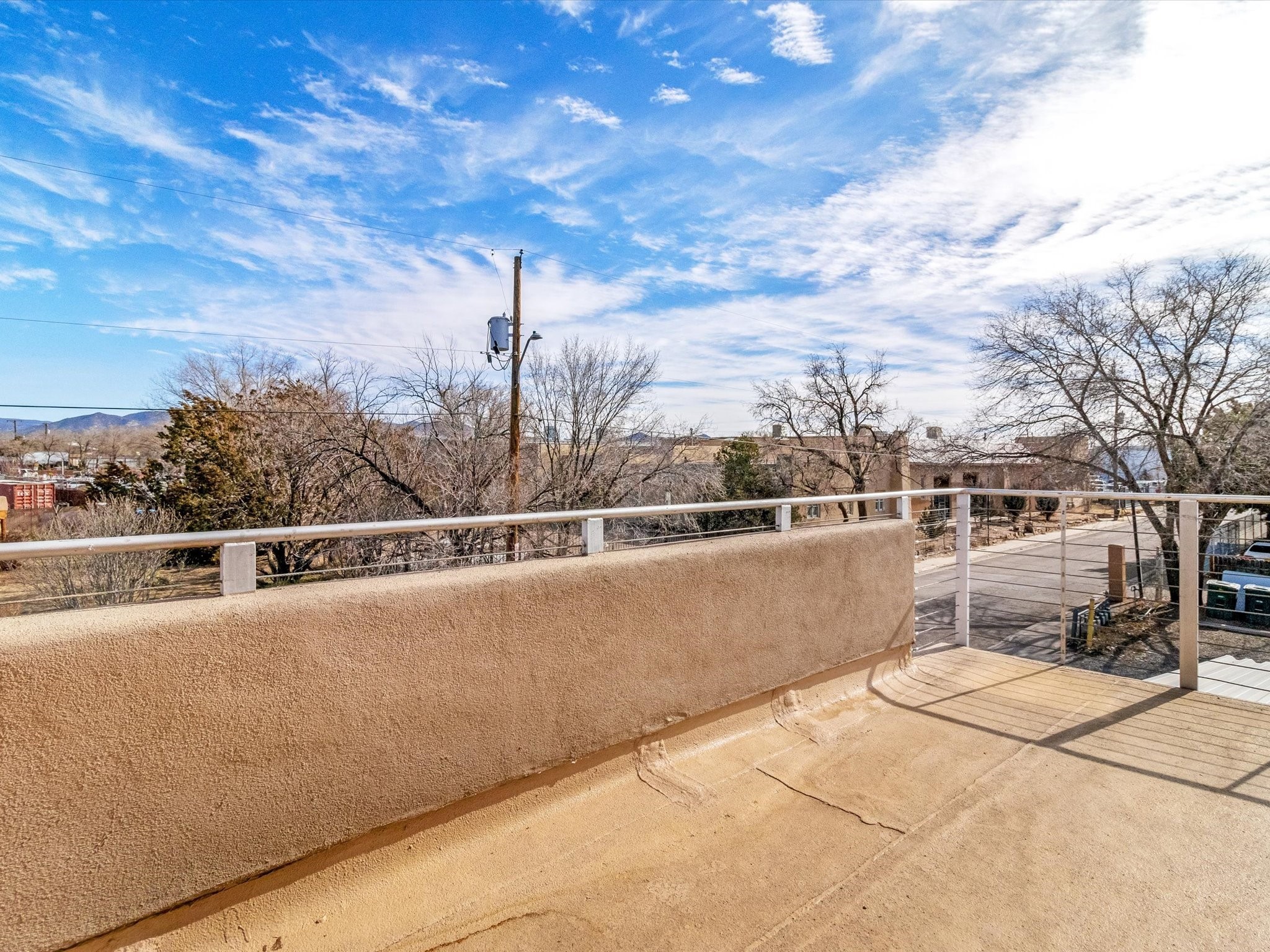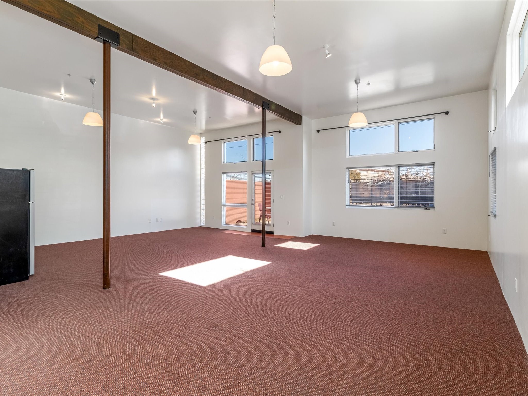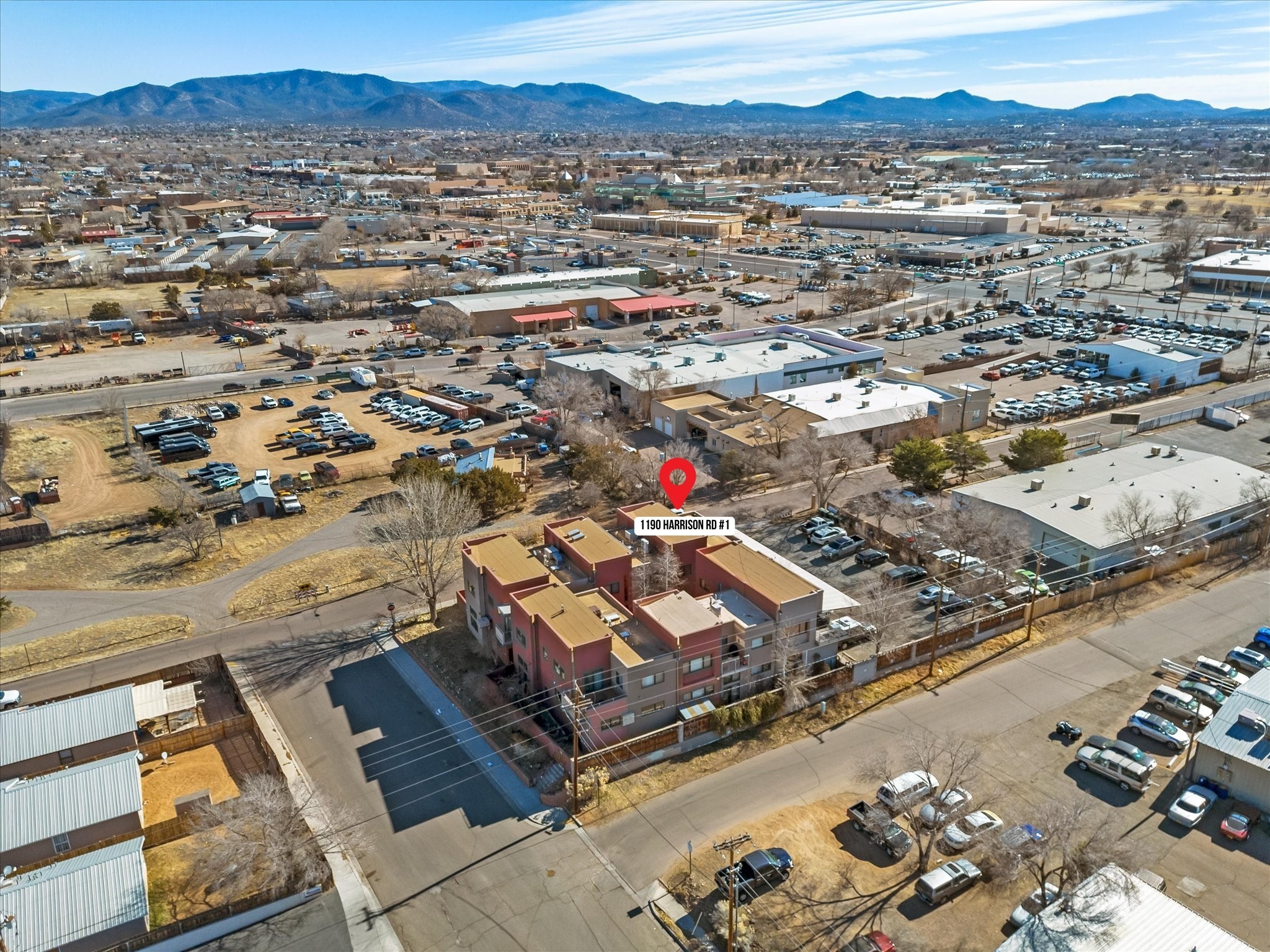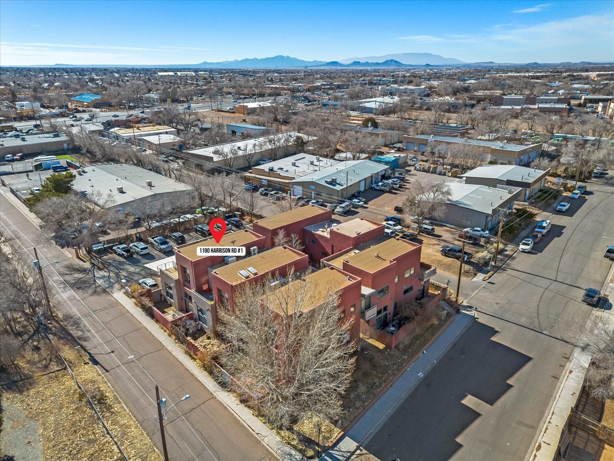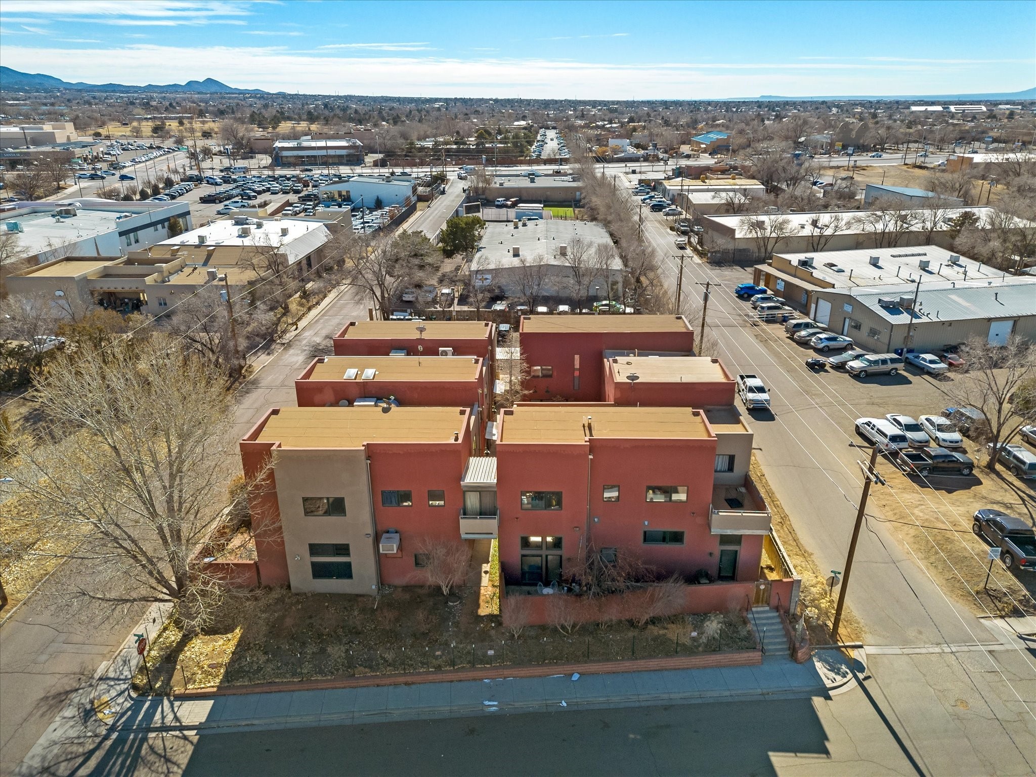 A perfect opportunity to take for this stunning, light-filled two-level studio condo in Santa Fe's vibrant Siler Rufina District, designed by award-winning architects Dent/Nordhaus. Zoned C-2 for live/work flexibility, this 2,241 sq. ft. space allows for residential, office, or commercial use, featuring separate public and private entrances to accommodate various lifestyle and business needs. The first level (1,092 sq. ft.) has a showroom-quality entrance, 12-foot ceilings, and access to a private, walled/gated yard, while the second level (1,149 sq. ft.) offers breathtaking Sangre de Cristo Mountain views, 12-16 foot vaulted ceilings, a full kitchen, Two bedrooms, a full bath + laundry, and a private deck. Part of Harrison Road Studios, a boutique community of six studio condos centered around a landscaped courtyard, this unit includes one reserved covered parking space, one reserved uncovered space, and ample guest parking. Whether you choose to live above and work below, use both levels as a residence, operate a full office or commercial space, or rent for investment income, this meticulously maintained condo is a rare find that won't last long--schedule your private showing today!