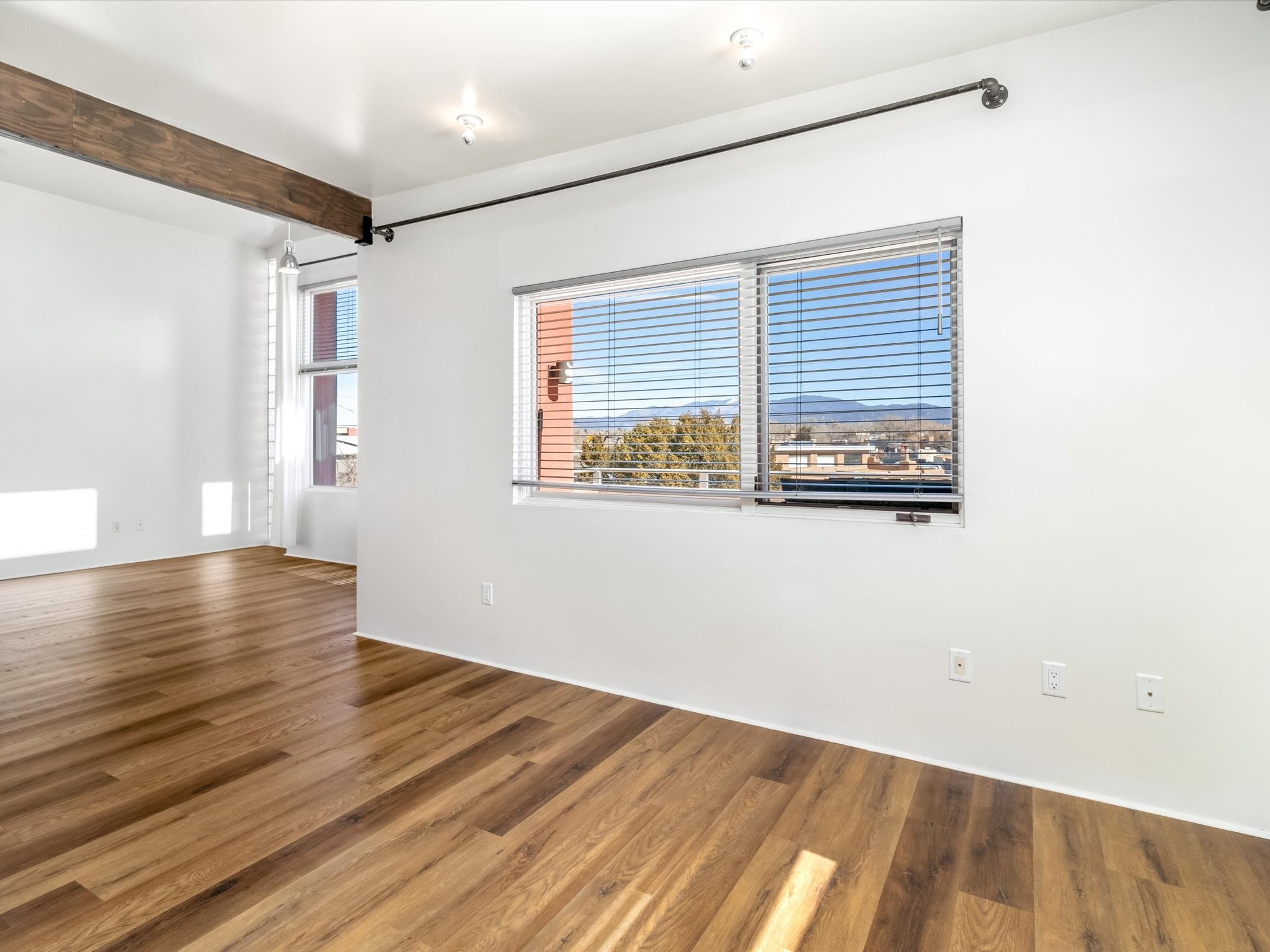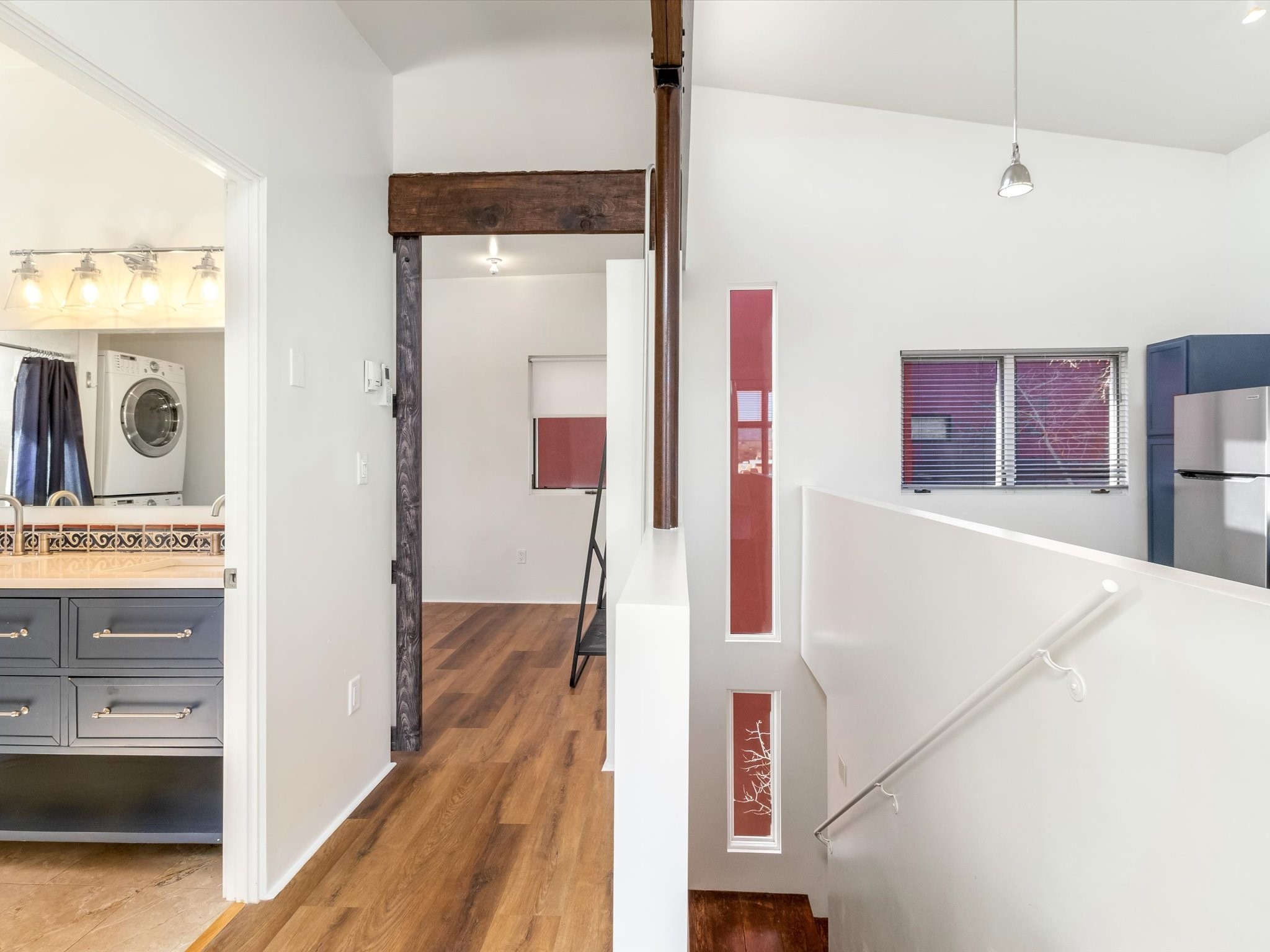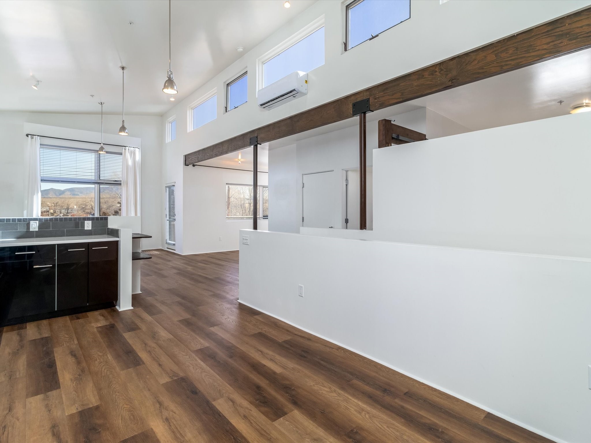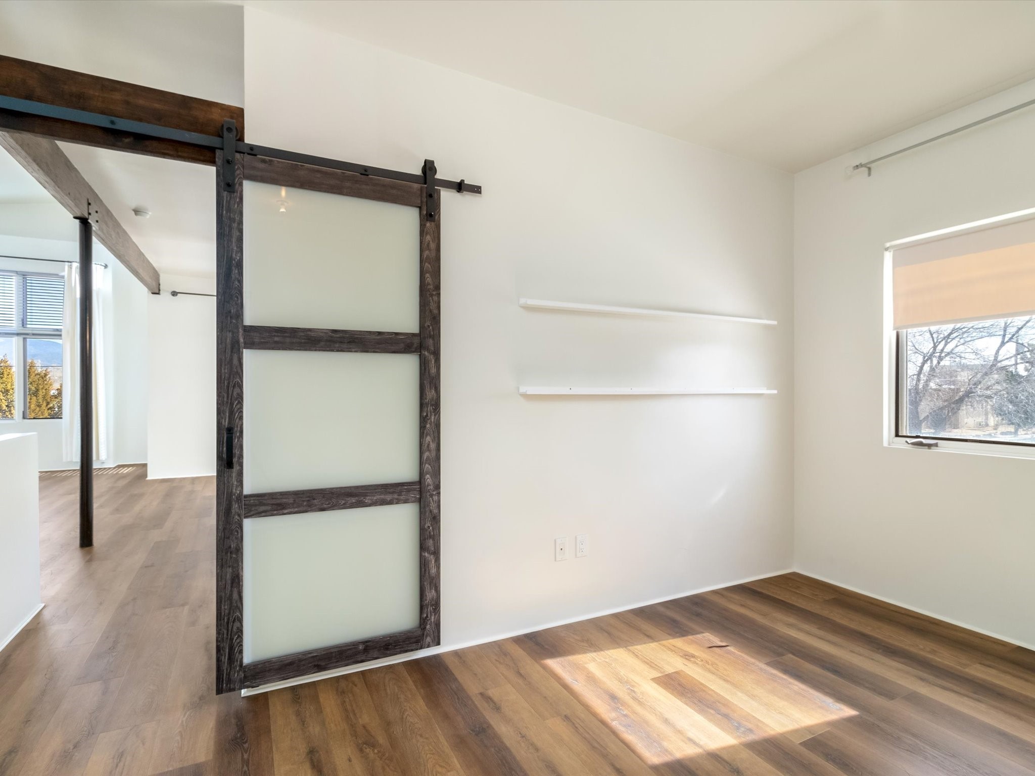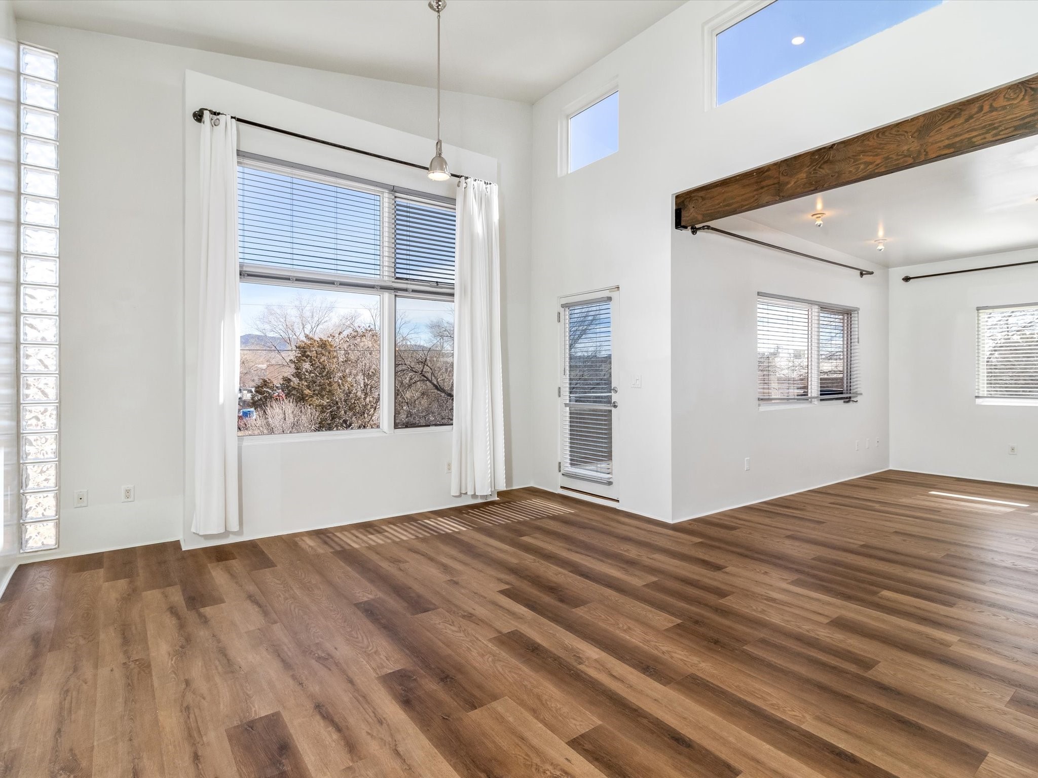 A perfect opportunity to take for this stunning, light-filled two-level studio condo in Santa Fe's vibrant Siler Rufina District, designed by award-winning architects Dent/Nordhaus. Zoned C-2 for live/work flexibility, this 2,241 sq. ft. space allows for residential, office, or commercial use, featuring separate public and private entrances to accommodate various lifestyle and business needs. The first level (1,092 sq. ft.) has a showroom-quality entrance, 12-foot ceilings, and access to a private, walled/gated yard, while the second level (1,149 sq. ft.) offers breathtaking Sangre de Cristo Mountain views, 12-16 foot vaulted ceilings, a full kitchen, Two bedrooms, a full bath + laundry, and a private deck. Part of Harrison Road Studios, a boutique community of six studio condos centered around a landscaped courtyard, this unit includes one reserved covered parking space, one reserved uncovered space, and ample guest parking. Whether you choose to live above and work below, use both levels as a residence, operate a full office or commercial space, or rent for investment income, this meticulously maintained condo is a rare find that won't last long--schedule your private showing today!