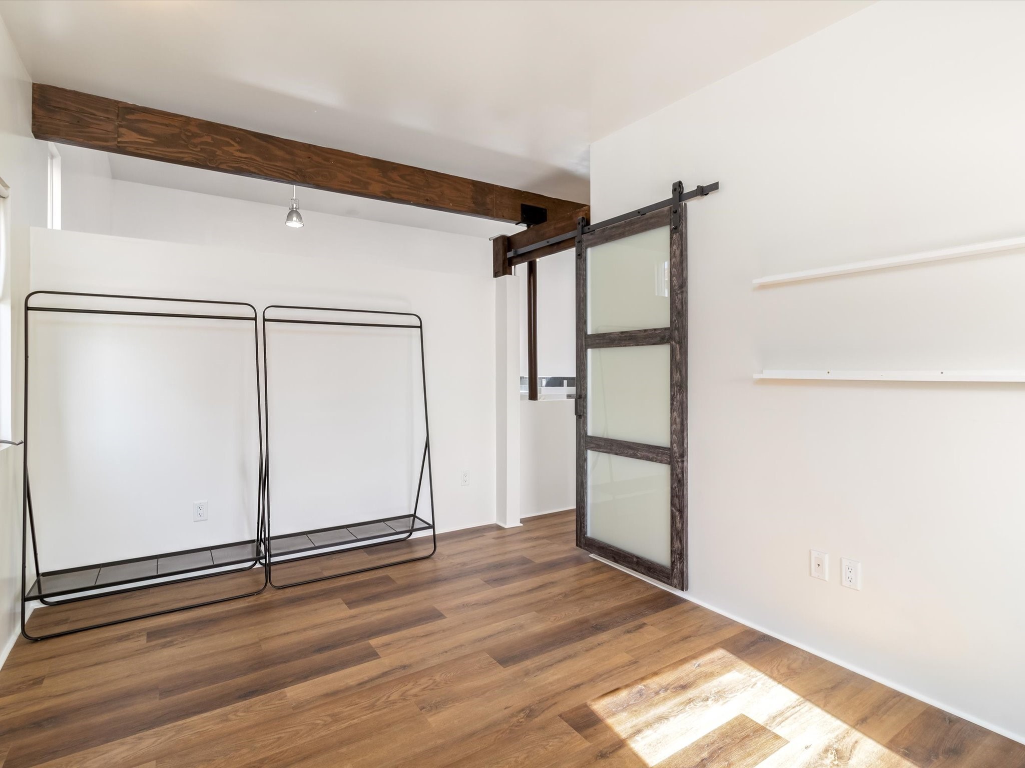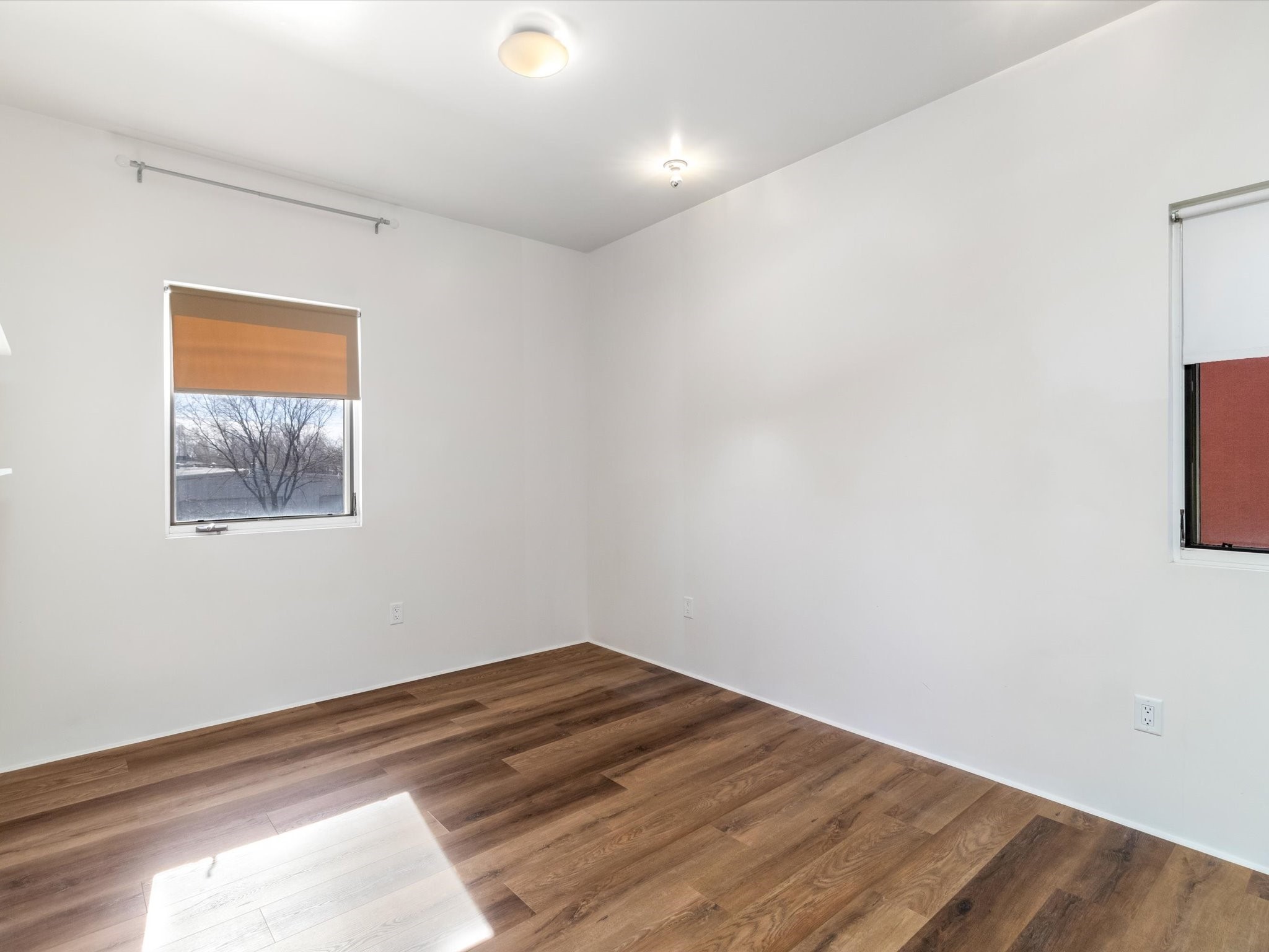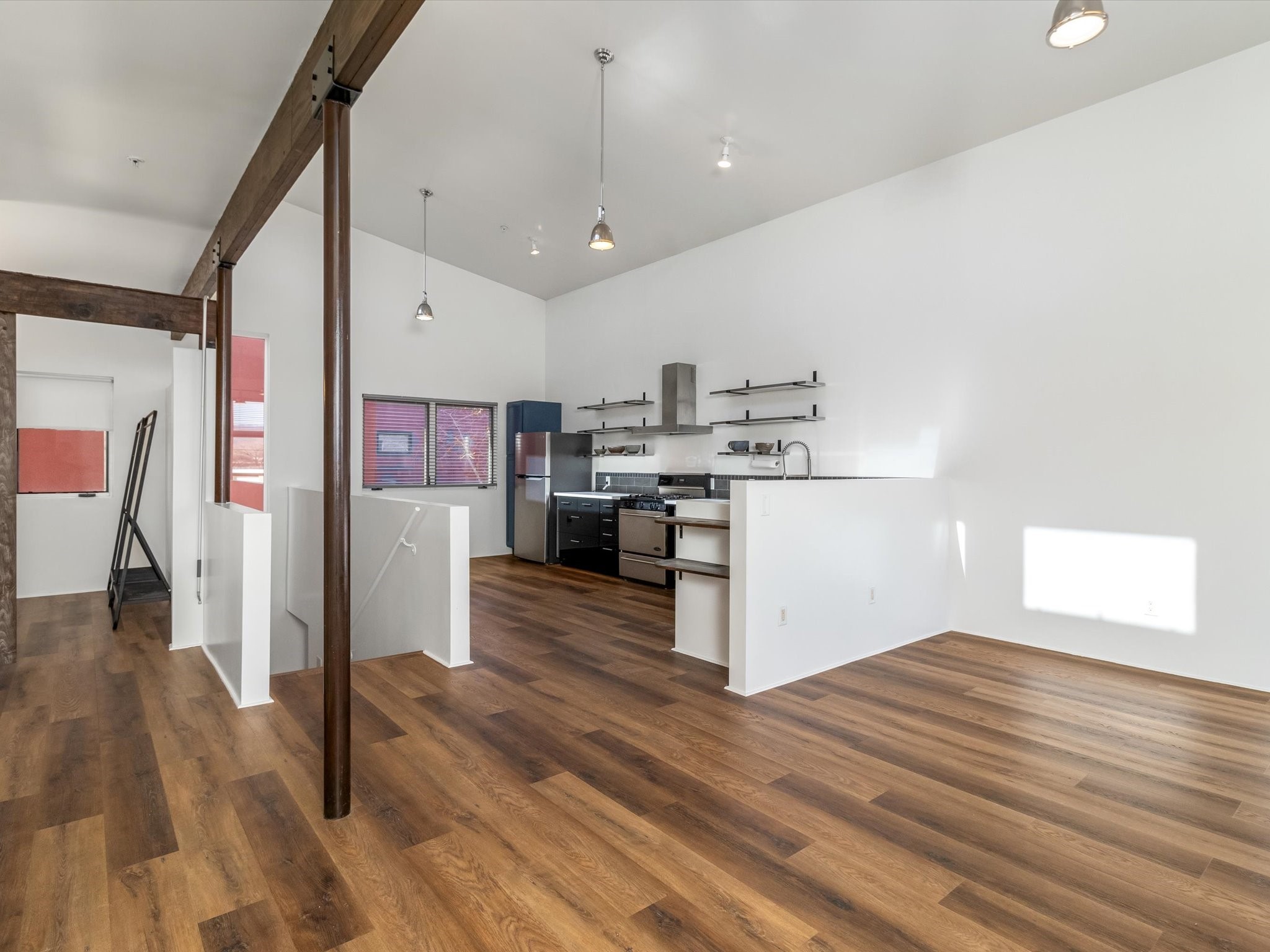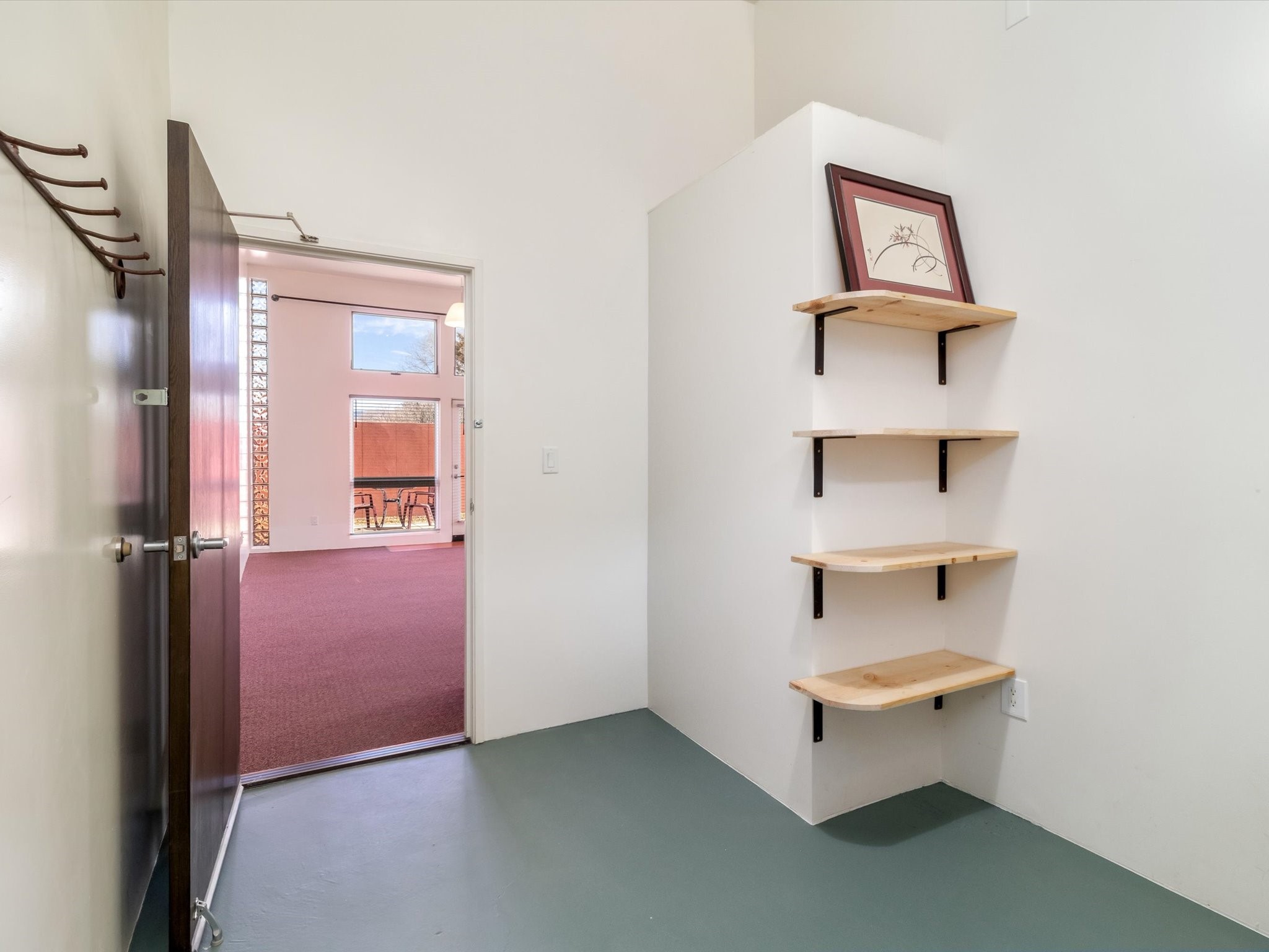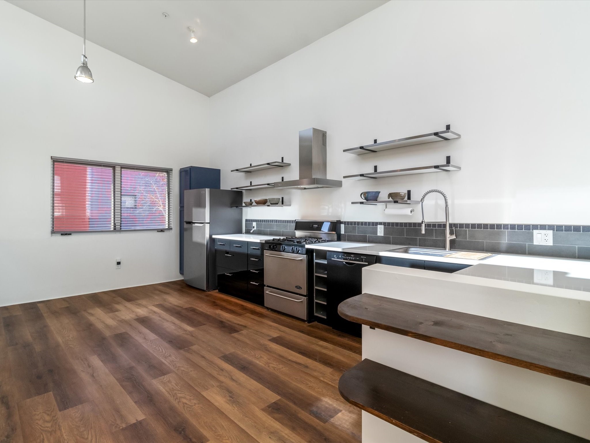 A perfect opportunity to take for this stunning, light-filled two-level studio condo in Santa Fe's vibrant Siler Rufina District, designed by award-winning architects Dent/Nordhaus. Zoned C-2 for live/work flexibility, this 2,241 sq. ft. space allows for residential, office, or commercial use, featuring separate public and private entrances to accommodate various lifestyle and business needs. The first level (1,092 sq. ft.) has a showroom-quality entrance, 12-foot ceilings, and access to a private, walled/gated yard, while the second level (1,149 sq. ft.) offers breathtaking Sangre de Cristo Mountain views, 12-16 foot vaulted ceilings, a full kitchen, Two bedrooms, a full bath + laundry, and a private deck. Part of Harrison Road Studios, a boutique community of six studio condos centered around a landscaped courtyard, this unit includes one reserved covered parking space, one reserved uncovered space, and ample guest parking. Whether you choose to live above and work below, use both levels as a residence, operate a full office or commercial space, or rent for investment income, this meticulously maintained condo is a rare find that won't last long--schedule your private showing today!