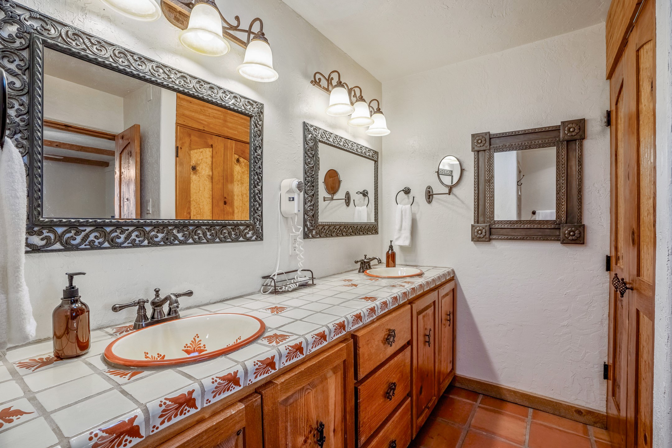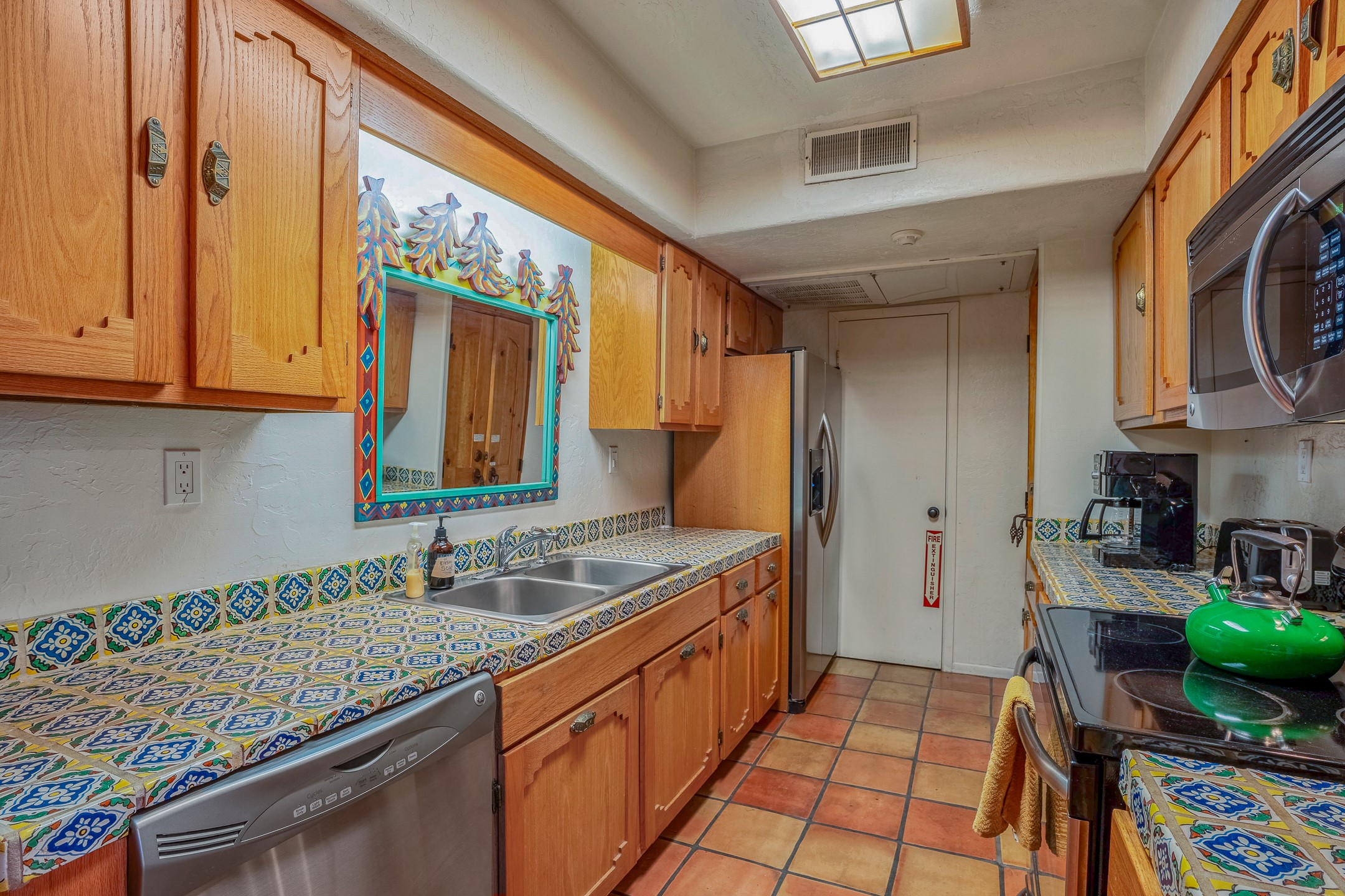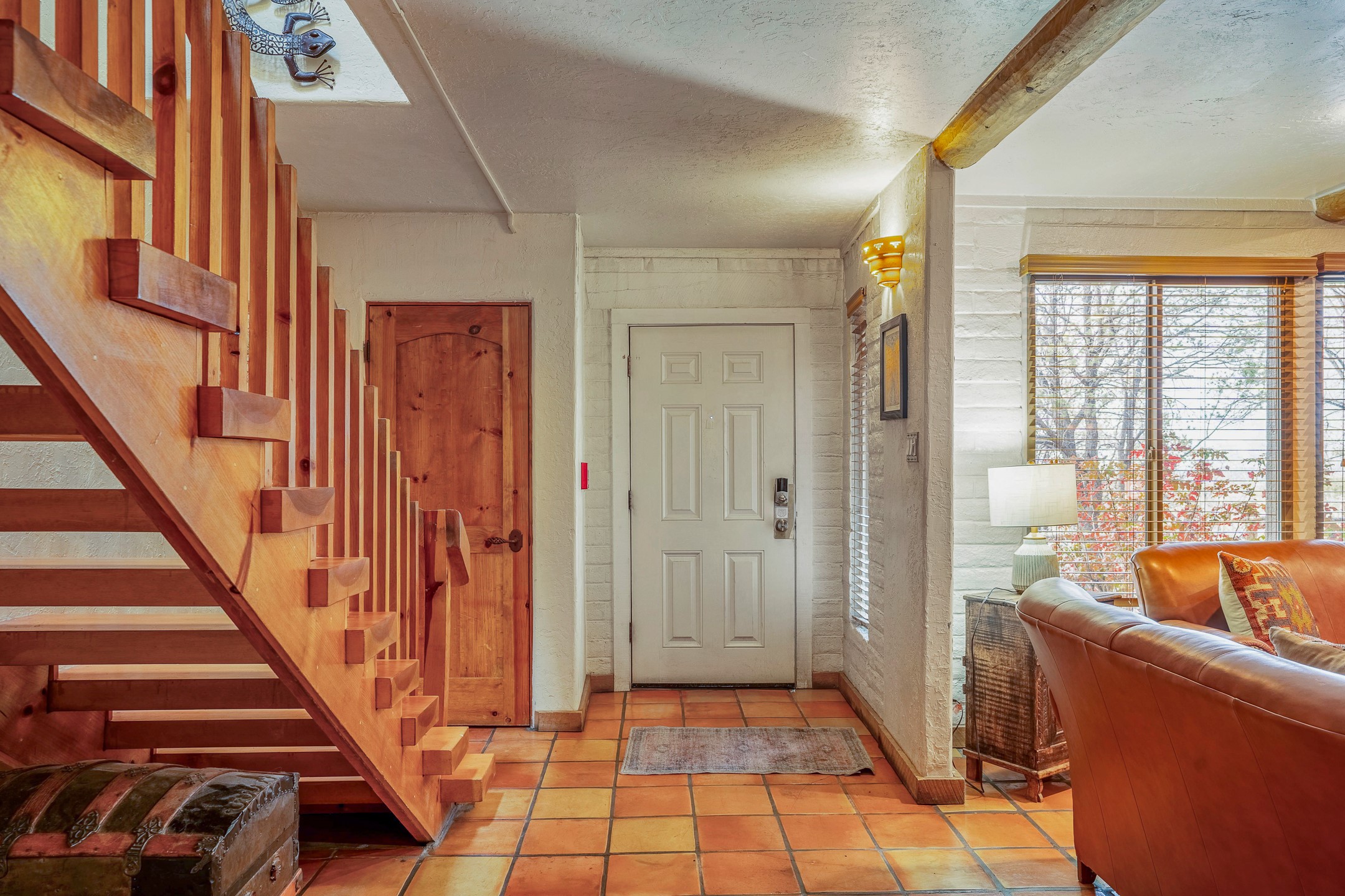 This downtown Santa Fe style 3 bedroom, 3 bathroom, 2-story condo is a rare offering at the Fort Marcy Compound, located just 6 blocks from the famous downtown Santa Fe plaza! Enjoy the indoor swimming pool and hot tub any time of year, and the beautiful, forested setting with deer and other wildlife visitors. This home features central refrigerated air-conditioning and forced-air heat, all new in 2025. The roof is new as of 2024. Walk to the famous Santa Fe Plaza and downtown to a range of events, from Indian Market, Spanish Market, Fiestas, and restaurants, cafes, shops and museums. Immerse yourself in the Santa Fe art scene, then return to your cozy condo to relax in front of the wood-burning kiva fireplace. Fort Marcy Park and Cross of the Martyrs is just across the road, affording great views of Santa Fe and the Sangre de Cristo Mountains. Also close to Santa Fe highlights - skiing, hiking, day trips to Abiquiu, Ghost Ranch and beyond. Just an hour from Albuquerque. ALL FURNISHINGS convey with sale at zero dollars! Including artwork, kitchen supplies and equipment, and accessories, making this a truly 100% turn-key property! The HOA ALLOWS SHORT-TERM RENTALS, and offers a vacation rental program with on-site professional management, including a staff of housekeepers, maintenance personnel, reception desk, concierge services, shuttle service, etc. Ask listing broker for details. This property is ideal for a short-term rental, vacation home, or full-time residence!