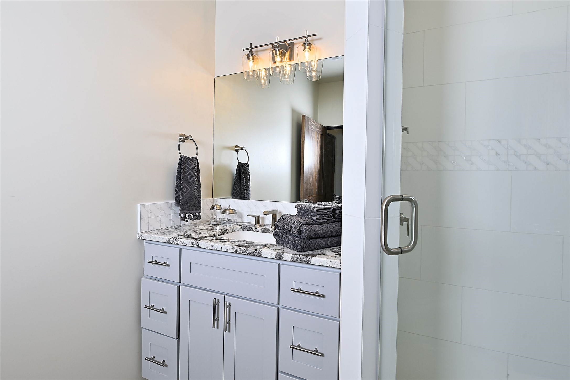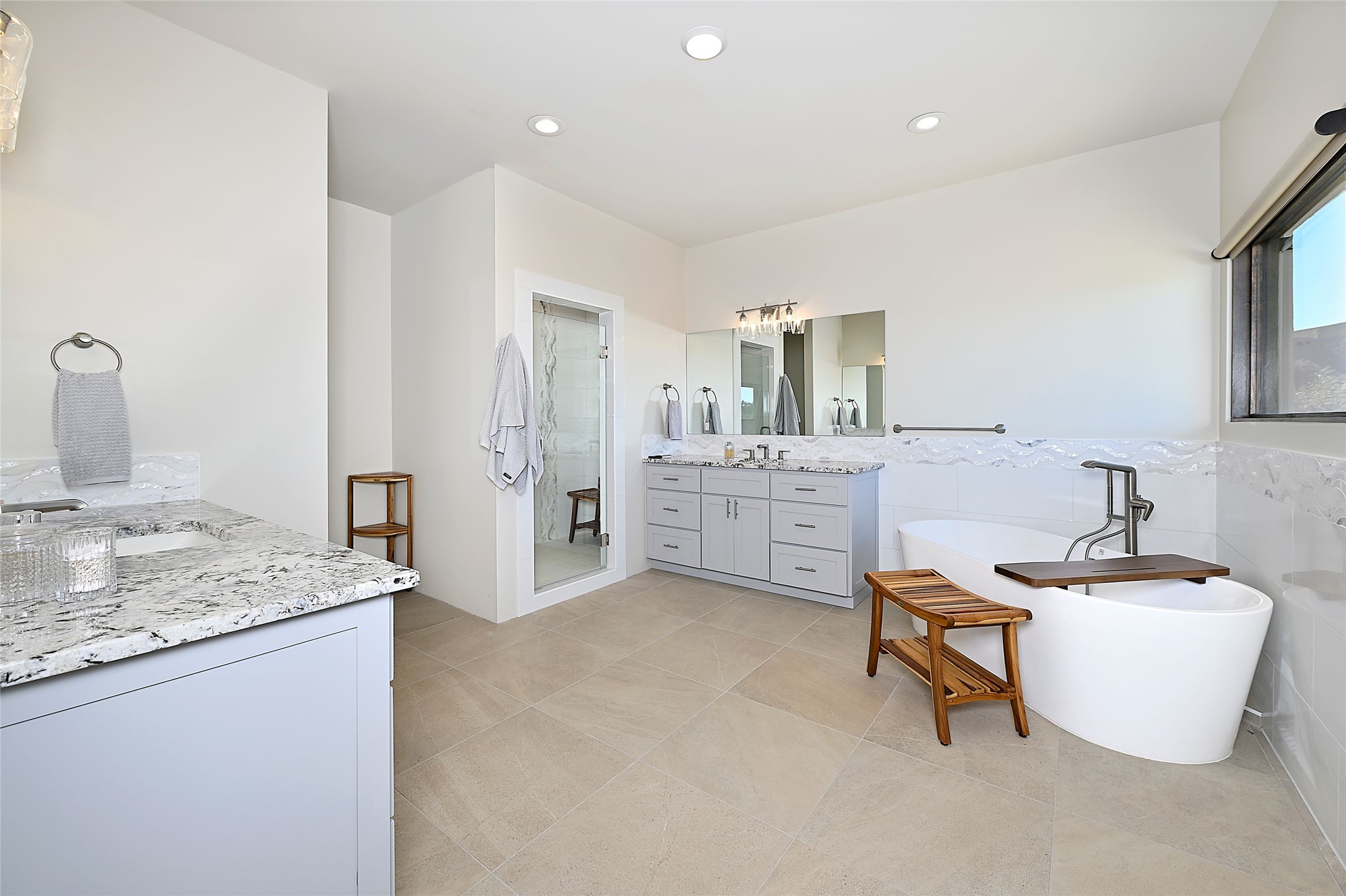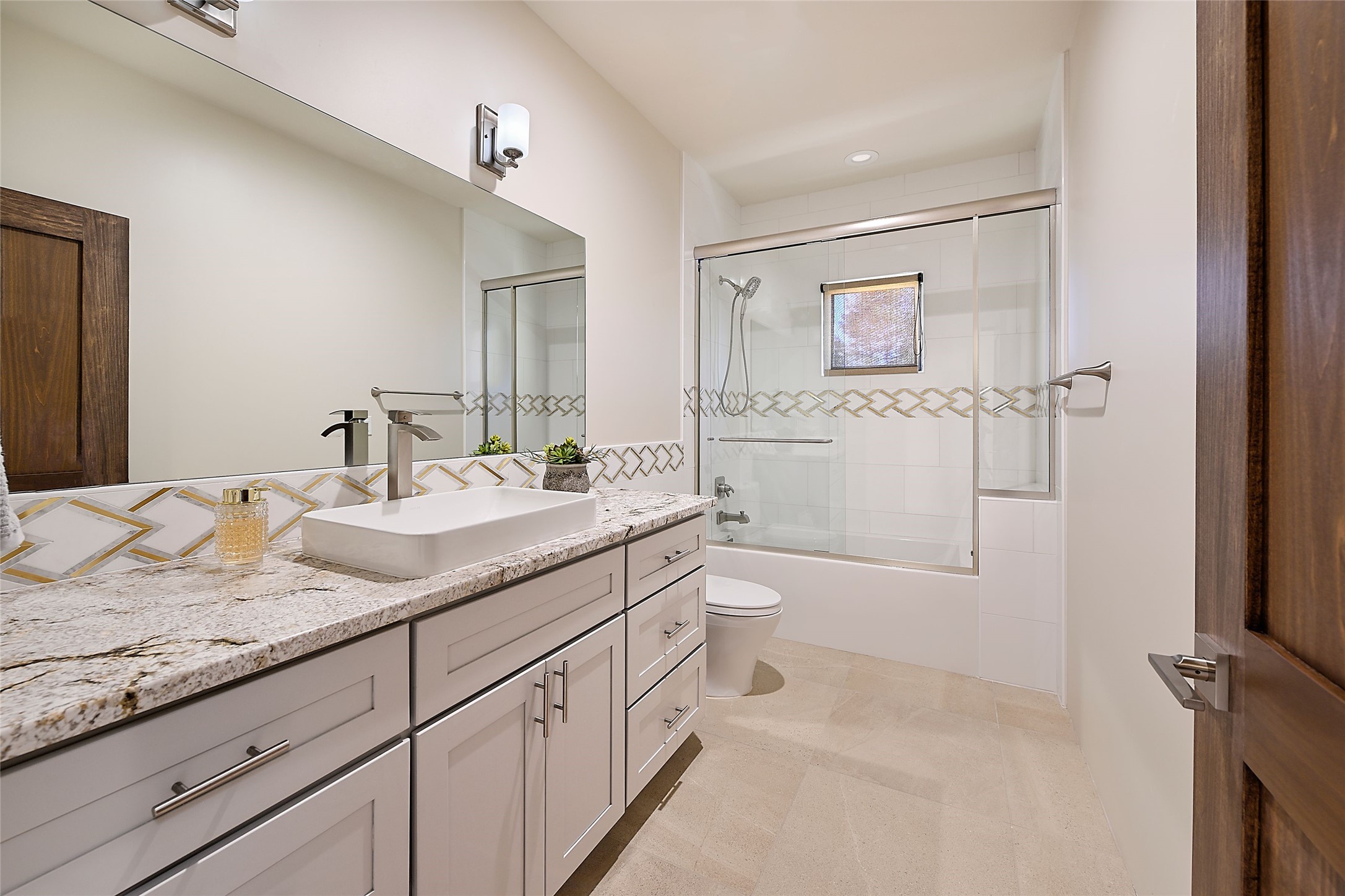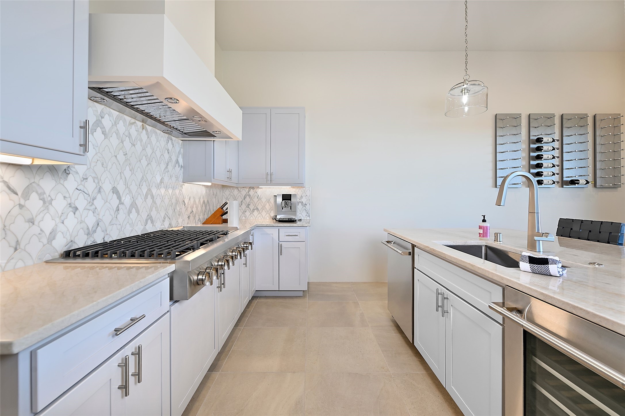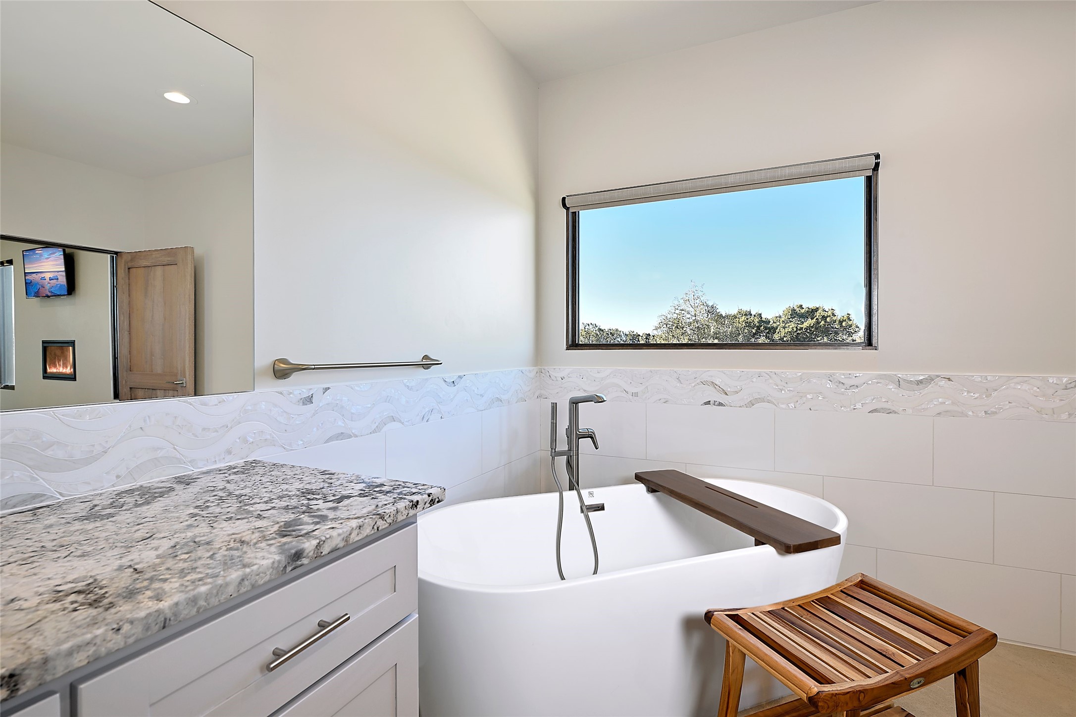 Exemplifying sleek, chic contemporary design in one of the most desirable locations in Santa Fe, this light-filled three-bedroom, 3,394-square-foot residence affords sweeping vistas from its ideal location in the western reaches of the exclusive Las Campanas community. Sophisticated living and entertaining are effortless indoors and out thanks to an easy open floor plan that encompasses a living room with a soaring beamed ceiling, a modern gas fireplace, handsome built-ins, and 10-foot glass doors; a dining area with sliding glass doors; an impeccably appointed chef's kitchen with quartz counters, handcrafted cabinets, and top-caliber appliances; and a Jemez-facing portal and courtyard-all linked in an effortless flow and basking in mountain and sunset views. Two generous guest bedrooms with spacious closets and en suite baths enjoy the seclusion of their own wing, while a quiet home office-which could easily serve as a fourth bedroom-is located down the hall and steps from a full bath. A serene, solitary oasis, the primary bedroom suite is tucked in a peaceful private spot and features a contemporary gas fireplace, a lavish bath with two vanities and both a soaking tub and a shower, and an impressively outfitted room-sized walk-in closet of nearly 200 square feet. Other welcome elements include a walk-in pantry or storage room; a bright, discreet laundry room; and a two-door, two-car garage with additional storage space. Some photos are virtually staged.