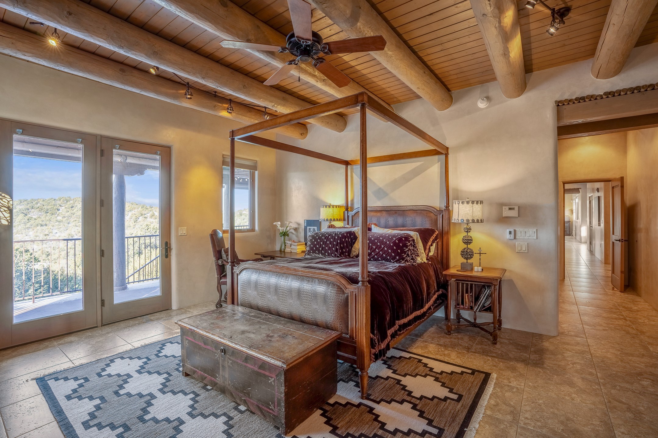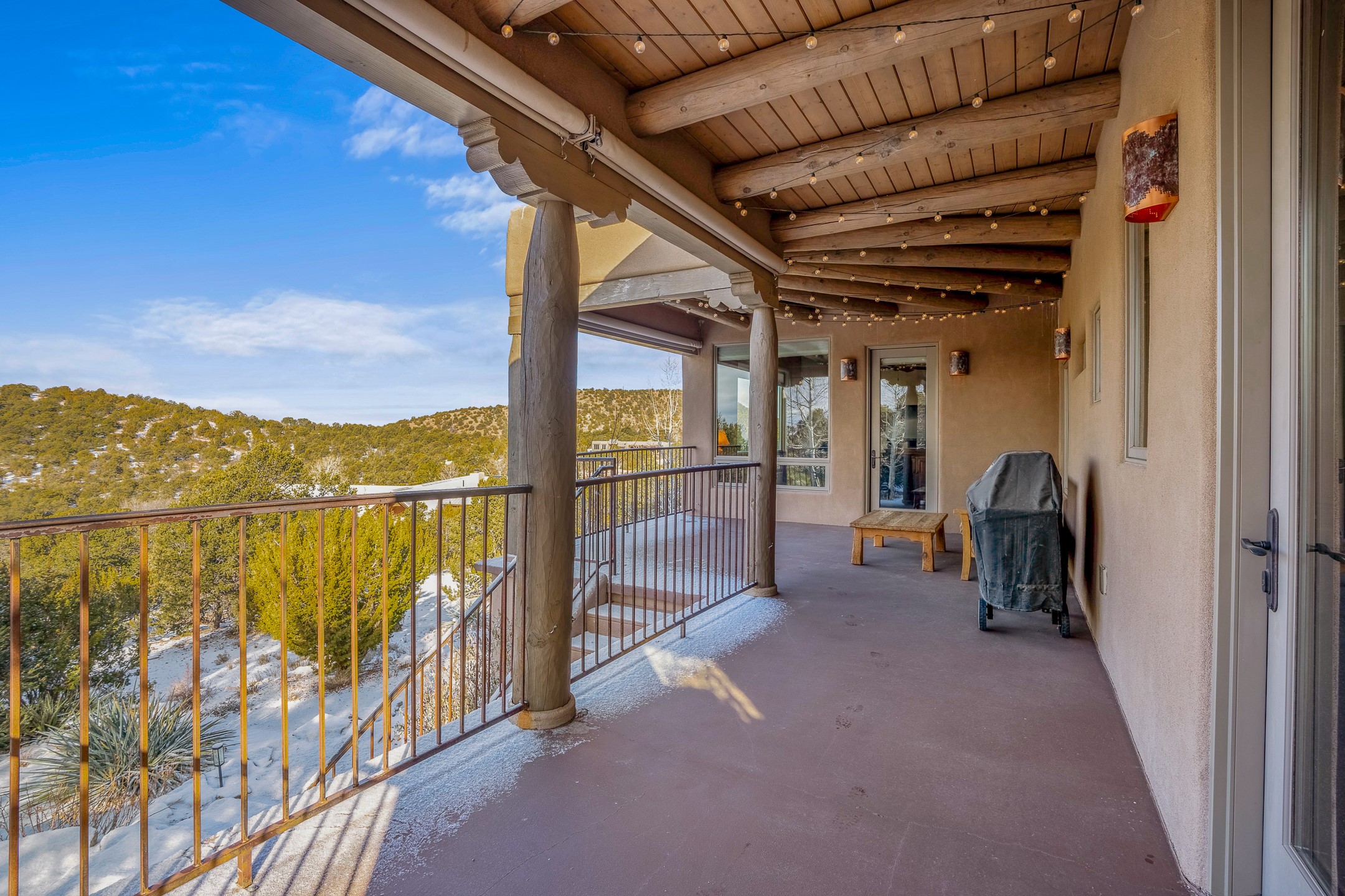Discover Timeless Santa Fe Elegance at 2020 Senda De AndresNestled within the coveted Cerros Colorados community, this exquisite home perfectly blends traditional Santa Fe charm with modern luxury, offering breathtaking alpine views and a peaceful retreat. Designed for effortless mainly one-level living, this 3-bedroom, 3-bathroom residence embodies sophistication and comfort. The main level welcomes you with a light-filled living room featuring a grand kiva fireplace, authentic vigas and tongue-and-groove ceilings, and hand-troweled plaster walls that radiate warmth and character. The gourmet kitchen is a chef's dream, equipped with top-of-the-line Wolf and Sub-Zero appliances, a wine refrigerator, and custom cabinetry. It flows seamlessly into the dining and den areas, creating an ideal space for entertaining. The primary suite is a luxurious haven, offering a jetted corner tub, walk-in shower, dual closets, and its own kiva fireplace for ultimate relaxation. Step outside onto the expansive rear deck to soak in the panoramic mountain views, perfect for quiet mornings or evening gatherings. The lower level boasts two generously sized guest bedrooms and a full bathroom, ensuring comfort and privacy for family and guests. Refined details, such as porcelain tile flooring throughout, enhance the home's timeless elegance. New roof and stucco in 2024, new boiler and water heater added in 2025. Ideally located just minutes from Santa Fe's vibrant cultural attractions and outdoor adventures, this home is also perfectly positioned right down the hill from Ski Santa Fe, making it a dream for winter sports enthusiasts. 2020 Senda De Andres offers a lifestyle of tranquility, beauty, and sophistication. This exceptional property is more than a home--it's an experience. Schedule your showing today.
