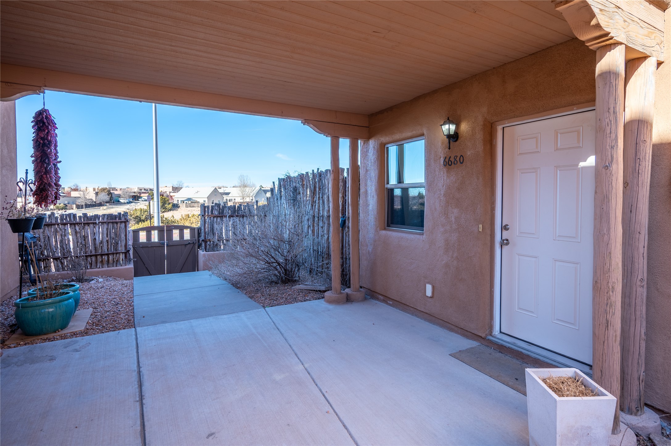 Live 8 years longer. Laugh out loud every day, eat nuts and live in a house with stairs. There is one bedroom and bath downstairs and 2 bedrooms and bath up stairs. This fully remodeled home was finished with a wood floor and tile, remodeled kitchen and baths and new appliances. The floor plan is a light filled open concept. It's very private with access to 2 lovely court yards. 2 covered parking spaces are included. Shopping and dining are not far, a great library is just a block away, and easy access to highway 599 provides for an easy commute to the airport, Los Alamos, Albuquerque and downtown Santa Fe. This price is a bargain. Come see today.