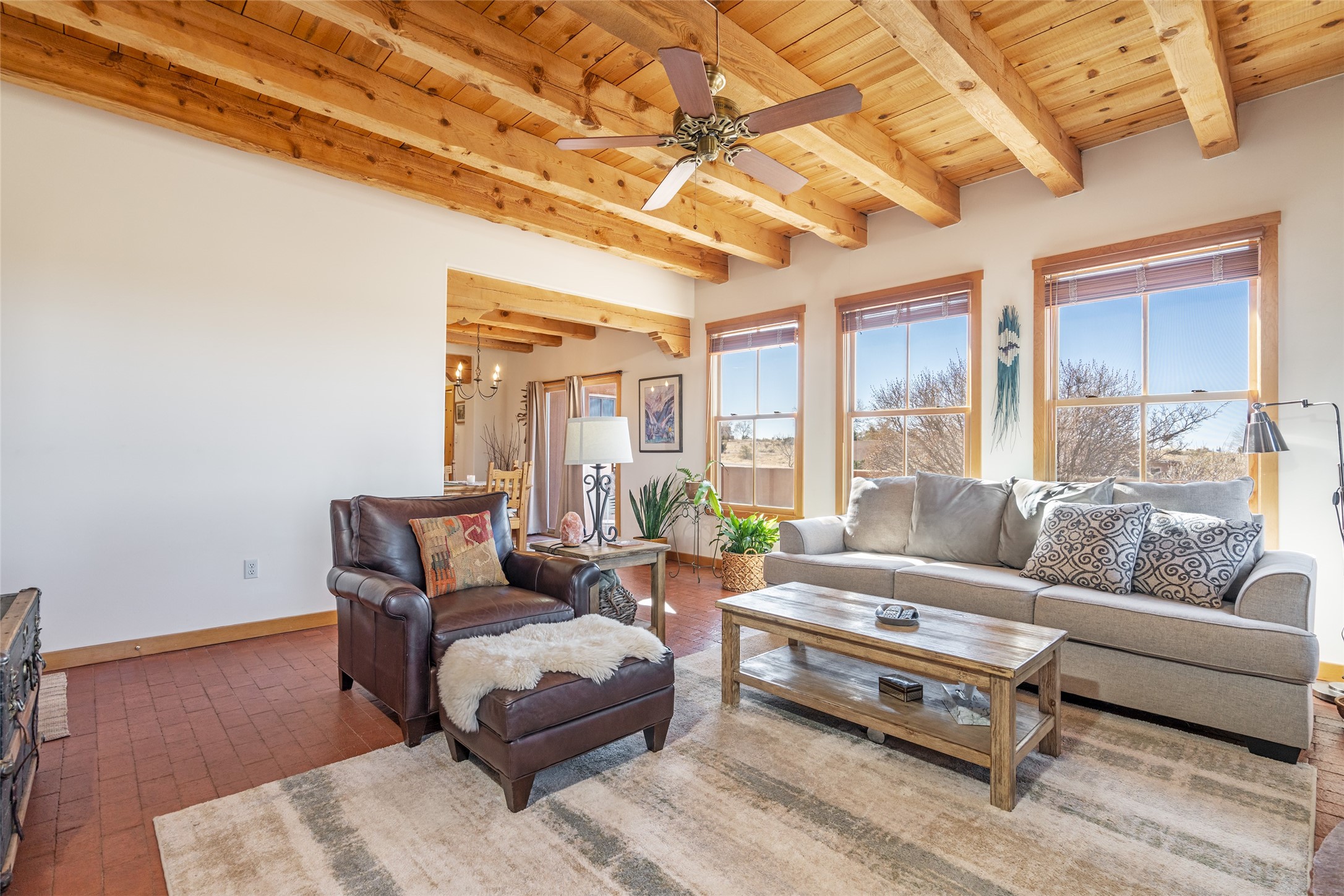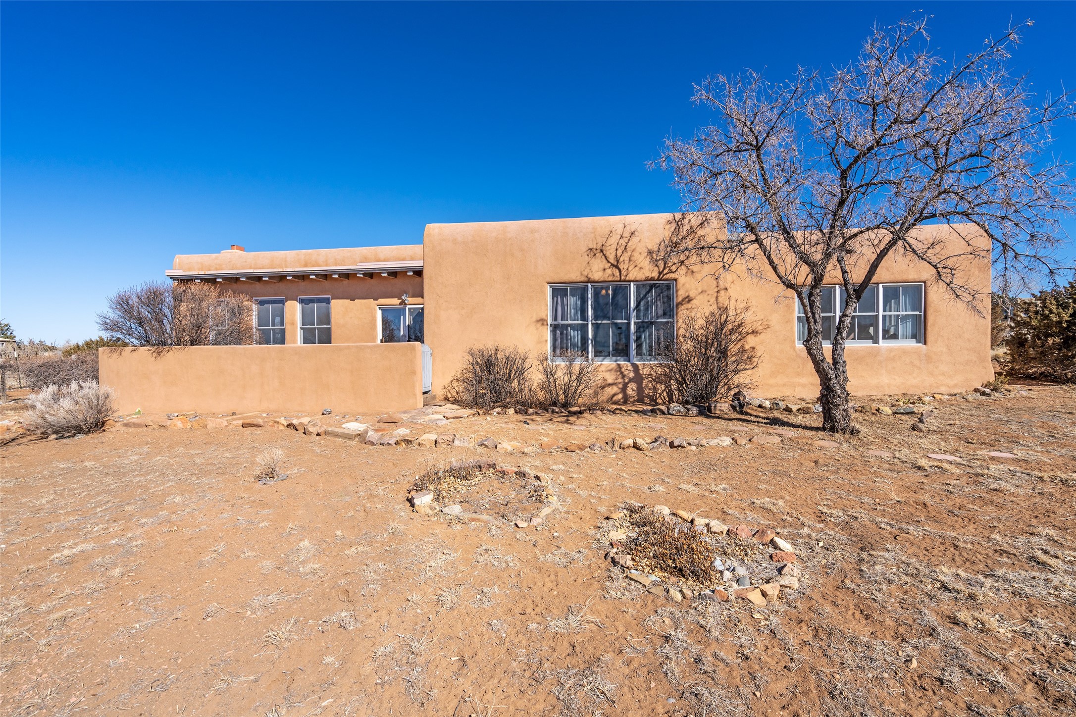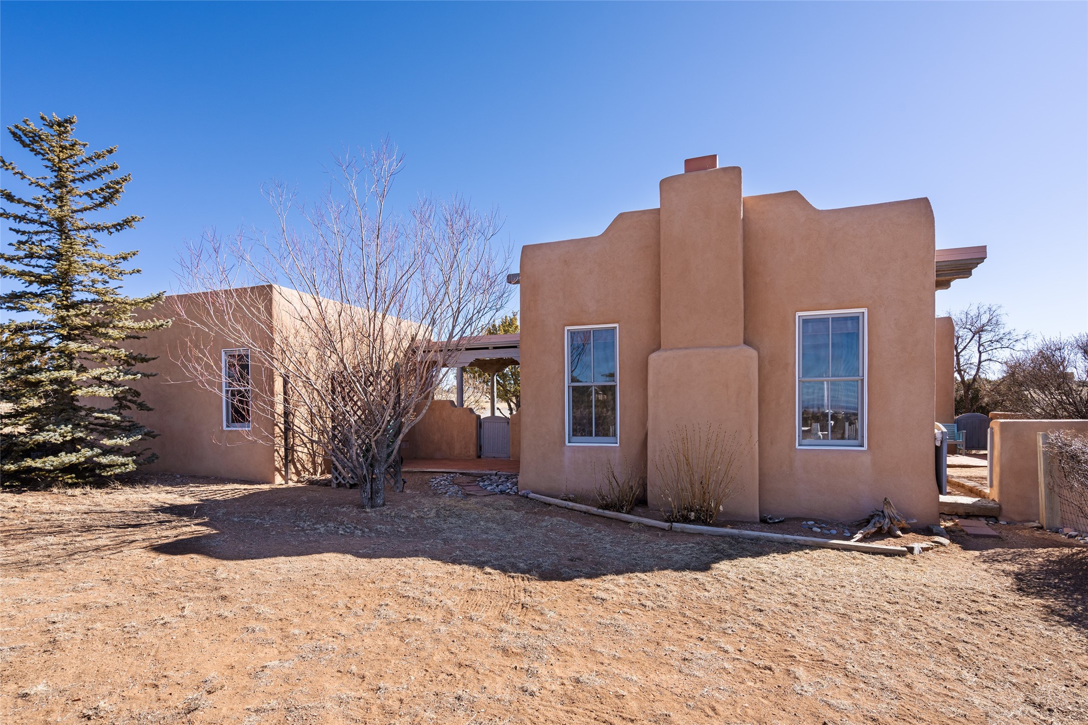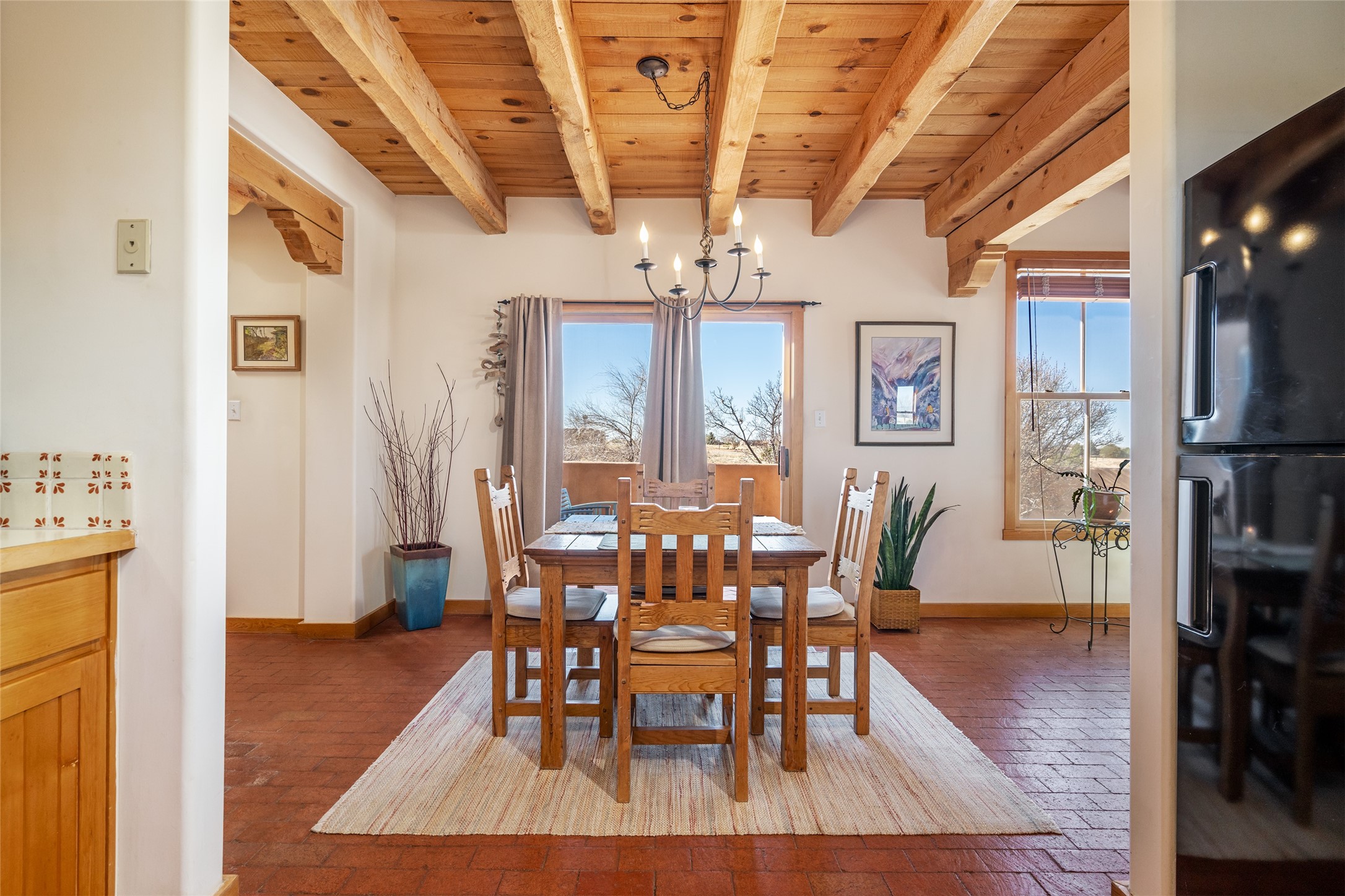 Welcome to this beautifully maintained 3-bedroom, 2-bathroom home nestled on 1.35 acres in the highly desirable El Dorado neighborhood. This traditional Santa Fe-style home features stunning vigas and beams that add warmth and character to the open-concept living spaces. The home is flooded with natural light, creating a bright and welcoming atmosphere throughout.Enjoy tranquil views of the picturesque natural landscape that surrounds the property, providing privacy and a serene environment. The spacious one-car garage offers ample storage space, and the expansive lot offers room for gardening, outdoor activities, or future expansion.This is the perfect blend of classic Southwestern design and modern comfort. Don't miss your chance to own this lovely home - schedule a showing today!
