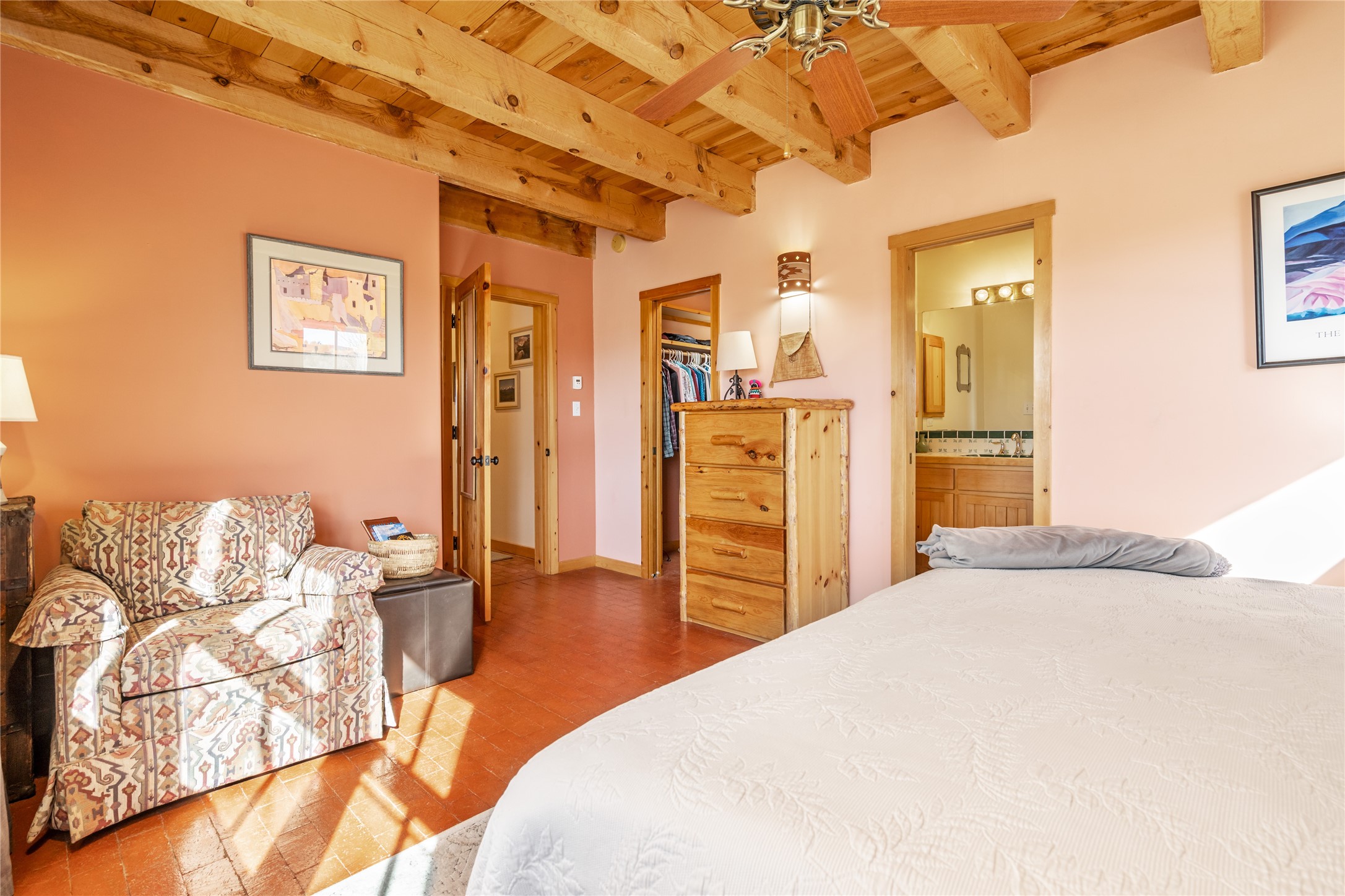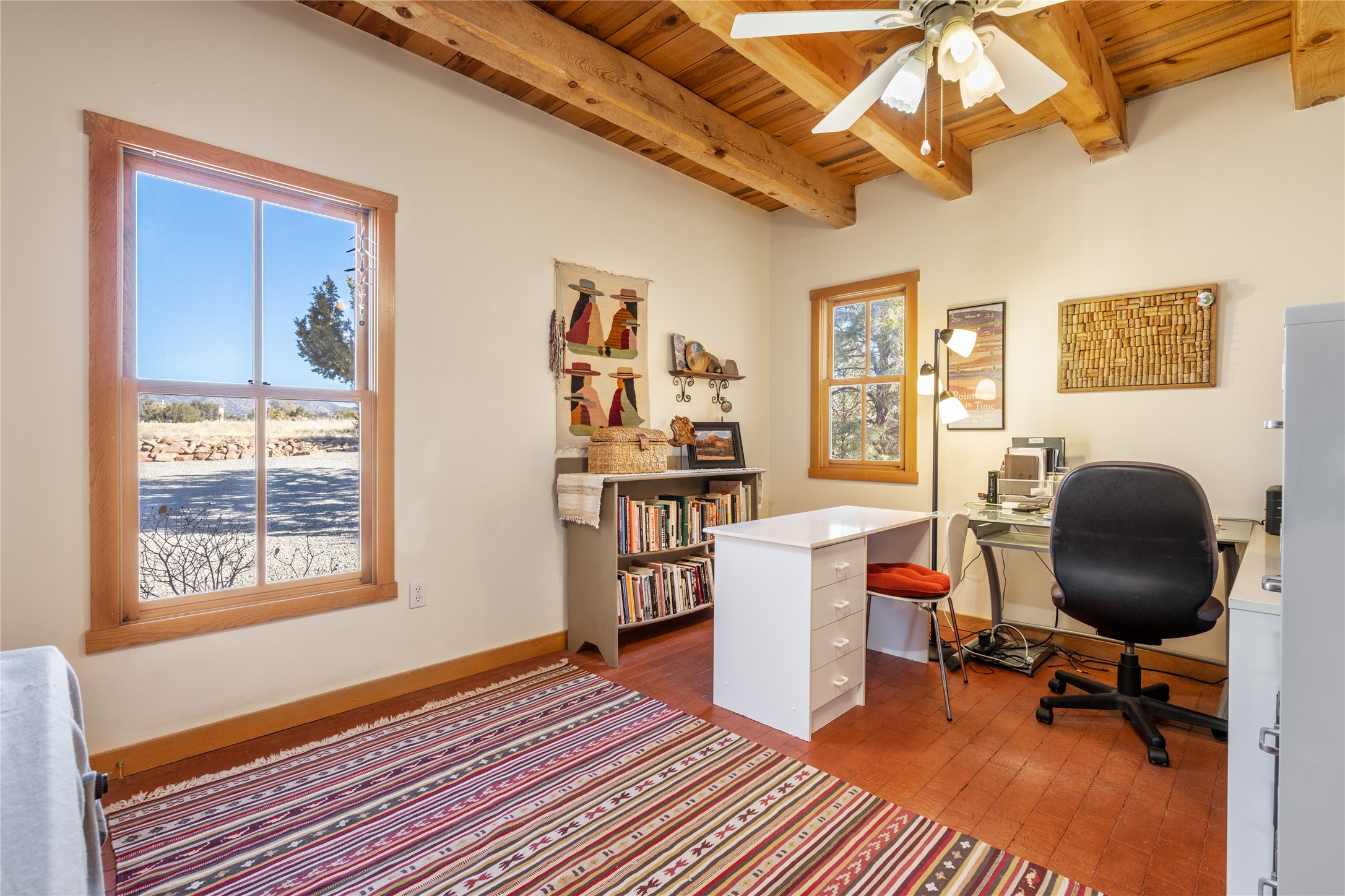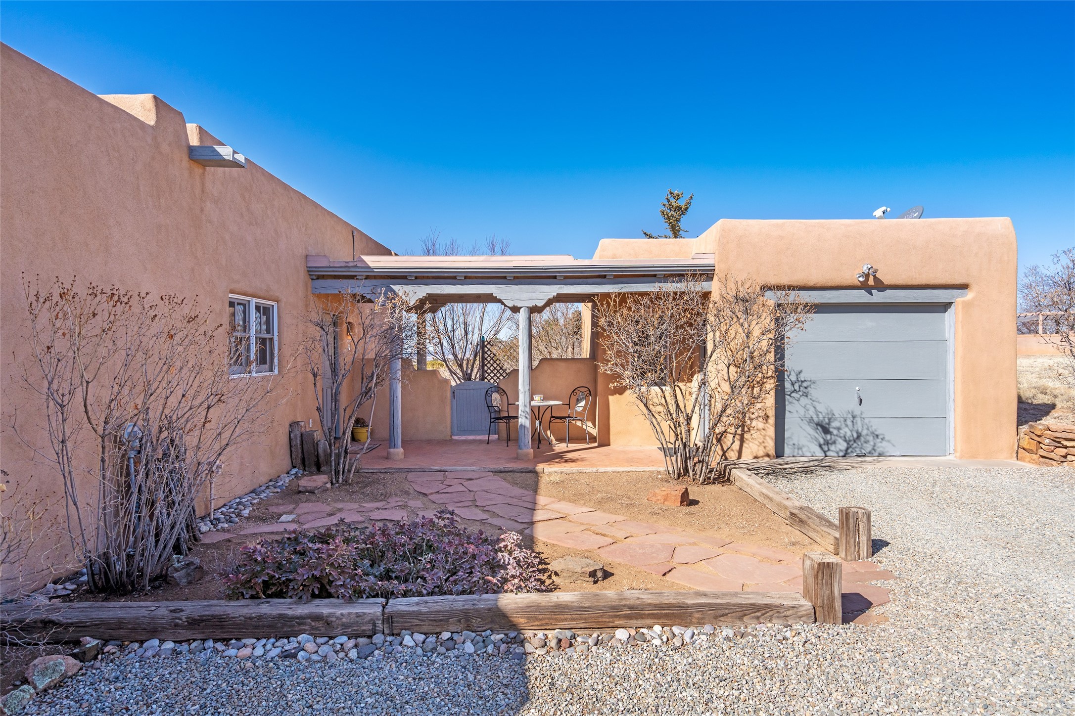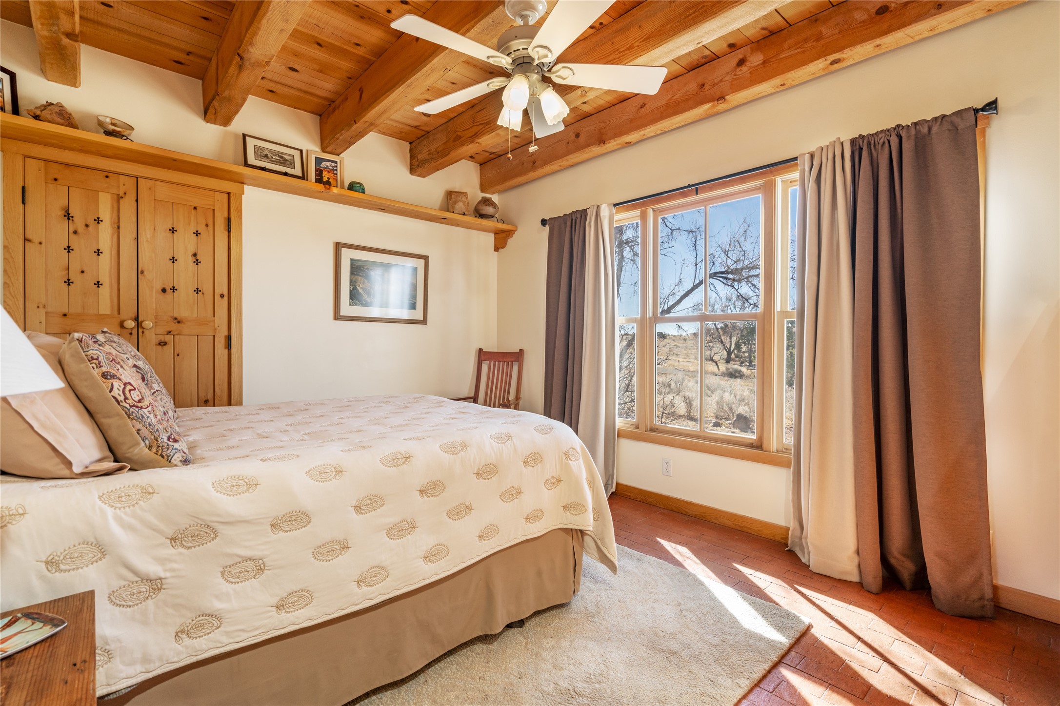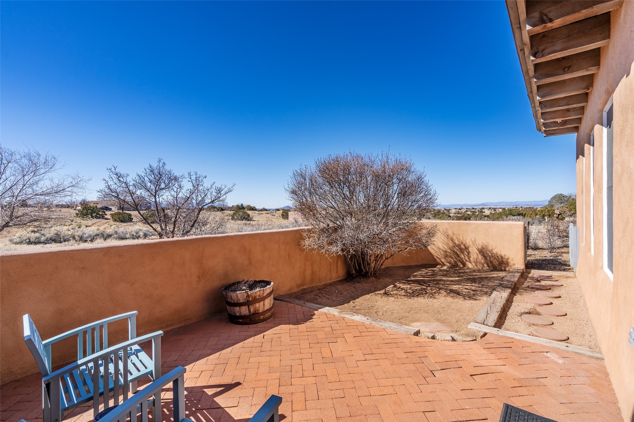 Welcome to this beautifully maintained 3-bedroom, 2-bathroom home nestled on 1.35 acres in the highly desirable El Dorado neighborhood. This traditional Santa Fe-style home features stunning vigas and beams that add warmth and character to the open-concept living spaces. The home is flooded with natural light, creating a bright and welcoming atmosphere throughout.Enjoy tranquil views of the picturesque natural landscape that surrounds the property, providing privacy and a serene environment. The spacious one-car garage offers ample storage space, and the expansive lot offers room for gardening, outdoor activities, or future expansion.This is the perfect blend of classic Southwestern design and modern comfort. Don't miss your chance to own this lovely home - schedule a showing today!