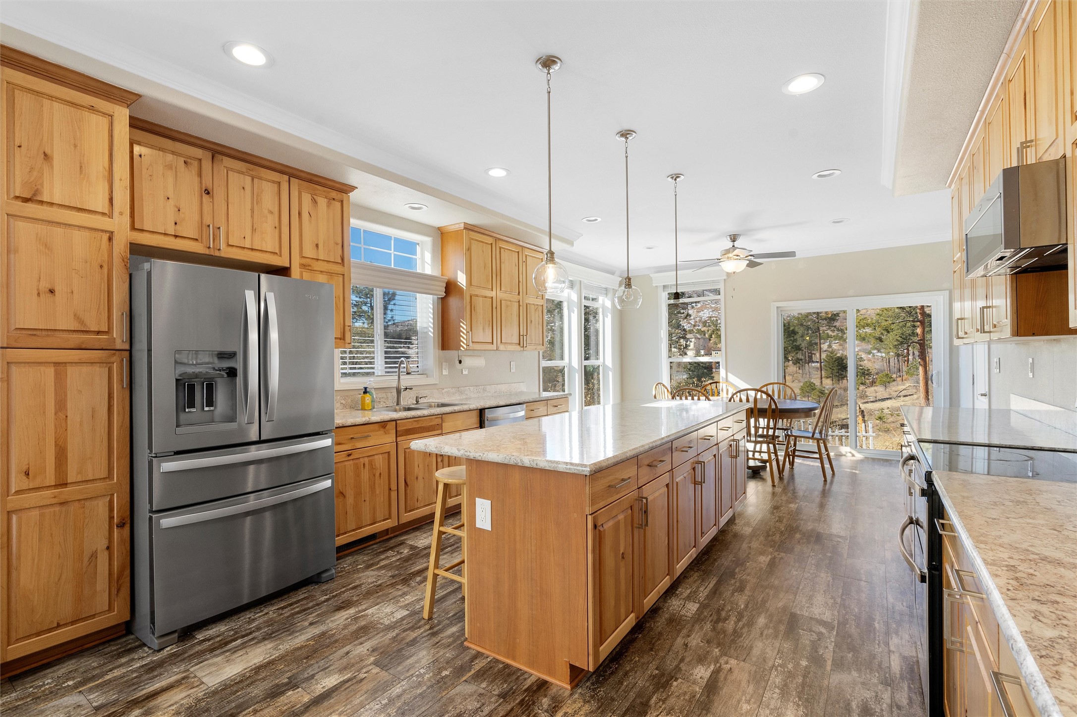 Perched on a picturesque hilltop, this expansive 3,494-square-foot residence at 4296 Arizona Ave offers a unique blend of spacious living, breathtaking views, and sustainable design. The home's thoughtful layout maximizes natural light and passive solar principles, ensuring warmth and brightness throughout the year. Large windows frame stunning vistas of the surrounding landscape, creating a seamless transition between indoor and outdoor spaces. Strategically located directly next to Mitchell Trail, this property provides easy access to nature while maintaining proximity to local amenities. With four bedrooms, five-and-a-half baths, a bonus room ideal for a home office, and a versatile 15x15 shop that could be converted into an extra bedroom or hobby space, this hilltop estate is perfect for those seeking a spacious, sustainable, and beautifully situated home.