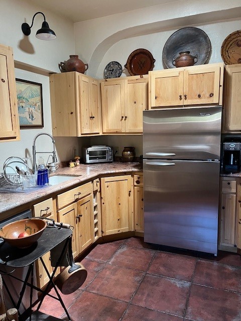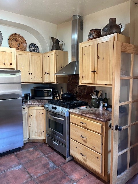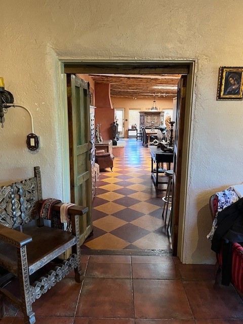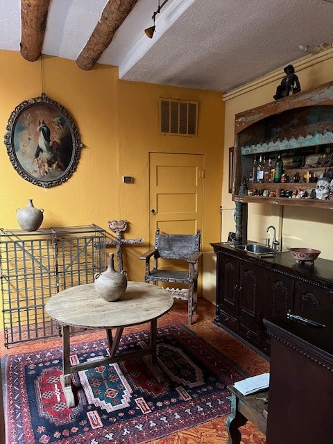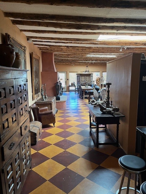 Rare opportunity to live in a Historical Adobe Trading Post building remodeled into a 2 bd 2 1/2 bath Lovely home with attached studio/ gallery spaces. An expansion living room well lit with skylights, full of old vigas , and a large designer fireplace make it ideal for entertaining. The newly remodeled kitchen features granite countertops, stainless steel appliances and custom cabinets with plenty of lighting. The enticing backyard has adobe walls with Antique Mexican gates, flower beds, Flagstone patio, and even a creek/acequia that runs through it. Many Architectural Elements throughout add to the Old World feel tastefully appointed. This 3,977+/- sq ft building is located in the historic district of Ranchos de Taos just down the street from the famed St Francis de Asis Church built in the late 18 th c, and only 30 minutes from World Class Skiing, Hiking, Fishing and Mountain Biking. The building also has a history of housing many well known Taos artists and often visited by famous actors of Taos lore. For the past quarter of a century, the building has housed the owner's Large collection of Spanish Colonial Art and antique furniture. The possibilities are endless with this turn-key home which also has the added plus of a prime corner location for commercial usage.