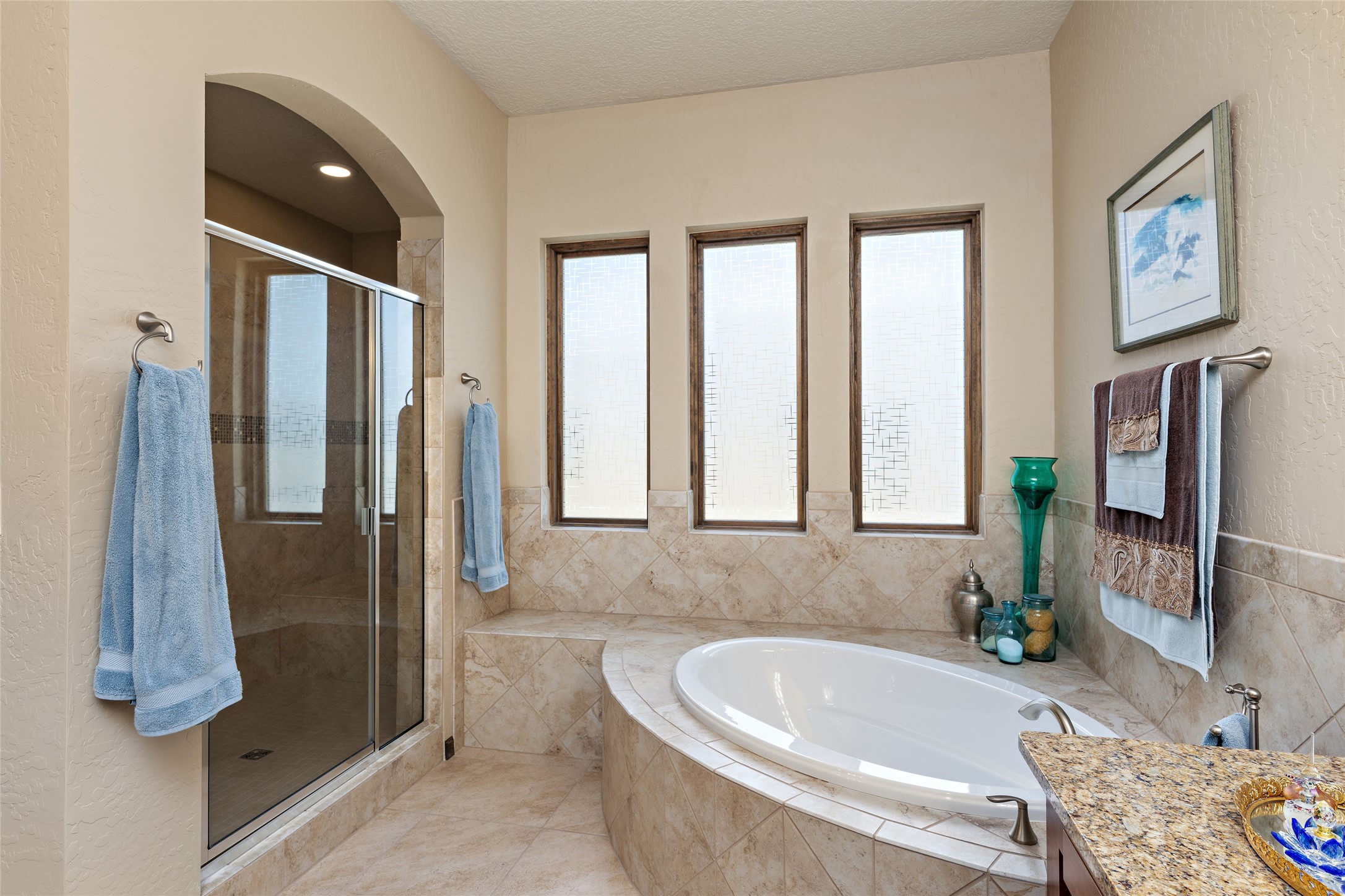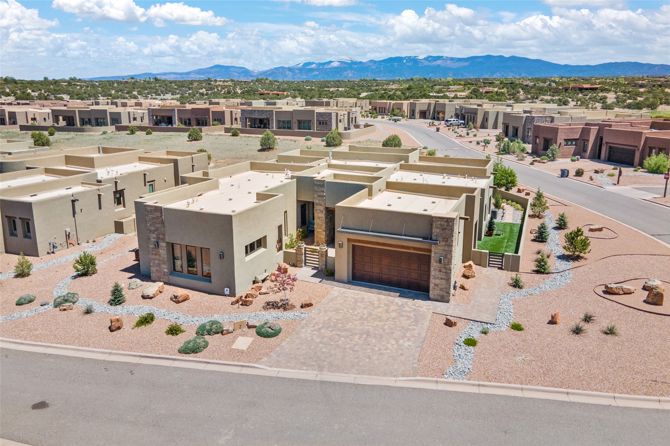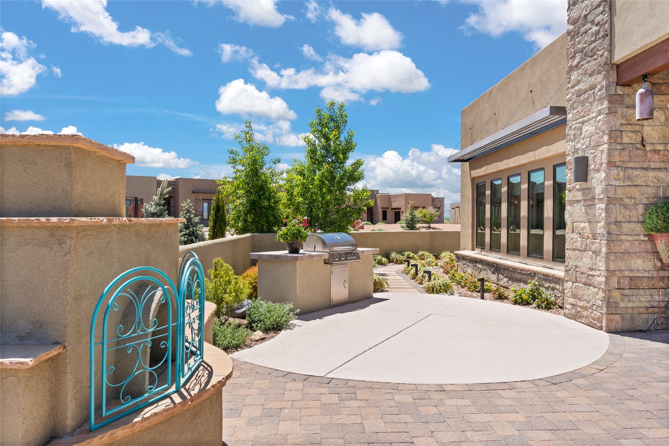 This immaculate, semi-custom Las Campanas home offers a wonderful blend of privacy, space, and mountain views. Set on a desirable corner lot, the outdoor living spaces are superb. Beautifully landscaped brick and stone areas flow from the interior for seamless al fresco living. Thoughtfully designed, this home balances traditional Santa Fe elements with a contemporary finish. A welcoming courtyard sets the tone and leads to a spacious floor plan ideal for relaxation, entertainment, or hosting out-of-town guests. The 5 bed/5 bath plan contains ample space for all aspects of life. Abundant light streams through the large east windows in the primary bedroom, great room, and sunroom. With smart-home functionality, stone walls, high arches, tray ceilings, and elegant finishes, this home stands apart. Extensive upgrades include a 5-foot linear gas fireplace with double wood mantels, a deep portal with kiva-inspired wood-burning fireplace and an integrated outdoor gas kitchen. The living room's 4 panel sliding doors enable fluid indoor-outdoor entertainment. Indulge culinary explorations in the Chef's kitchen with top-tier appliances,12x6 ft. granite island, wine cooler and walk-in pantry. The dining room easily seats 8-10 guests. The primary suite offers an oversized bedroom, spa-like soaking tub, extra-large walk-in shower, and double closet. 3 additional bedrooms surround a spacious hub perfect for hobbies, media, meditation, or workout. The casita offers flexibility as an office or serene guest quarters. 3 green belts surround the home and frame the Sangre de Cristo and Jemez mountains with sunrises and sunsets. Evergreens and xeriscaping provide year-round beauty and a forum for birdwatching in this Audubon Sanctuary neighborhood. Minutes from The Club at Las Campanas, enjoy convenient access to resort amenities in Santa Fe's only gated golf course community. *Seller has identified personal property available as a separate Bill-of-Sale for a move-in-ready transaction.