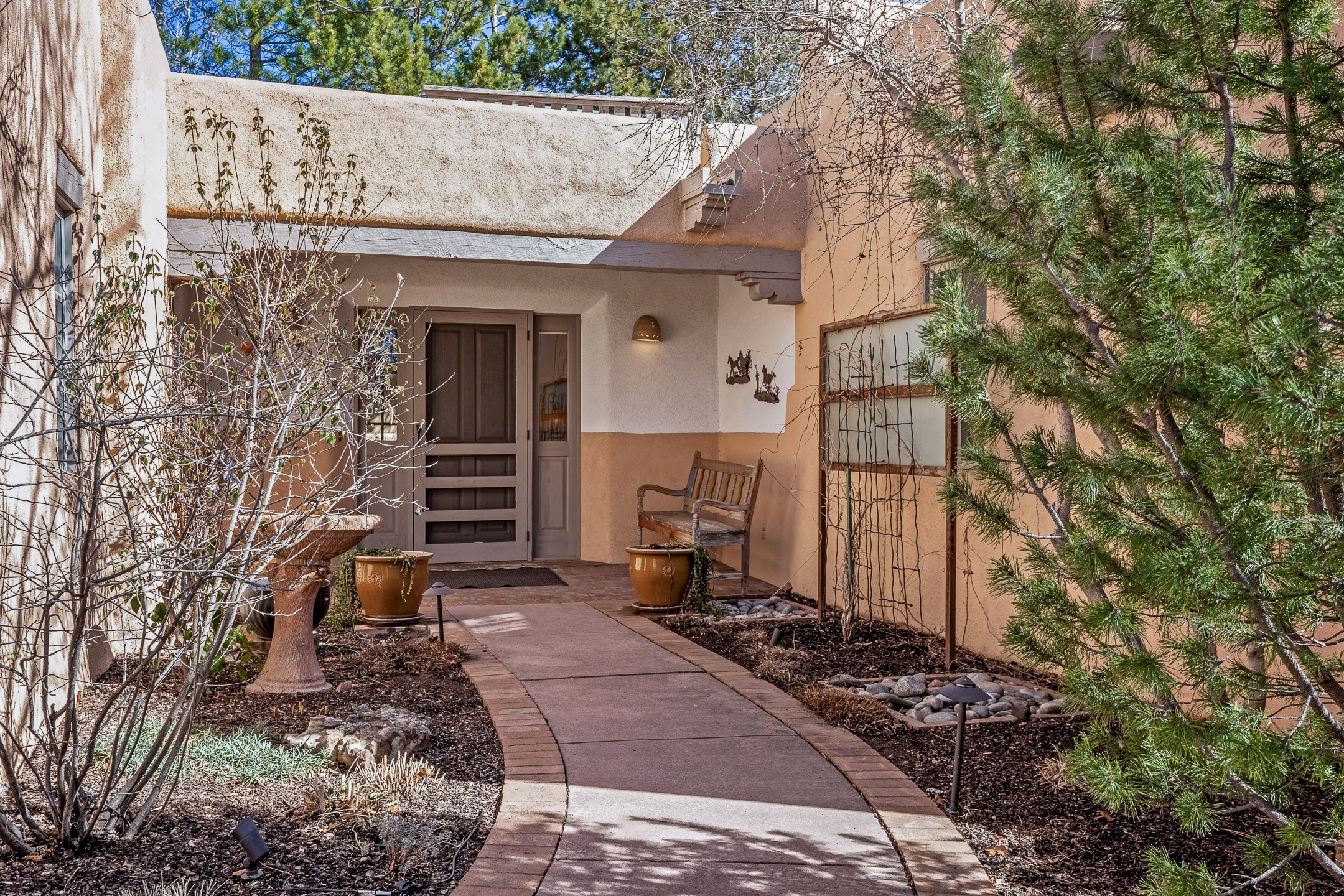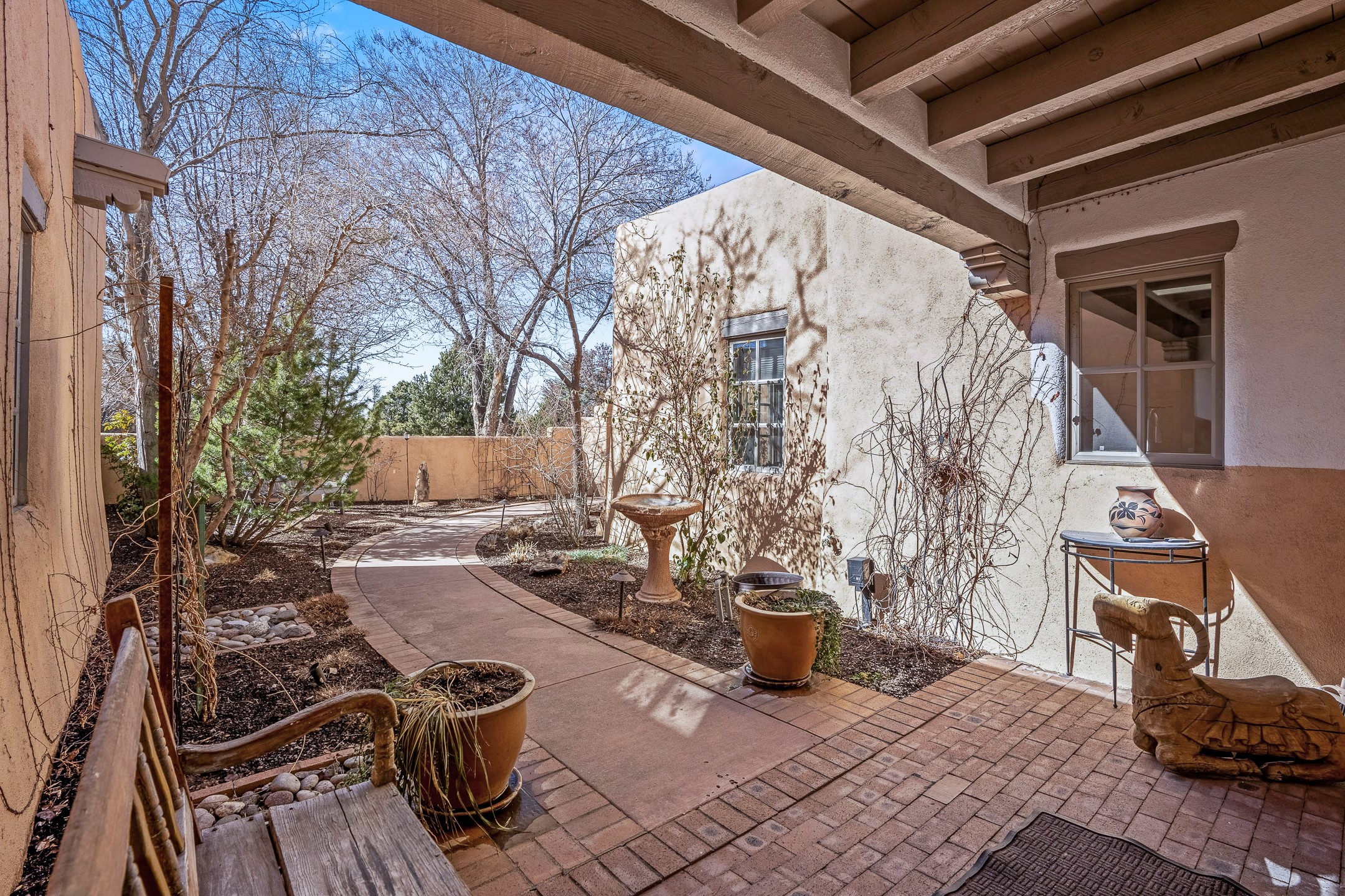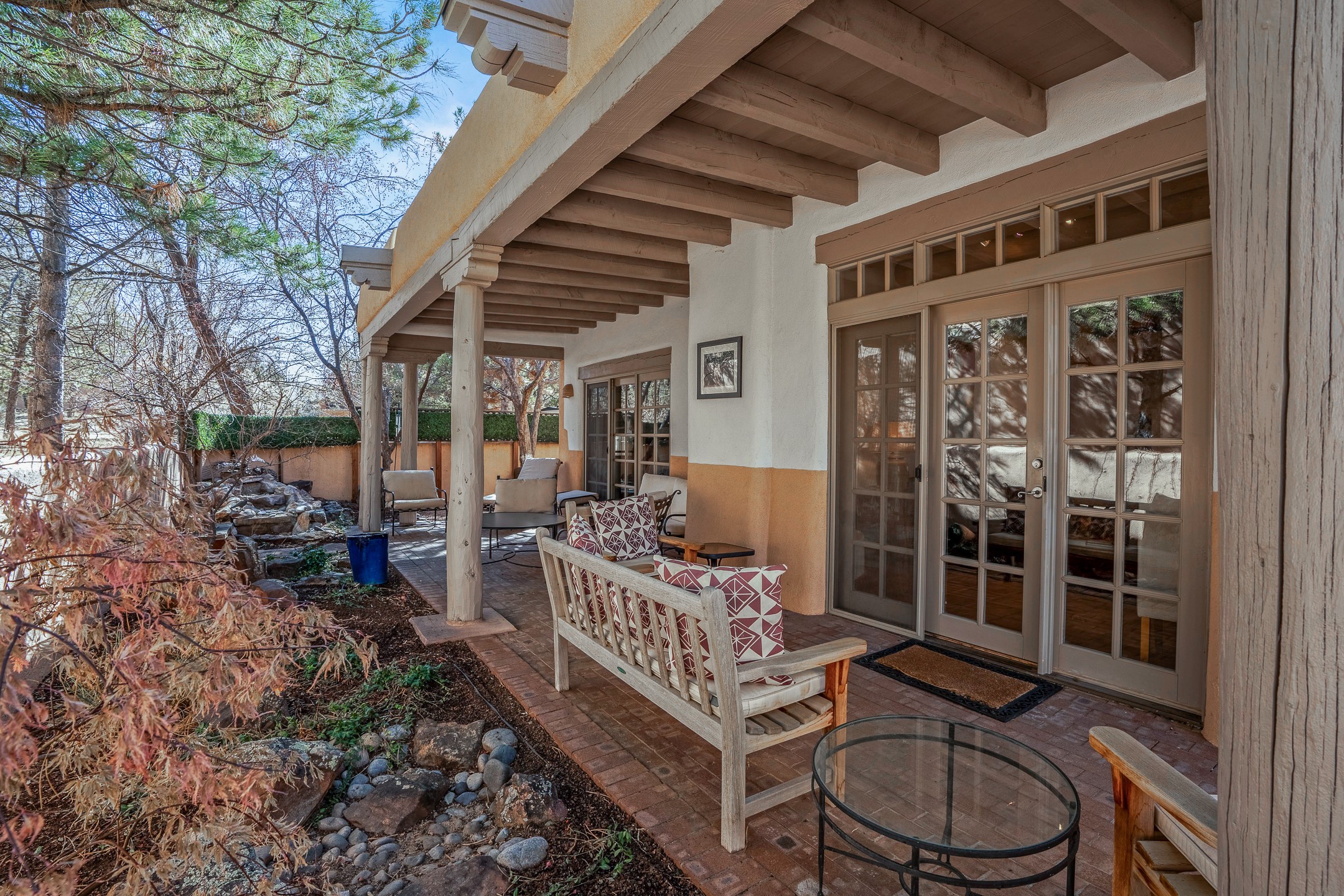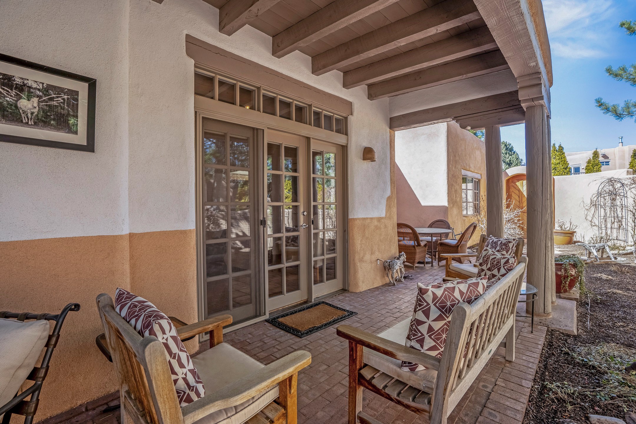 Discover the essence of Santa Fe living in this elegant Pinon B floor plan, offering 1640 Sq Ft of beautifully designed space within the coveted Quail Run Community. From the moment you step through the expansive front courtyard, you'll be welcomed by classic Southwestern warmth and character. Inside, rich Santa Fe influences abound, including viga ceilings, kiva fireplaces and saltillo tile floors, creating a timeless and inviting atmosphere. The well-appointed kitchen and open living area flow effortlessly to the private back portal, a serene retreat perfect for outdoor relaxation or entertaining. Beyond the condos appeal, Quail Run offers unparalleled amenities, just minutes from Santa Fe's vibrant Plaza and Canyon Road.