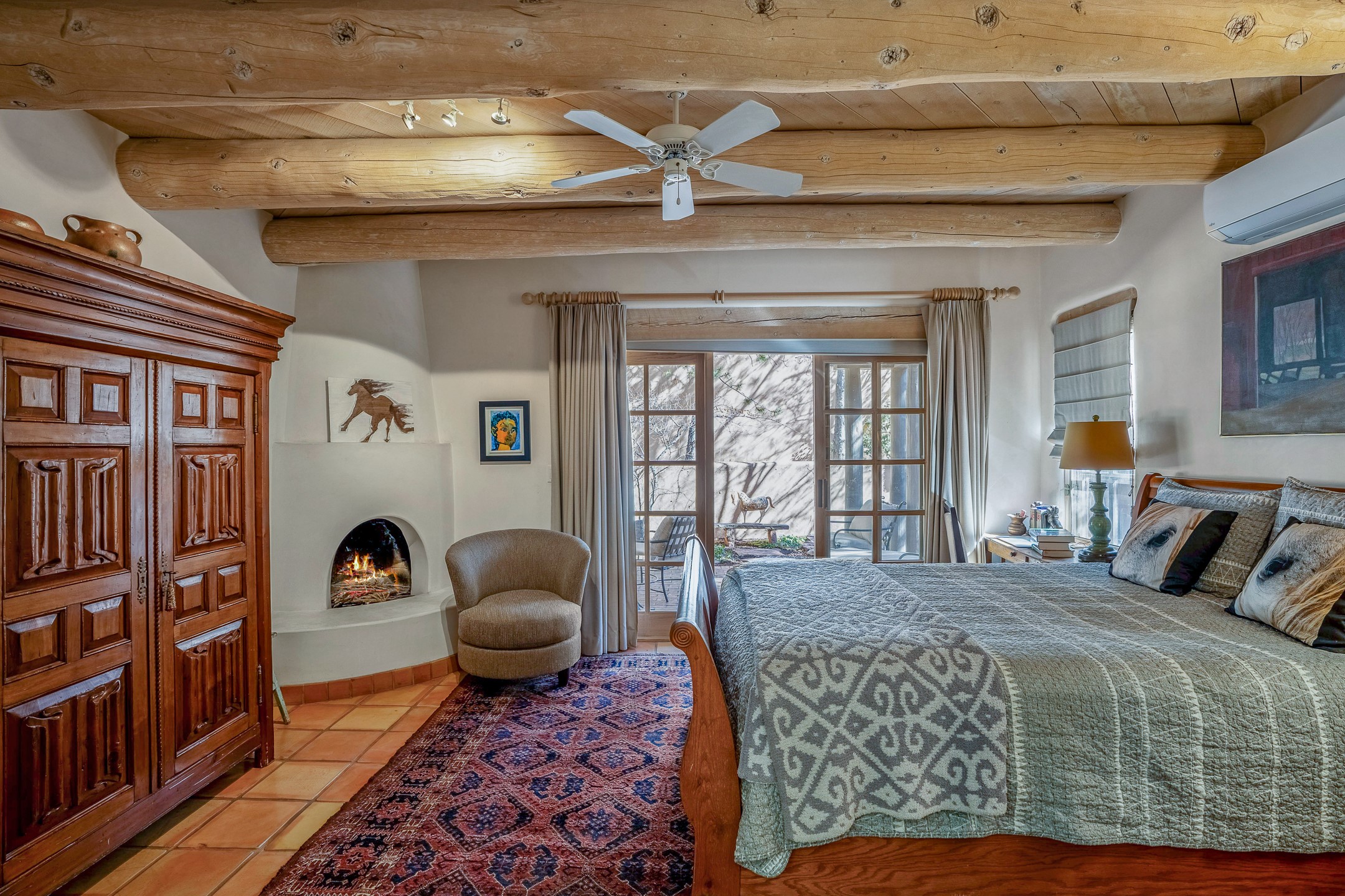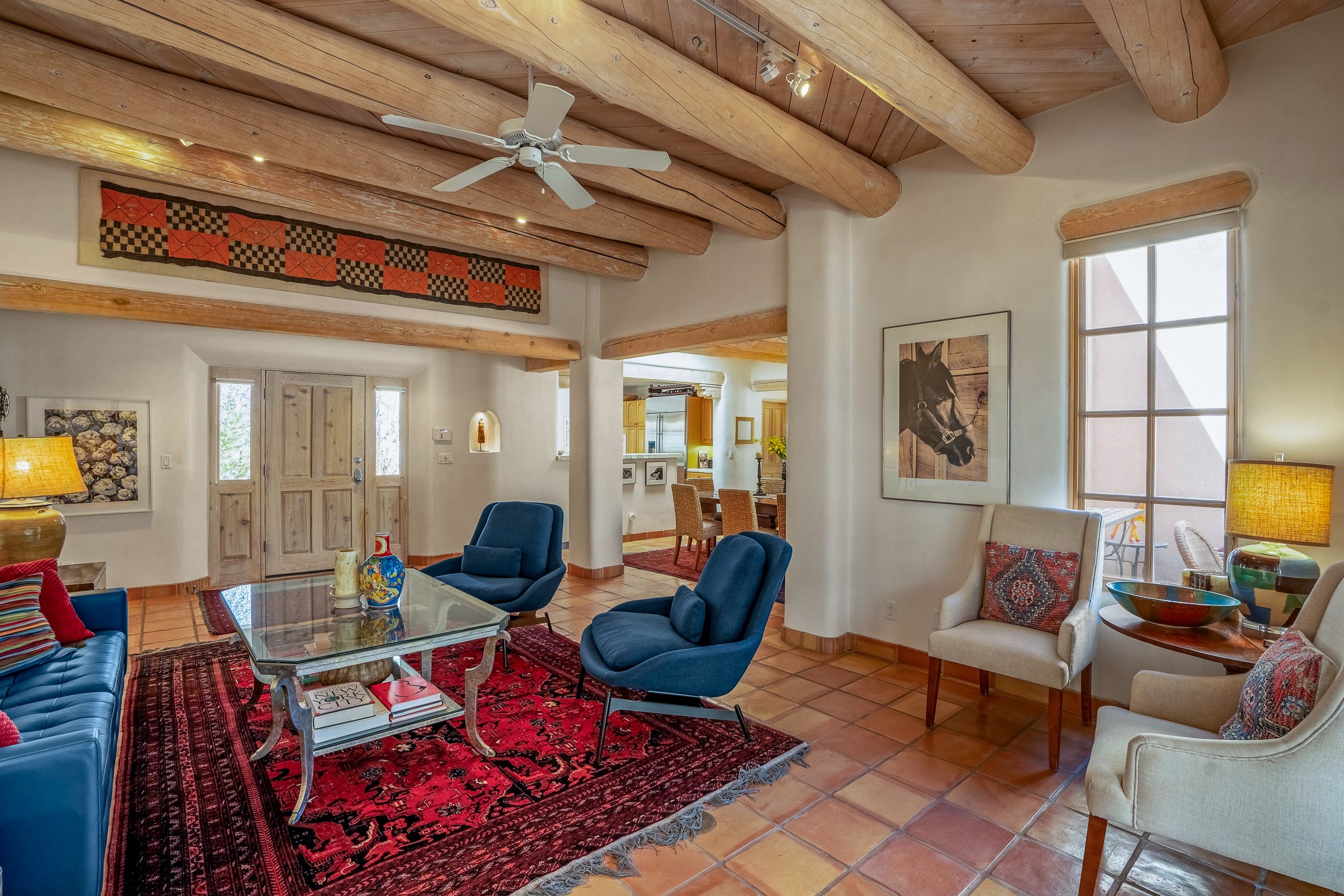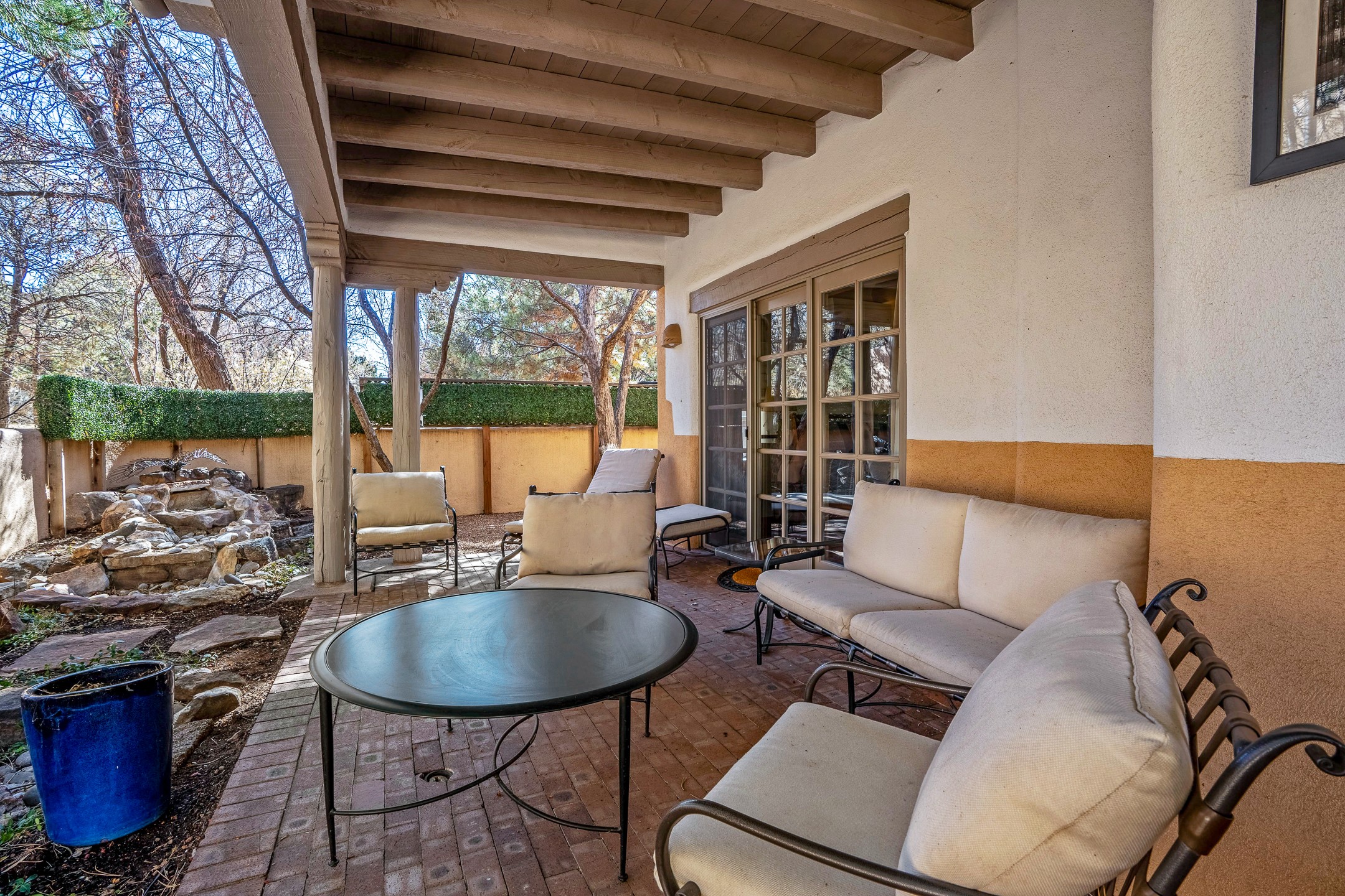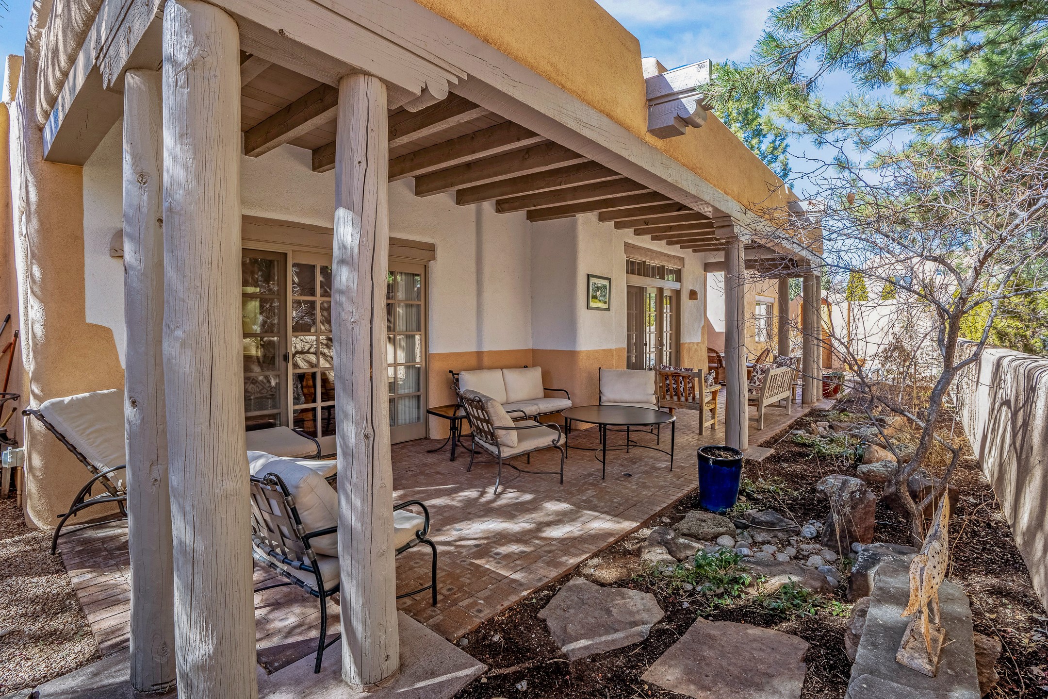 Discover the essence of Santa Fe living in this elegant Pinon B floor plan, offering 1640 Sq Ft of beautifully designed space within the coveted Quail Run Community. From the moment you step through the expansive front courtyard, you'll be welcomed by classic Southwestern warmth and character. Inside, rich Santa Fe influences abound, including viga ceilings, kiva fireplaces and saltillo tile floors, creating a timeless and inviting atmosphere. The well-appointed kitchen and open living area flow effortlessly to the private back portal, a serene retreat perfect for outdoor relaxation or entertaining. Beyond the condos appeal, Quail Run offers unparalleled amenities, just minutes from Santa Fe's vibrant Plaza and Canyon Road.