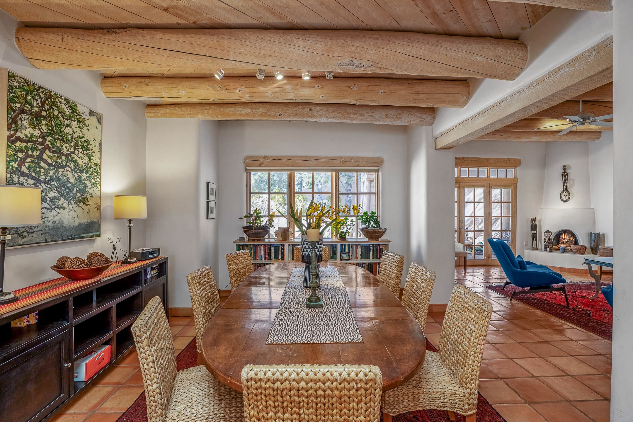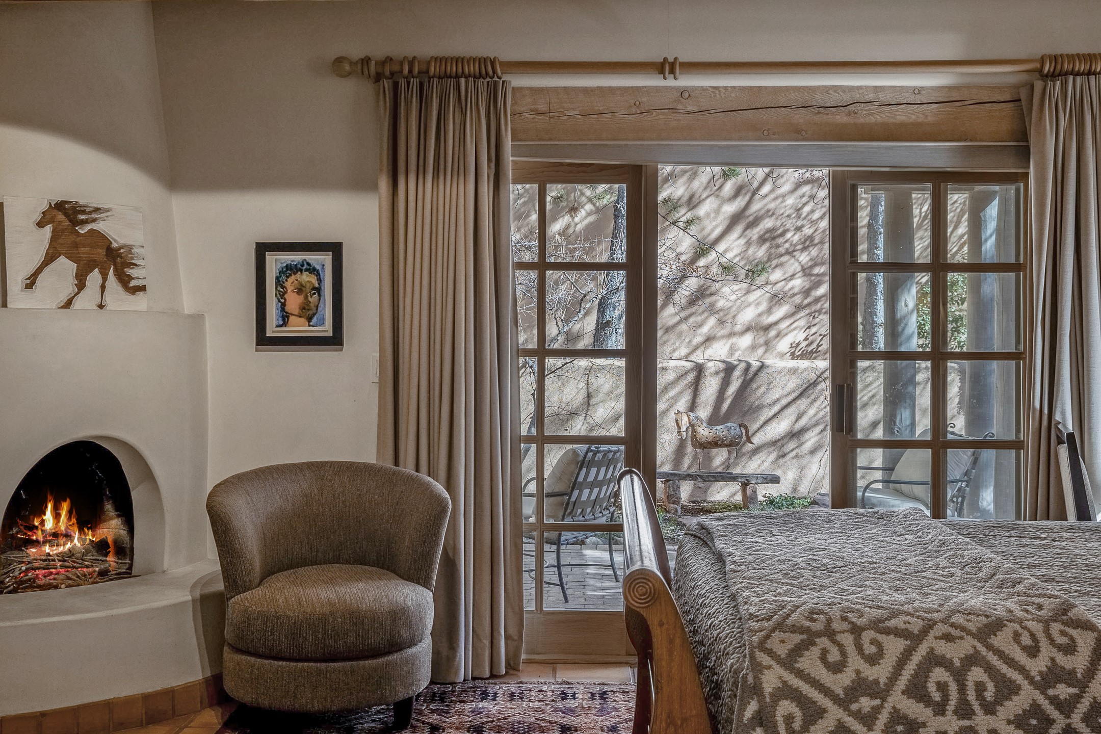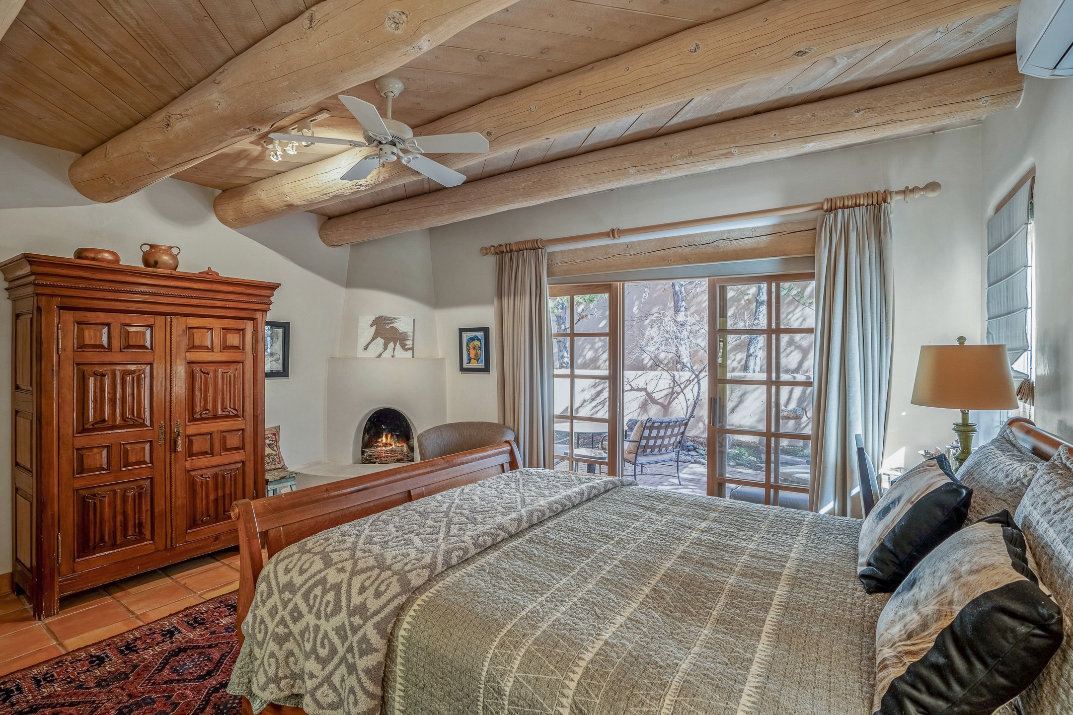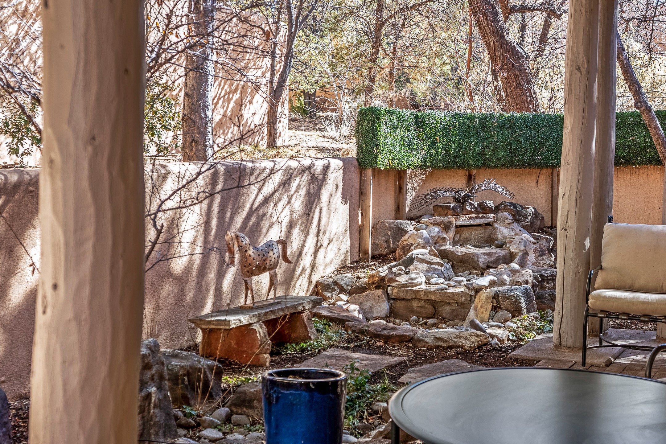 Discover the essence of Santa Fe living in this elegant Pinon B floor plan, offering 1640 Sq Ft of beautifully designed space within the coveted Quail Run Community. From the moment you step through the expansive front courtyard, you'll be welcomed by classic Southwestern warmth and character. Inside, rich Santa Fe influences abound, including viga ceilings, kiva fireplaces and saltillo tile floors, creating a timeless and inviting atmosphere. The well-appointed kitchen and open living area flow effortlessly to the private back portal, a serene retreat perfect for outdoor relaxation or entertaining. Beyond the condos appeal, Quail Run offers unparalleled amenities, just minutes from Santa Fe's vibrant Plaza and Canyon Road.