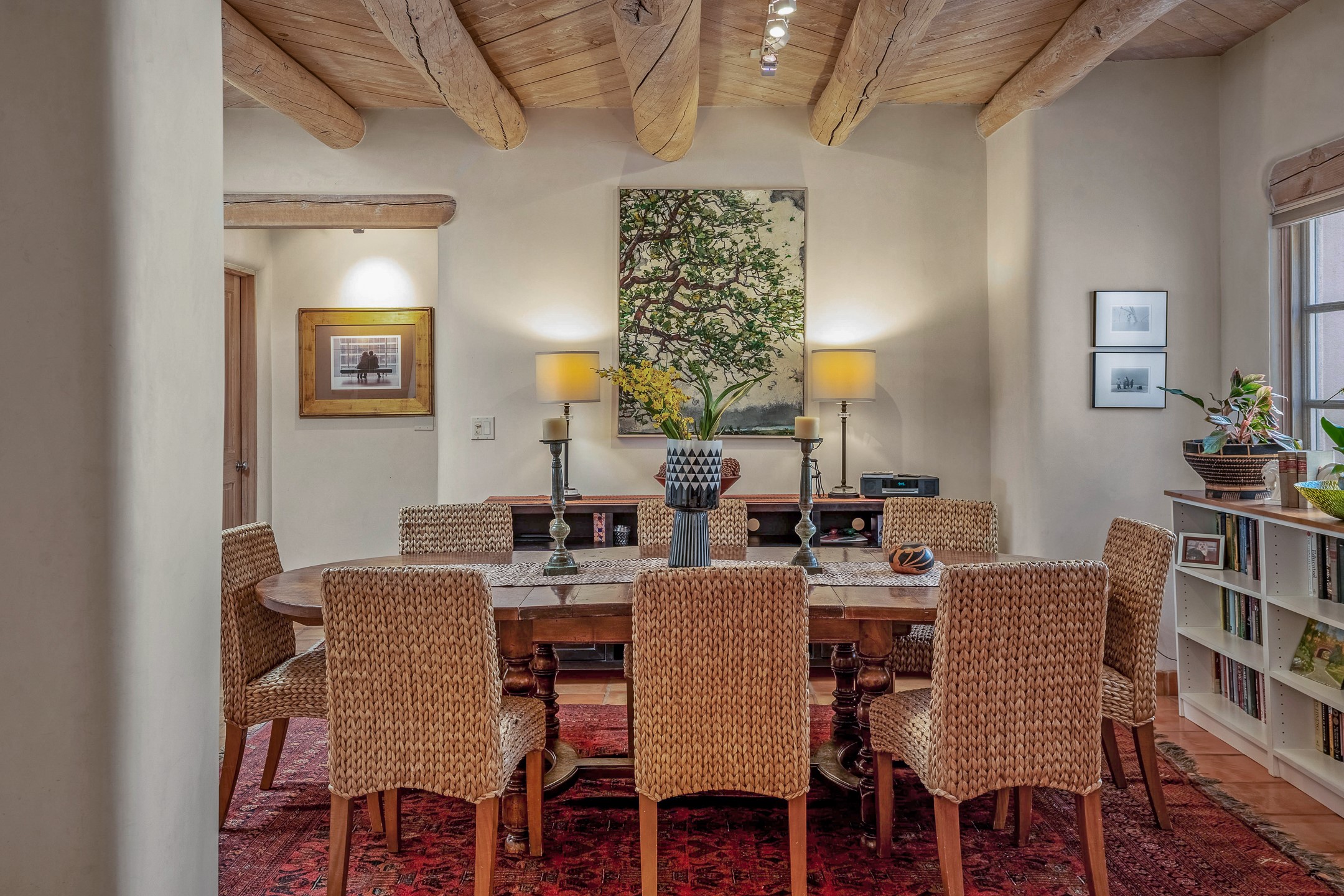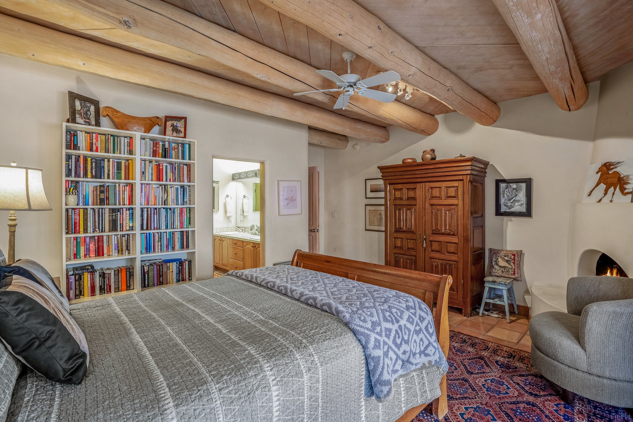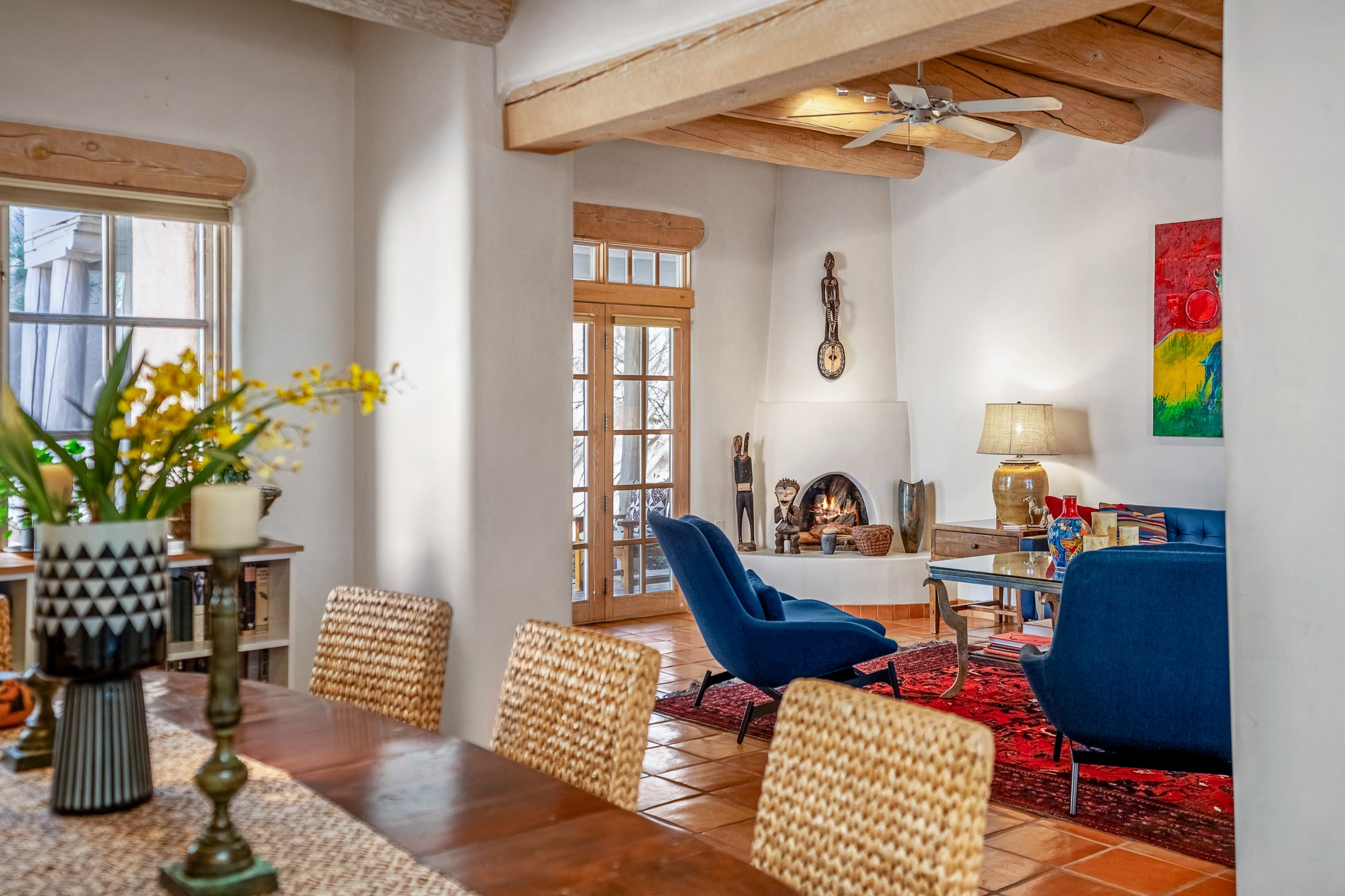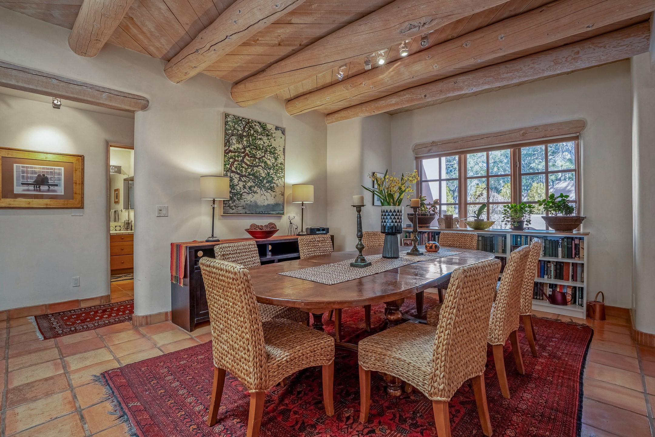 Discover the essence of Santa Fe living in this elegant Pinon B floor plan, offering 1640 Sq Ft of beautifully designed space within the coveted Quail Run Community. From the moment you step through the expansive front courtyard, you'll be welcomed by classic Southwestern warmth and character. Inside, rich Santa Fe influences abound, including viga ceilings, kiva fireplaces and saltillo tile floors, creating a timeless and inviting atmosphere. The well-appointed kitchen and open living area flow effortlessly to the private back portal, a serene retreat perfect for outdoor relaxation or entertaining. Beyond the condos appeal, Quail Run offers unparalleled amenities, just minutes from Santa Fe's vibrant Plaza and Canyon Road.