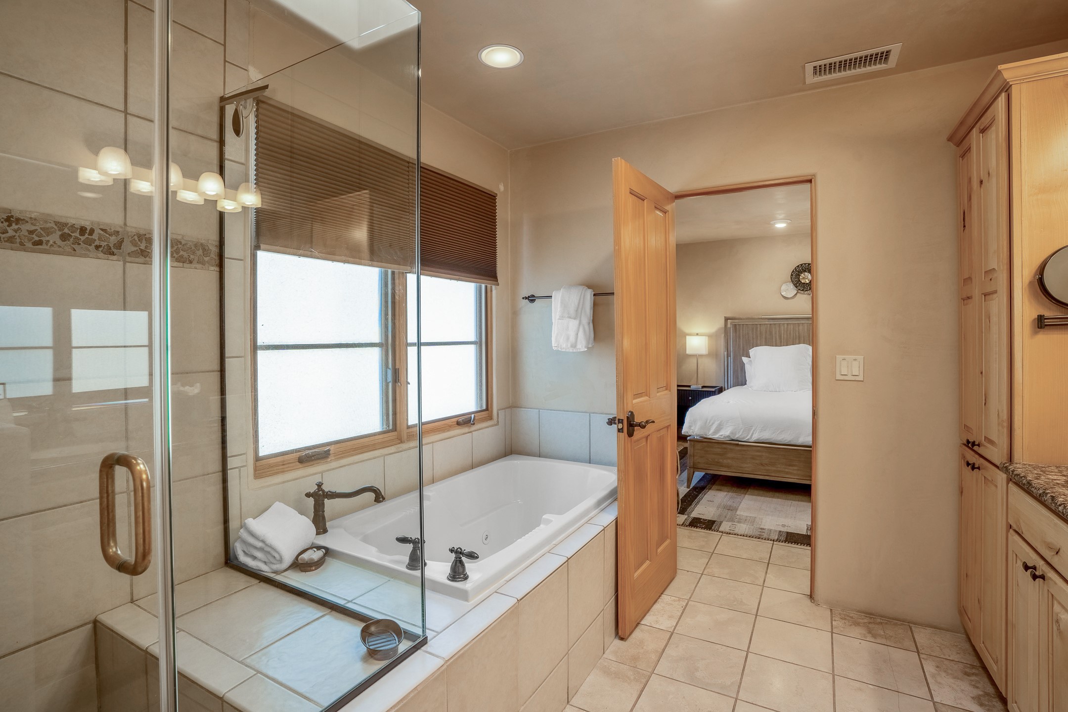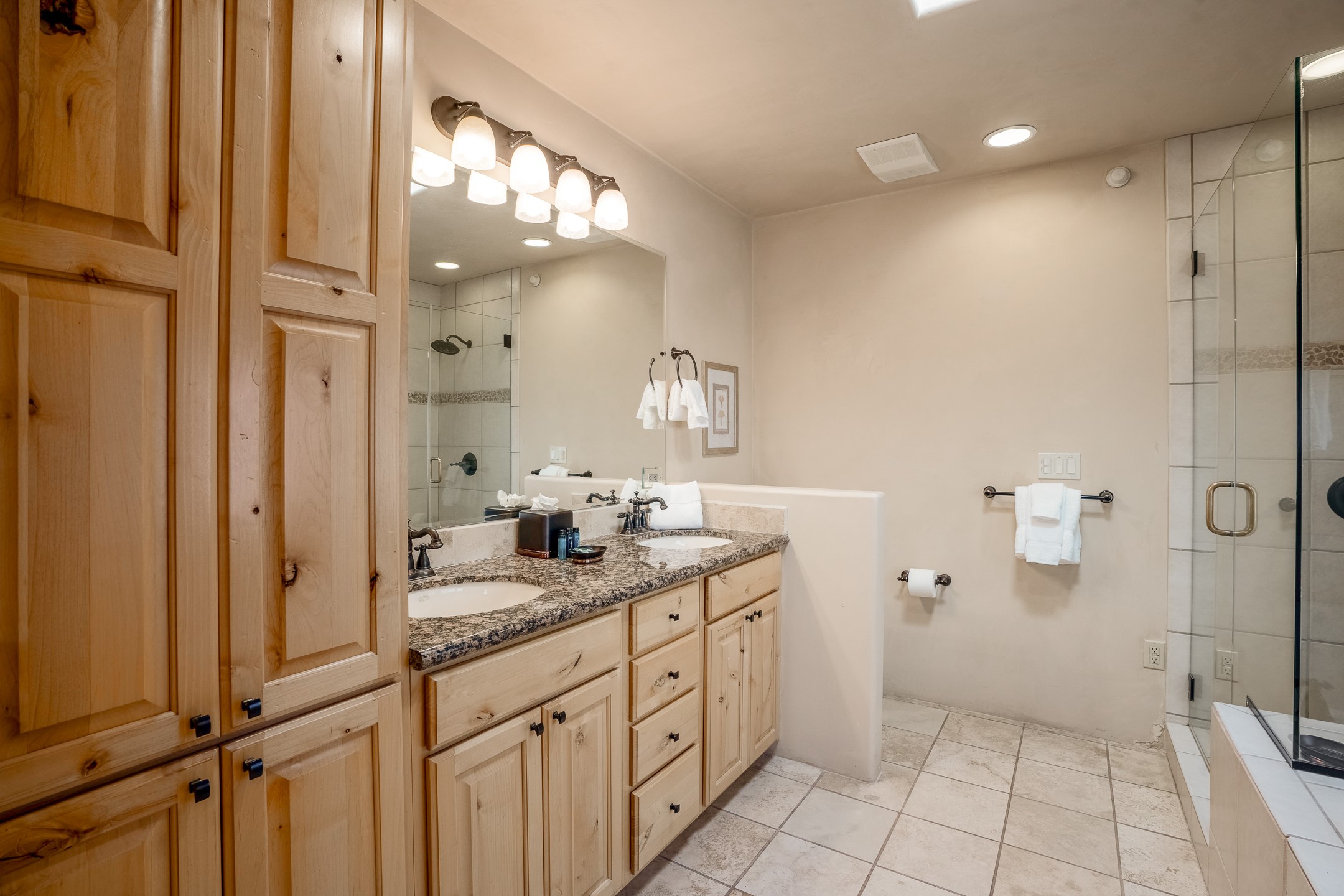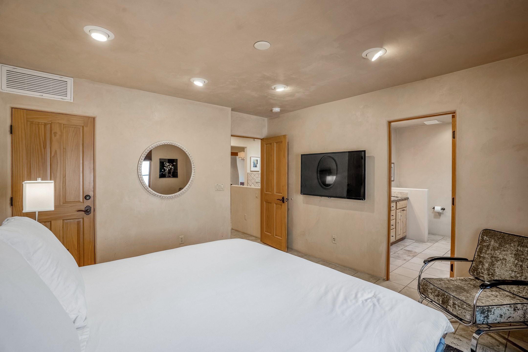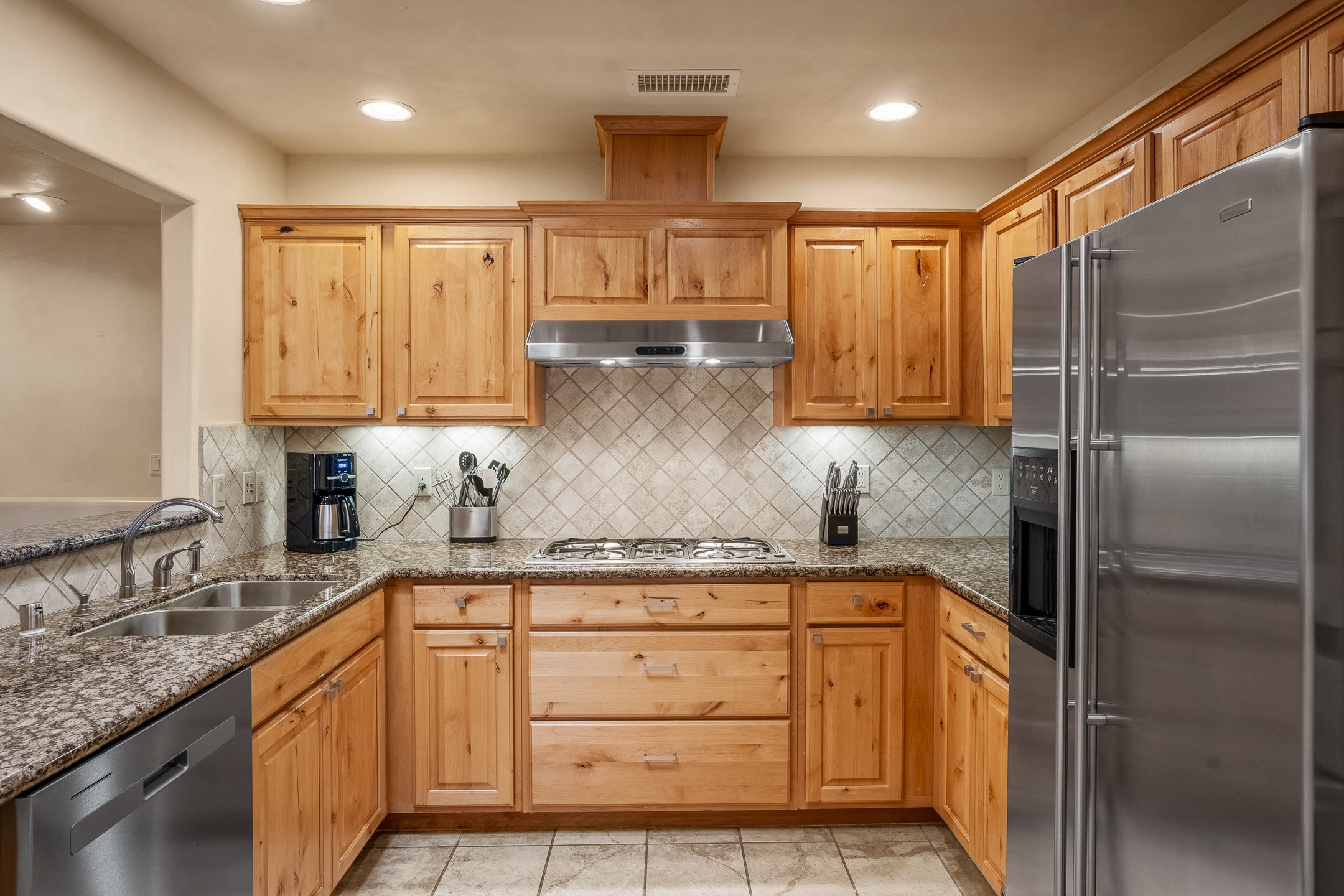 This light-filled, 2nd-floor upscale corner condo is professionally decorated and appointed, only two blocks from the famous Santa Fe Plaza. Plaster walls, a tankless water heater, stainless kitchen appliances, and granite countertops complement the carefully decorated home. New roofs and gas lines were installed by HOA in 2022. There is also a state-of-the-art workout facility and temperature-controlled underground parking on site. There are also incredible seasonal mountain views from the East windows and patio. An excellent investment opportunity as Short-term rentals are allowable with this HOA; buyers are to conduct due diligence with the City and HOA regarding STR rentals. The rental property is currently professionally managed by Adobe Star Properties.All Furnishings are included.
