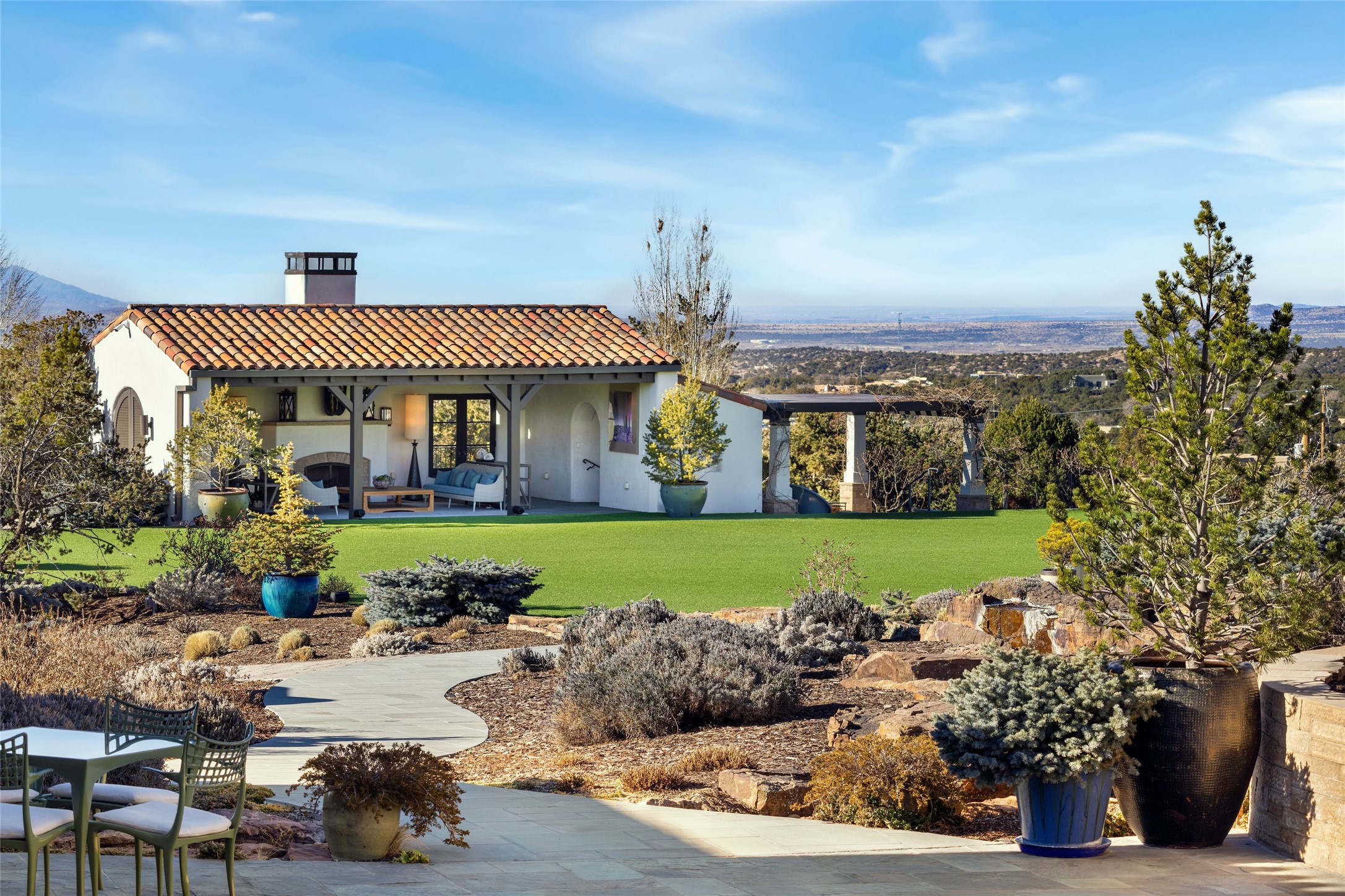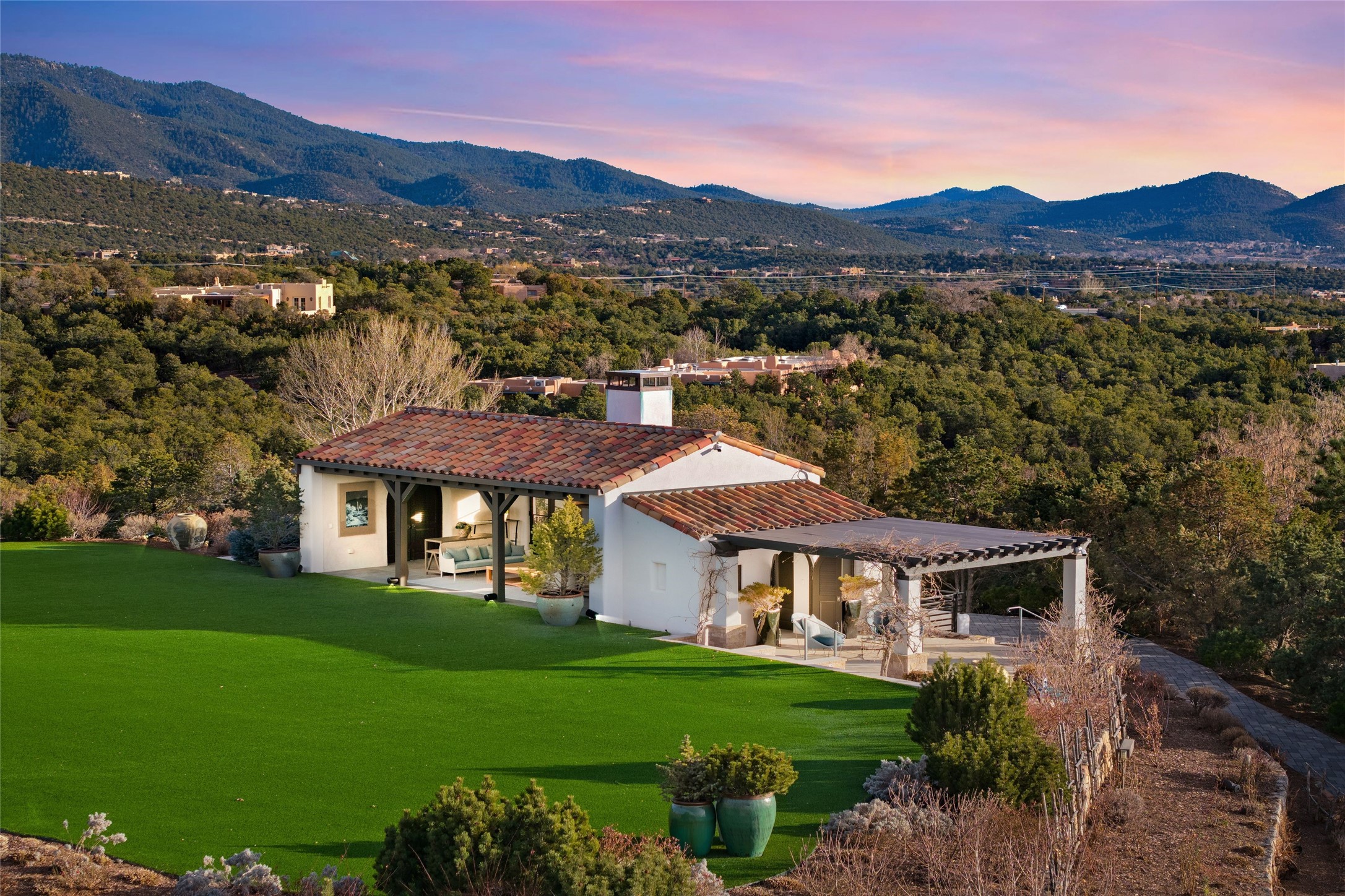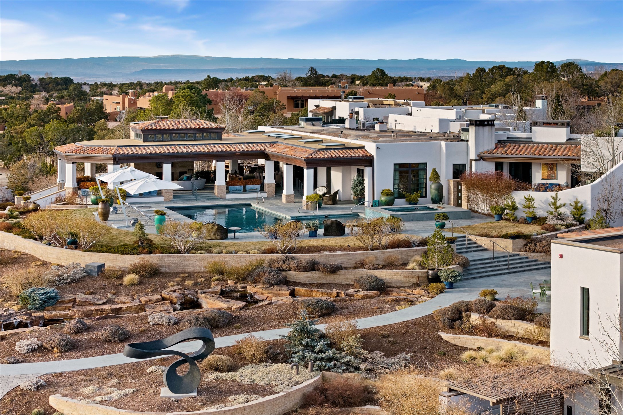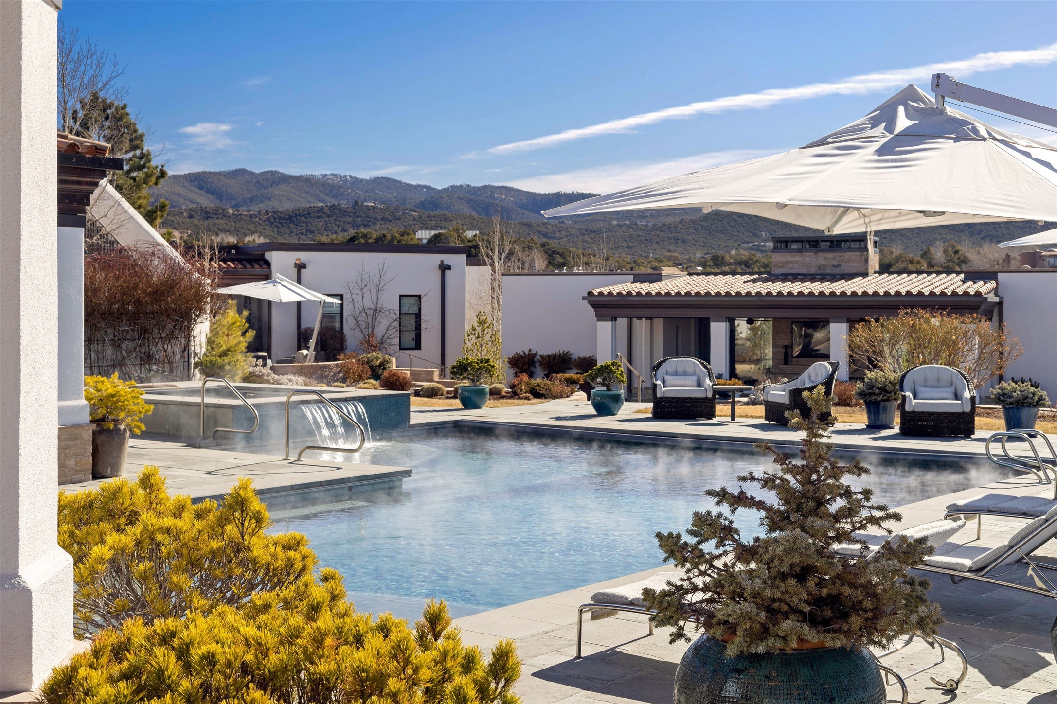 ***AUCTION BIDDING OPEN: Bidding ends September 18. Previously listed at $12M. Current high bid $7M.***A rare sanctuary awaits at this unparalleled Santa Fe compound representing the ultimate retreat in the heart of New Mexico's cultural capital. This incomparable estate which includes a 7,000-square-foot main house with three distinct guest casitas, captures the essence of Southwestern grandeur with traditional Puebloan architecture, fourteen fireplaces, and arresting mountain views in every direction. The main residence features five bedrooms, commercial-grade kitchen, and 600-bottle wine cellar, while three additional casitas provide sumptuous guest accommodations including game rooms, gym, salon, massage room, and sauna. Nature and luxury converge in perfect harmony with stunning pool and spa, expansive lawns, outdoor pavilion, heated walkways, and flowing ornamental stream. The grand portal overlooks city lights and accommodates over 100 guests, creating the ultimate entertainment destination.