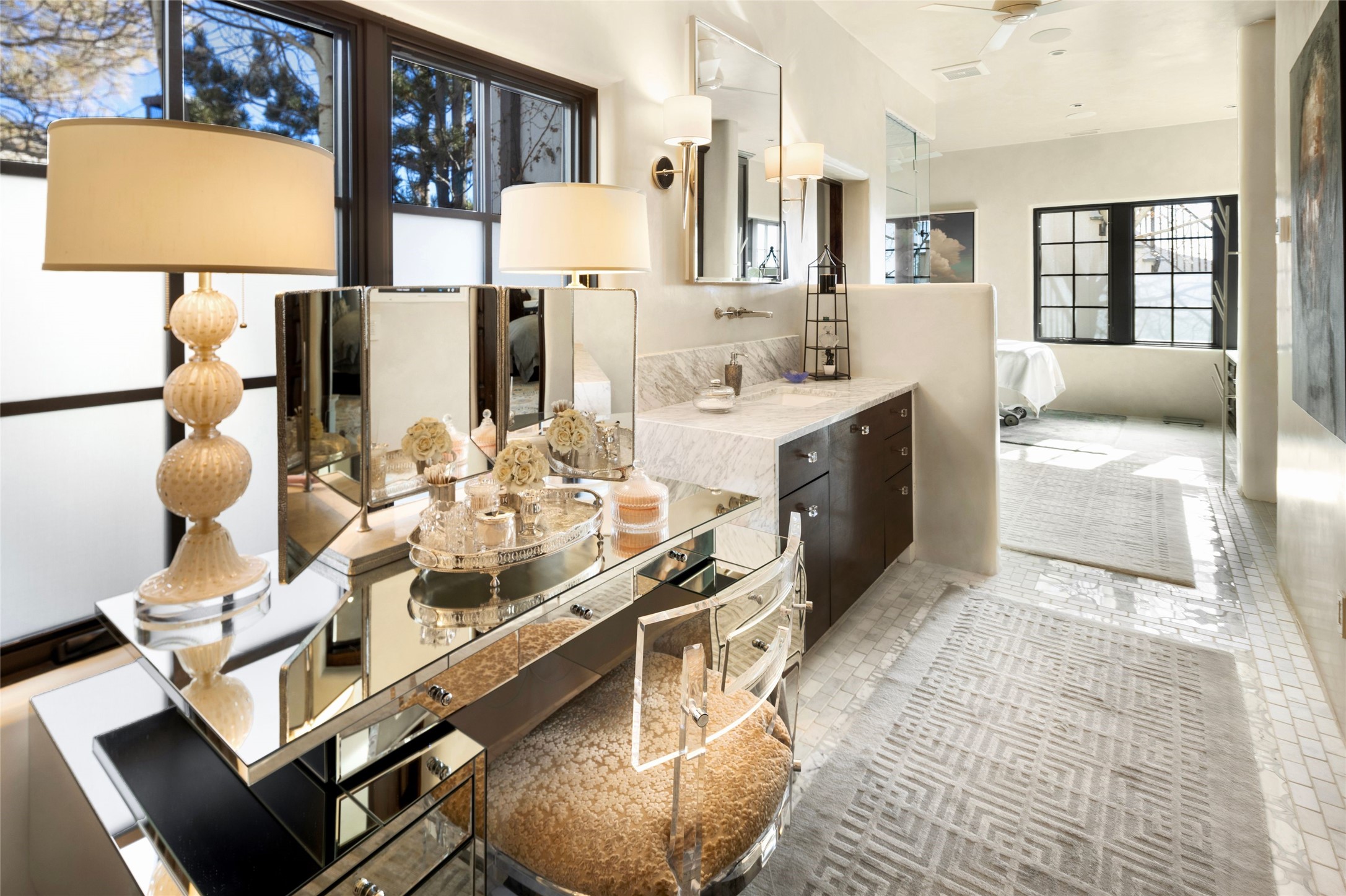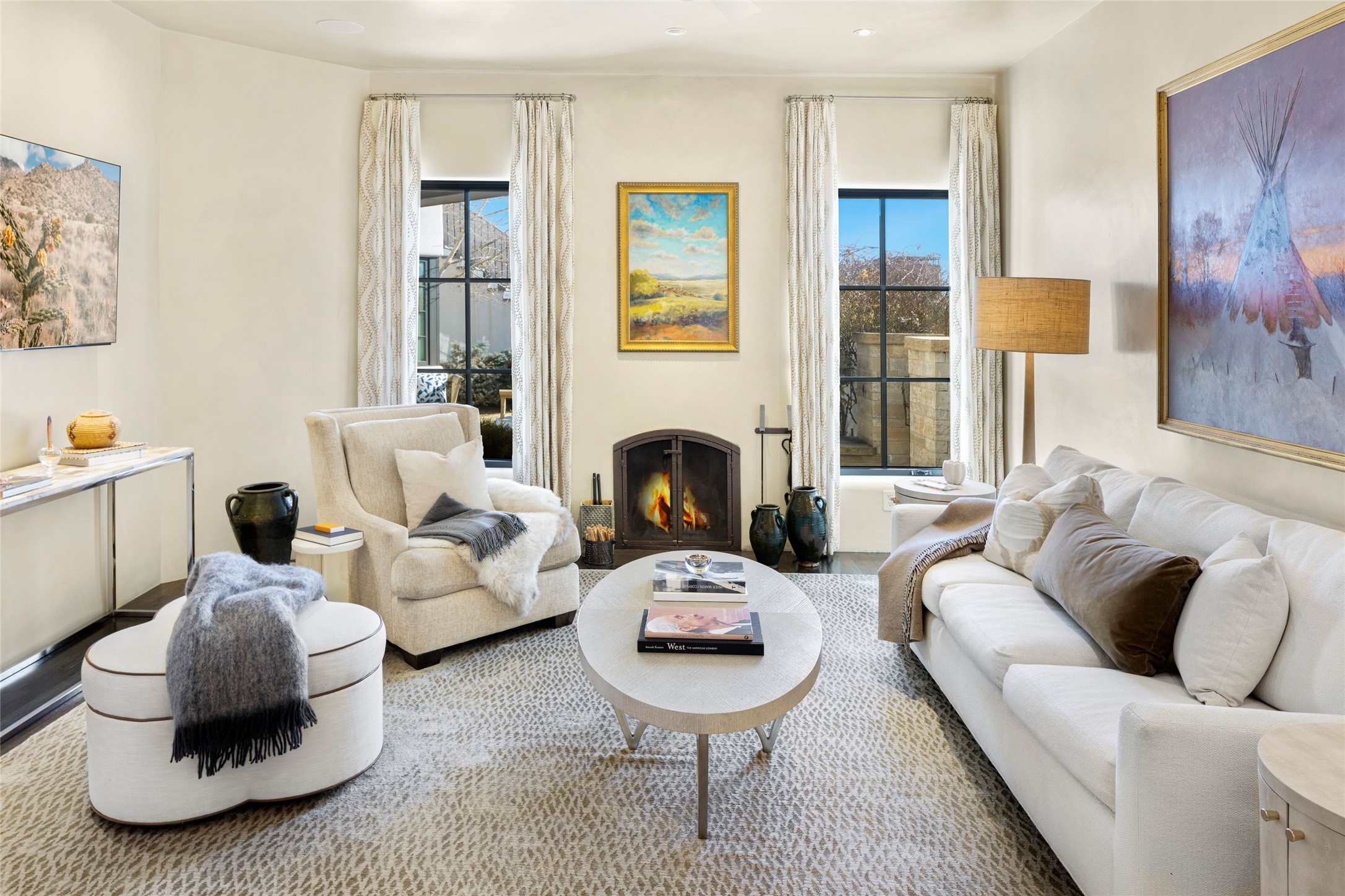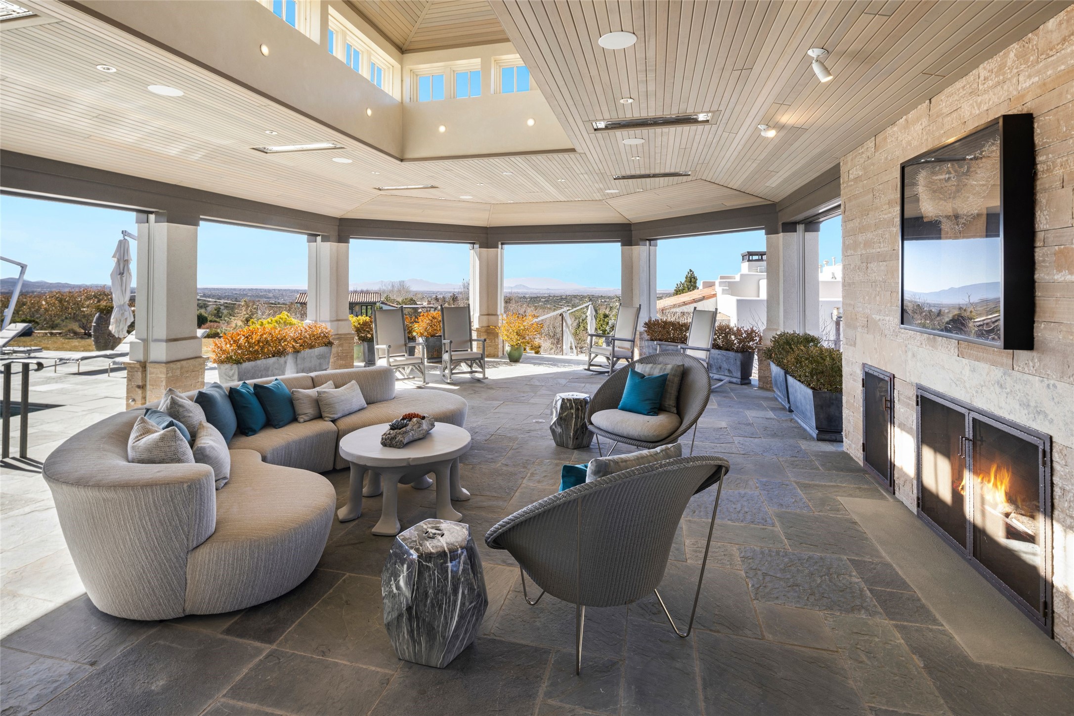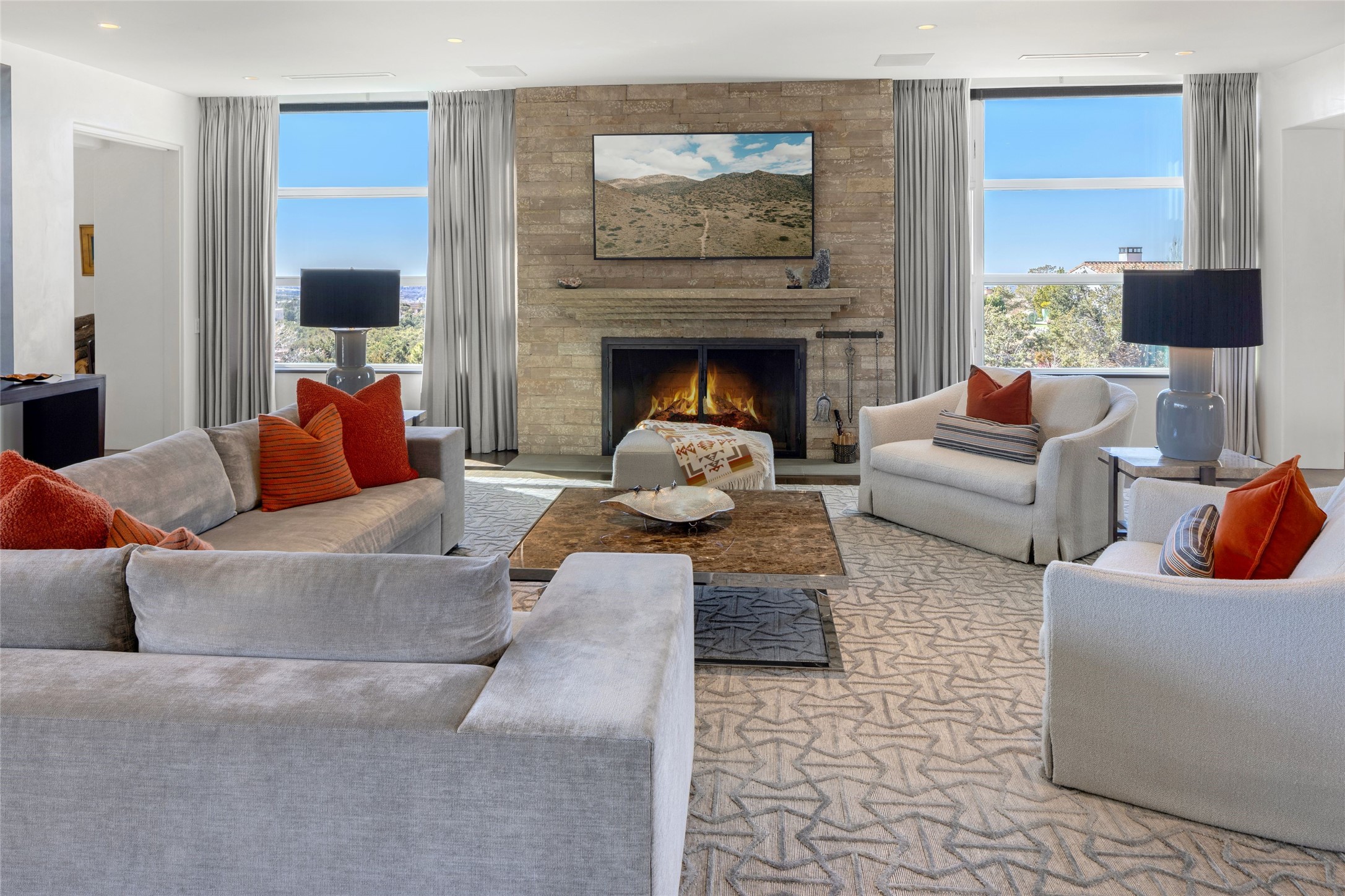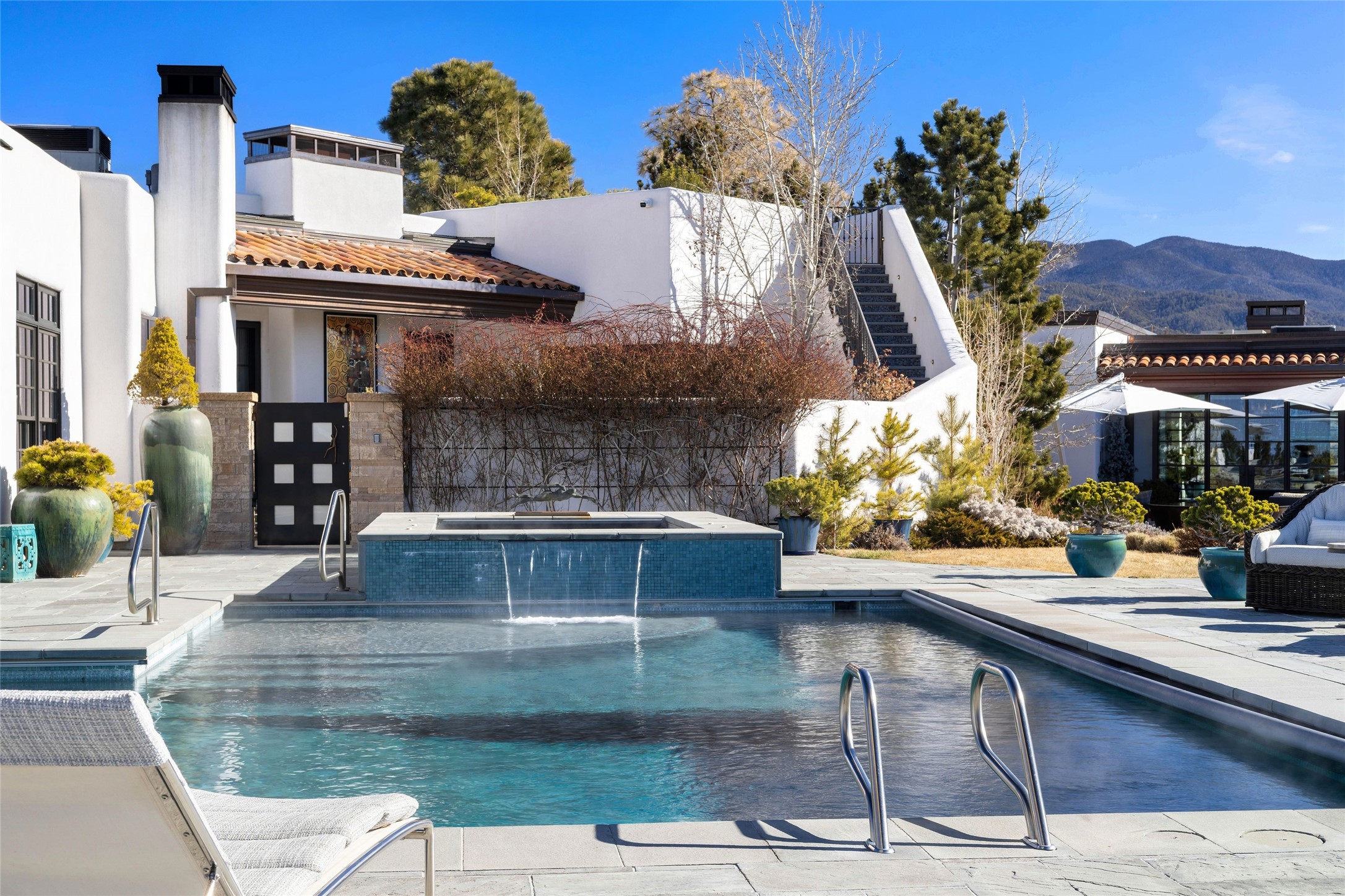 ***AUCTION BIDDING OPEN: Bidding ends September 18. Previously listed at $12M. Current high bid $7M.***A rare sanctuary awaits at this unparalleled Santa Fe compound representing the ultimate retreat in the heart of New Mexico's cultural capital. This incomparable estate which includes a 7,000-square-foot main house with three distinct guest casitas, captures the essence of Southwestern grandeur with traditional Puebloan architecture, fourteen fireplaces, and arresting mountain views in every direction. The main residence features five bedrooms, commercial-grade kitchen, and 600-bottle wine cellar, while three additional casitas provide sumptuous guest accommodations including game rooms, gym, salon, massage room, and sauna. Nature and luxury converge in perfect harmony with stunning pool and spa, expansive lawns, outdoor pavilion, heated walkways, and flowing ornamental stream. The grand portal overlooks city lights and accommodates over 100 guests, creating the ultimate entertainment destination.