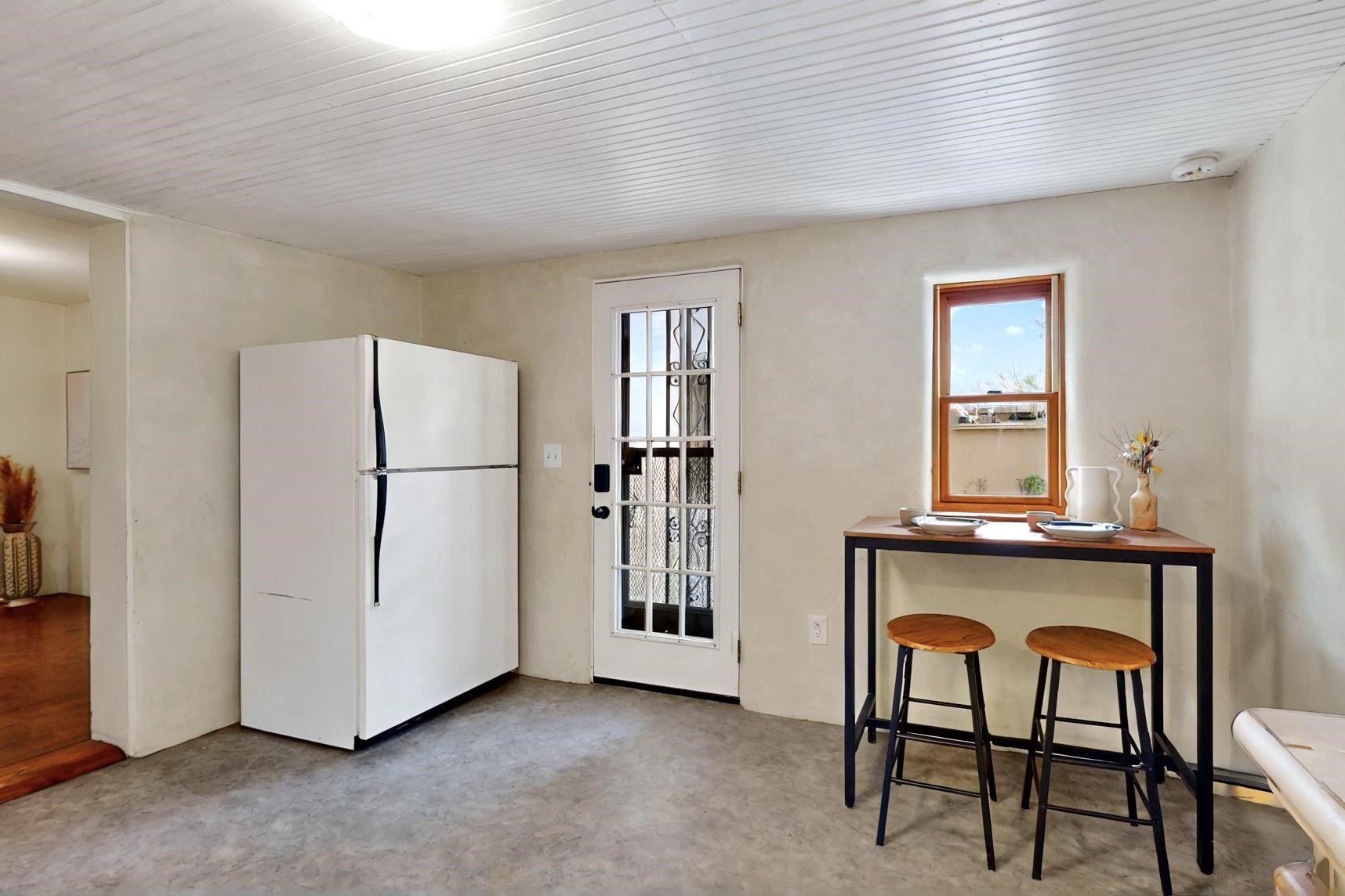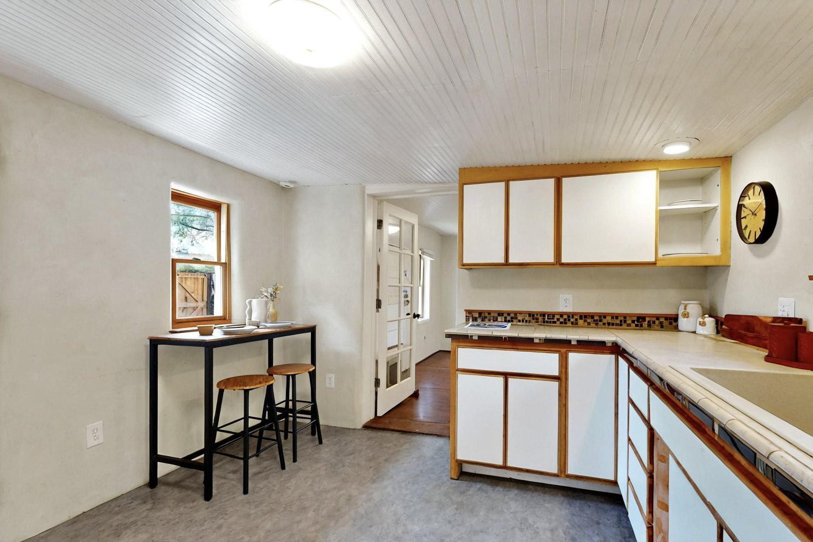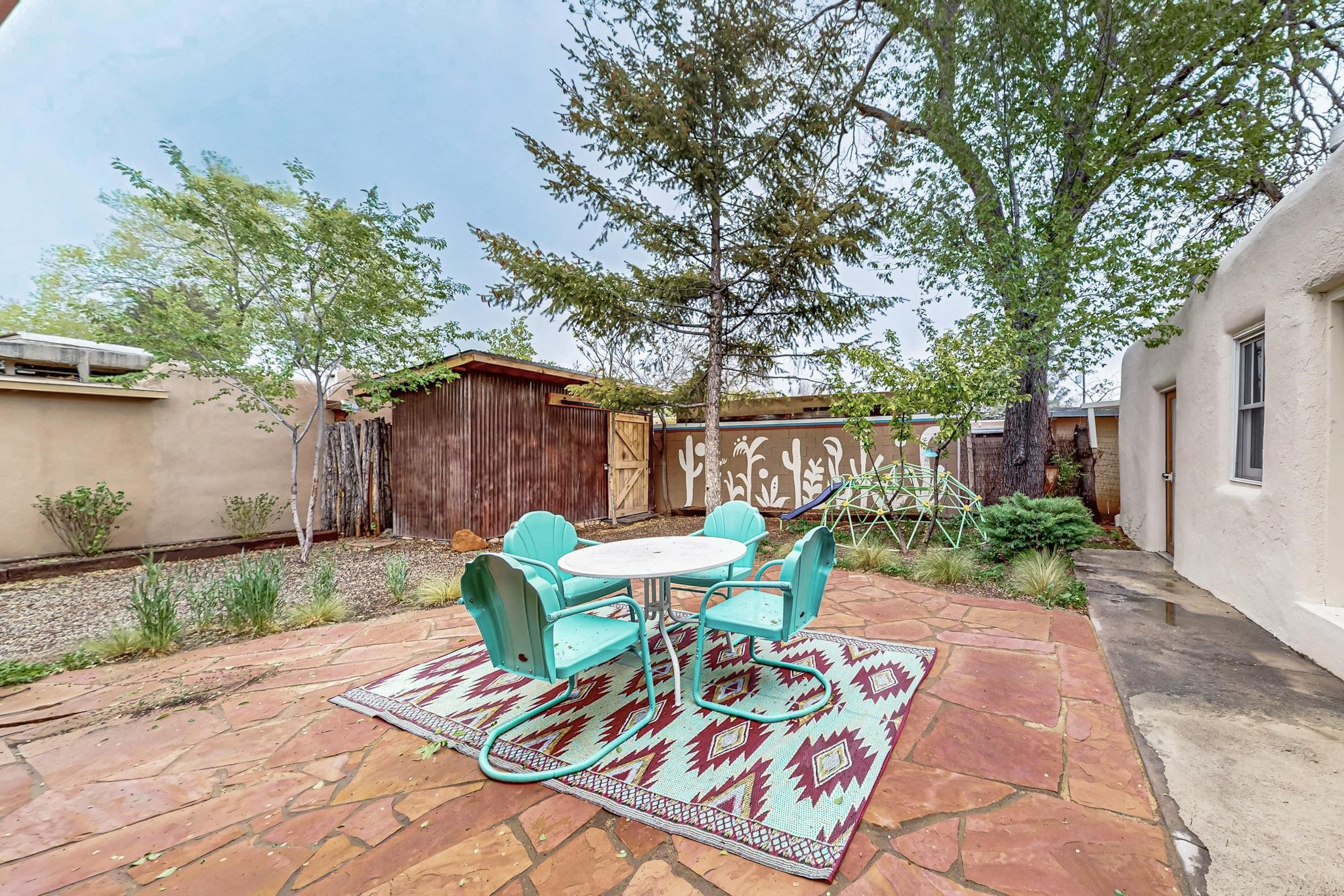 Newly staged.Take another look.This 1900s downtown vintage casa is a blank canvas ready for your creative touches. With its mature trees, the backyard offers a private setting for entertaining or relaxation. A separate unheated storage room off the laundry room (accessible from the outside) could be transformed into a fabulous office, art studio, or guest room. Off-street tandem parking. Mature trees. The cellar offers extra space for storage. Just a few blocks away, you'll find the historic Santa Fe Plaza, with its excellent shops, world-class restaurants, galleries, and the Rail Runner commuter train for easy access to ABQ. If construction type (e.g., Adobe) is of material consideration to the Buyer then Buyer should obtain independent verification of construction type and materials.