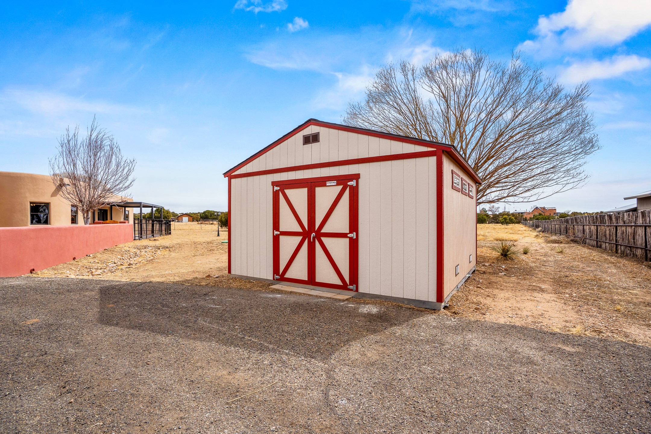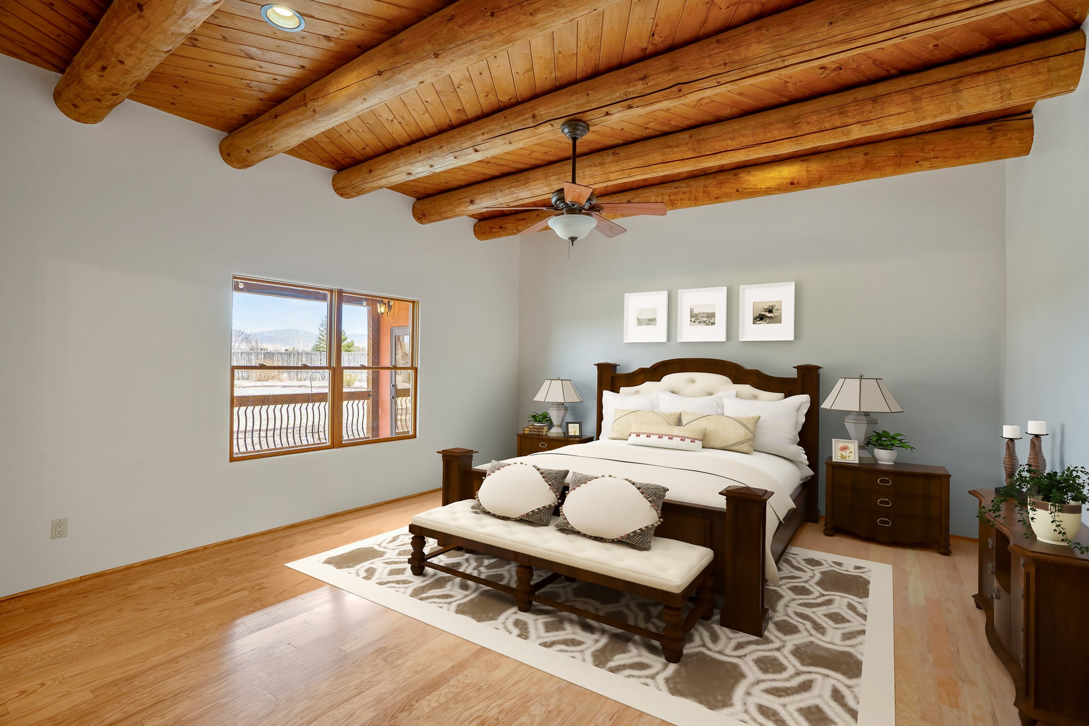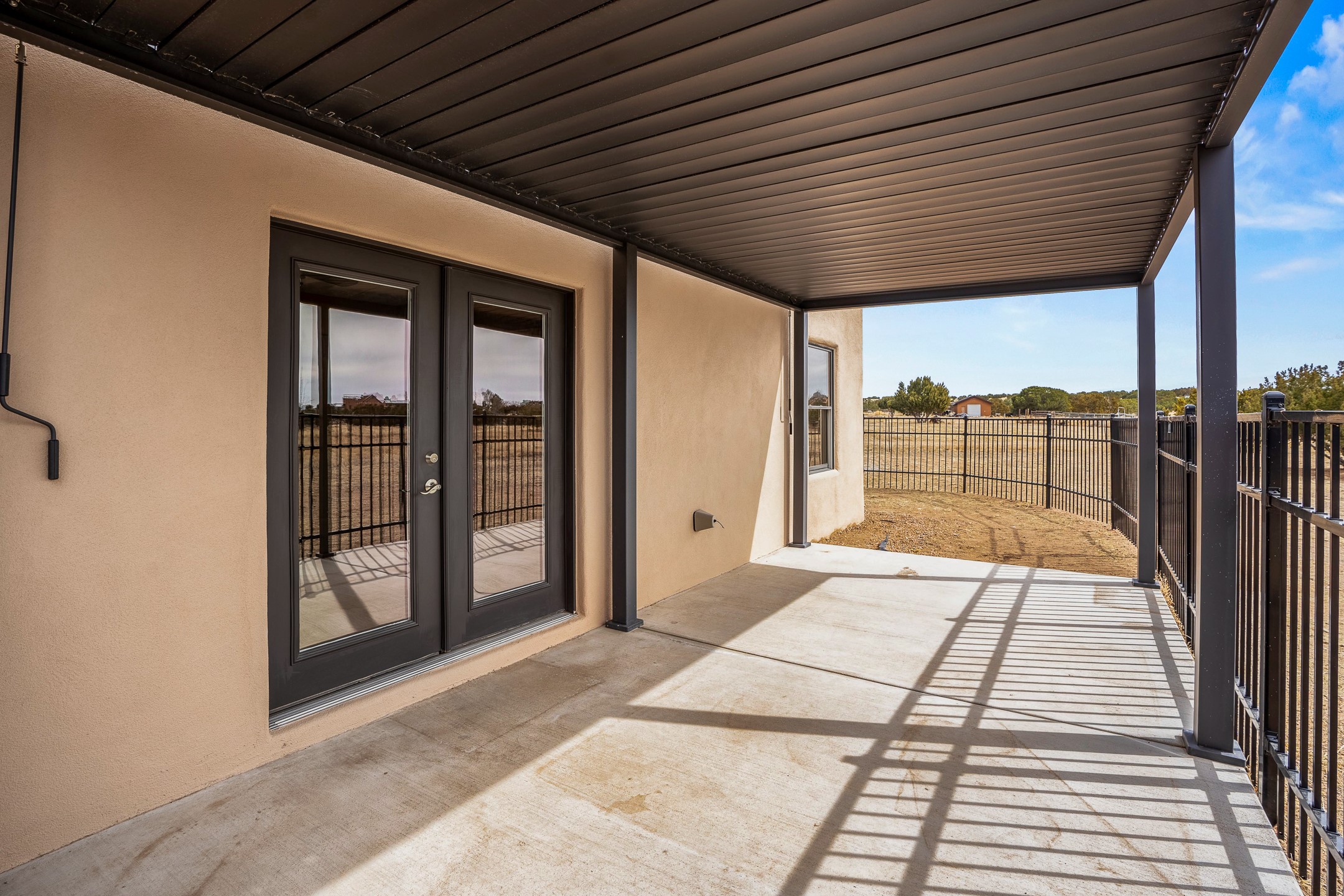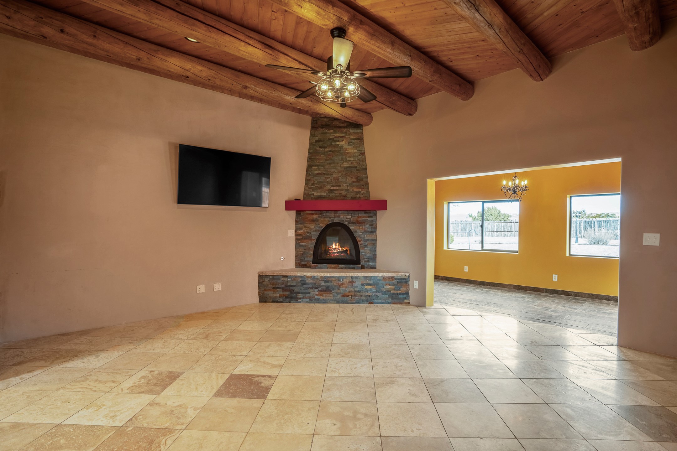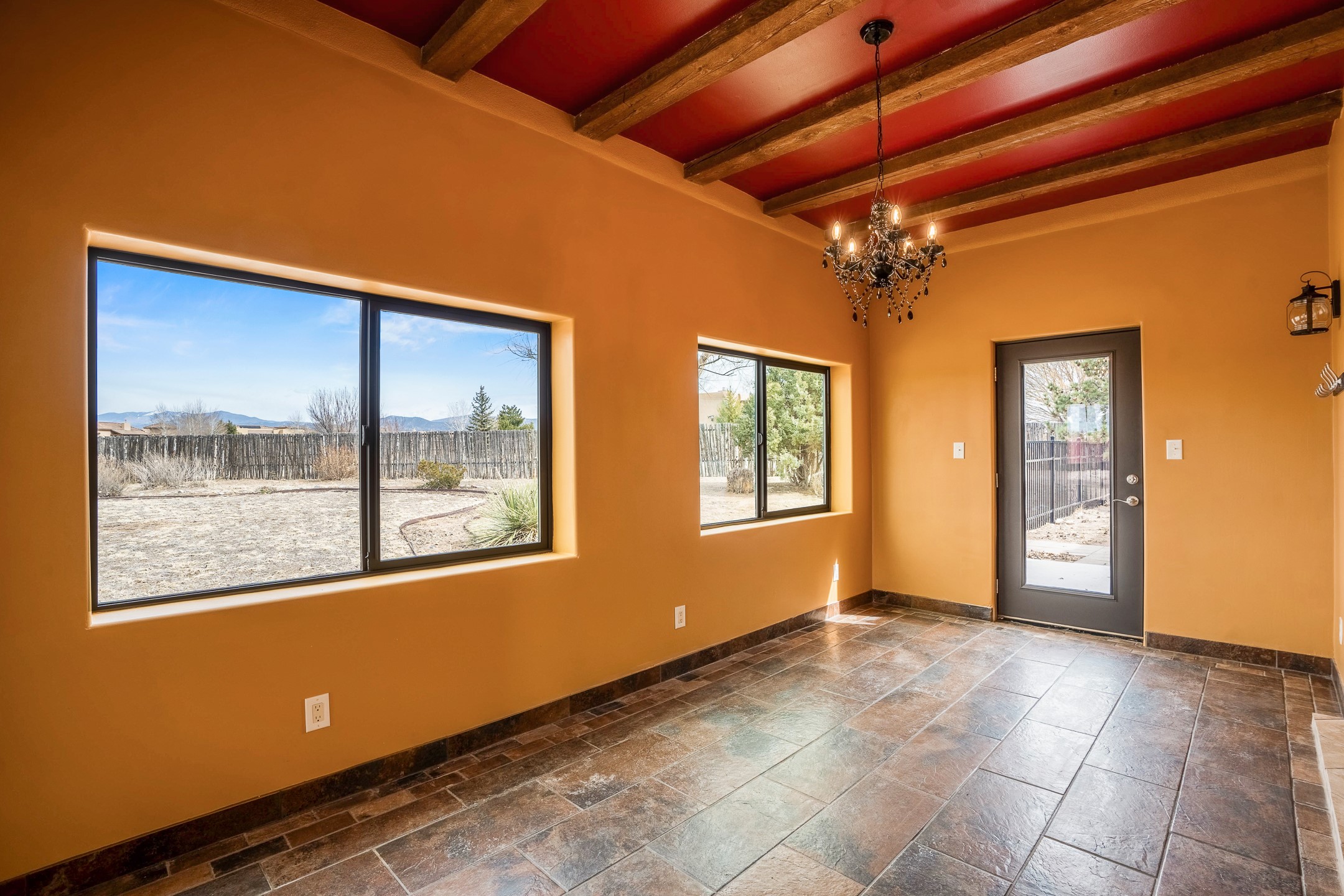 This beautiful single-level home boasts a spacious 2,727 +/- square foot split-bedroom floor plan with 4 bedrooms, a sunroom, 3 full baths, and a 3-car garage. 2025: home has been appx 80% re-stuccoed, & is situated on a fenced & gated 2.5-acre lot with breathtaking mountain views in all directions, offering a serene rural setting allowing horses, no HOA, just minutes from hospitals, restaurants, & grocery stores. The large kitchen is a chef's dream, featuring NEW MOSAIC TILE BACKSPLASH, abundant cabinetry & drawers for ample storage, granite countertops, an island/breakfast bar, pantry and stainless-steel appliances. Adjacent to the kitchen is the formal dining room with tiled accents and plaster finished wall/ceiling. The grand living room impresses with high ceilings, vigas, can lighting, and a REMODELED GAS FIREPLACE WITH MANTLE. From the living room, step into the NEW SUNROOM, which opens to a NEW COVERED PORCH perfect for relaxing & enjoying the views. The spacious owner's suite has NEW ENGINEERED WOOD FLOORING, walk-in closet with built-ins, vigas with tongue & groove ceiling and a ceiling fan. The ensuite bath has a NEW TUB, NEW LOVELY TILED SHOWER, AND NEW DOUBLE SINK VANITY. Additional bedrooms are thoughtfully designed with ample space & functionality. The hall bath has been updated with a NEW VANITY, while the laundry room, complete with plentiful cabinets and drawers, a skylight, and an NEWELY ADDED SINK, offers convenience and style. Many wonderful features and amenities include: Radiant heat-2 Evaporative cooling units-Tons of skylights-Wood doors-NEW PERGOLA-NEW 16X16 TUFF SHED (13K)-Plaster finish walls-Hunter Douglas blinds-Ceiling fans-NEW BRICK TILED ACCENT WALLS in hallway-Plenty of wall space for artwork-FRESHLY PAINTED INTERIOR (Almost every room)-Multiple covered enclosed patios, perfect for outdoor living, and entertaining. This property combines comfort and functionality with stunning views. Please read agent only remarks.
