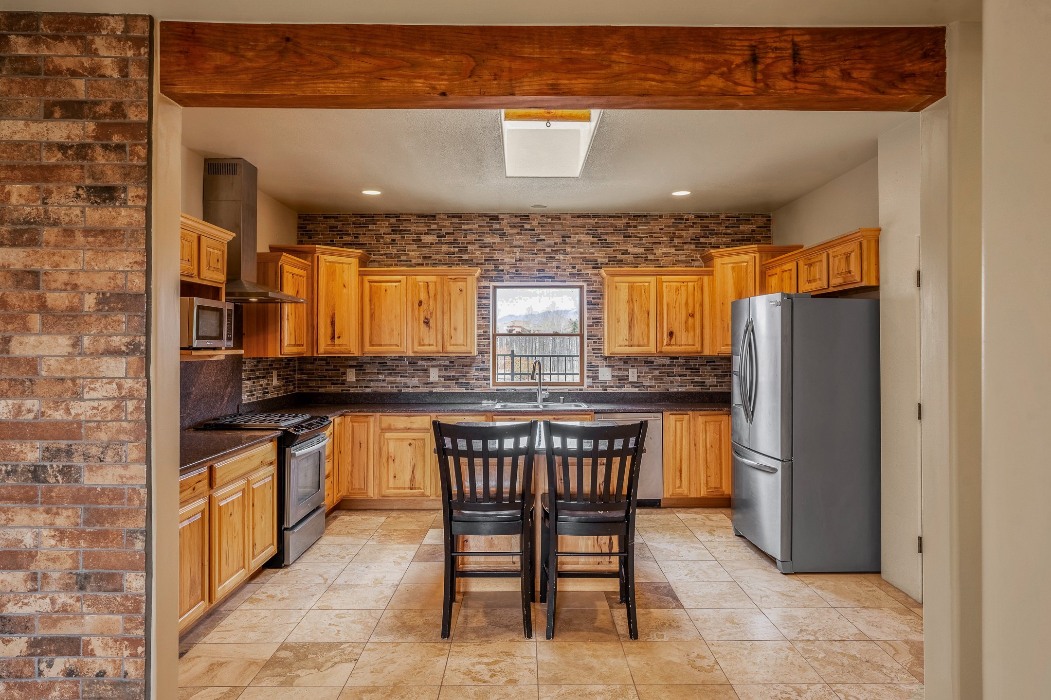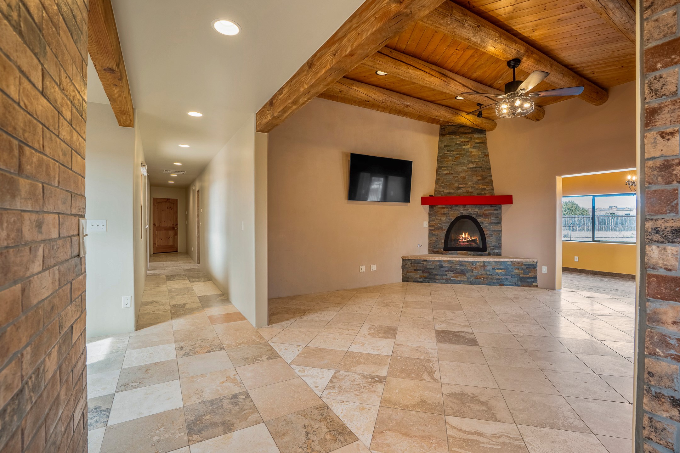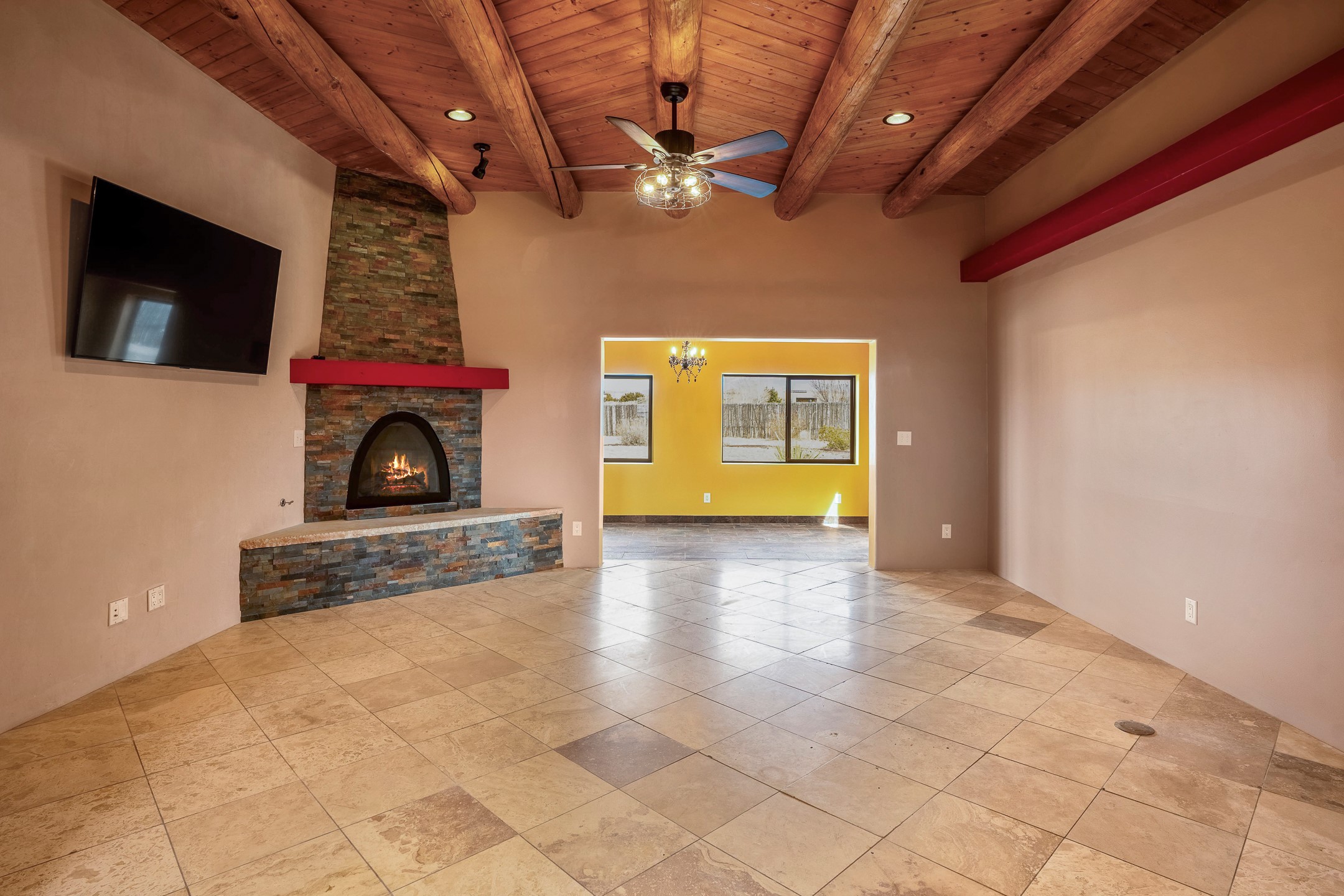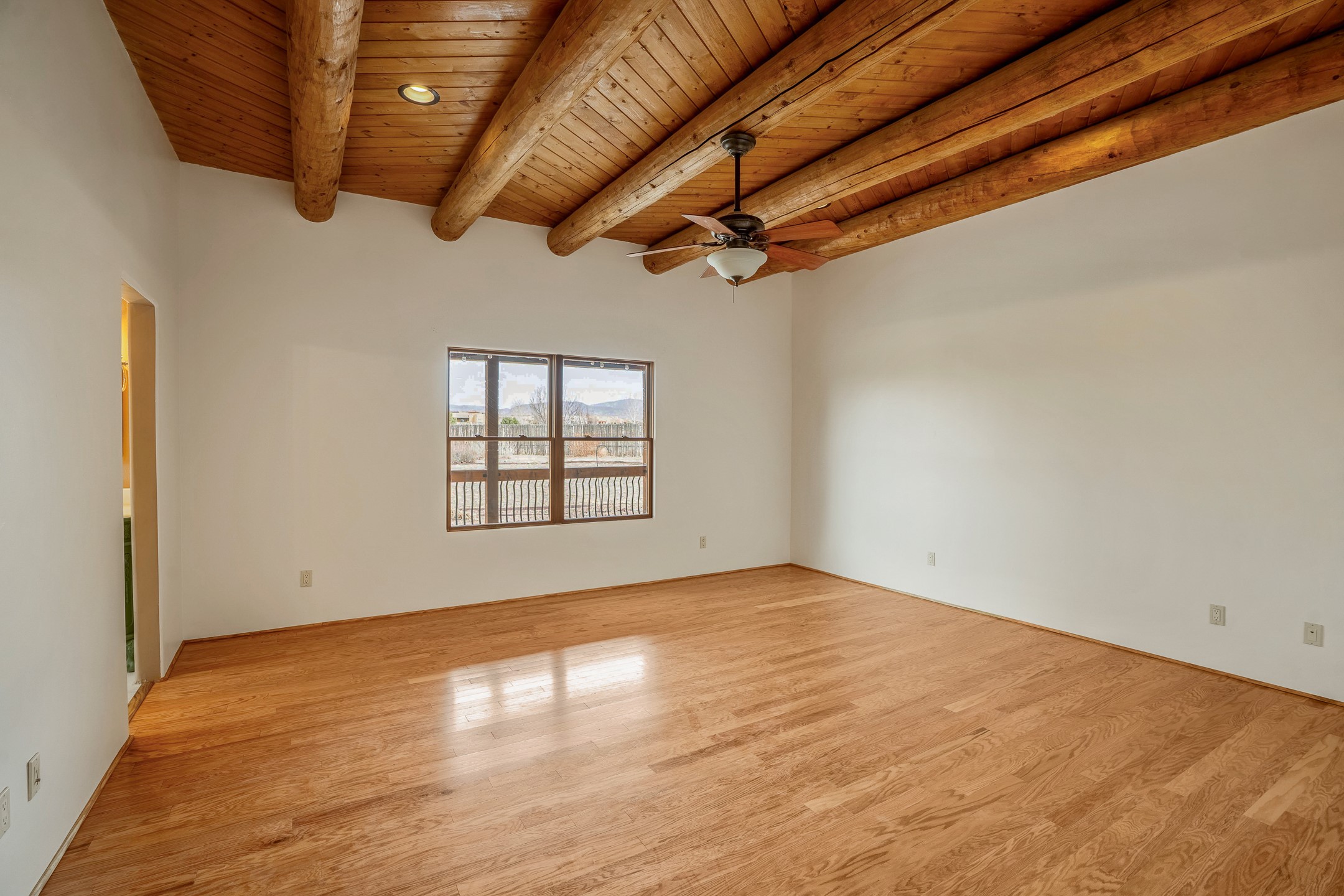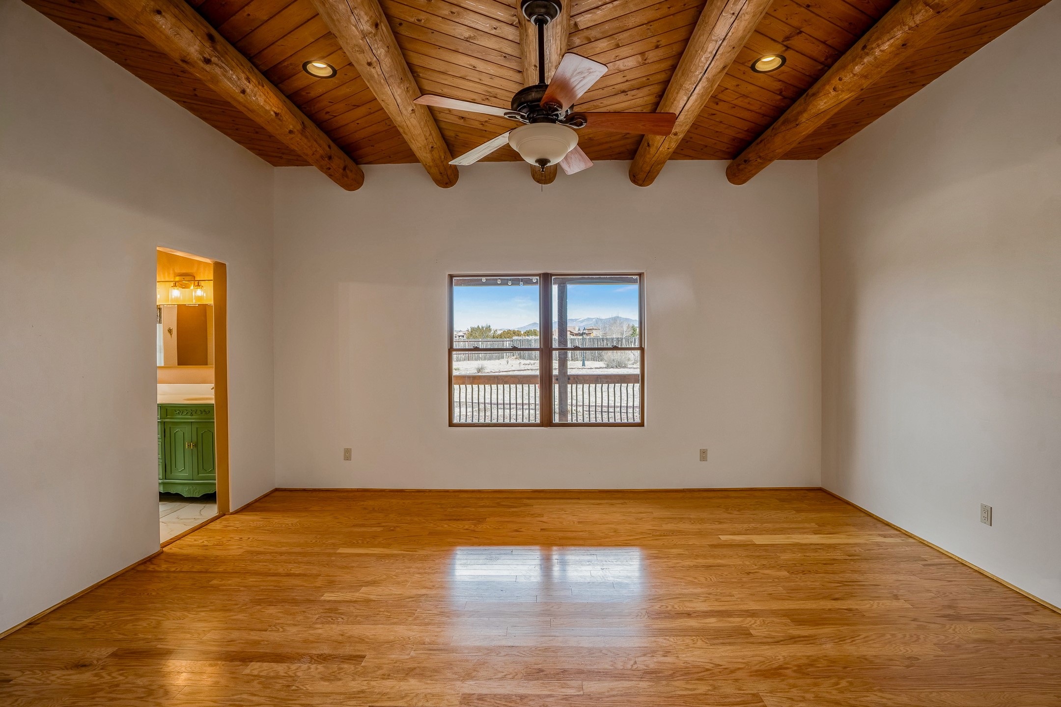 This beautiful single-level home boasts a spacious 2,727 +/- square foot split-bedroom floor plan with 4 bedrooms, a sunroom, 3 full baths, and a 3-car garage. 2025: home has been appx 80% re-stuccoed, & is situated on a fenced & gated 2.5-acre lot with breathtaking mountain views in all directions, offering a serene rural setting allowing horses, no HOA, just minutes from hospitals, restaurants, & grocery stores. The large kitchen is a chef's dream, featuring NEW MOSAIC TILE BACKSPLASH, abundant cabinetry & drawers for ample storage, granite countertops, an island/breakfast bar, pantry and stainless-steel appliances. Adjacent to the kitchen is the formal dining room with tiled accents and plaster finished wall/ceiling. The grand living room impresses with high ceilings, vigas, can lighting, and a REMODELED GAS FIREPLACE WITH MANTLE. From the living room, step into the NEW SUNROOM, which opens to a NEW COVERED PORCH perfect for relaxing & enjoying the views. The spacious owner's suite has NEW ENGINEERED WOOD FLOORING, walk-in closet with built-ins, vigas with tongue & groove ceiling and a ceiling fan. The ensuite bath has a NEW TUB, NEW LOVELY TILED SHOWER, AND NEW DOUBLE SINK VANITY. Additional bedrooms are thoughtfully designed with ample space & functionality. The hall bath has been updated with a NEW VANITY, while the laundry room, complete with plentiful cabinets and drawers, a skylight, and an NEWELY ADDED SINK, offers convenience and style. Many wonderful features and amenities include: Radiant heat-2 Evaporative cooling units-Tons of skylights-Wood doors-NEW PERGOLA-NEW 16X16 TUFF SHED (13K)-Plaster finish walls-Hunter Douglas blinds-Ceiling fans-NEW BRICK TILED ACCENT WALLS in hallway-Plenty of wall space for artwork-FRESHLY PAINTED INTERIOR (Almost every room)-Multiple covered enclosed patios, perfect for outdoor living, and entertaining. This property combines comfort and functionality with stunning views. Please read agent only remarks.