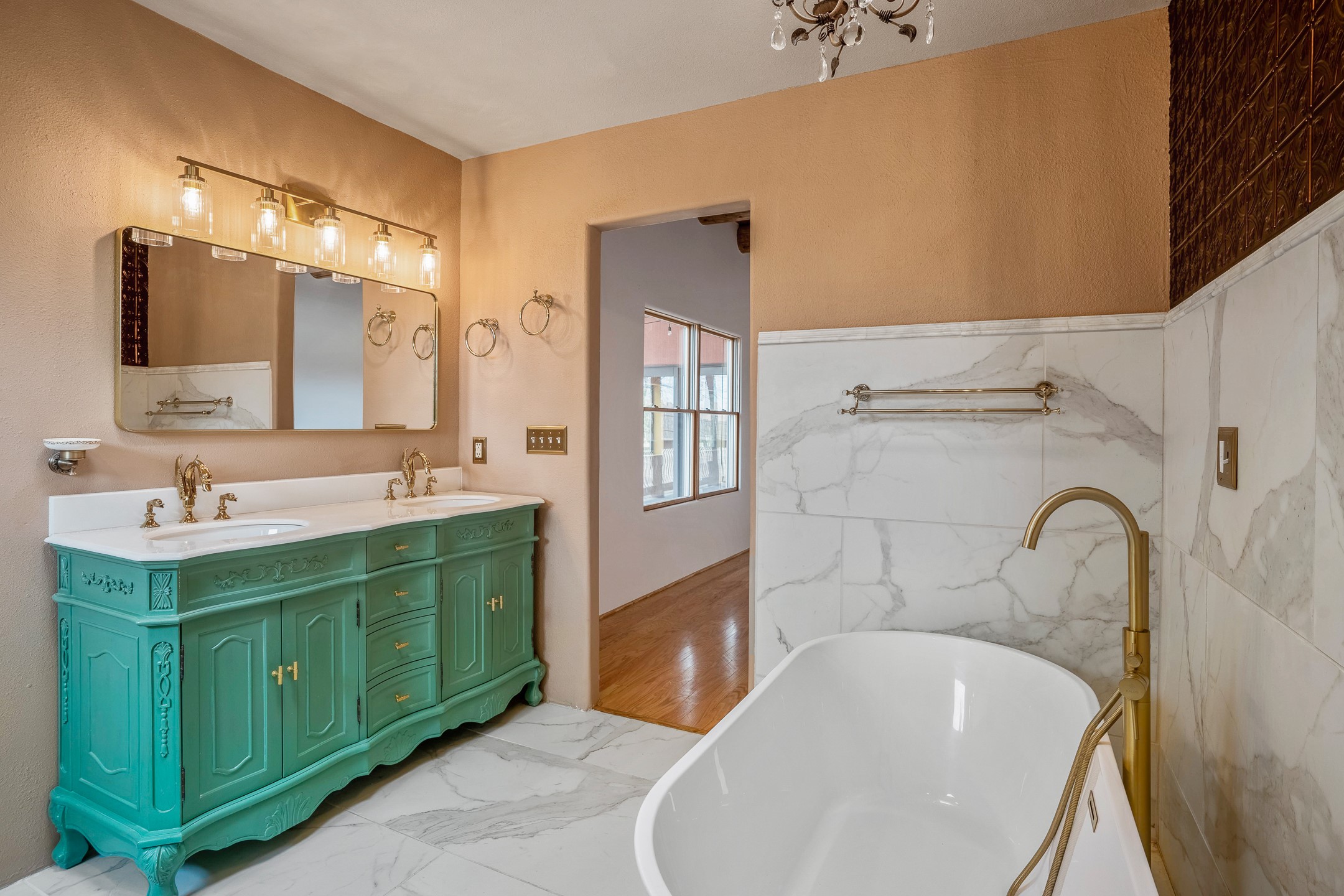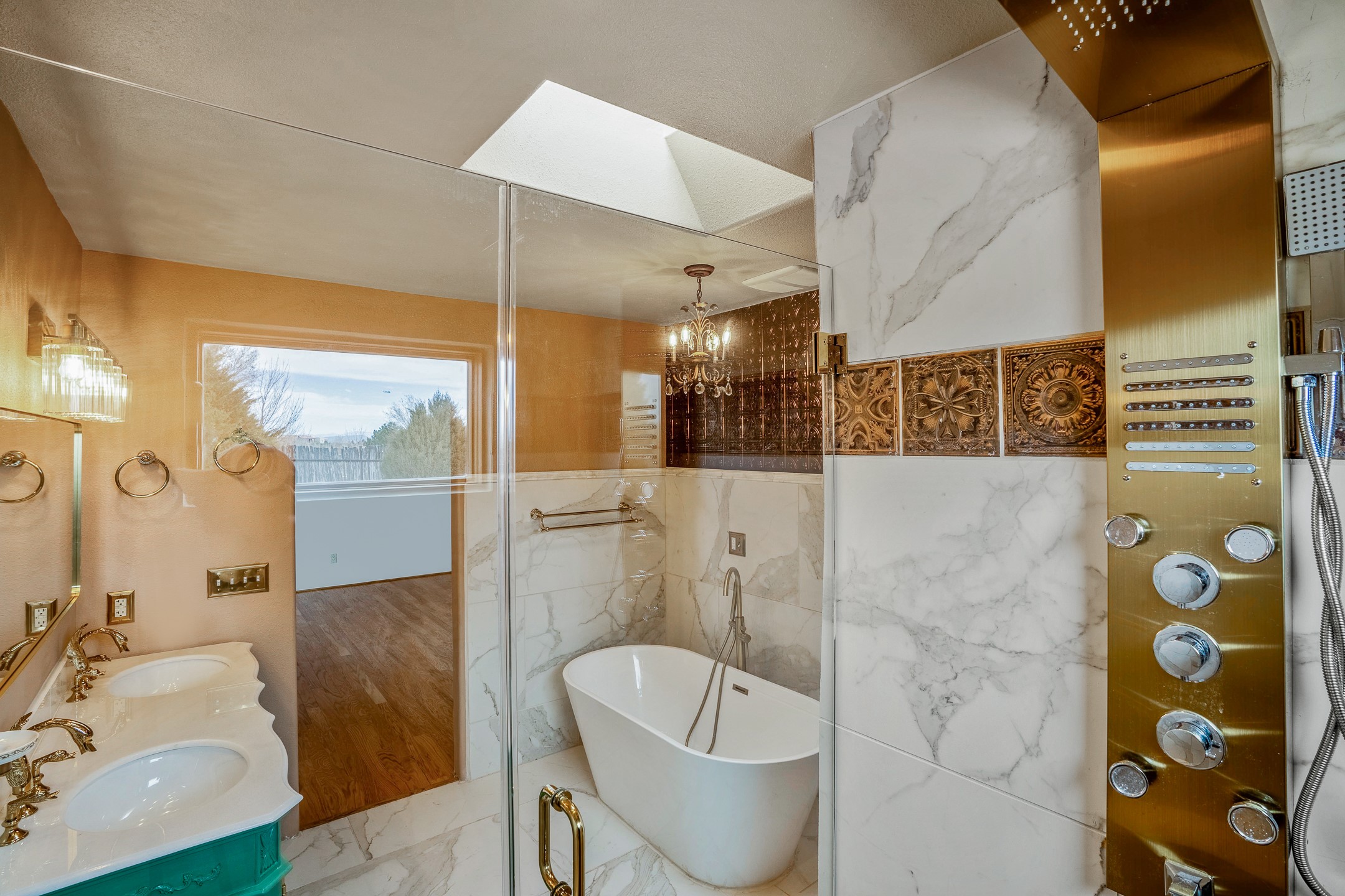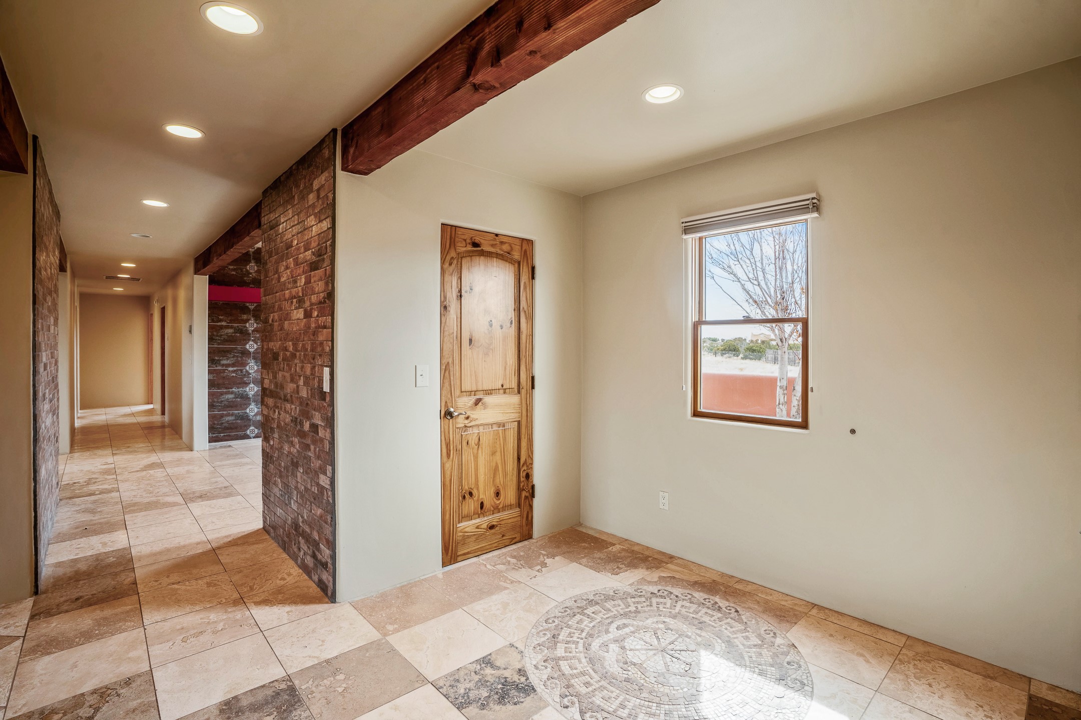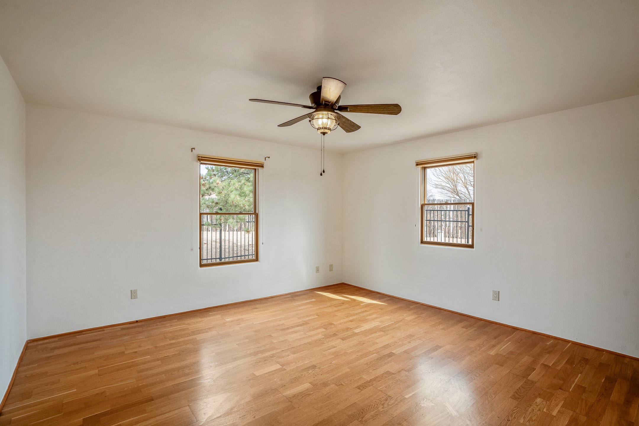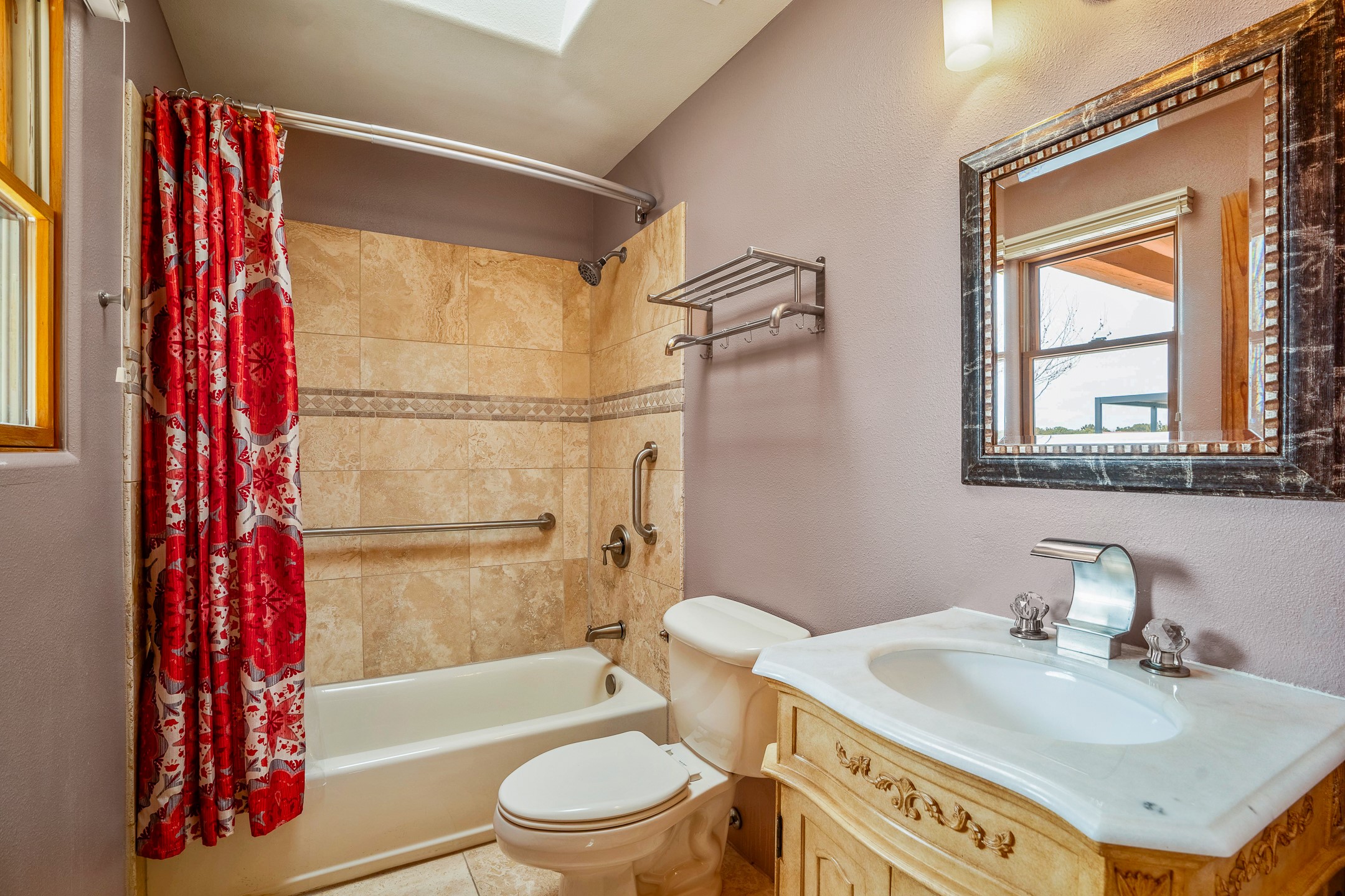 This beautiful single-level home boasts a spacious 2,727 +/- square foot split-bedroom floor plan with 4 bedrooms, a sunroom, 3 full baths, and a 3-car garage. 2025: home has been appx 80% re-stuccoed, & is situated on a fenced & gated 2.5-acre lot with breathtaking mountain views in all directions, offering a serene rural setting allowing horses, no HOA, just minutes from hospitals, restaurants, & grocery stores. The large kitchen is a chef's dream, featuring NEW MOSAIC TILE BACKSPLASH, abundant cabinetry & drawers for ample storage, granite countertops, an island/breakfast bar, pantry and stainless-steel appliances. Adjacent to the kitchen is the formal dining room with tiled accents and plaster finished wall/ceiling. The grand living room impresses with high ceilings, vigas, can lighting, and a REMODELED GAS FIREPLACE WITH MANTLE. From the living room, step into the NEW SUNROOM, which opens to a NEW COVERED PORCH perfect for relaxing & enjoying the views. The spacious owner's suite has NEW ENGINEERED WOOD FLOORING, walk-in closet with built-ins, vigas with tongue & groove ceiling and a ceiling fan. The ensuite bath has a NEW TUB, NEW LOVELY TILED SHOWER, AND NEW DOUBLE SINK VANITY. Additional bedrooms are thoughtfully designed with ample space & functionality. The hall bath has been updated with a NEW VANITY, while the laundry room, complete with plentiful cabinets and drawers, a skylight, and an NEWELY ADDED SINK, offers convenience and style. Many wonderful features and amenities include: Radiant heat-2 Evaporative cooling units-Tons of skylights-Wood doors-NEW PERGOLA-NEW 16X16 TUFF SHED (13K)-Plaster finish walls-Hunter Douglas blinds-Ceiling fans-NEW BRICK TILED ACCENT WALLS in hallway-Plenty of wall space for artwork-FRESHLY PAINTED INTERIOR (Almost every room)-Multiple covered enclosed patios, perfect for outdoor living, and entertaining. This property combines comfort and functionality with stunning views. Please read agent only remarks.