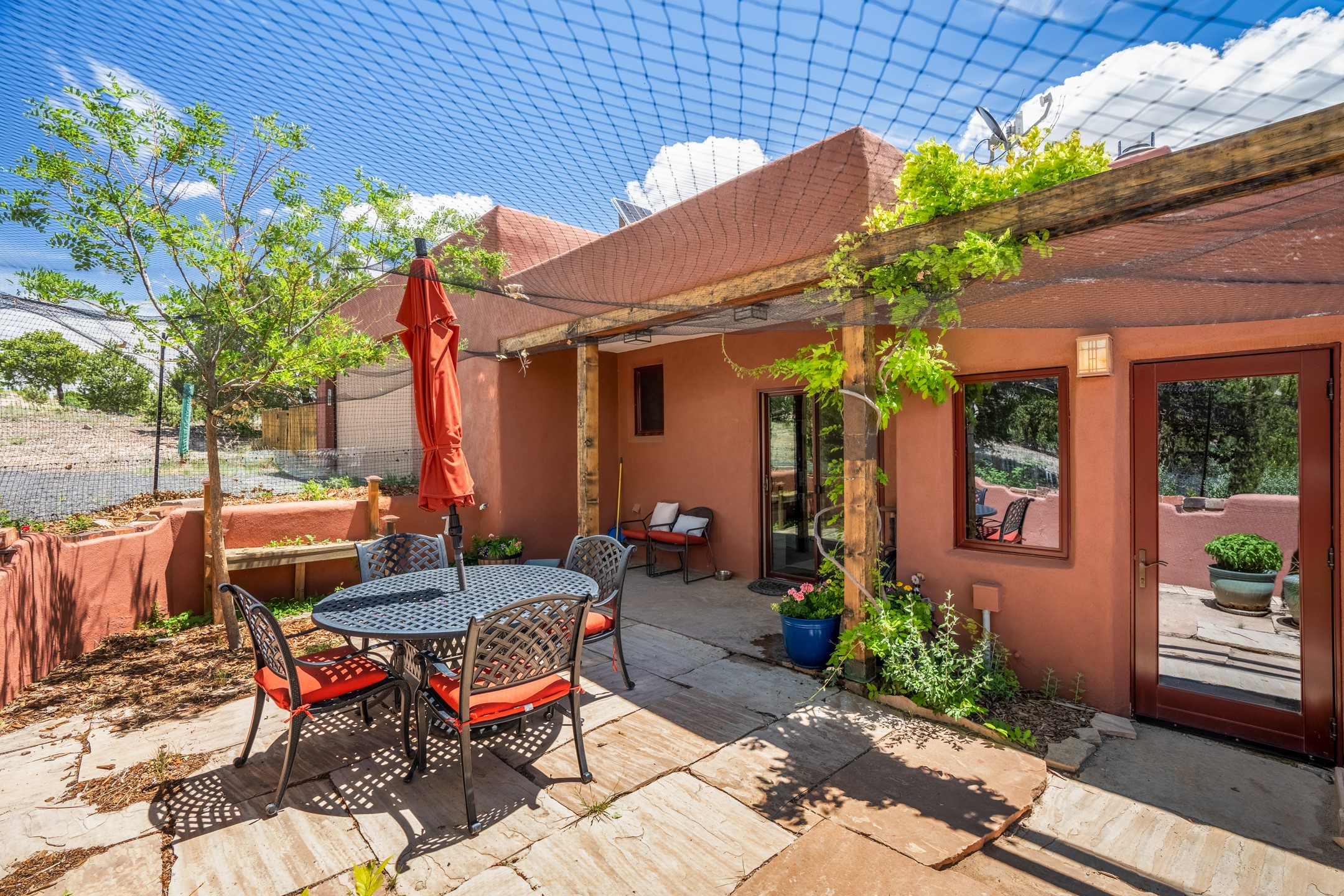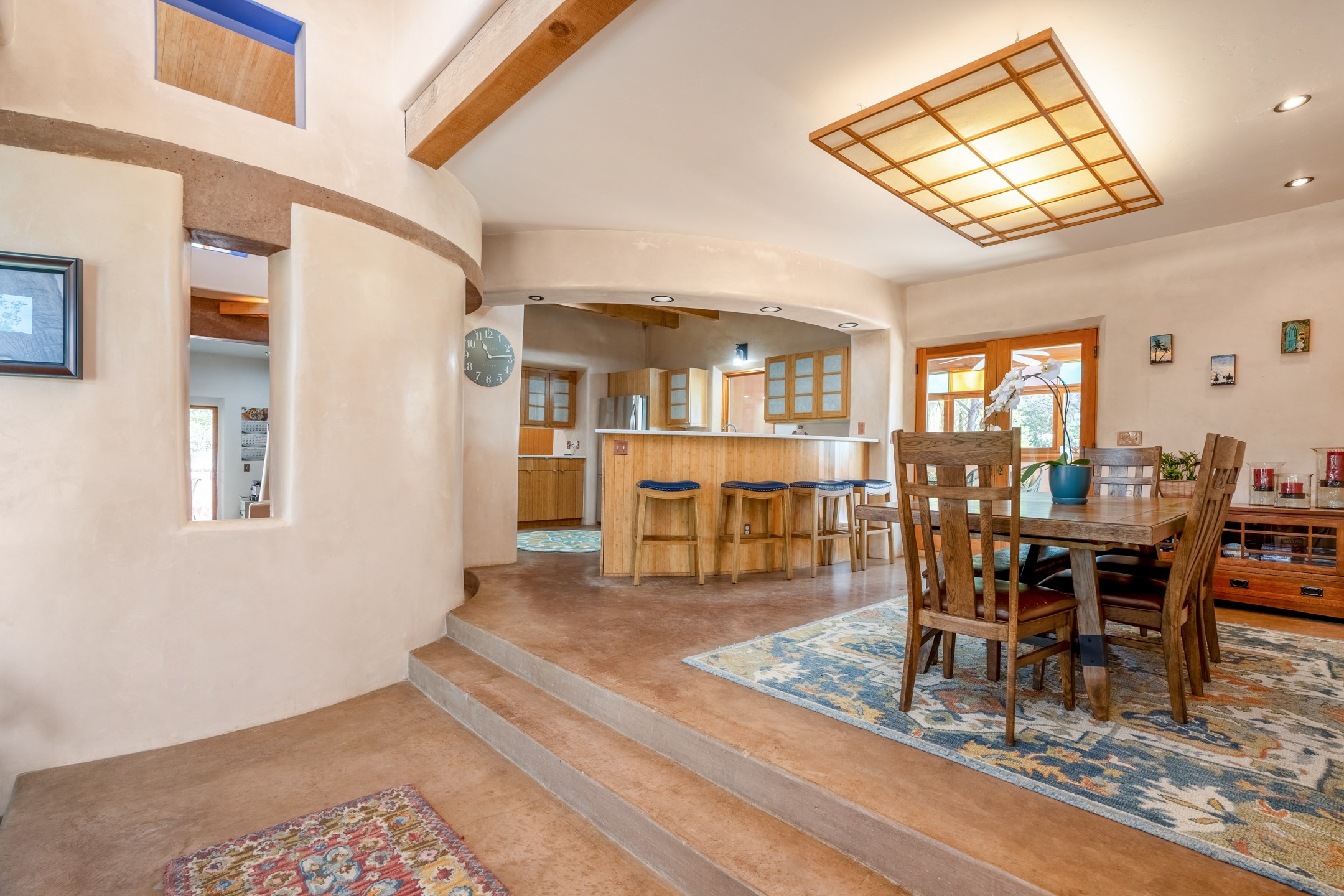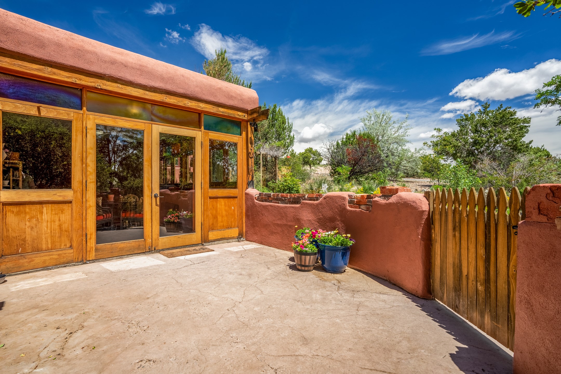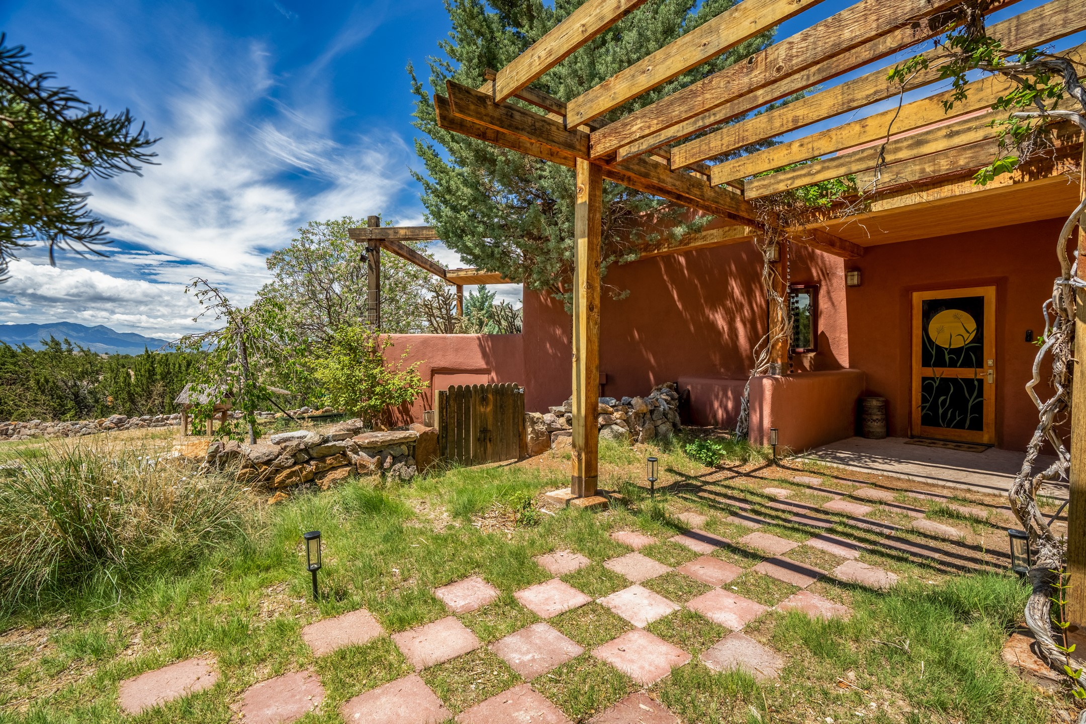 Located on 13.5 VIEW acres one can ride for miles with direct access to BLM land and the Cerrillos Hills. Complete with a beautifully updated barn and tack room, newly built arena and extensive paddock, private well with 3 ac ft of water use. The one of a kind adobe residence is beautifully designed with soft corners, hand-troweled plaster walls, 2 kiva fps, bamboo cabinets and doors, Viatera quartz counters, high ceilings, clearstory windows and more-Come See!