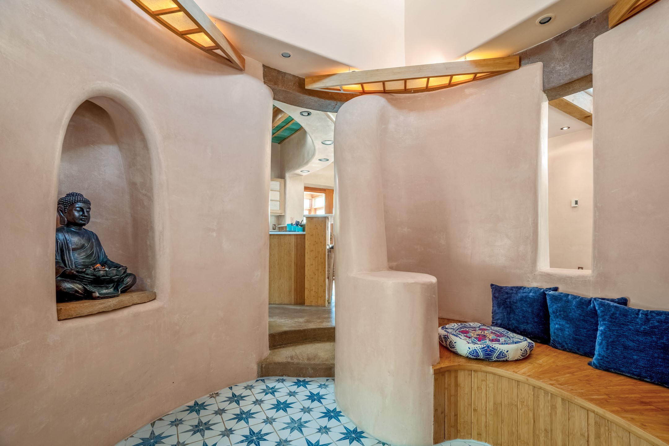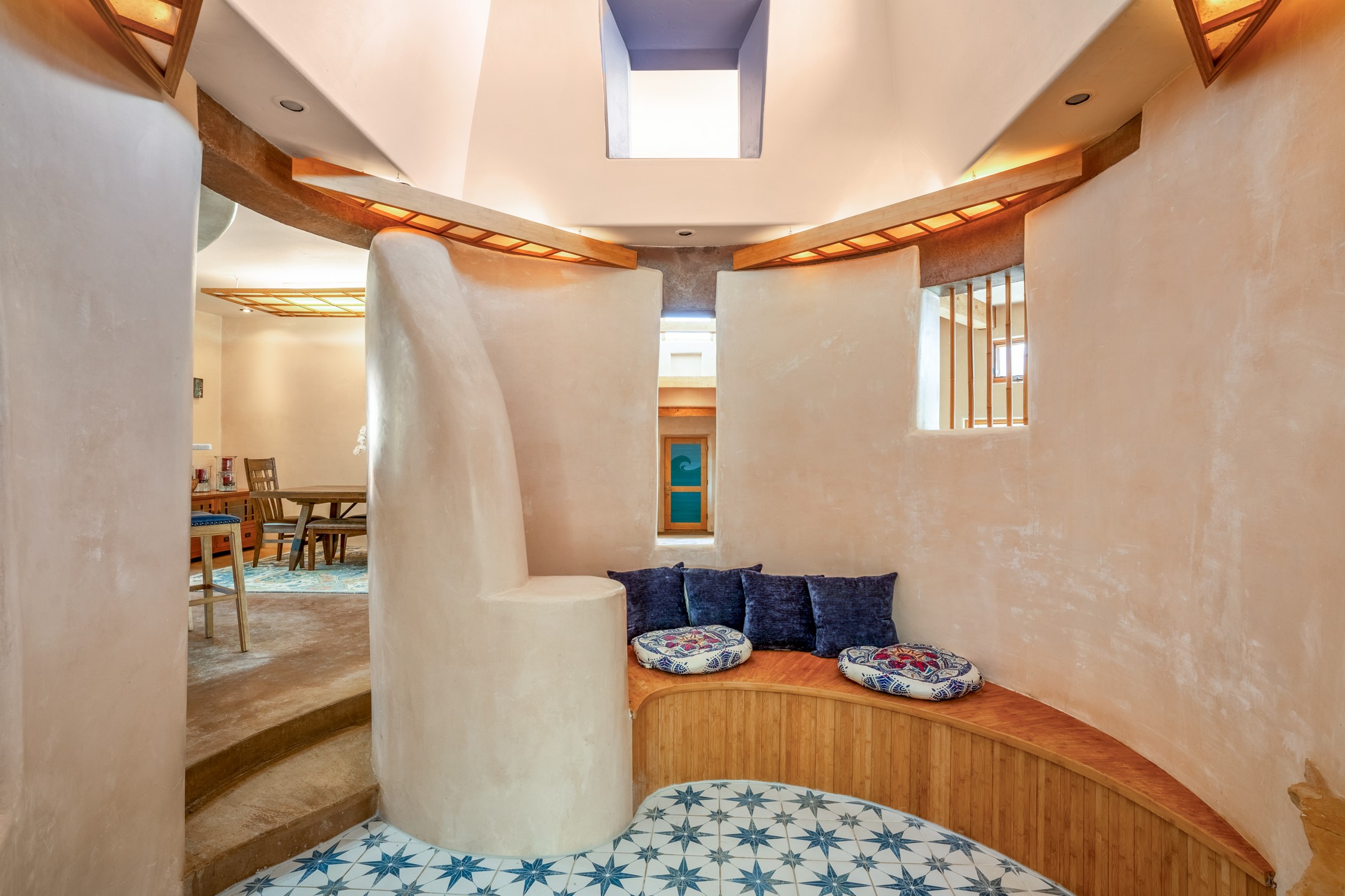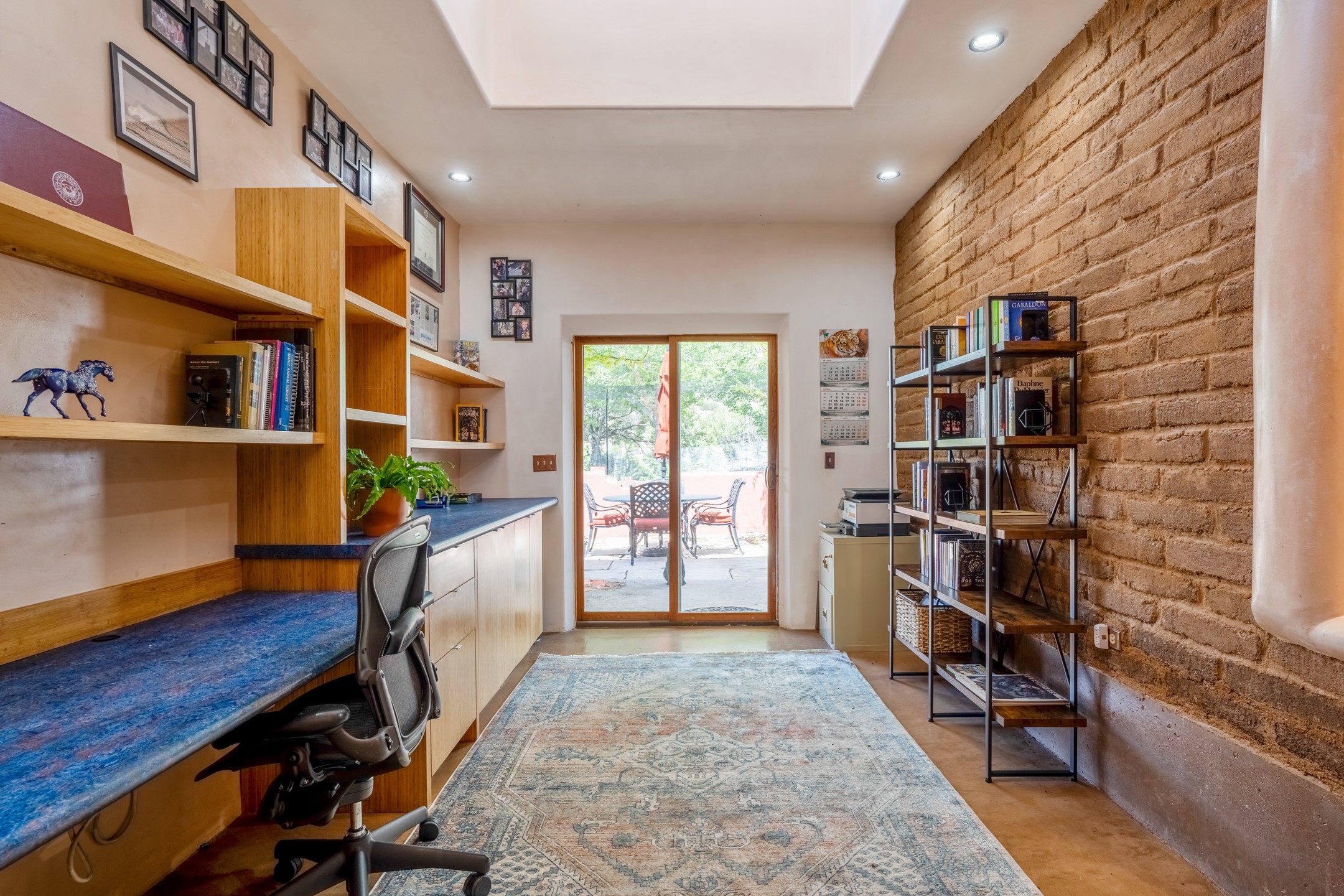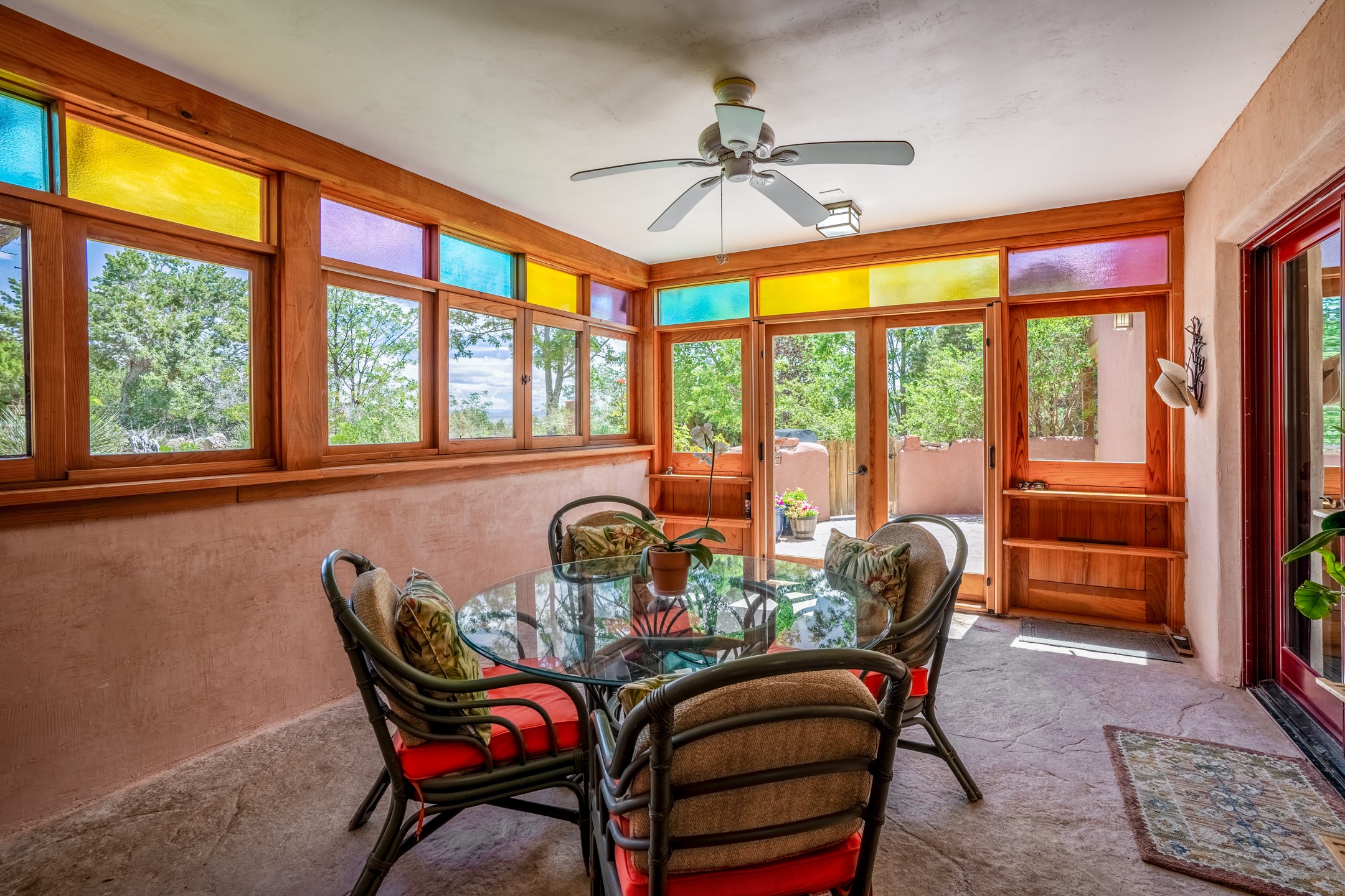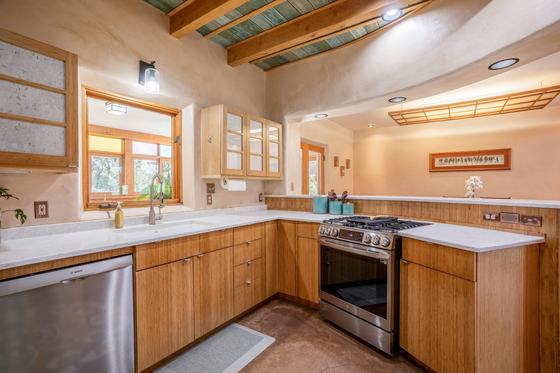 Located on 13.5 VIEW acres one can ride for miles with direct access to BLM land and the Cerrillos Hills. Complete with a beautifully updated barn and tack room, newly built arena and extensive paddock, private well with 3 ac ft of water use. The one of a kind adobe residence is beautifully designed with soft corners, hand-troweled plaster walls, 2 kiva fps, bamboo cabinets and doors, Viatera quartz counters, high ceilings, clearstory windows and more-Come See!